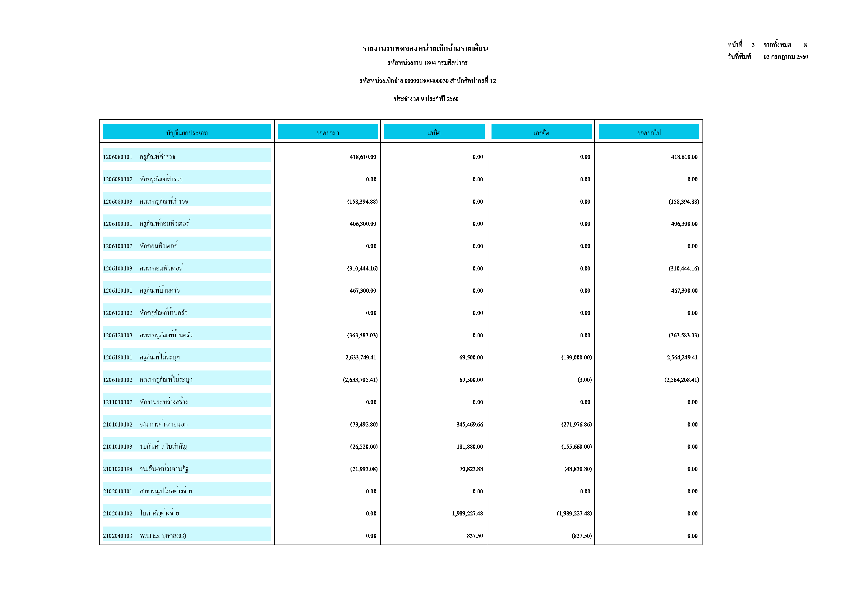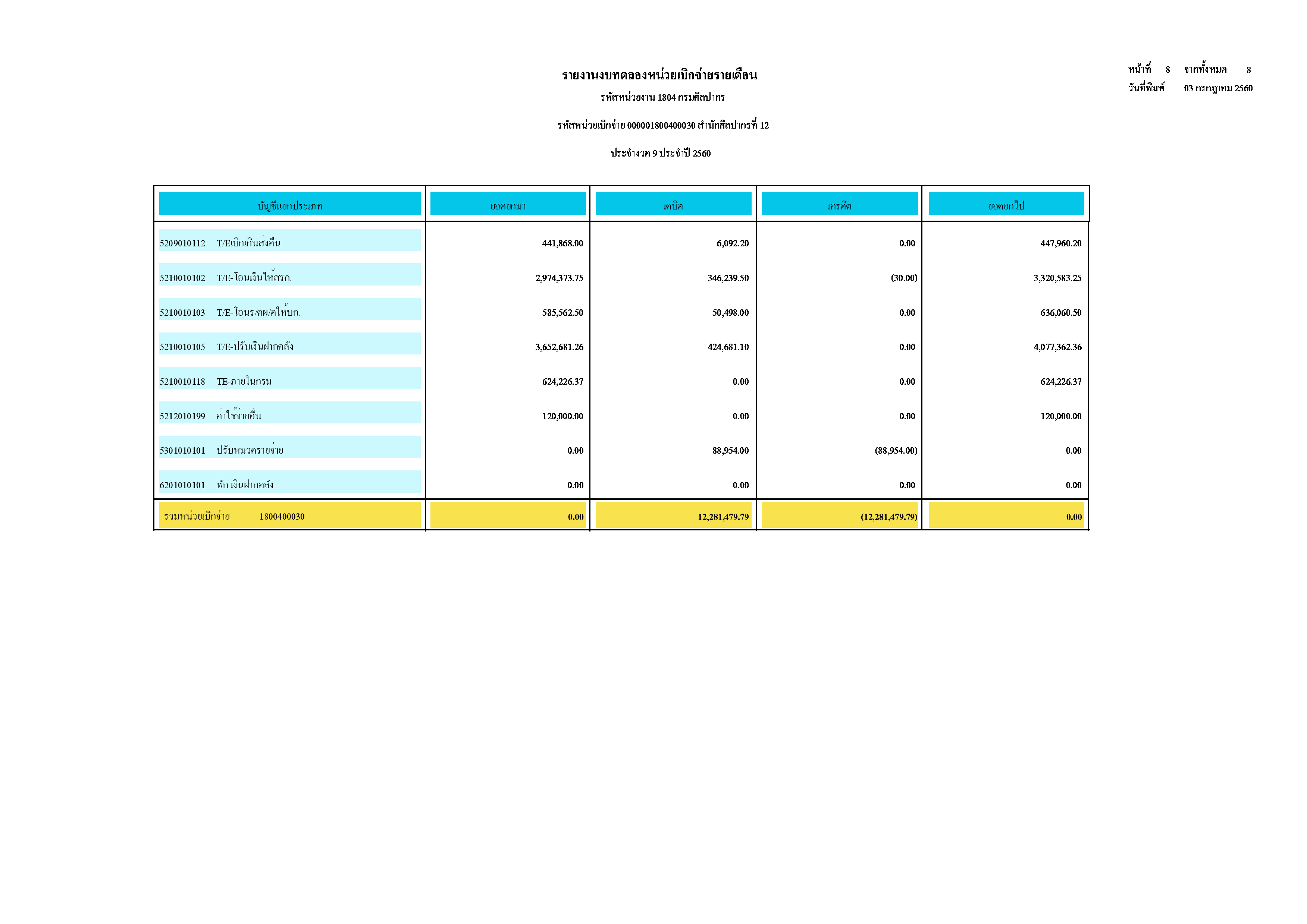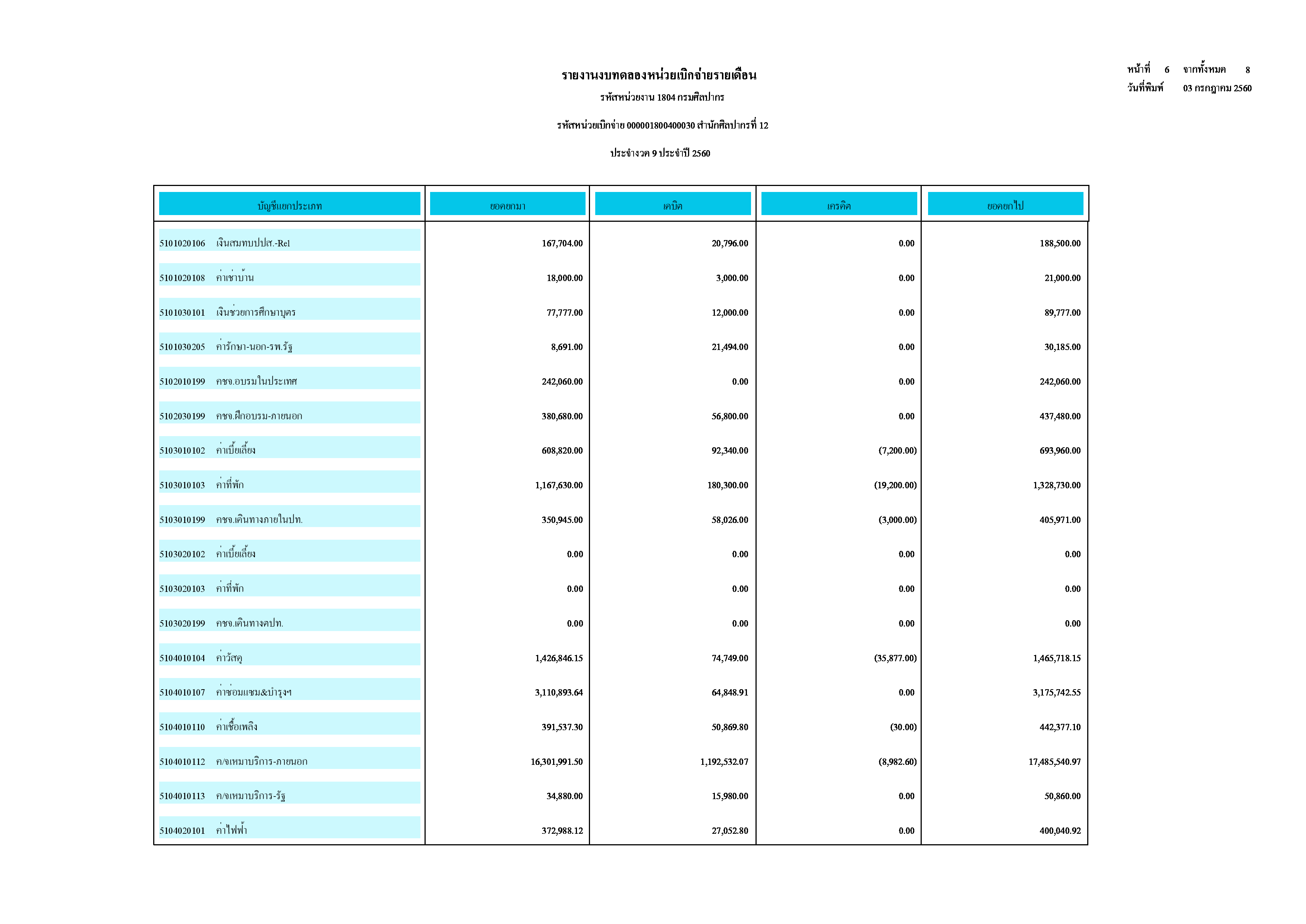 รายงานบัญชีงบทดลอง สำนักศิลปากรที่ ๑๐ นครราชสีมา (เดือนมิถุนายน ๒๕๖๐)
