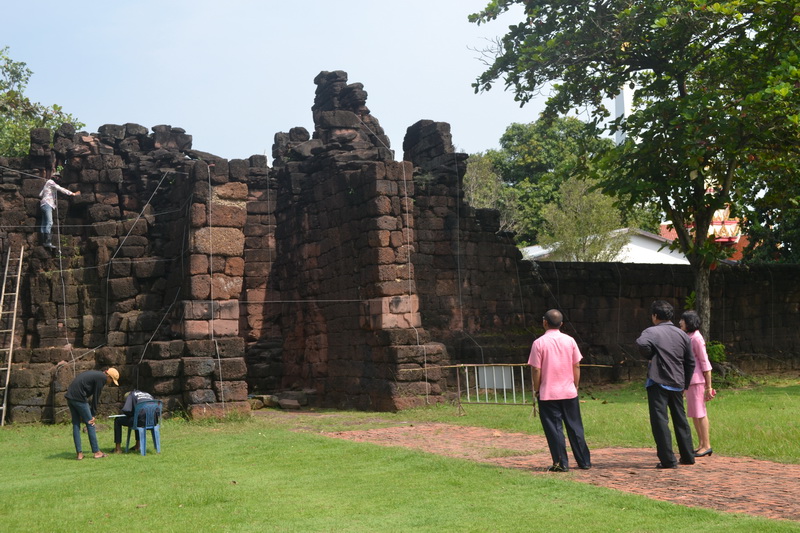 ๓.วิศวกรจากสำนักสถาปัตยกรรมกรมศิลปากรและกลุ่มอนุรักษ์โบราณสถาน สำนักศิลปากรที่ ๑๒ นครราชสีมา ร่วมกันออกแบบค้ำยันเสริมความมั่นคง