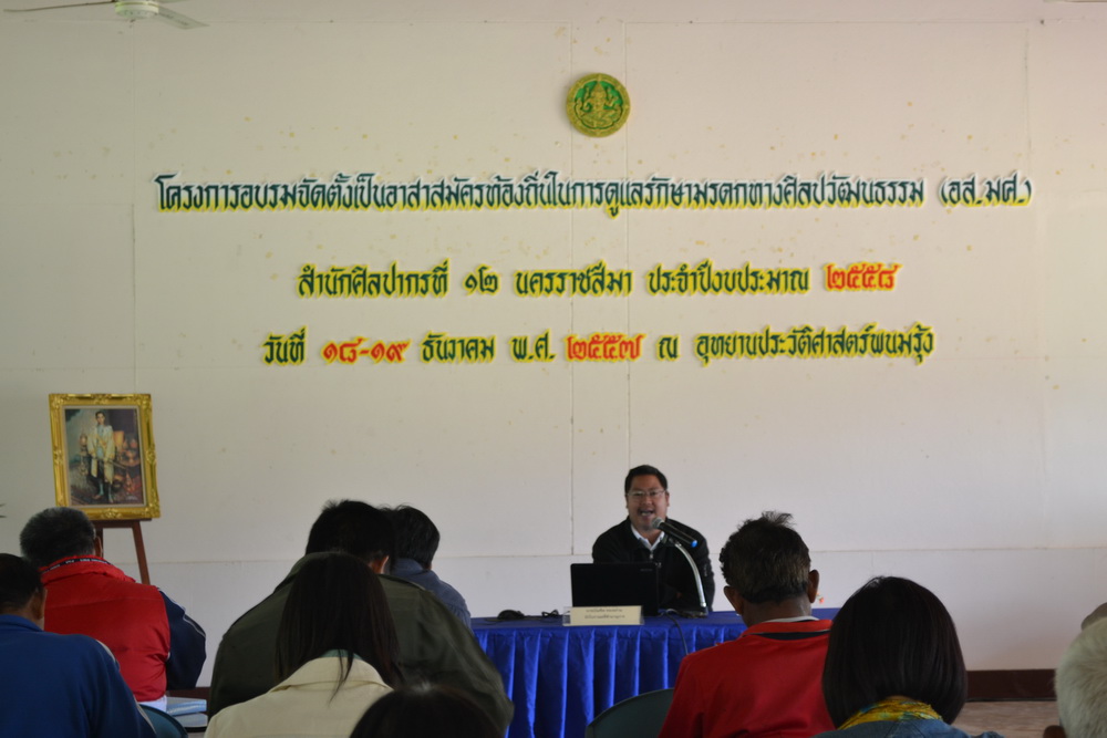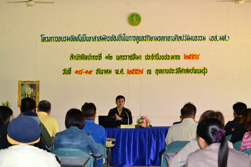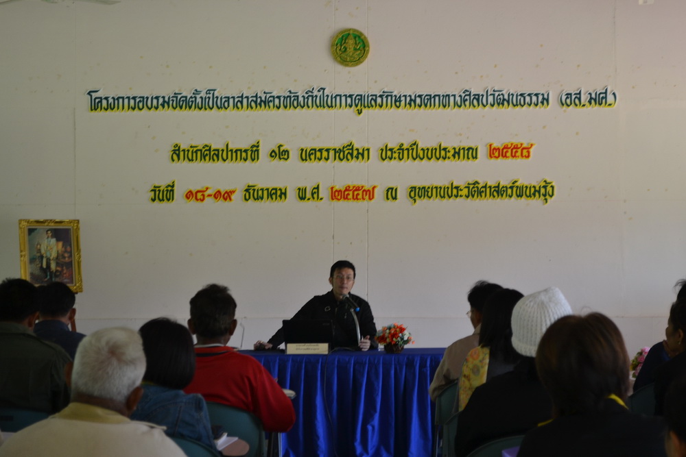 โครงการอบรมจัดตั้งเป็นสมาชิกอาสาสมัครท้องถิ่นในการดูแลรักษามรดกทางศิลปวัฒนธรรม (อส.มศ.) สำนักศิลปากรที่ ๑๒ นครราชสีมา ประจำปีงบประมาณ ๒๕๕๘ วันที่ ๑๘-๑๙ ธันวาคม พ.ศ.๒๕๕๗ ณ ศาลาวนัมรุง อุทยานประวัติศาสตร์พนมรุ้ง อำเภอเฉลิมพระเกียรติ จังหวัดบุรีรัมย์
