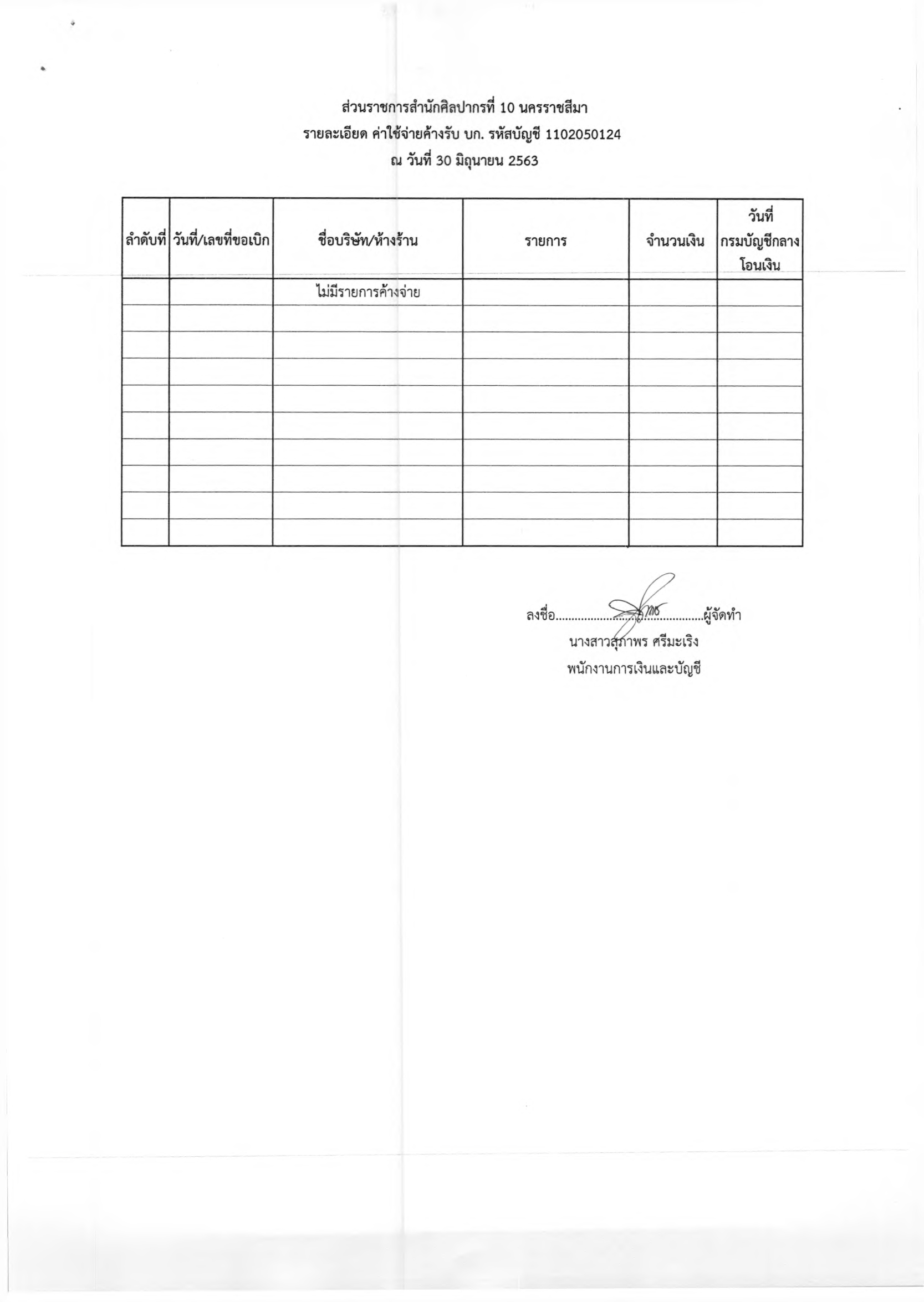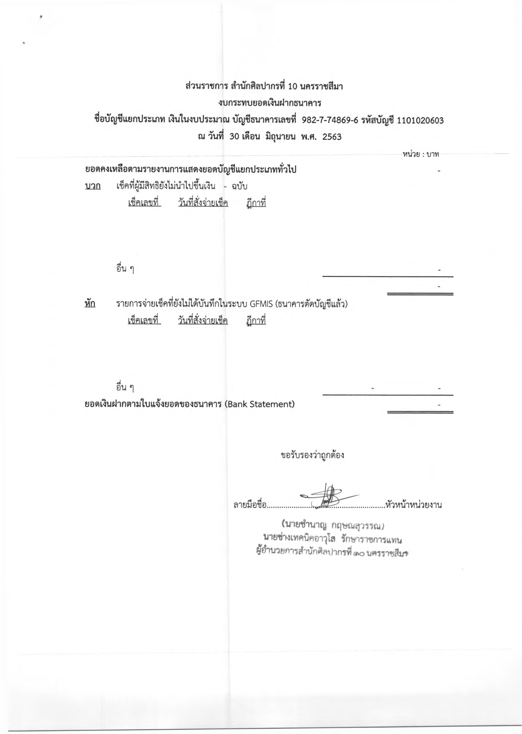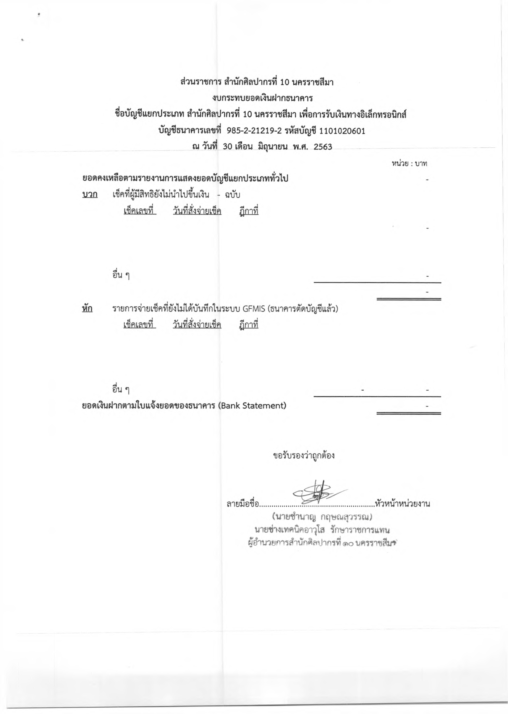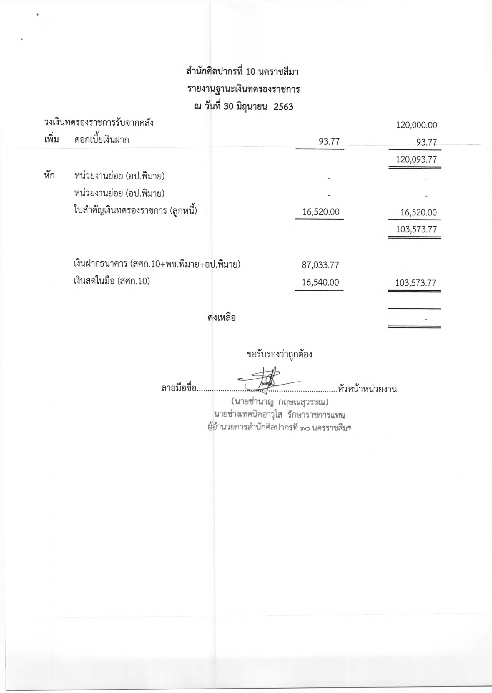 รายงานบัญชีงบทดลองและเอกสารประกอบงบทดลอง สำนักศิลปากรที่ ๑๐ นครราชสีมา (เดือนมิถุนายน ๒๕๖๓)