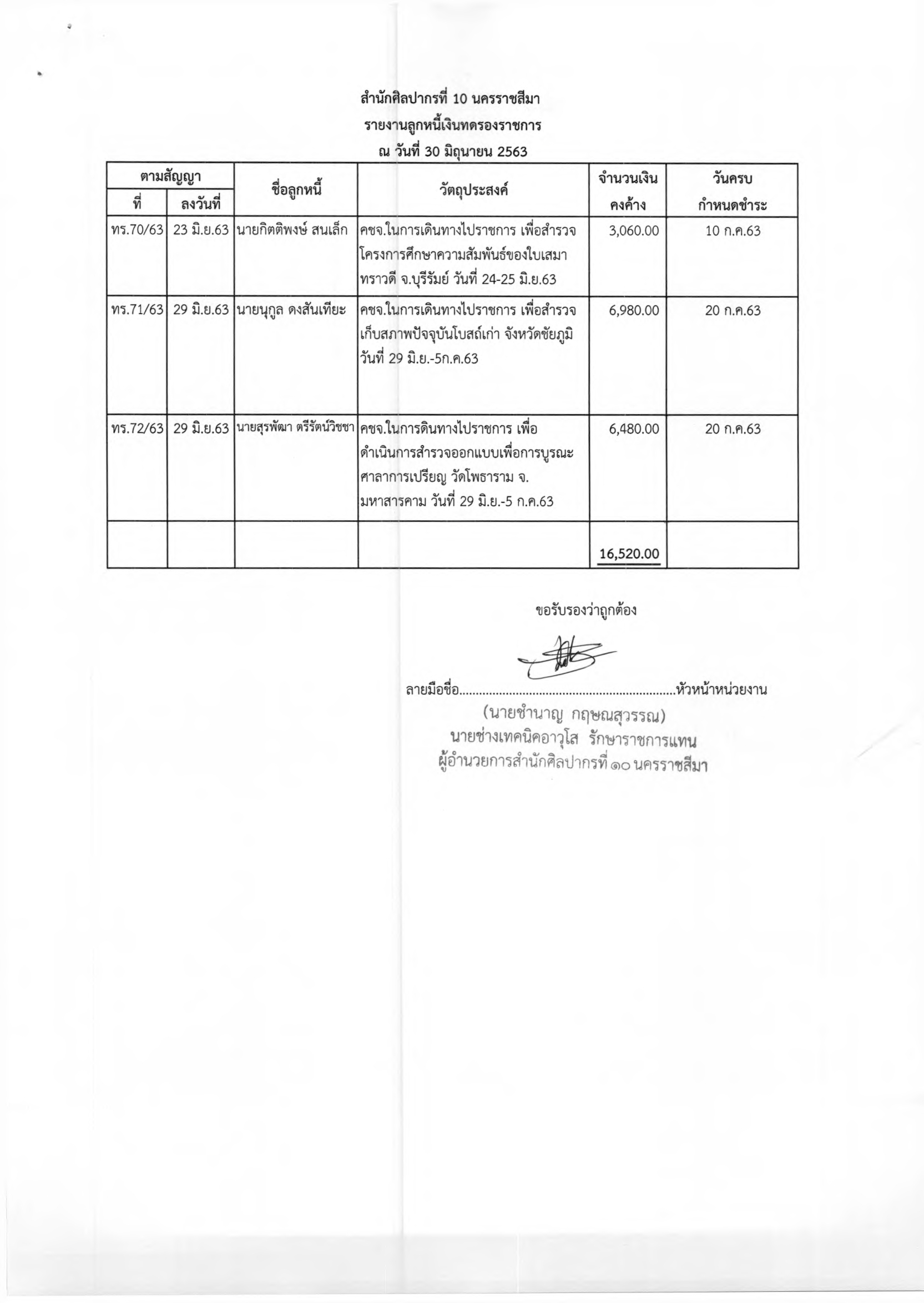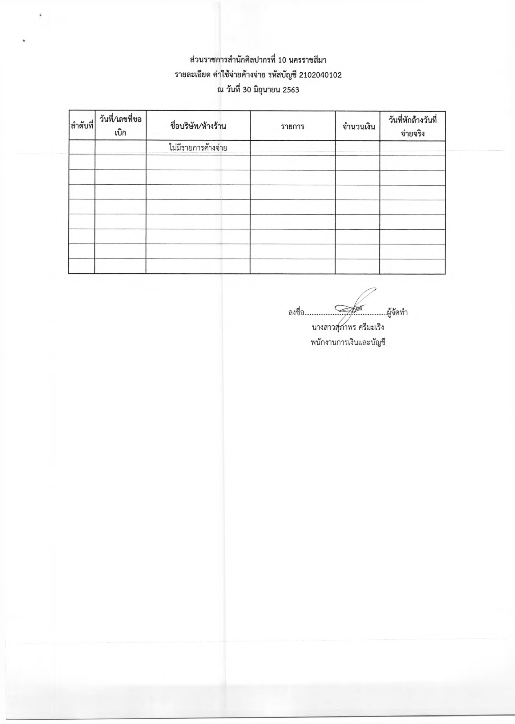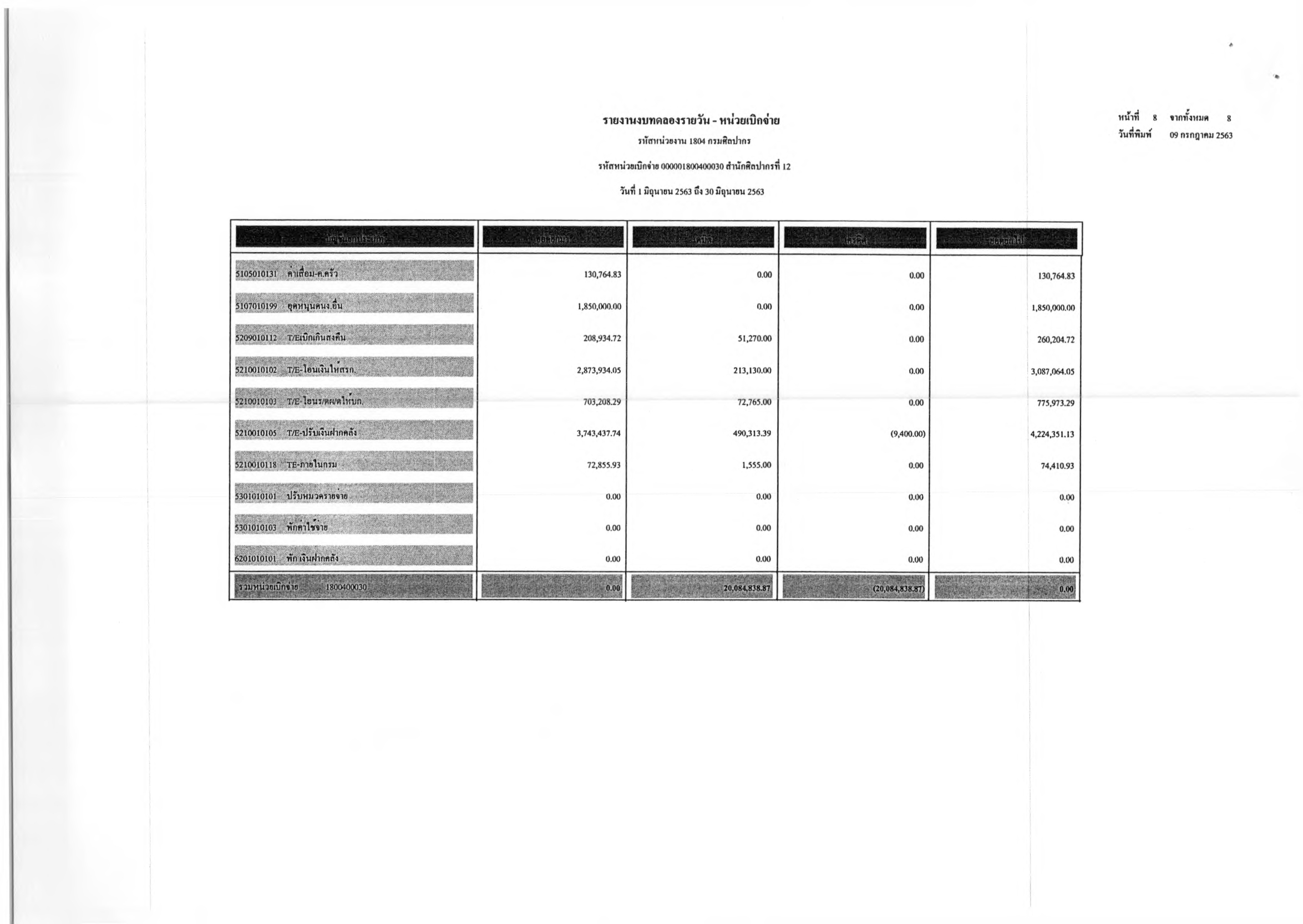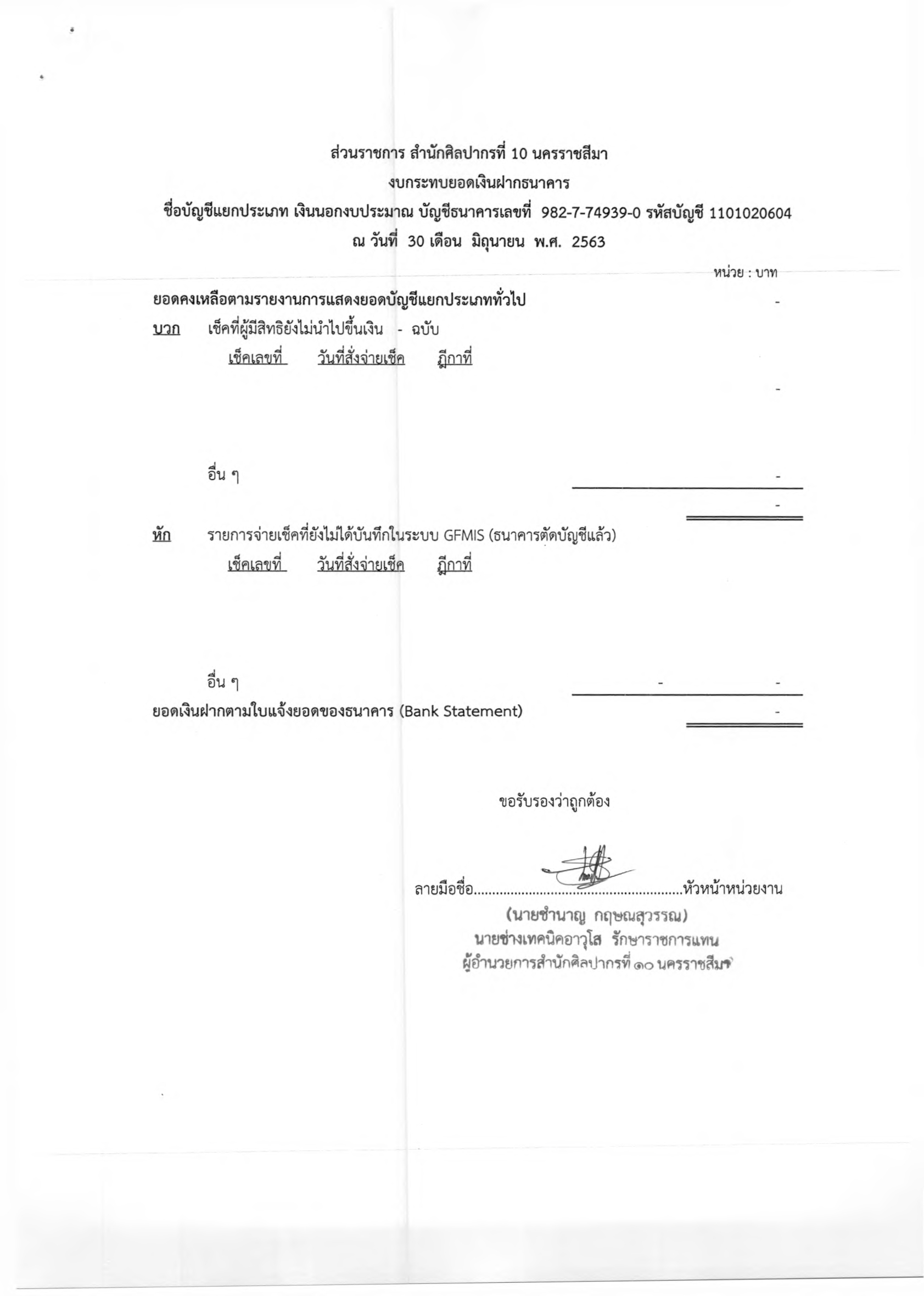 รายงานบัญชีงบทดลองและเอกสารประกอบงบทดลอง สำนักศิลปากรที่ ๑๐ นครราชสีมา (เดือนมิถุนายน ๒๕๖๓)
