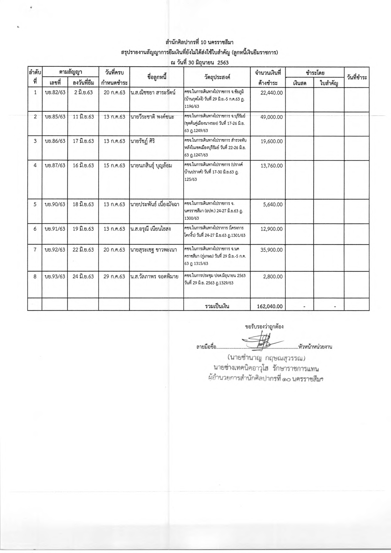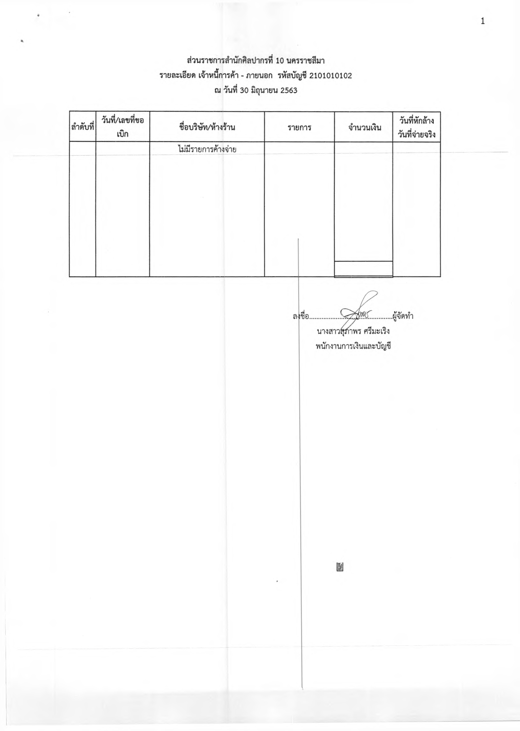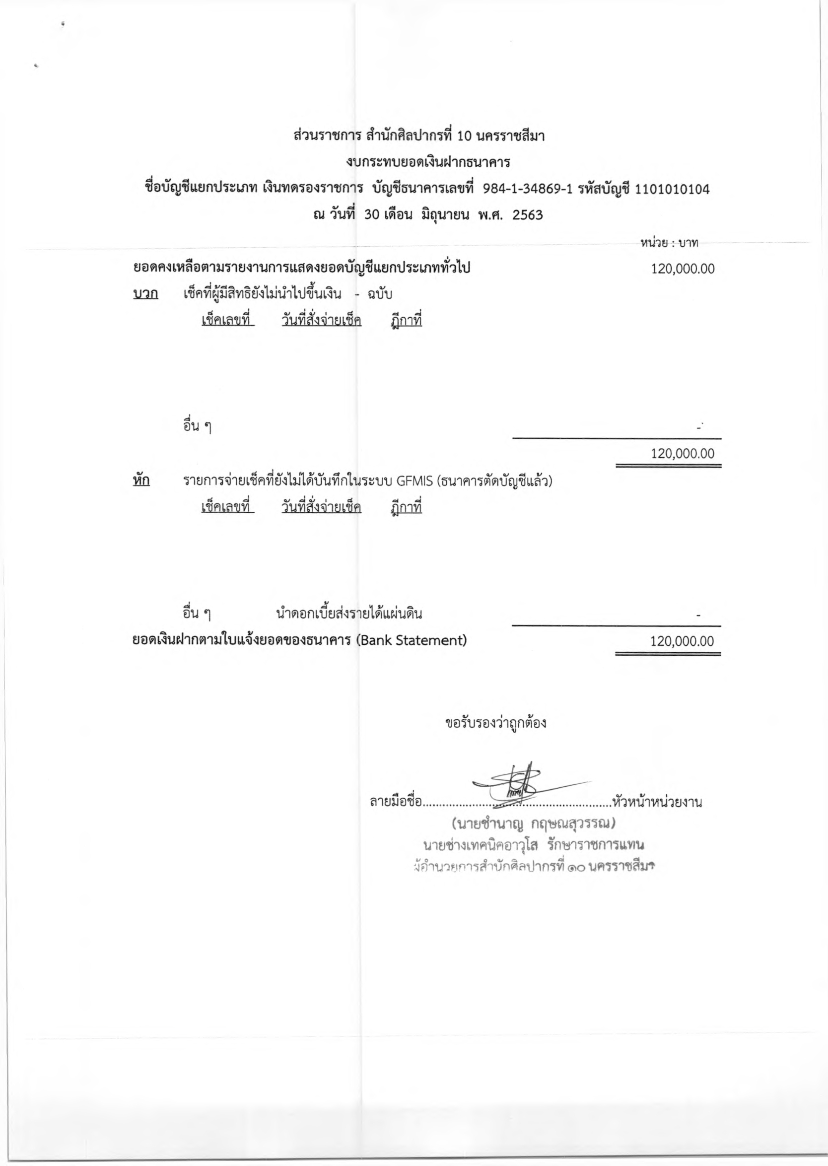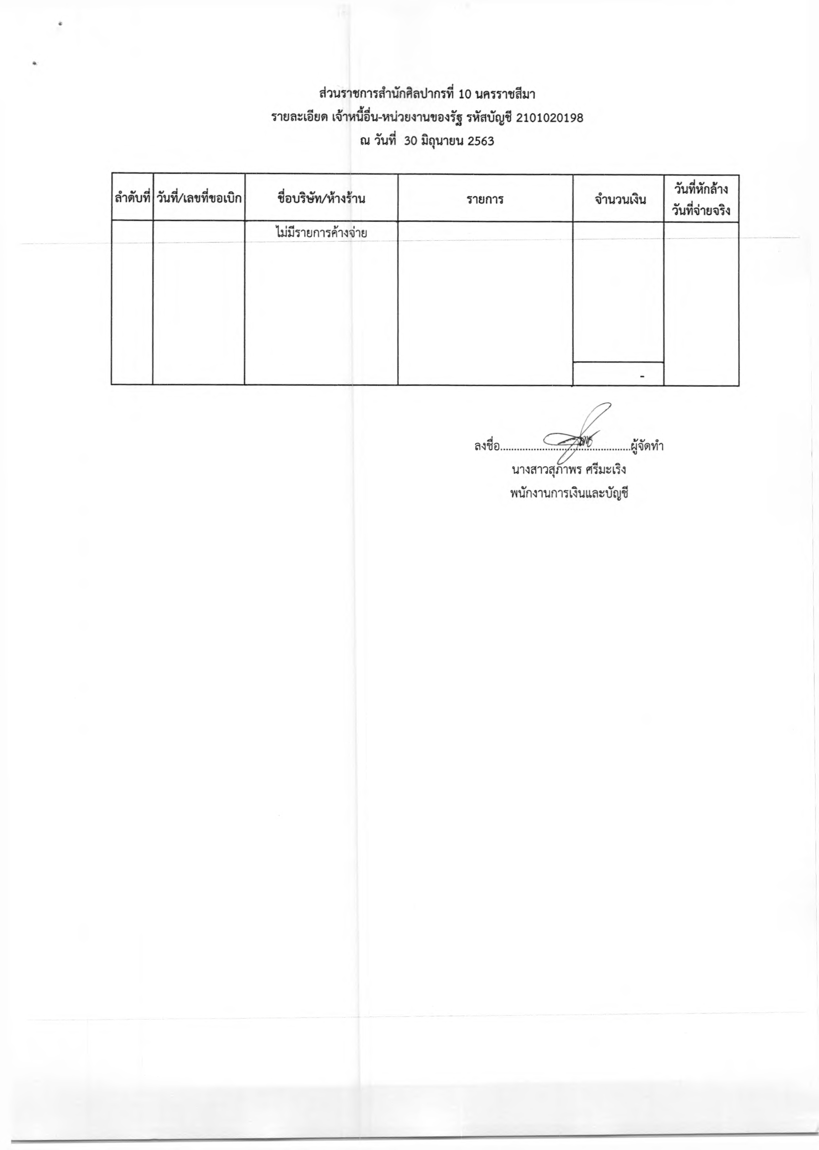 รายงานบัญชีงบทดลองและเอกสารประกอบงบทดลอง สำนักศิลปากรที่ ๑๐ นครราชสีมา (เดือนมิถุนายน ๒๕๖๓)