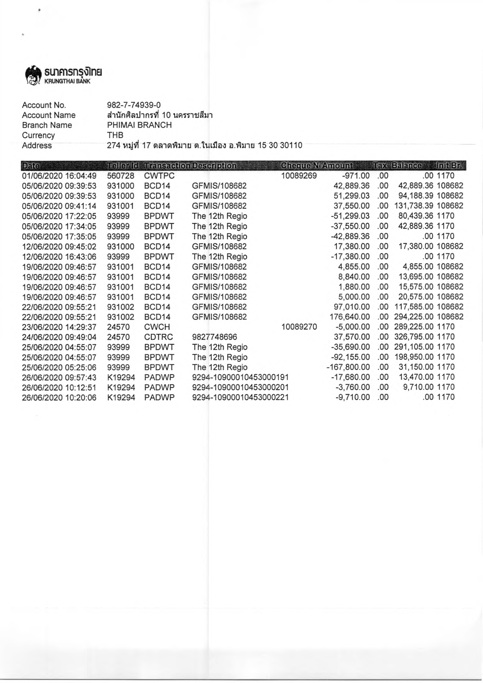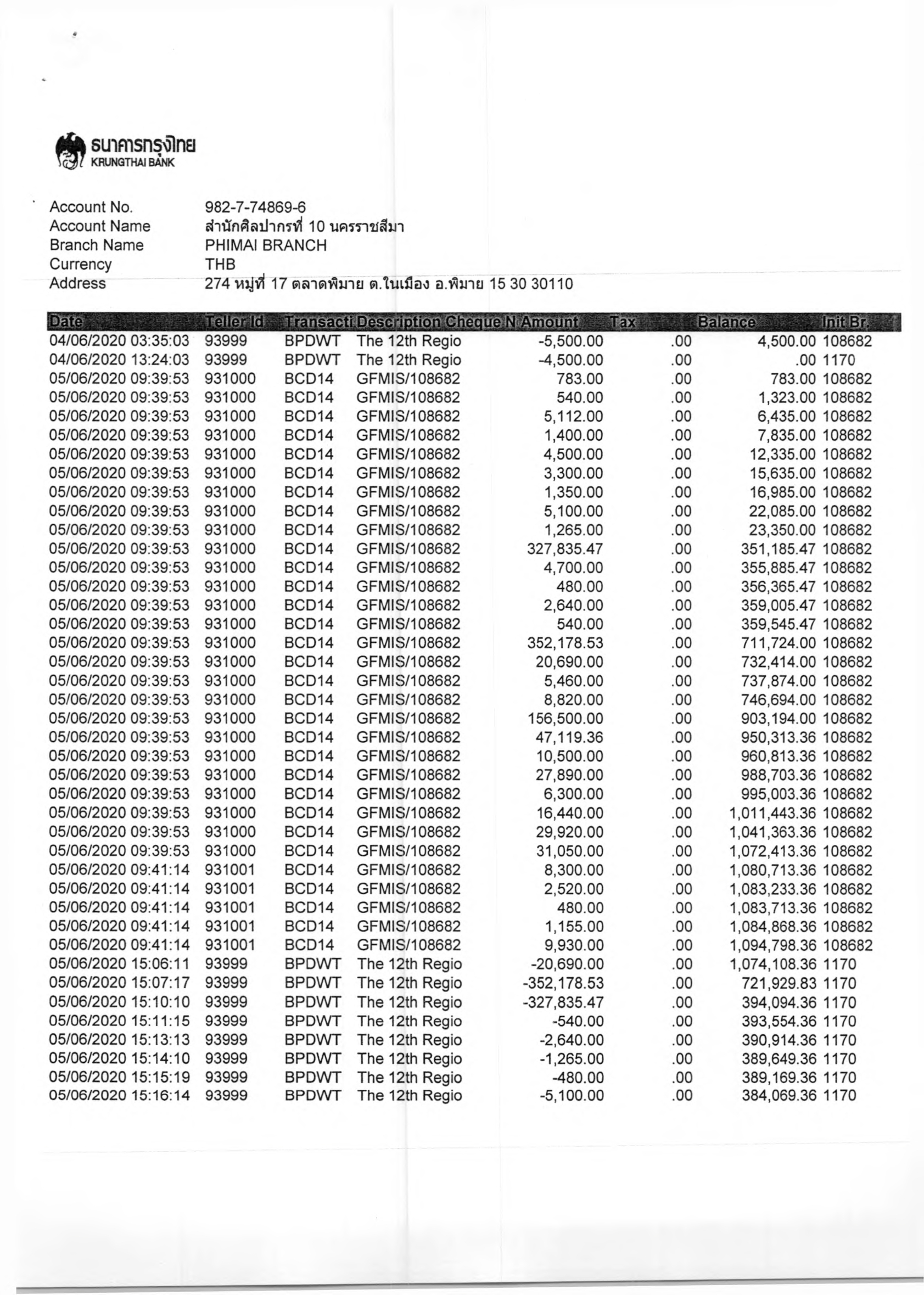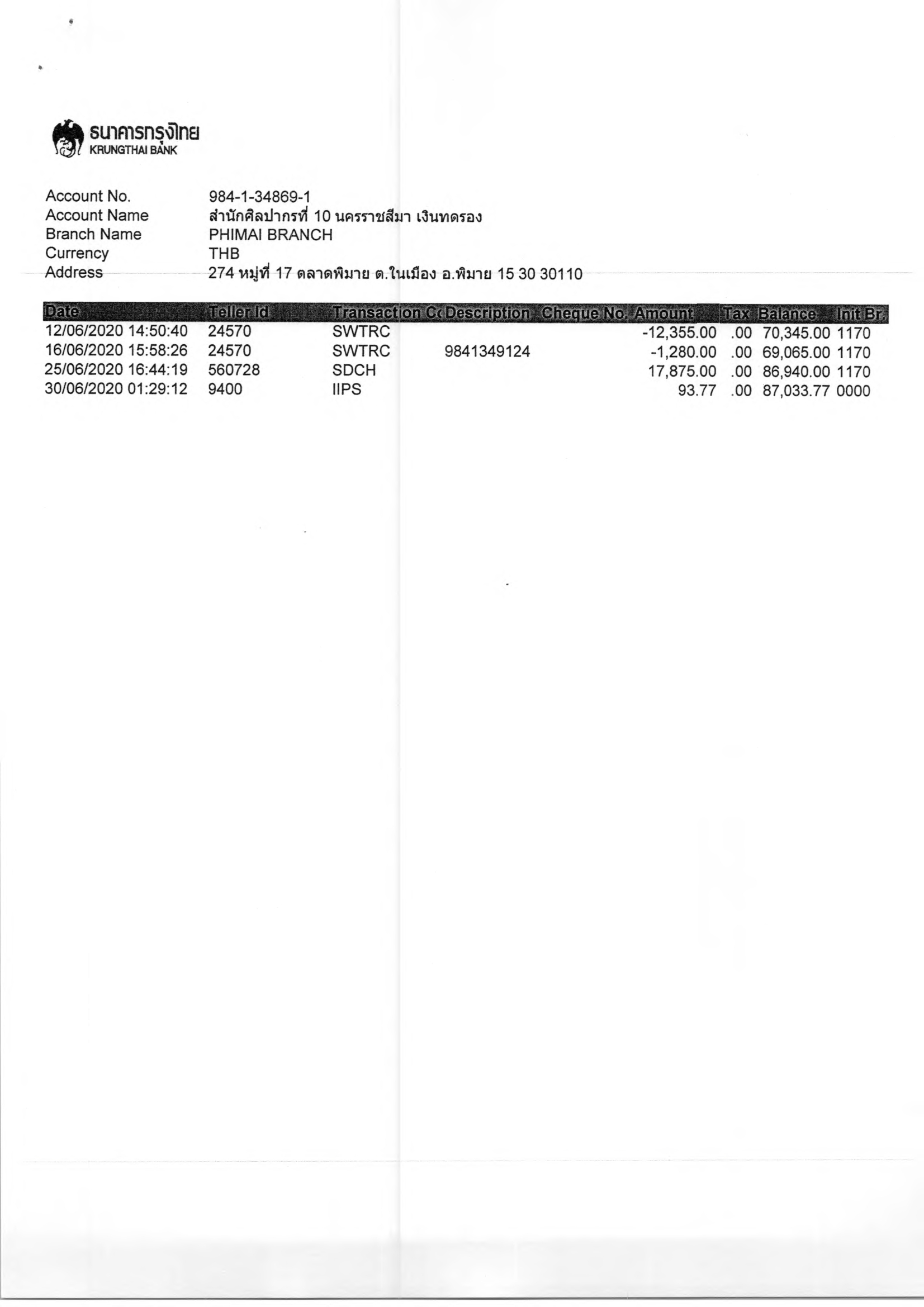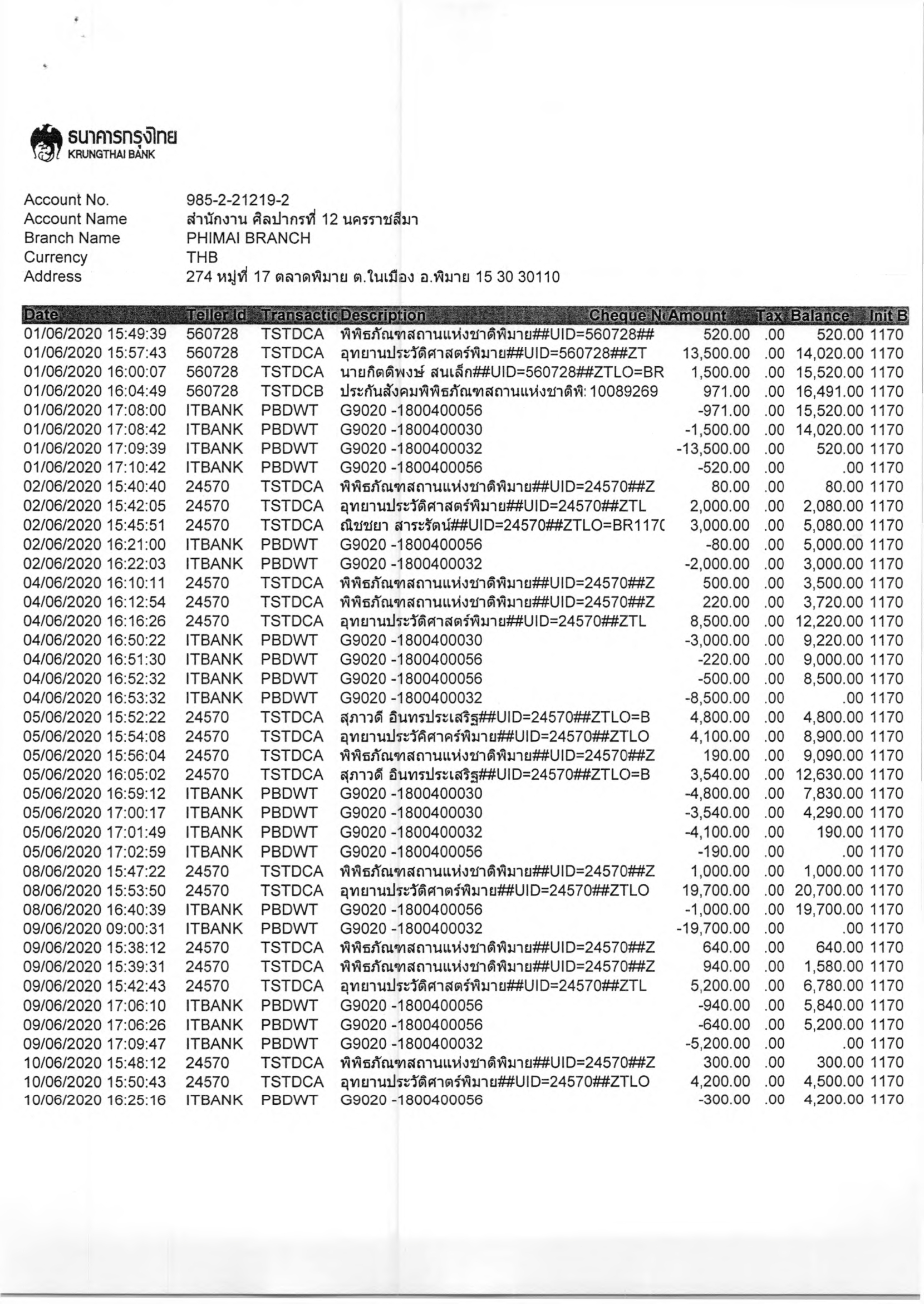 รายงานบัญชีงบทดลองและเอกสารประกอบงบทดลอง สำนักศิลปากรที่ ๑๐ นครราชสีมา (เดือนมิถุนายน ๒๕๖๓)