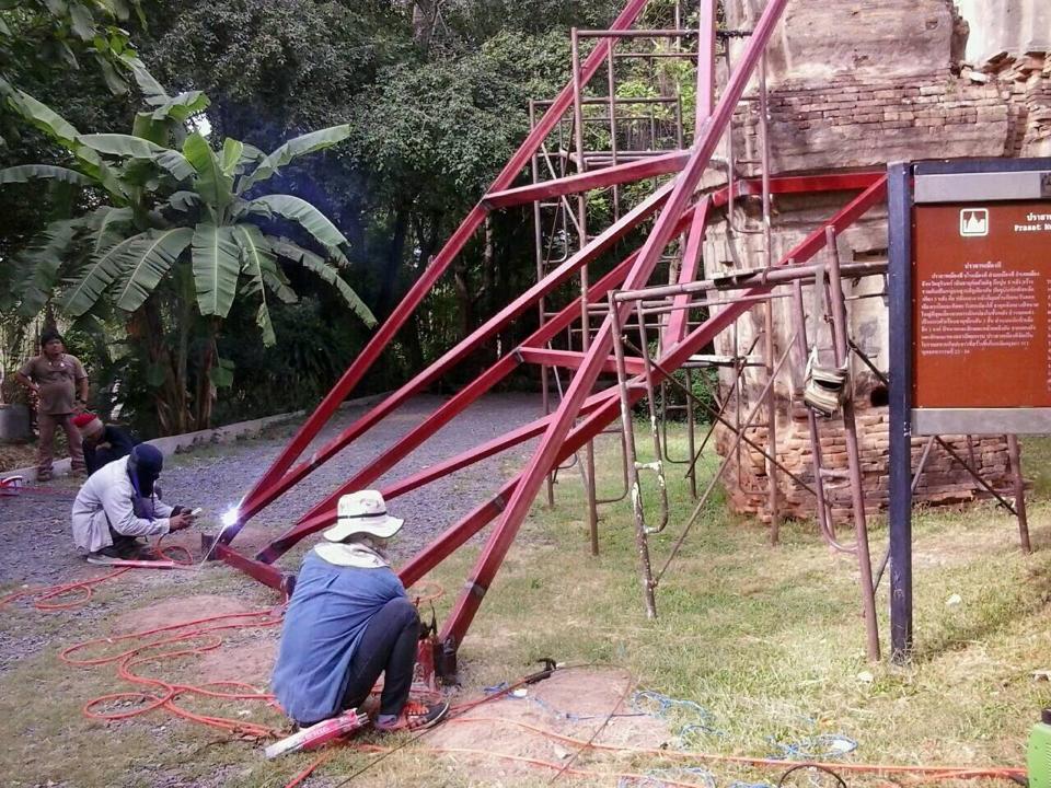 การปฏิบัติงานภาคสนามดำเนินการค้ำยันโบราณสถานปราสาทเมืองที