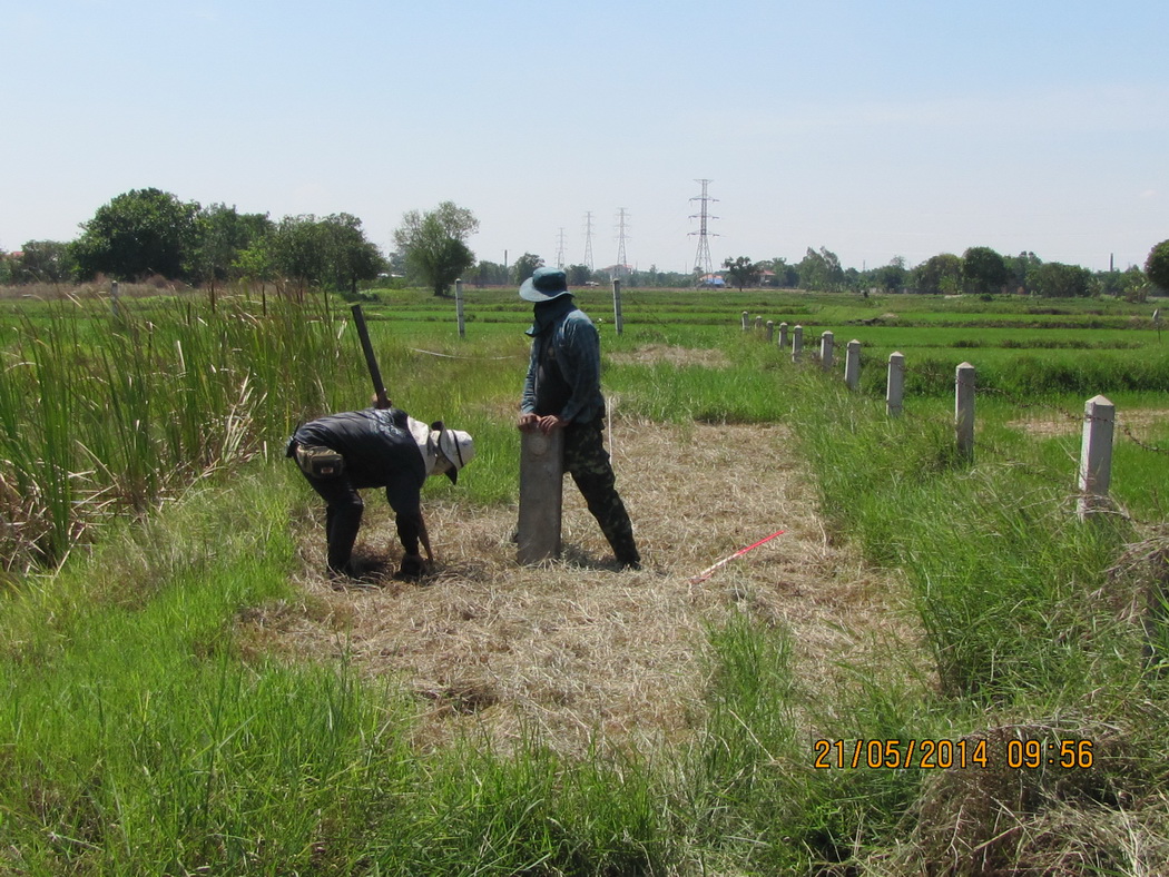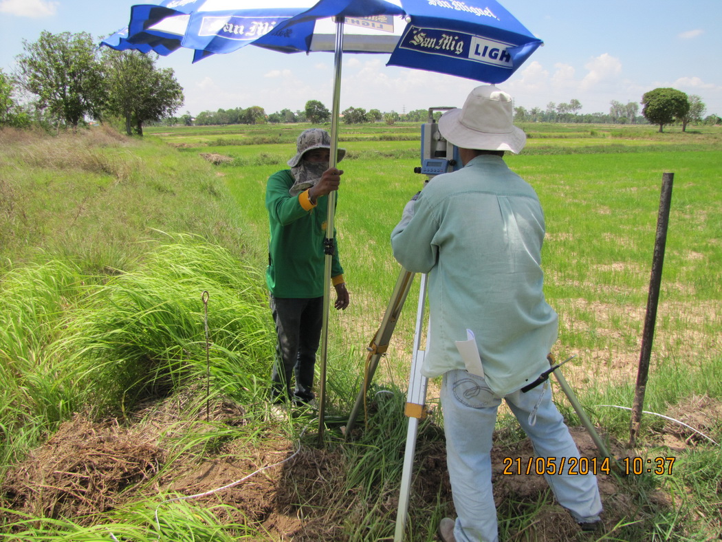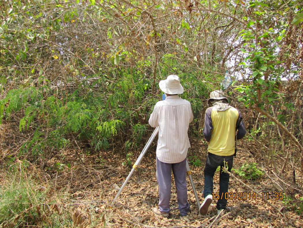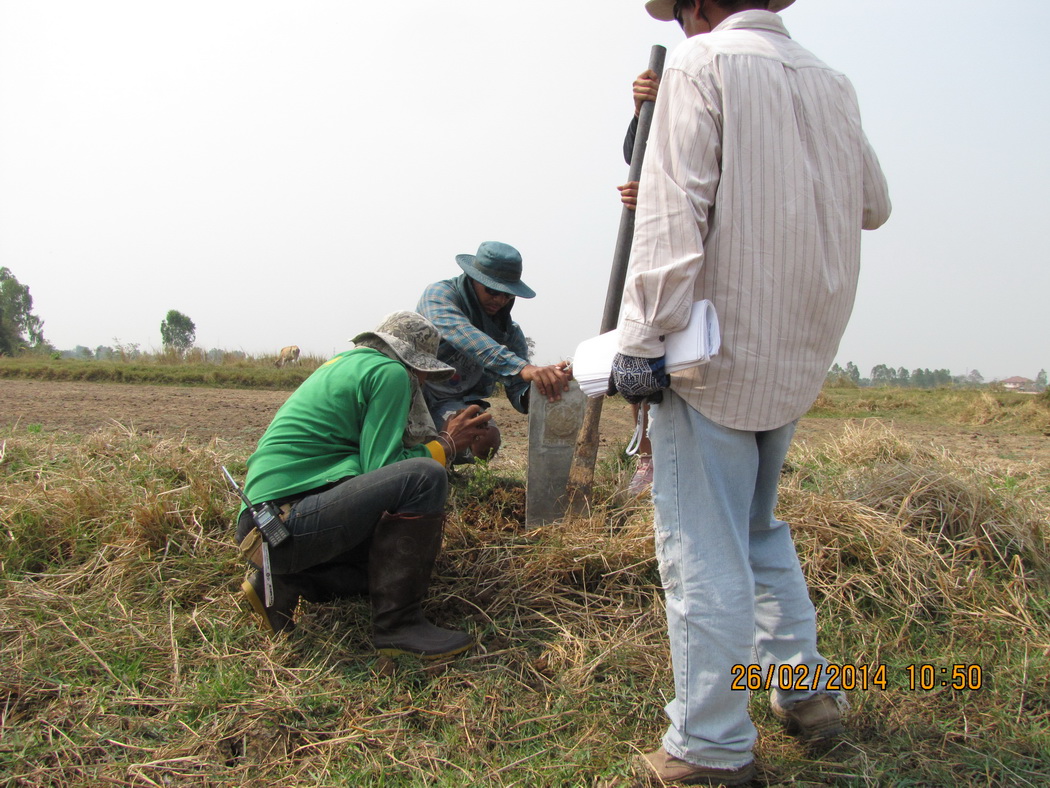 การปฏิบัติงานภาคสนามโครงการสำรวจรังวัดและปักหลักเขตที่ดินโบราณสถาน ของสำนักศิลปากรที่ ๑๒ นครราชสีมา ประจำปีงบประมาณ ๒๕๕๗ ณ เมืองโบราณบ้านแกใหญ่ ตำบลแกใหญ่ อำเภอเมืองสุรินทร์ จังหวัดสุรินทร์