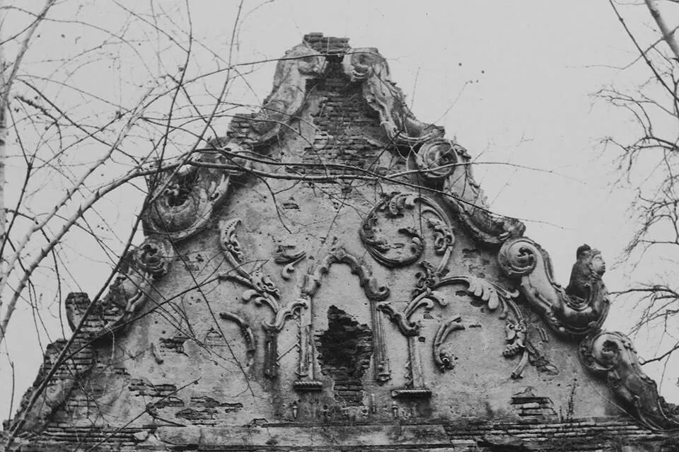 ภาพที่ ๓ หน้าบันวัดเตว็ด ภาพถ่ายเก่าราวปี พ.ศ. ๒๕๐๙