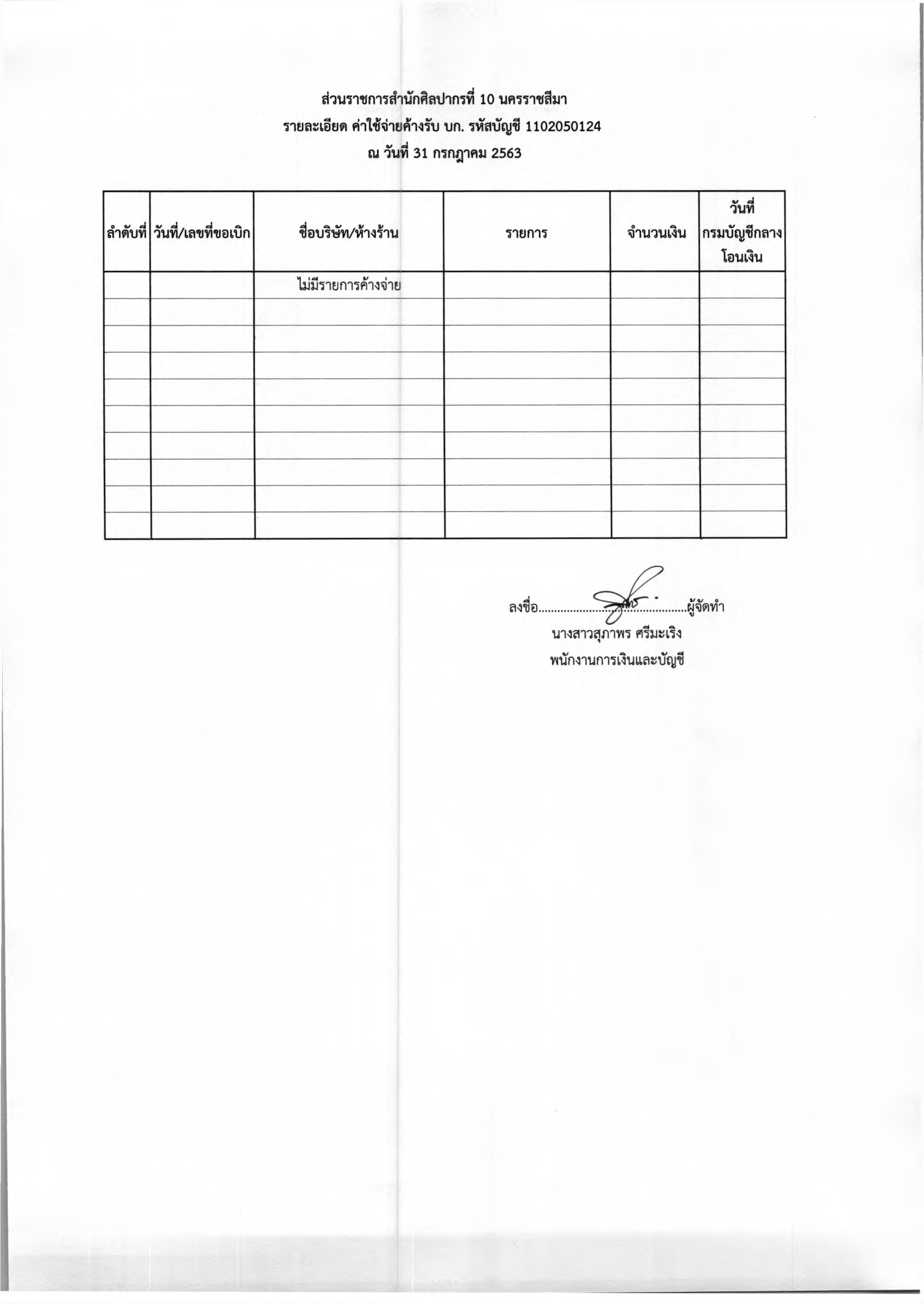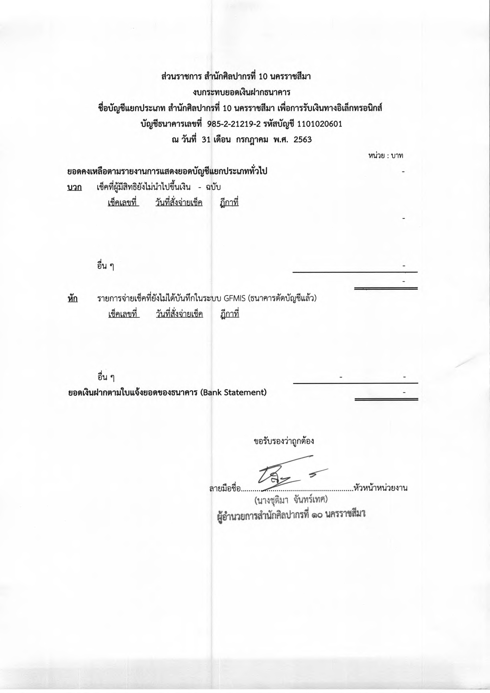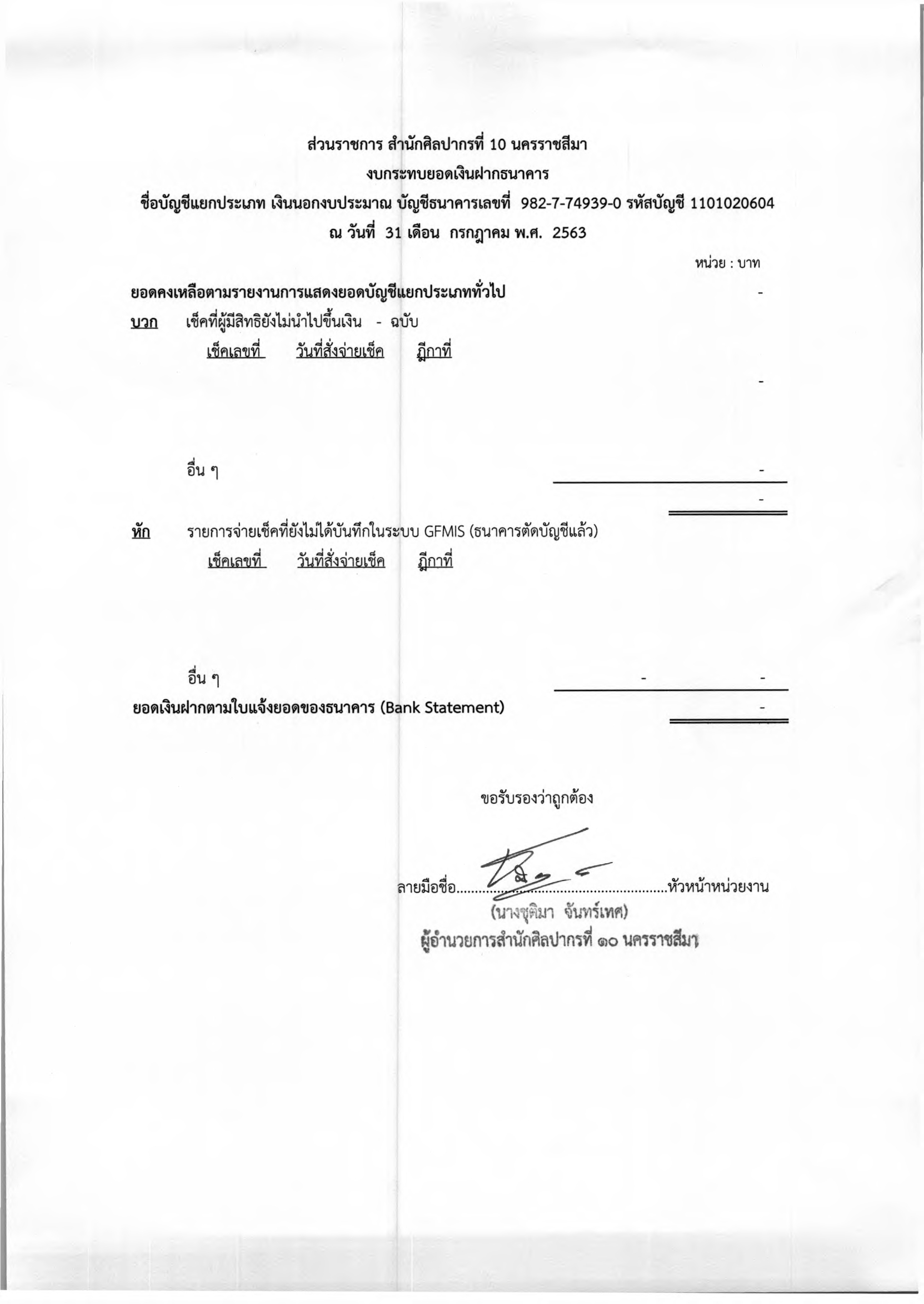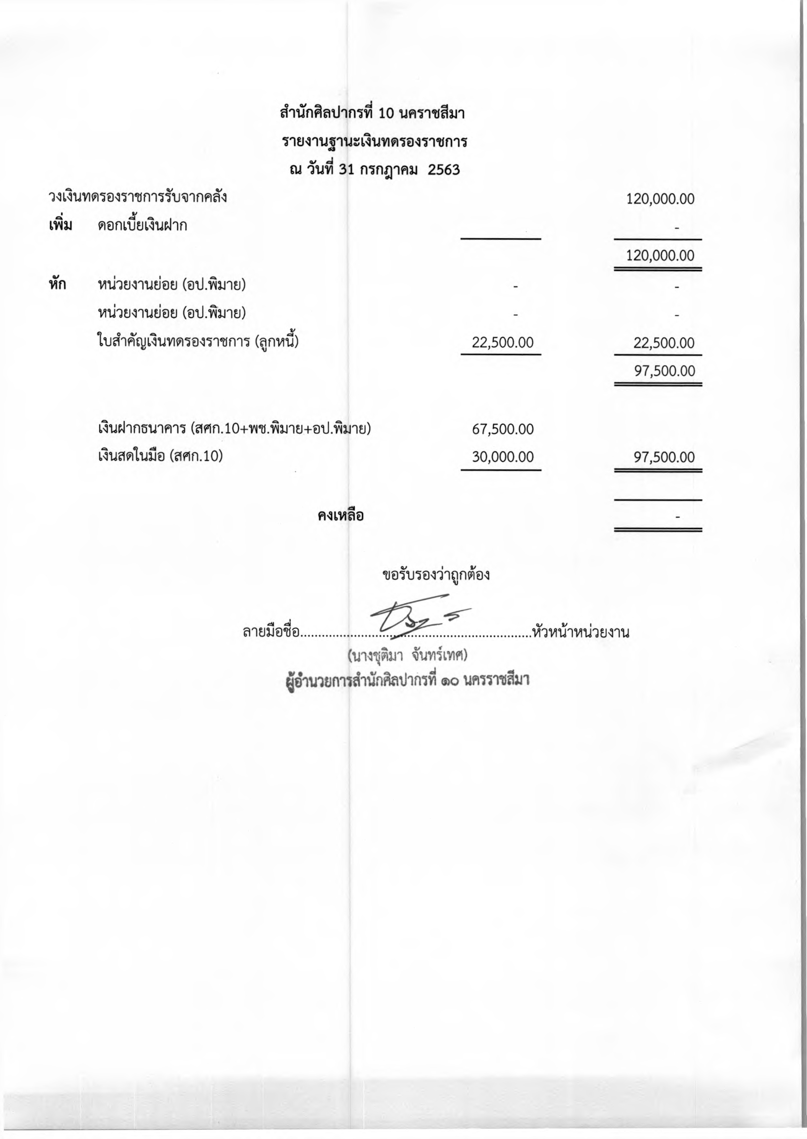 รายงานบัญชีงบทดลองและเอกสารประกอบงบทดลอง สำนักศิลปากรที่ ๑๐ นครราชสีมา (เดือนกรกฎาคม ๒๕๖๓)
