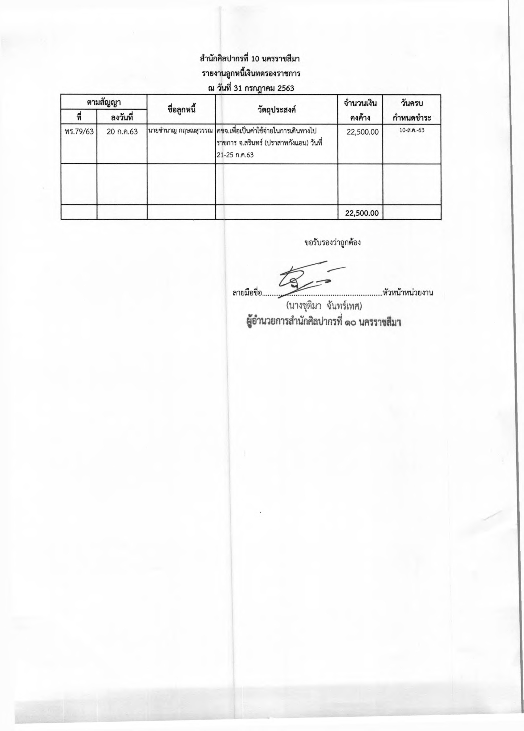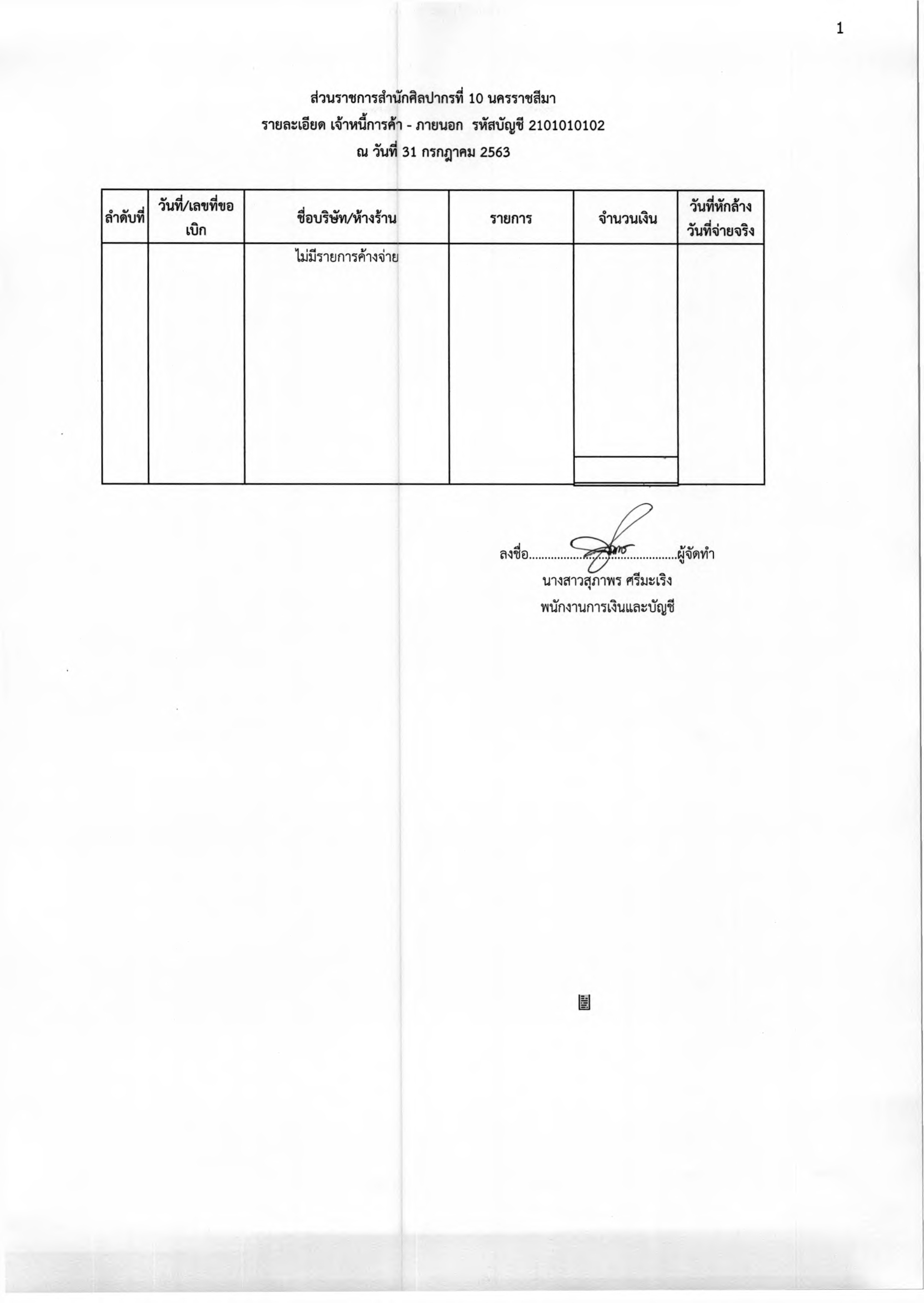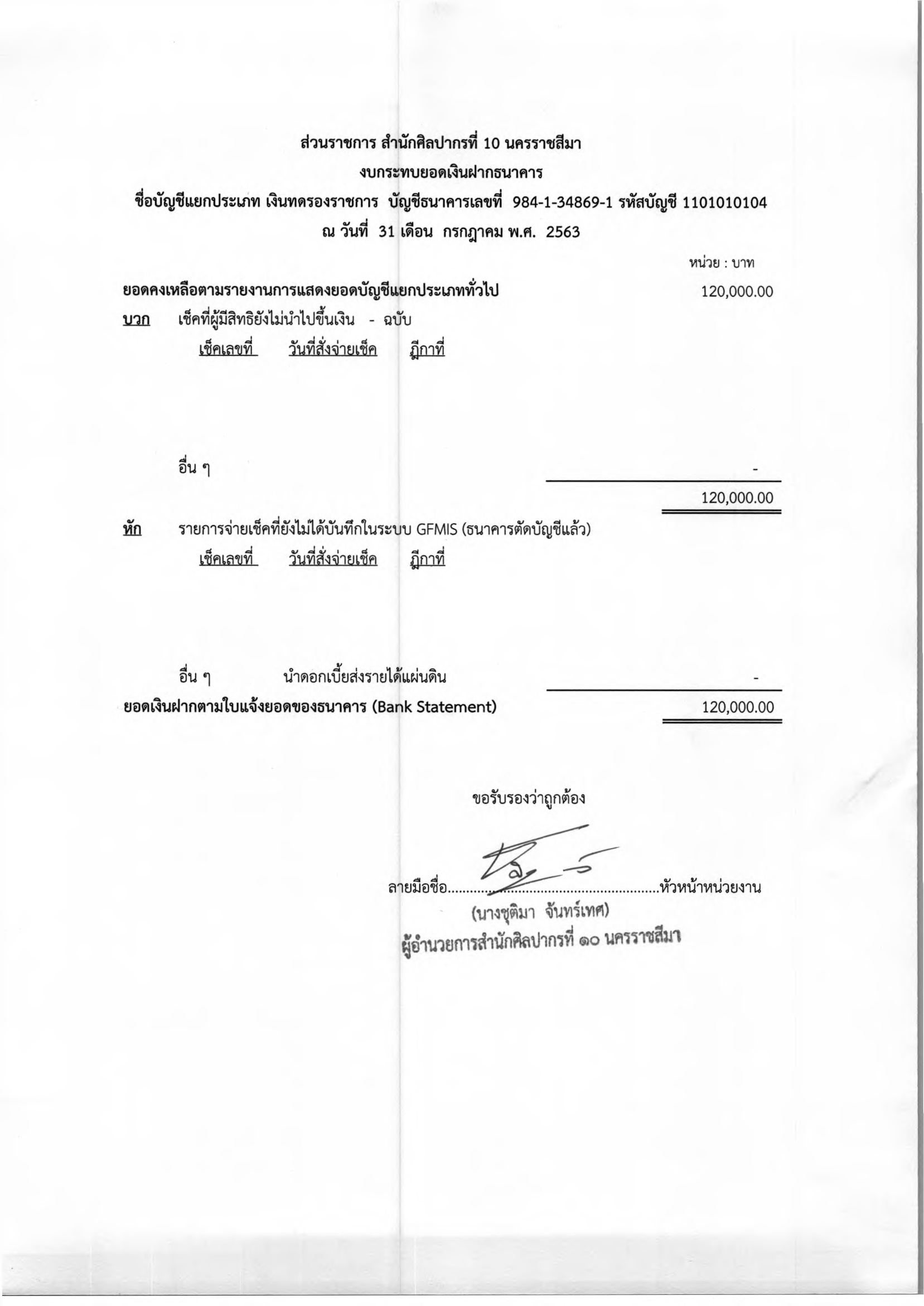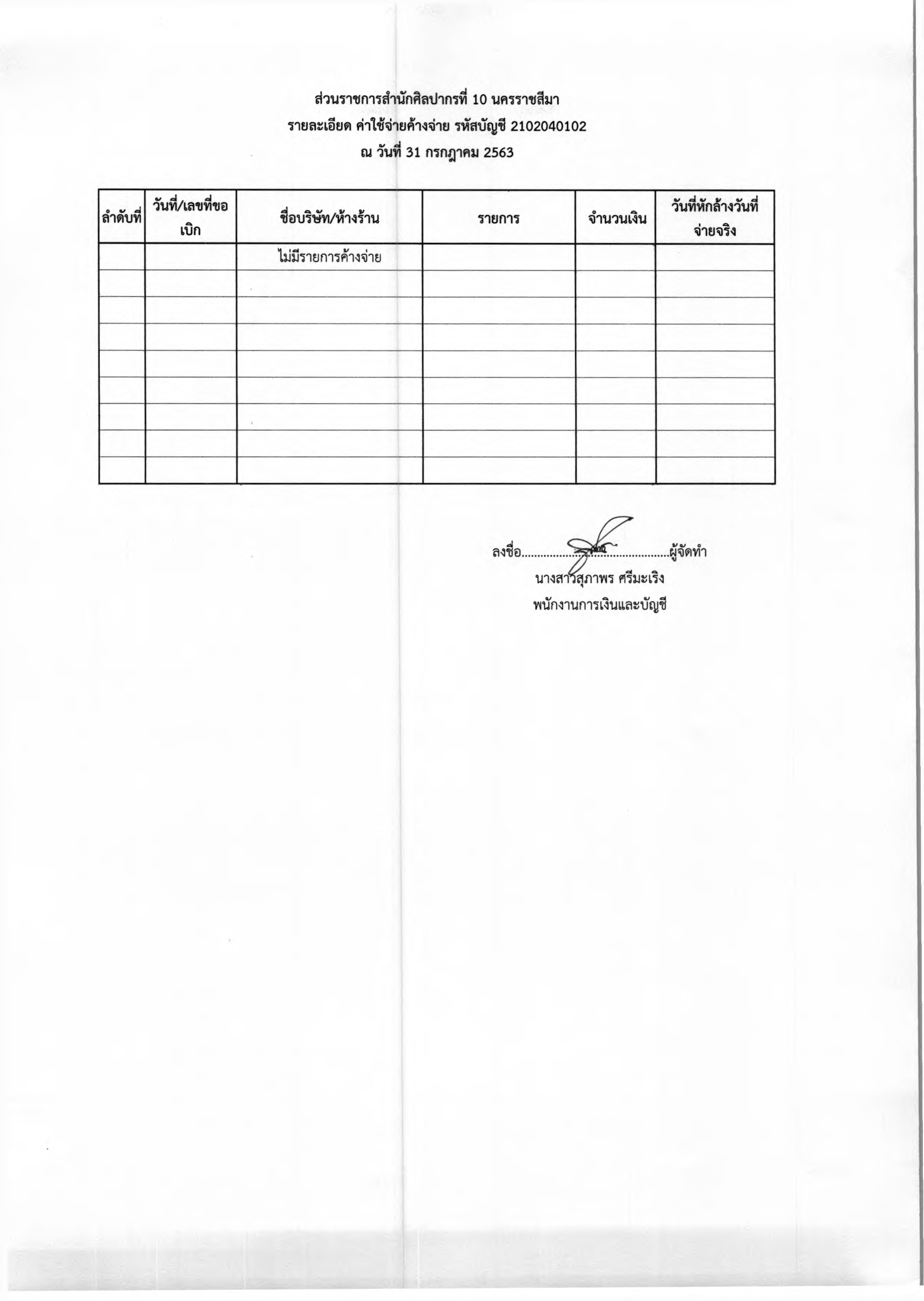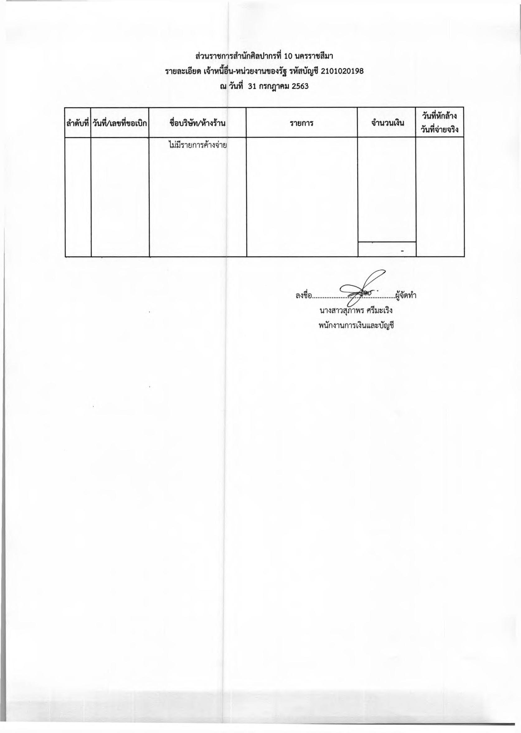 รายงานบัญชีงบทดลองและเอกสารประกอบงบทดลอง สำนักศิลปากรที่ ๑๐ นครราชสีมา (เดือนกรกฎาคม ๒๕๖๓)