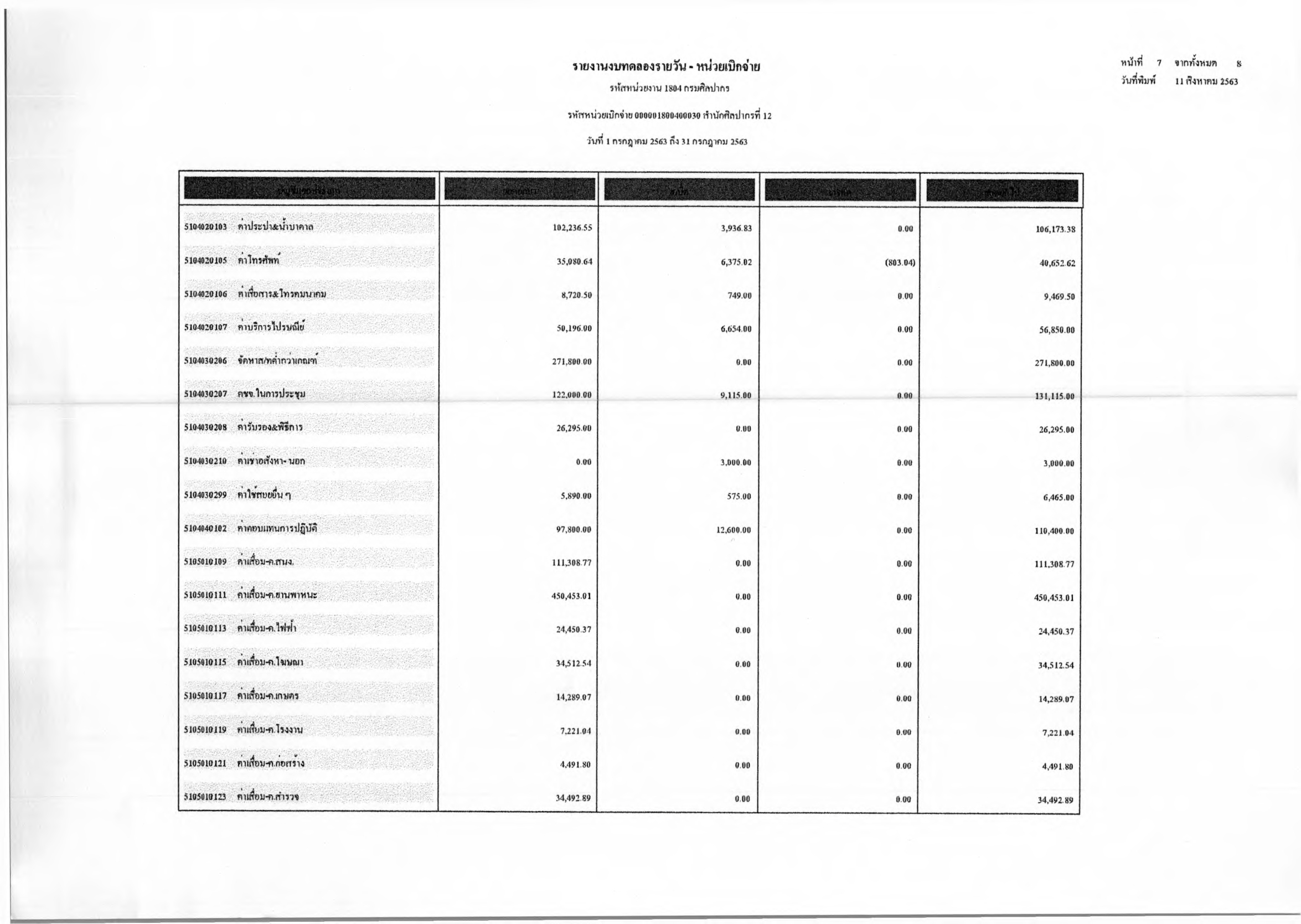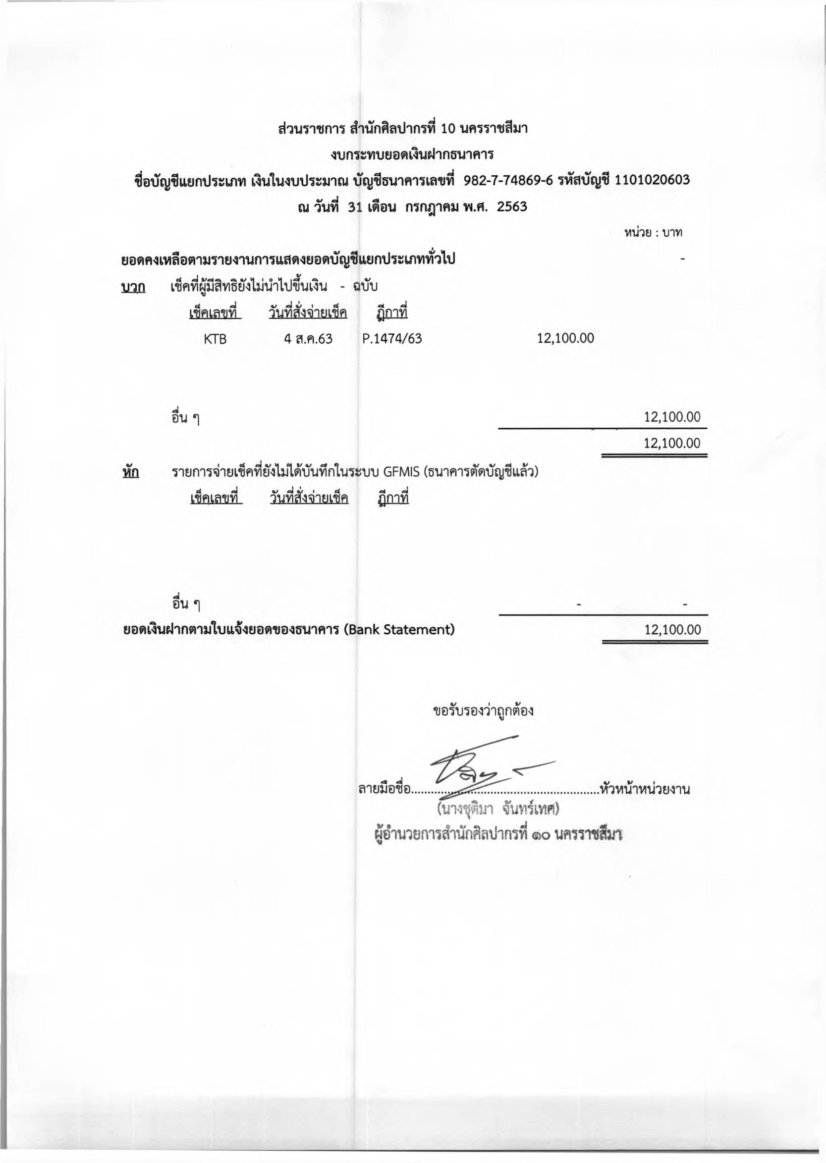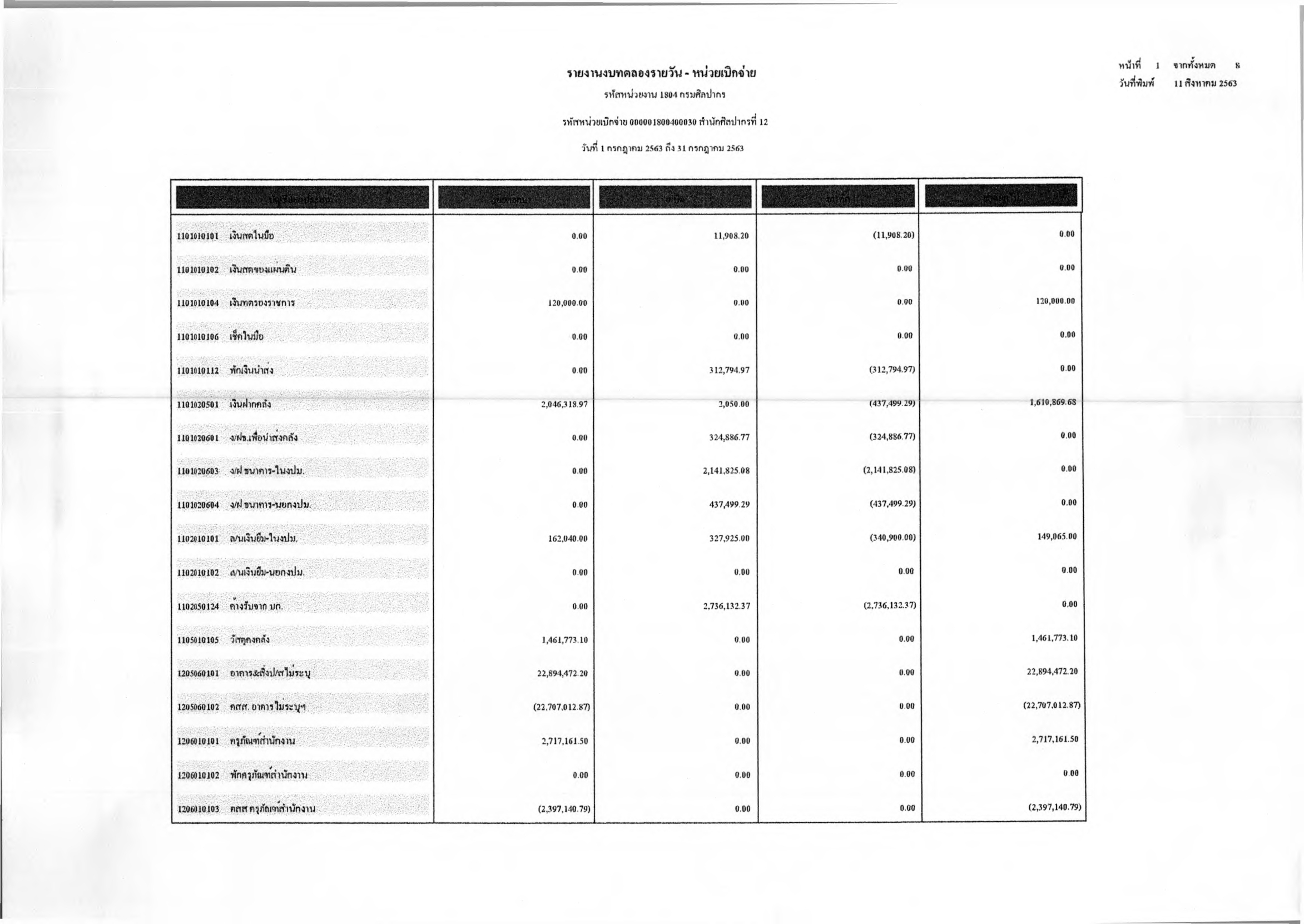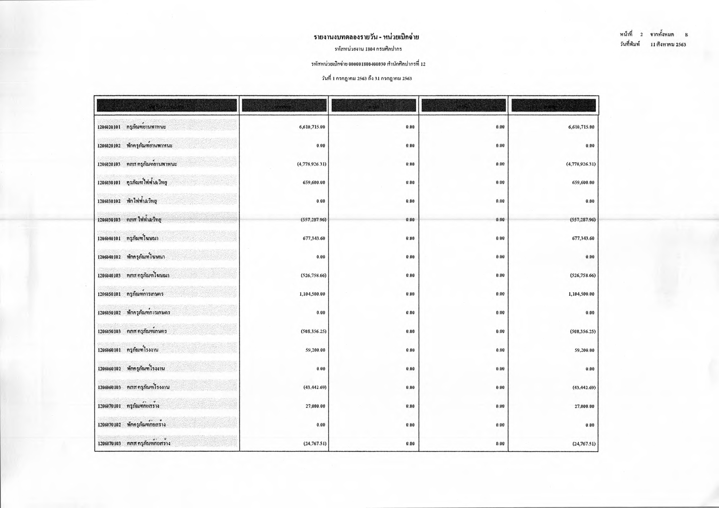 รายงานบัญชีงบทดลองและเอกสารประกอบงบทดลอง สำนักศิลปากรที่ ๑๐ นครราชสีมา (เดือนกรกฎาคม ๒๕๖๓)