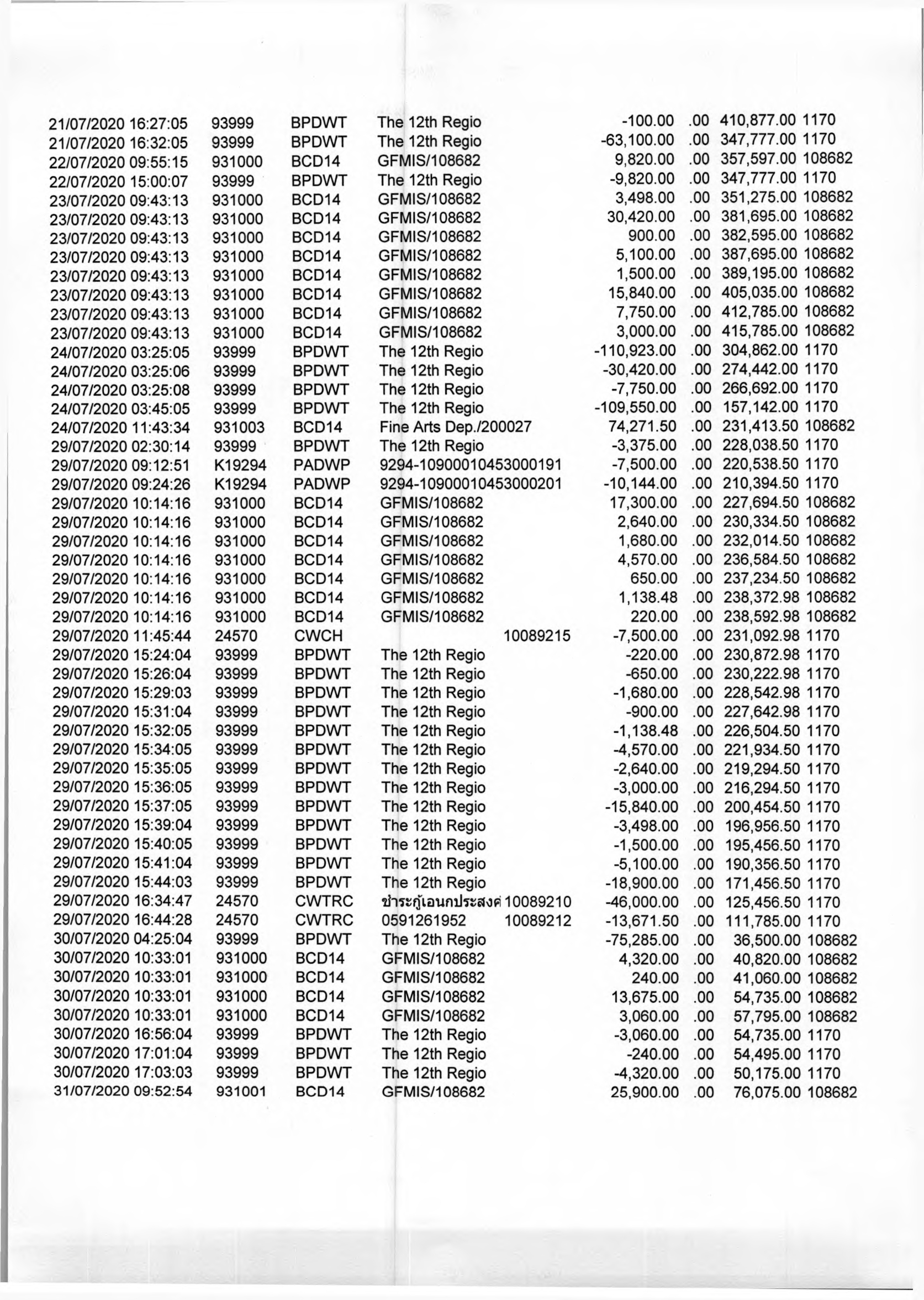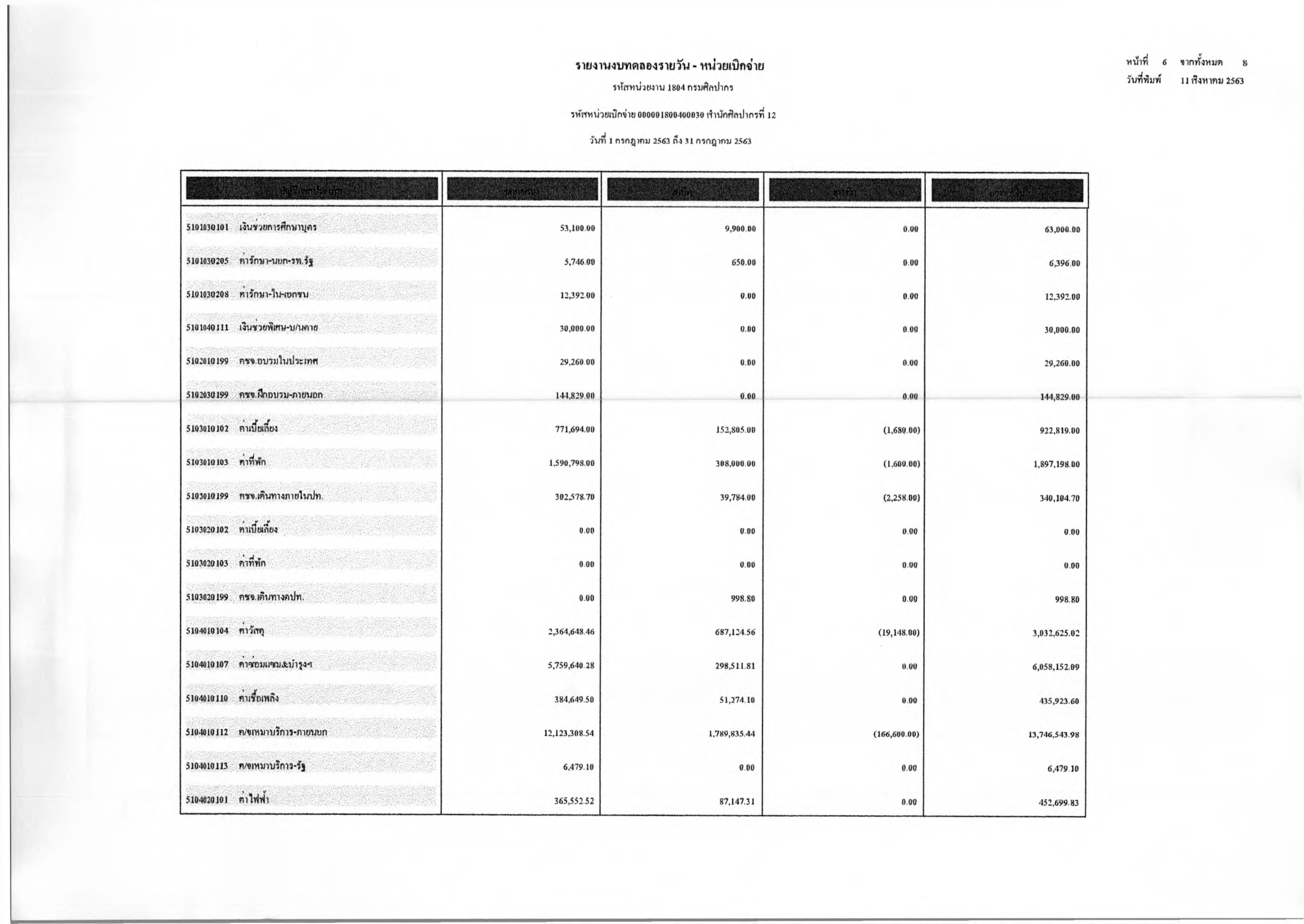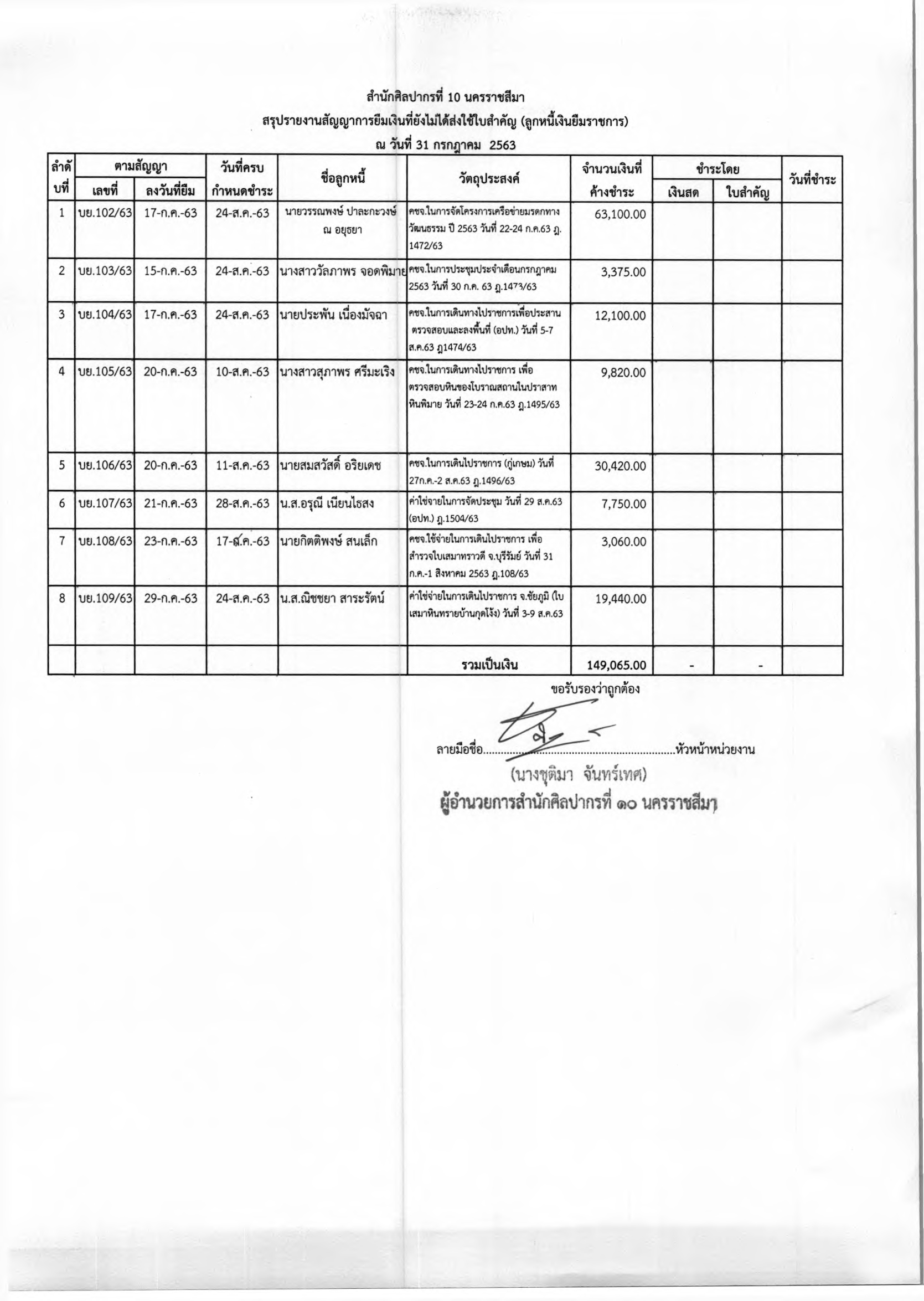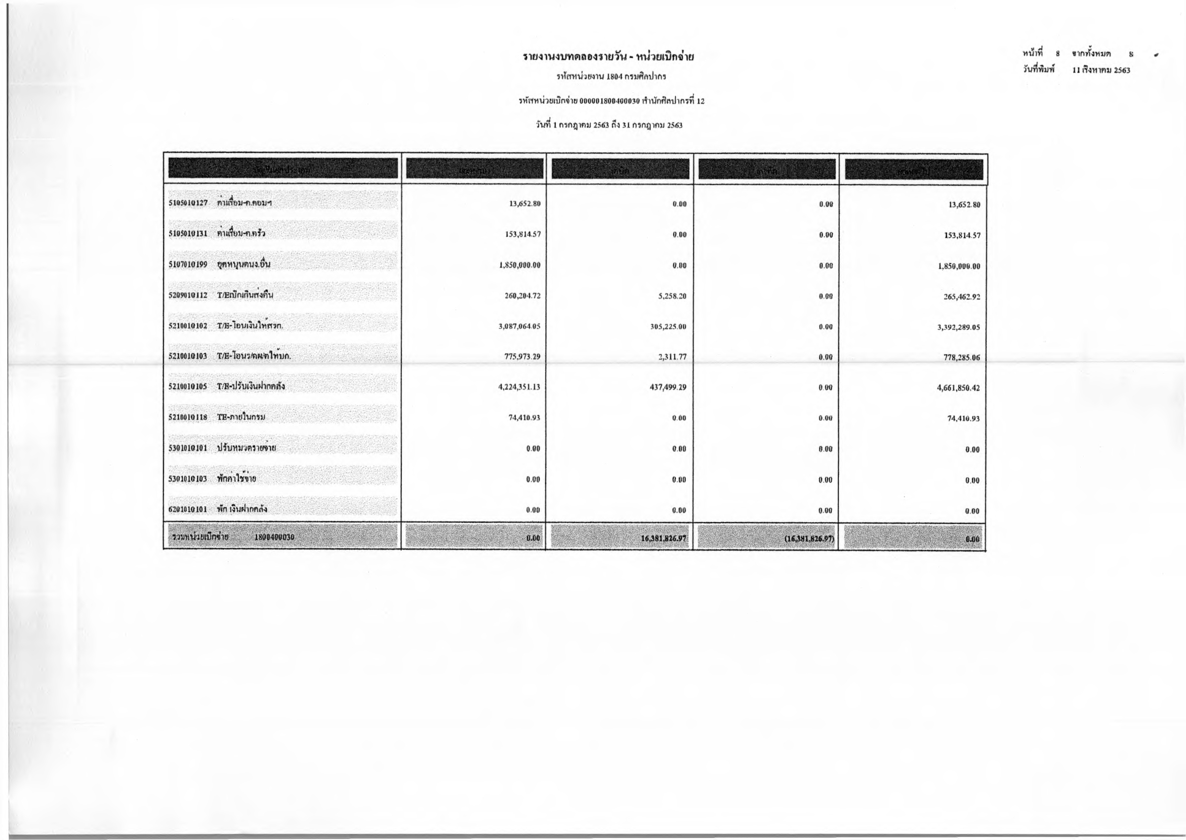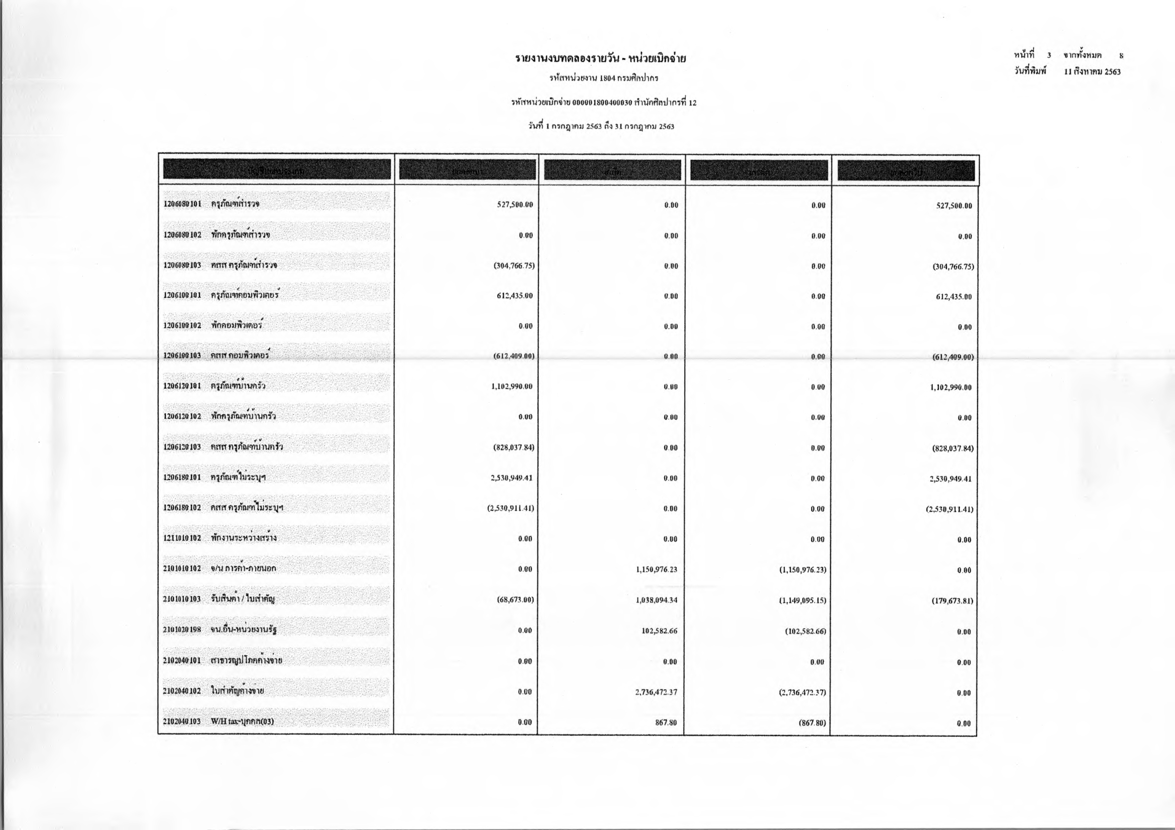 รายงานบัญชีงบทดลองและเอกสารประกอบงบทดลอง สำนักศิลปากรที่ ๑๐ นครราชสีมา (เดือนกรกฎาคม ๒๕๖๓)
