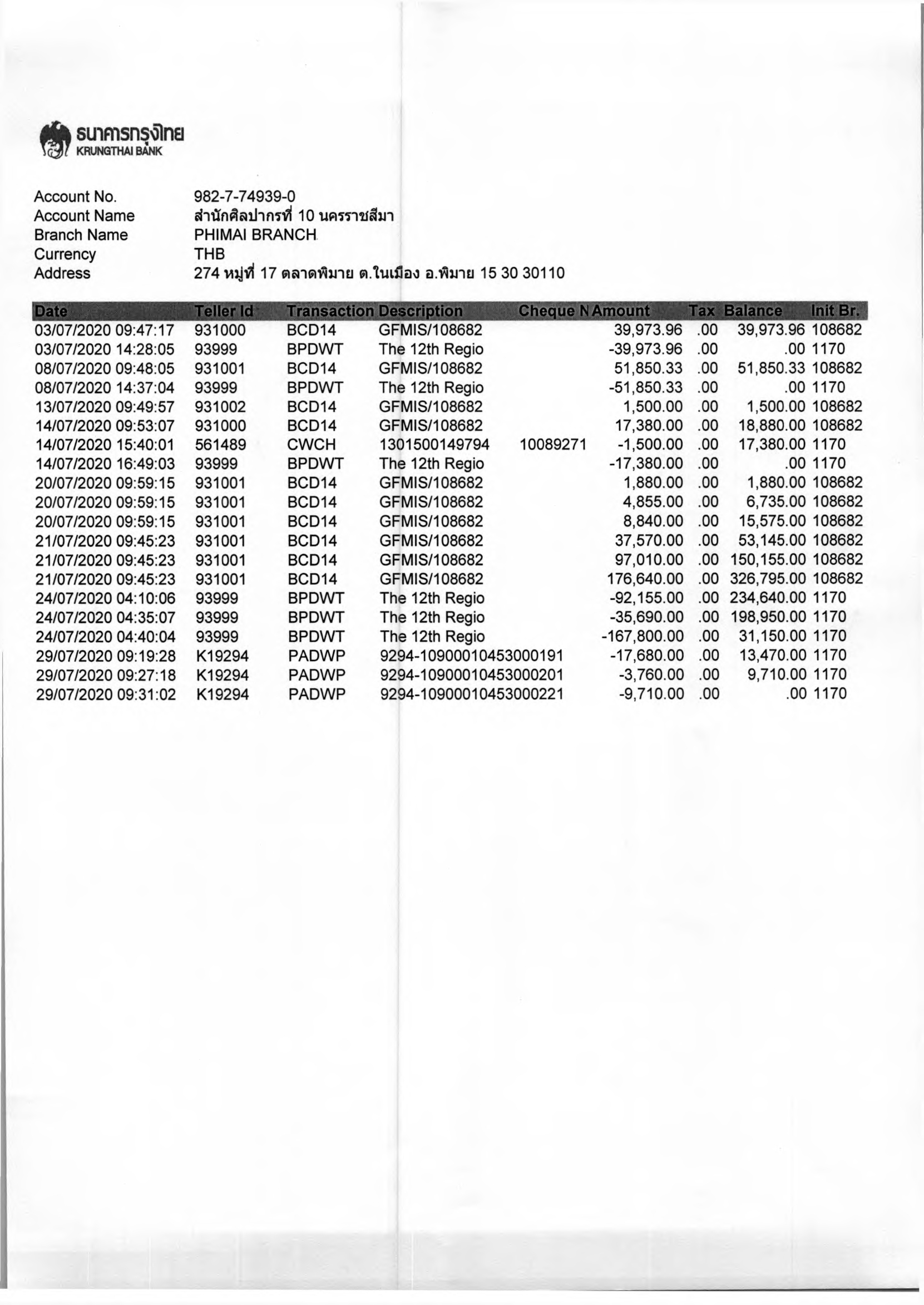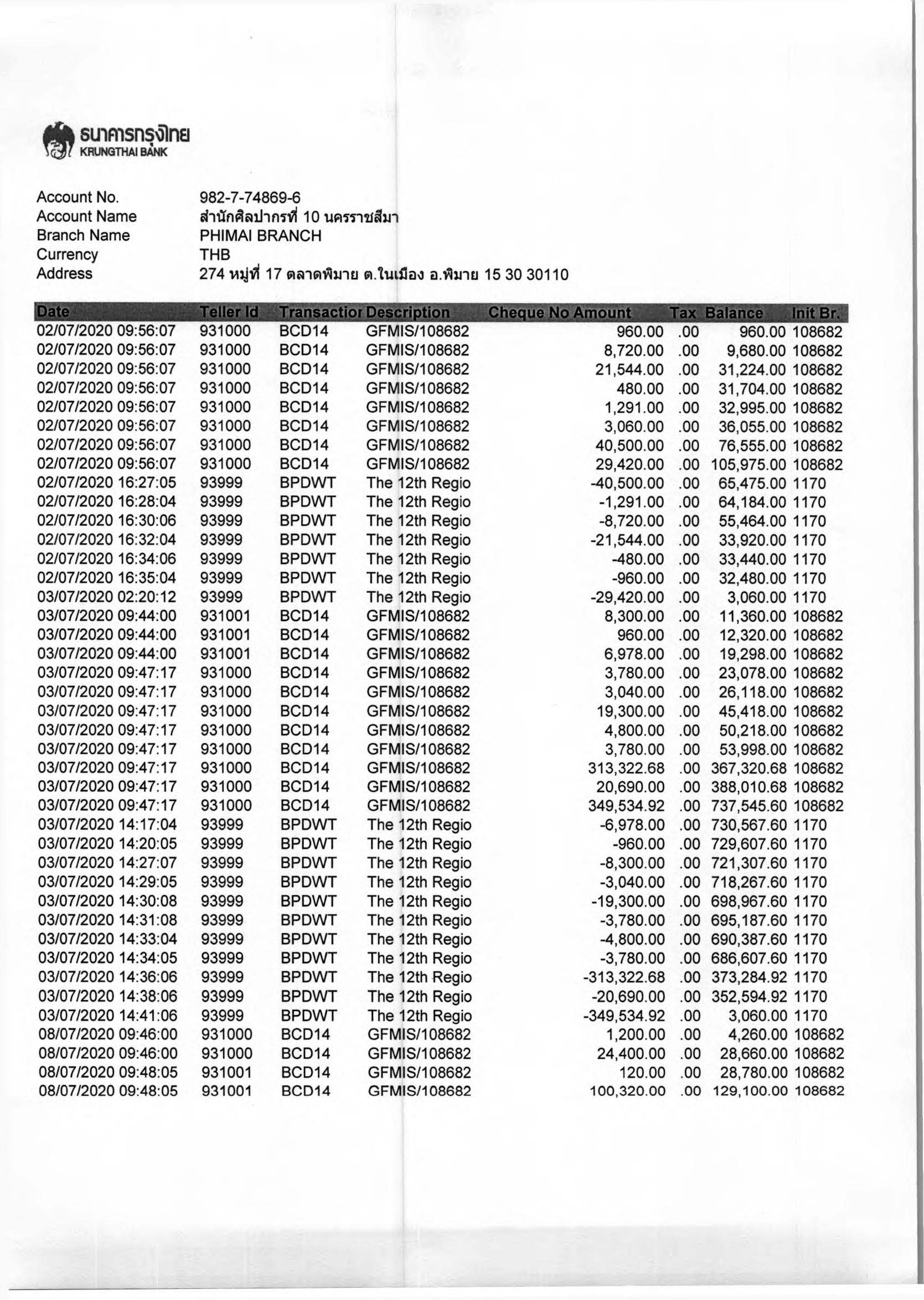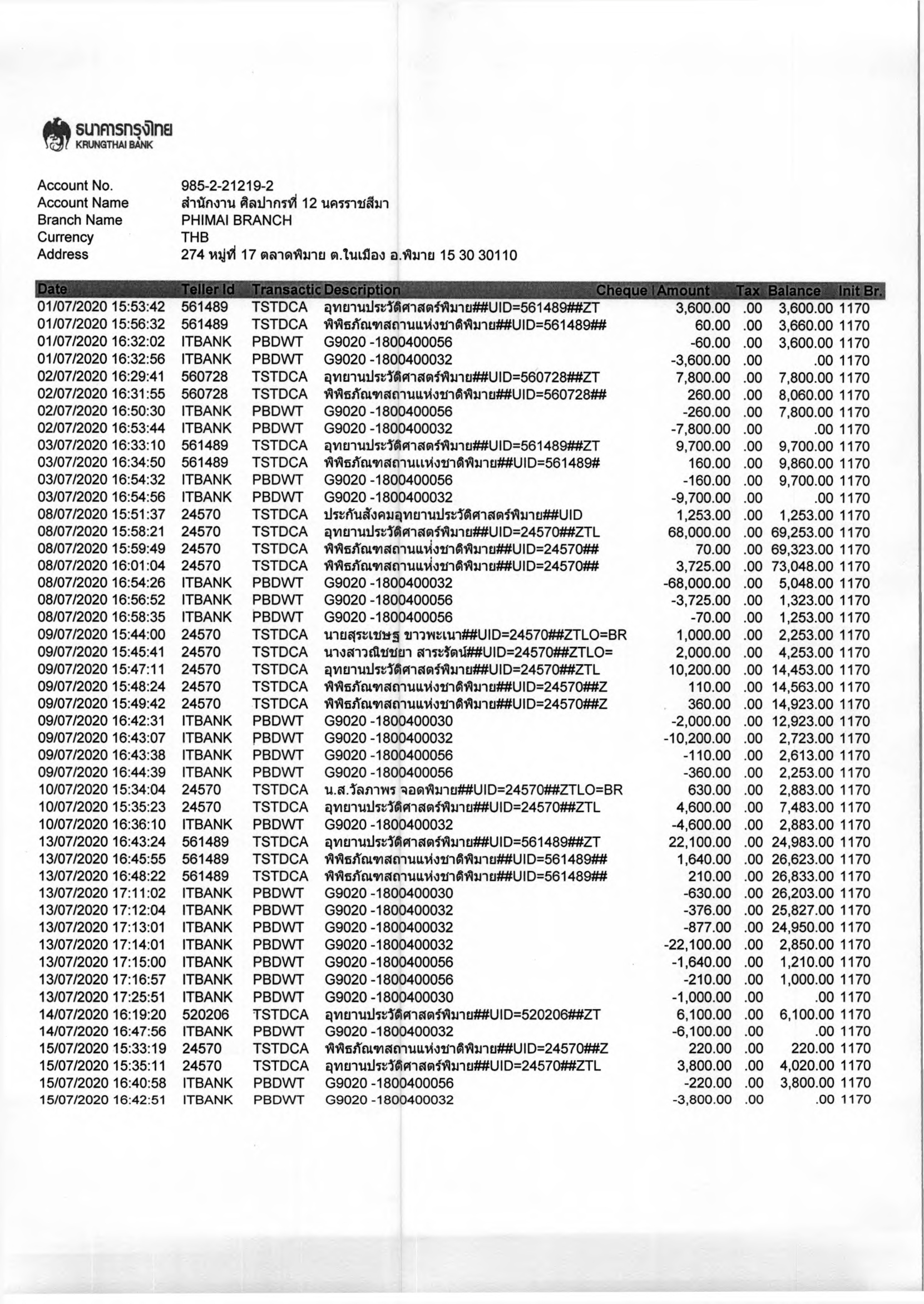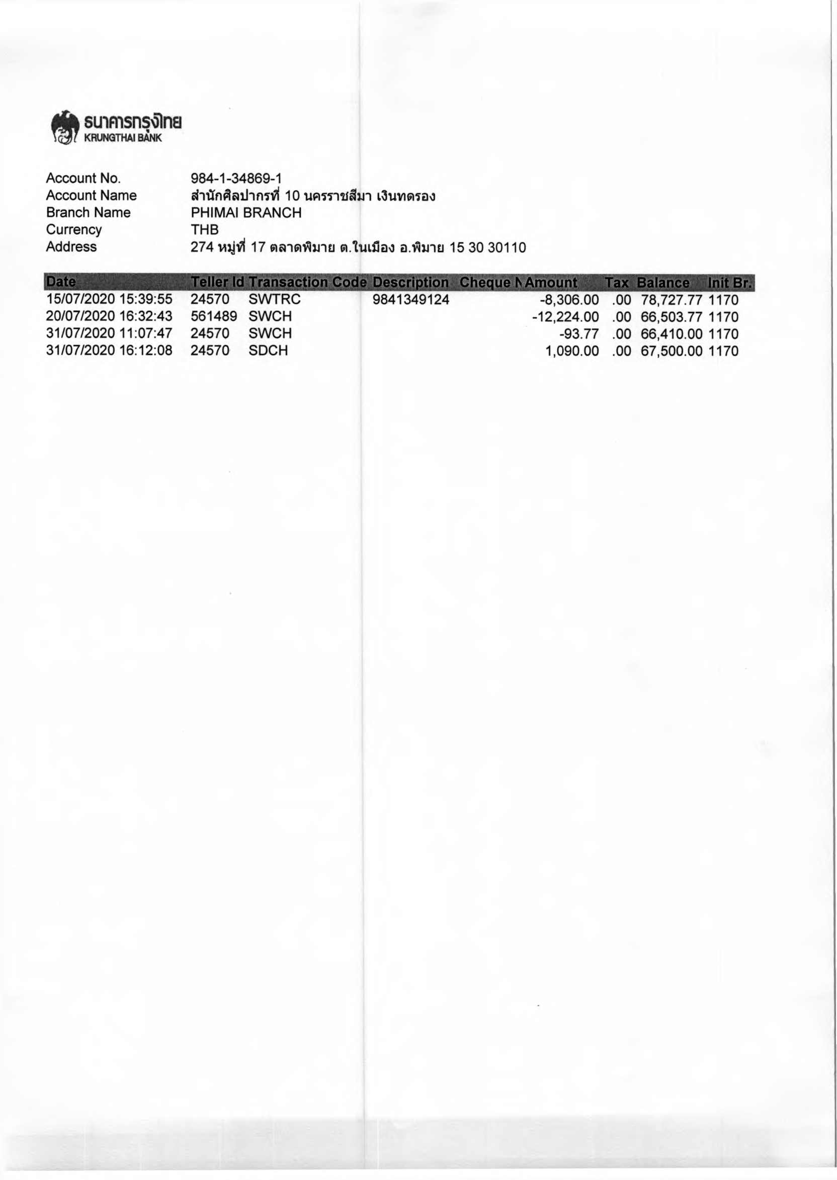 รายงานบัญชีงบทดลองและเอกสารประกอบงบทดลอง สำนักศิลปากรที่ ๑๐ นครราชสีมา (เดือนกรกฎาคม ๒๕๖๓)