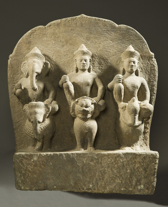 ภาพที่ ๔ The Hindu Gods Ganesha, Shiva, and Karttikeya on Their Mounts Cambodia, 10th century , Los Angeles County Museum of Art ที่มาภาพจาก Los Angeles County Museum of Art
