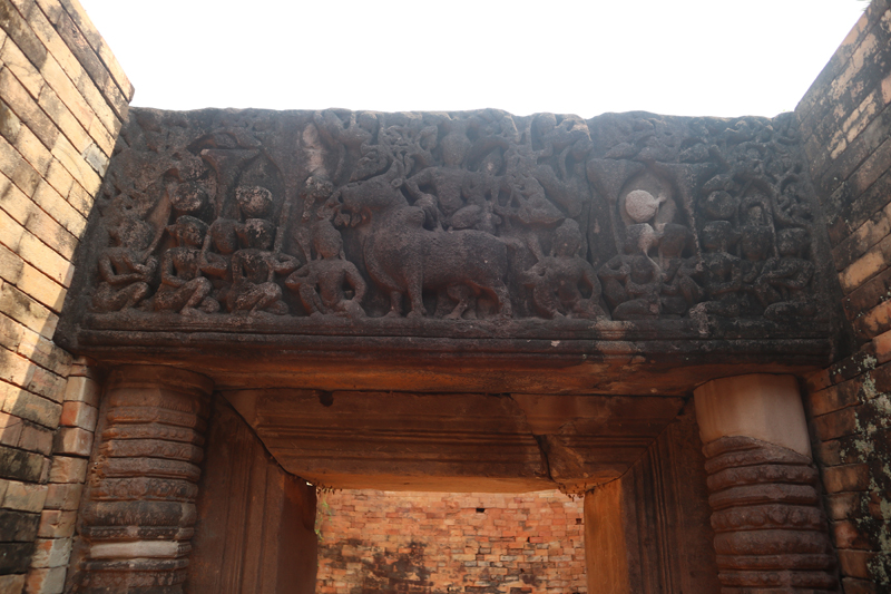 ภาพที่ ๗ ทับหลังอุมามเหศวร บรรณาลัยทิศใต้ ปราสาทสระกำแพงใหญ่ จังหวัดศรีสะเกษ