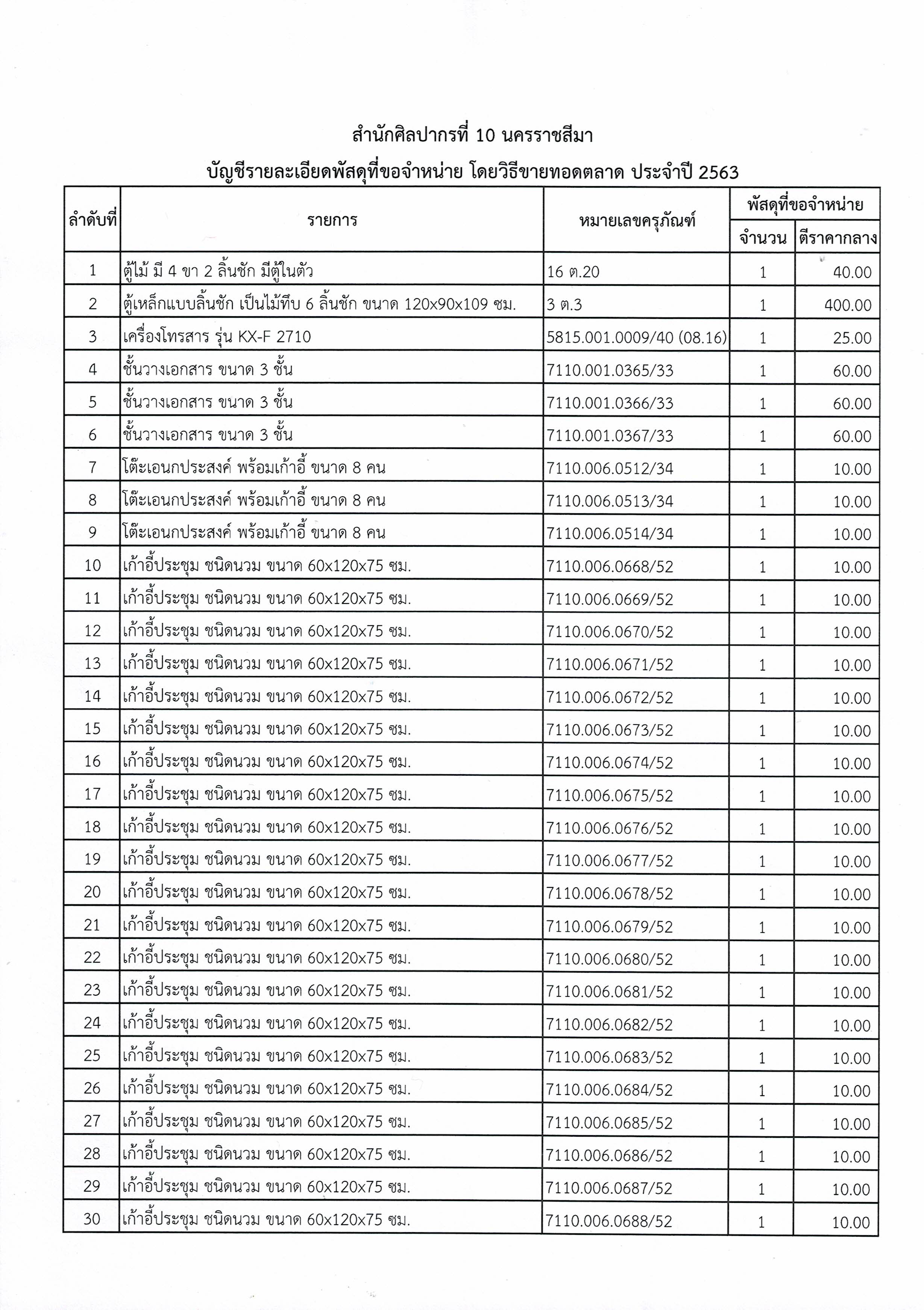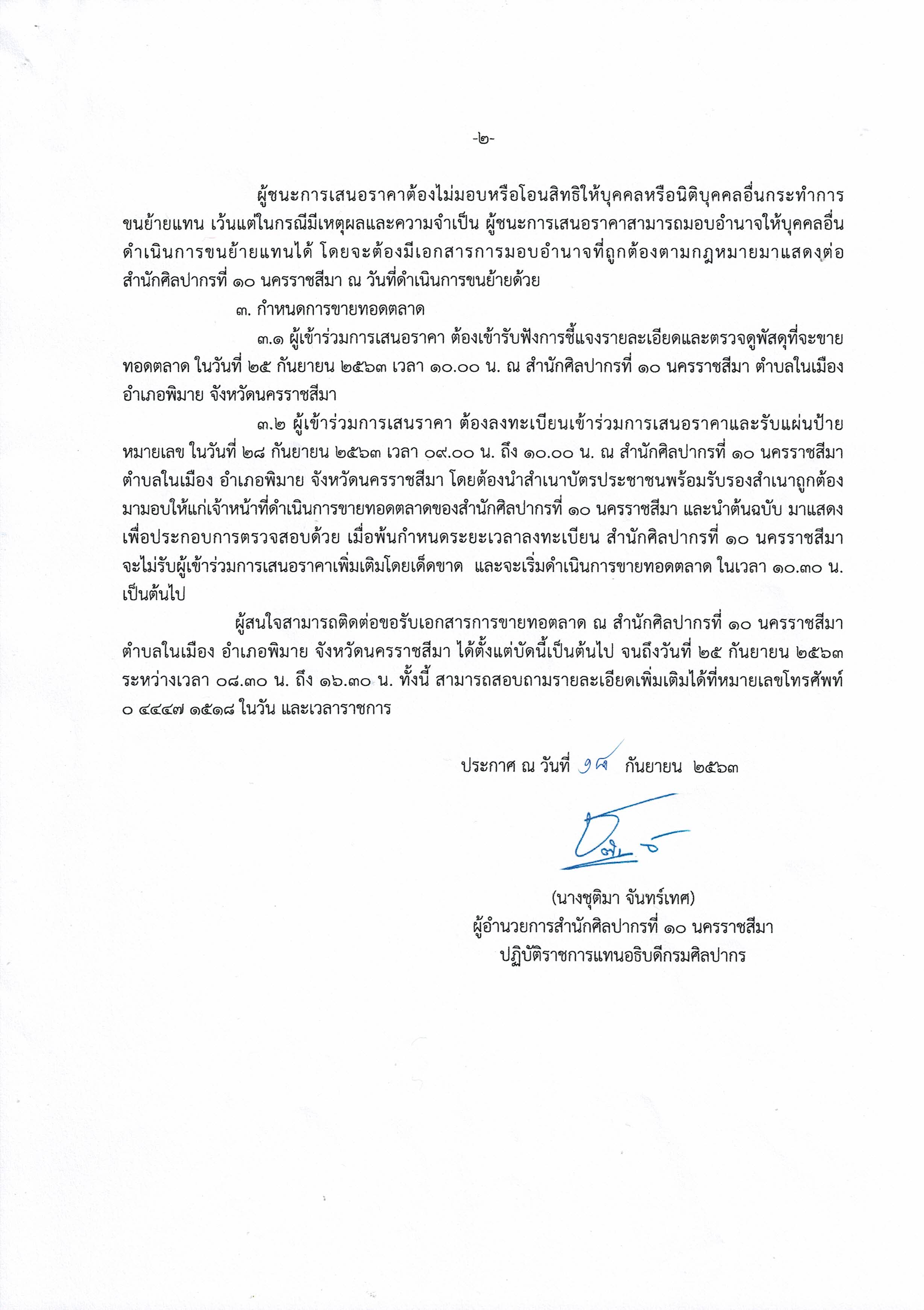 ประกาศสำนักศิลปากรที่ ๑๐ นครราชสีมา เรื่อง ขายทอดตลาดพัสดุ