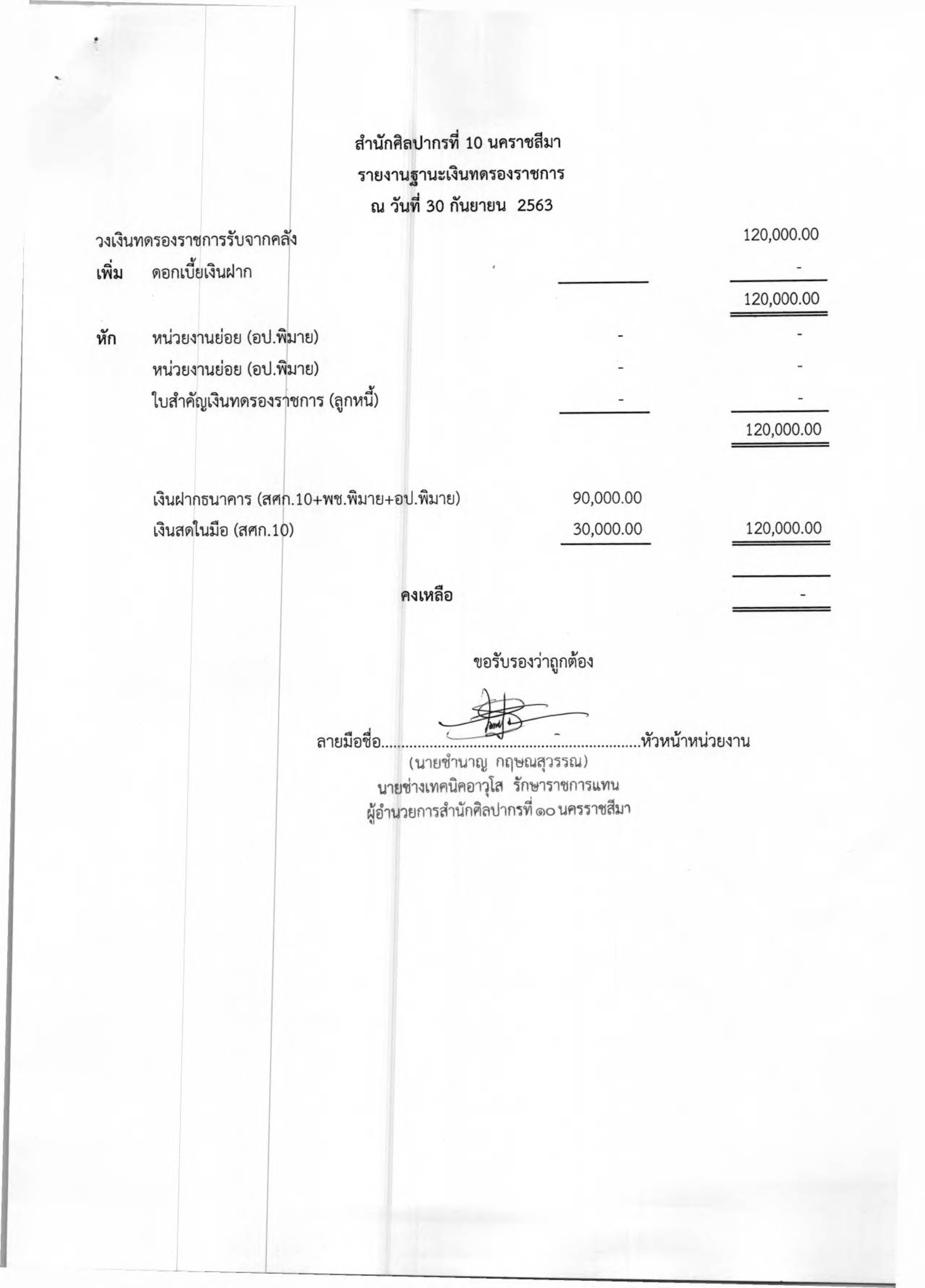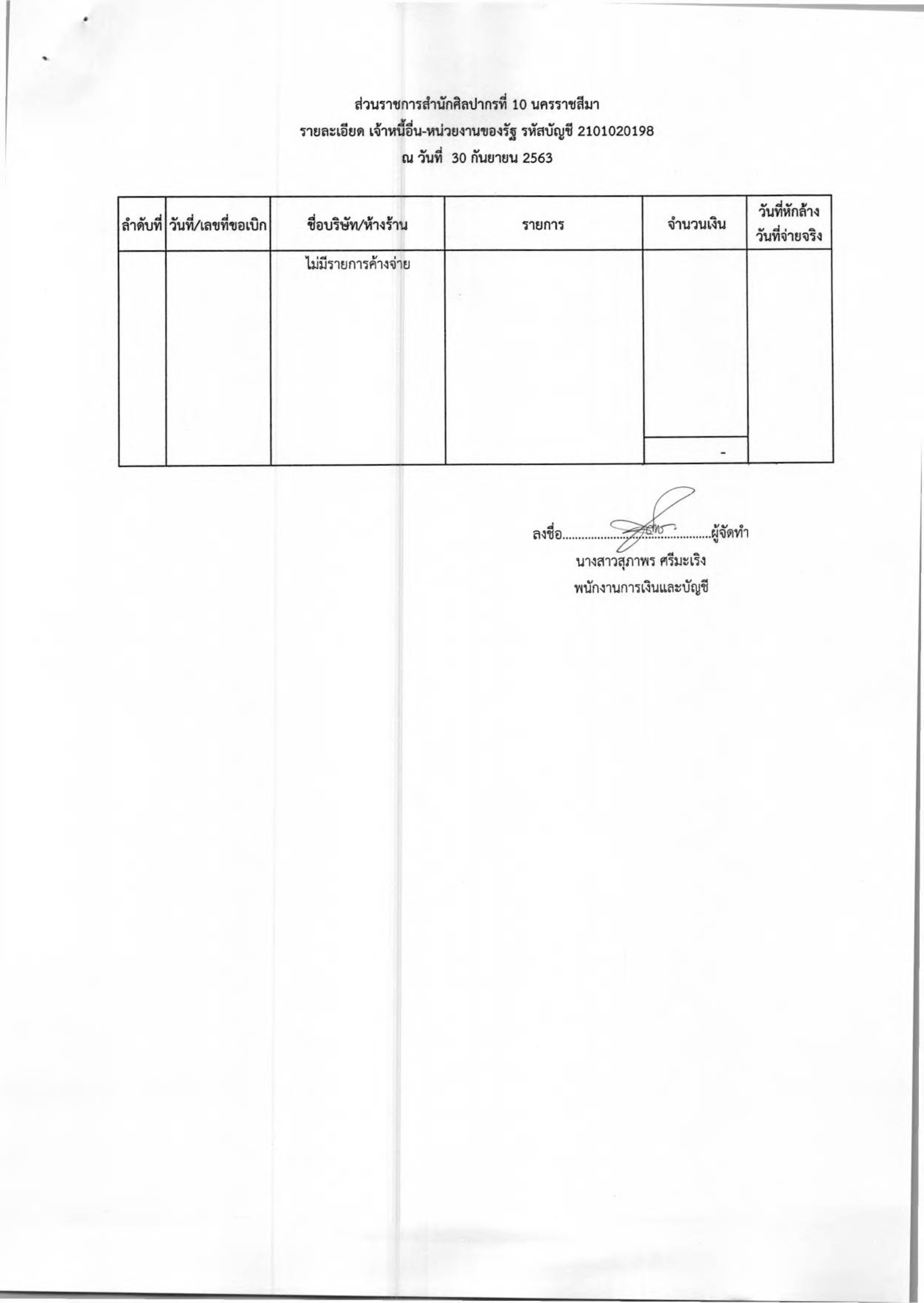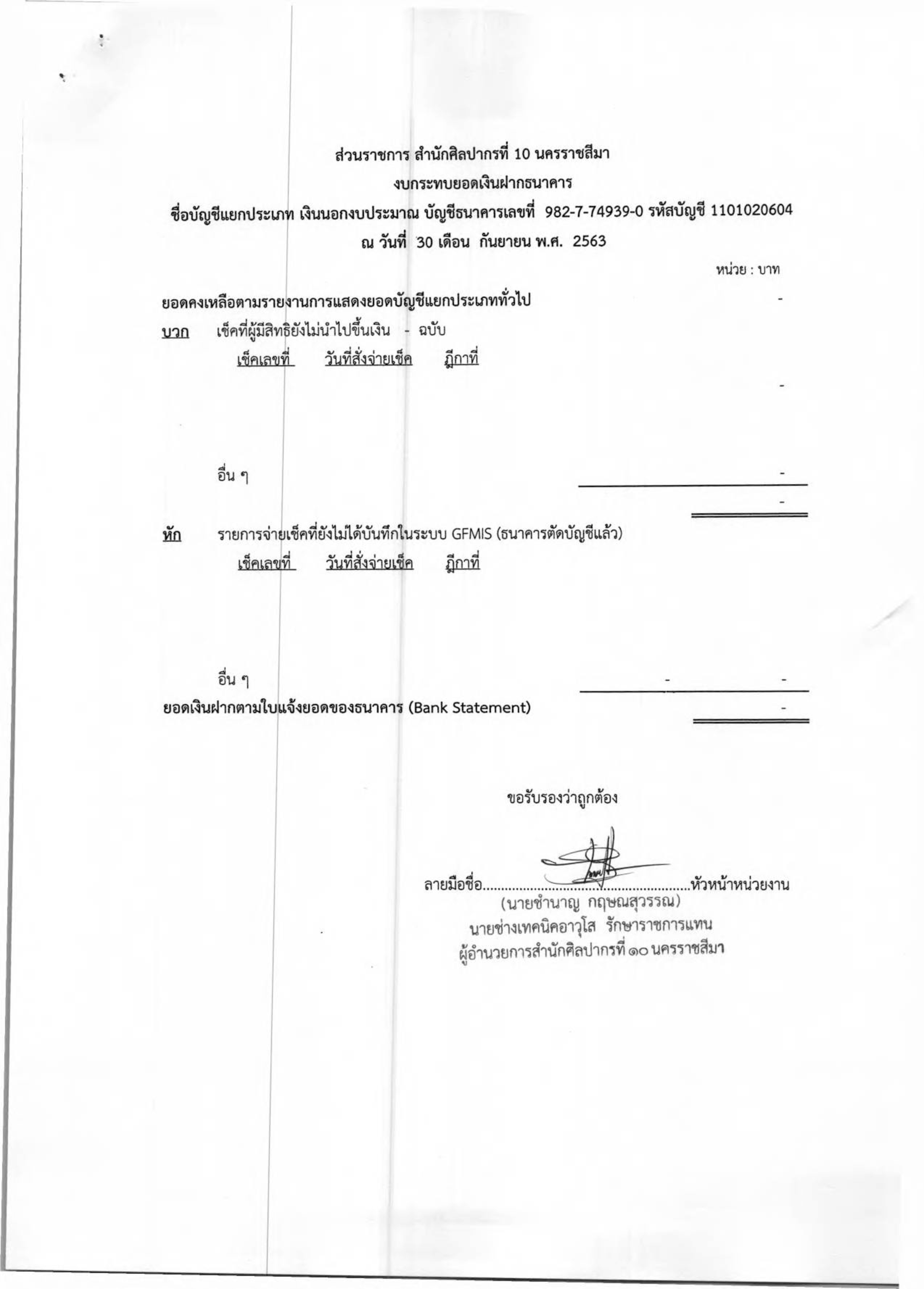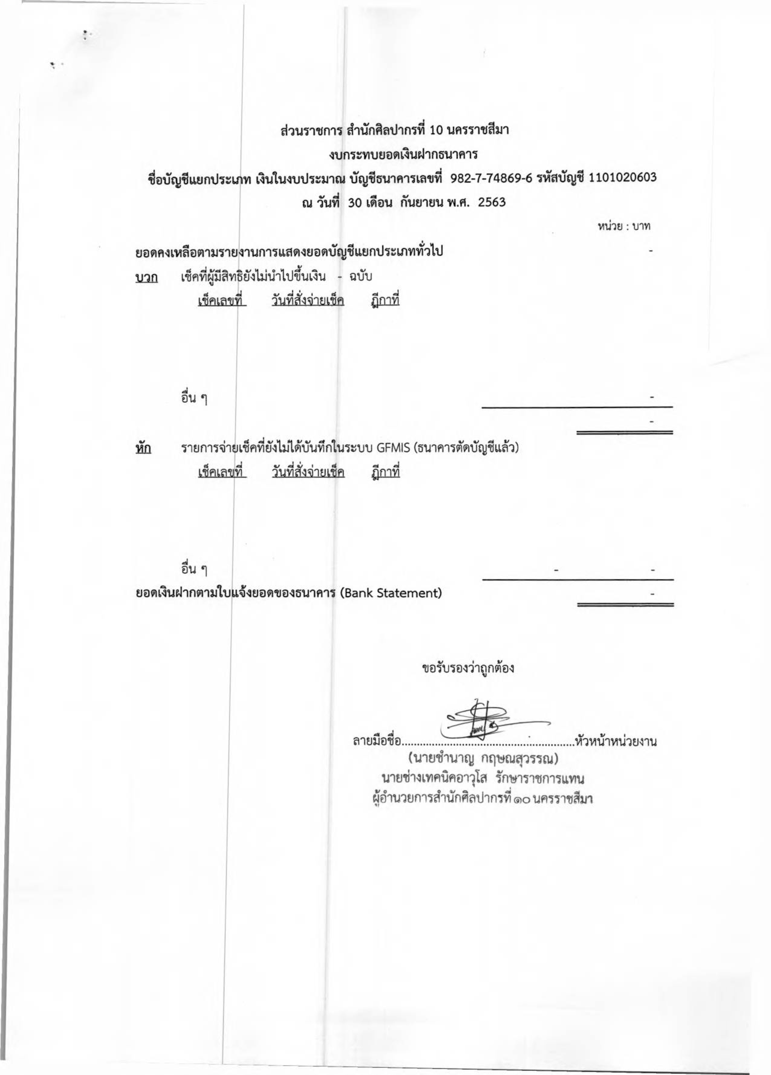 รายงานบัญชีงบทดลองและเอกสารประกอบงบทดลอง สำนักศิลปากรที่ ๑๐ นครราชสีมา (เดือนกันยายน ๒๕๖๓)