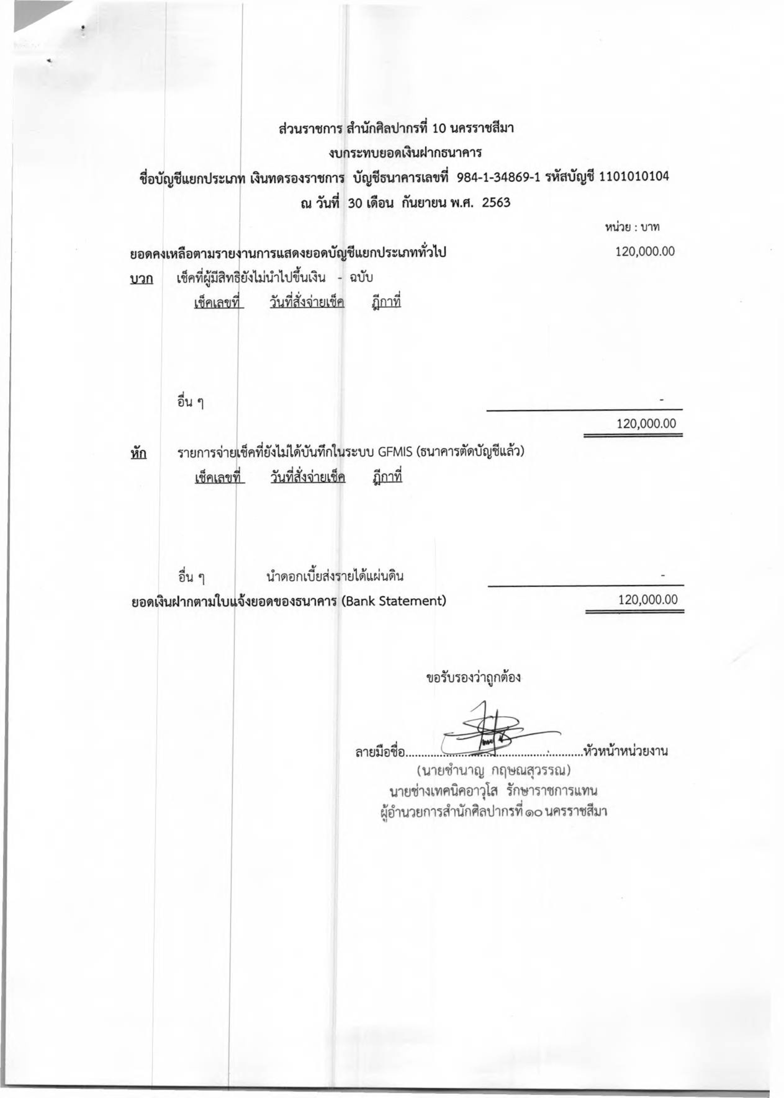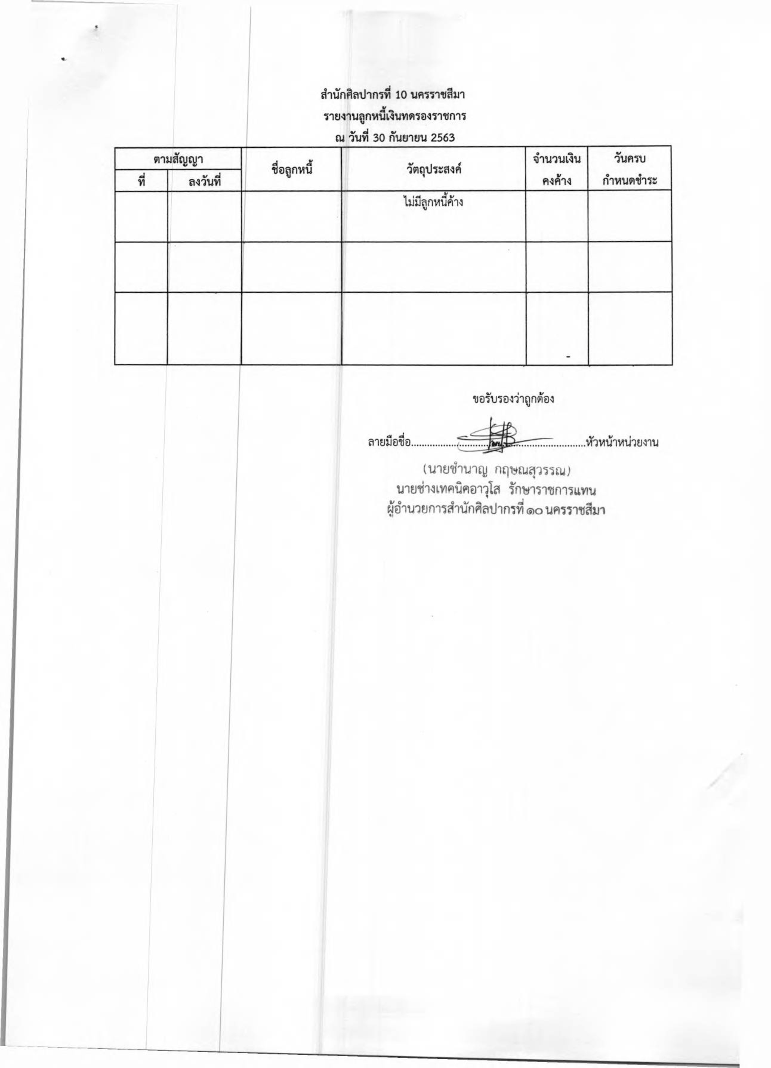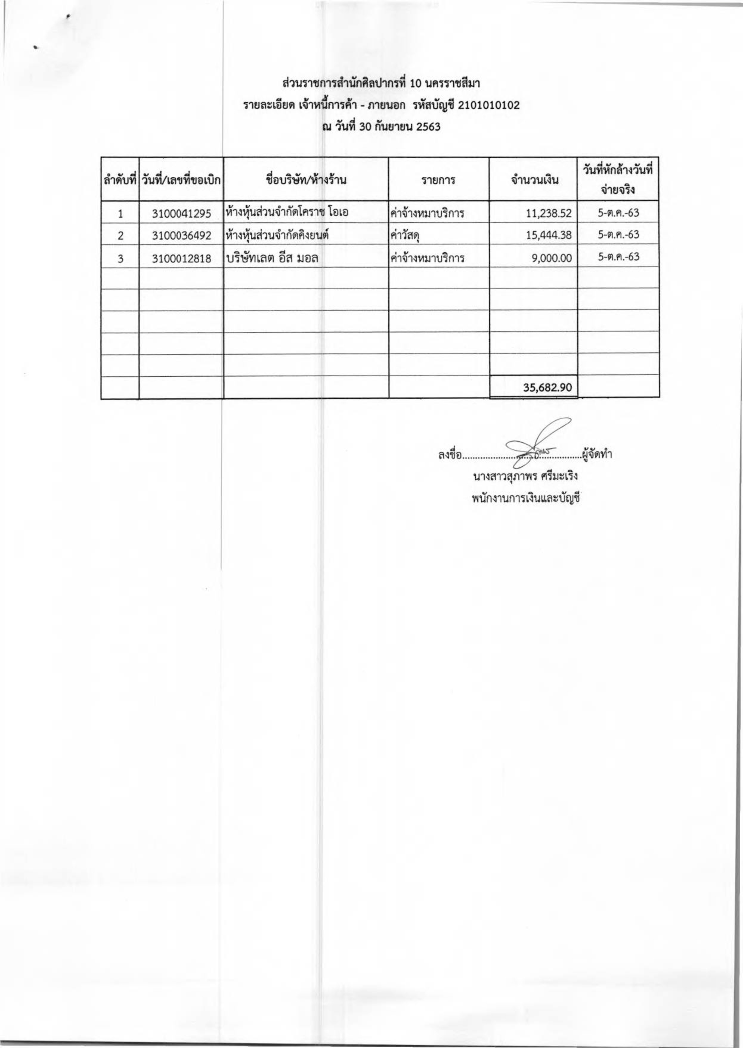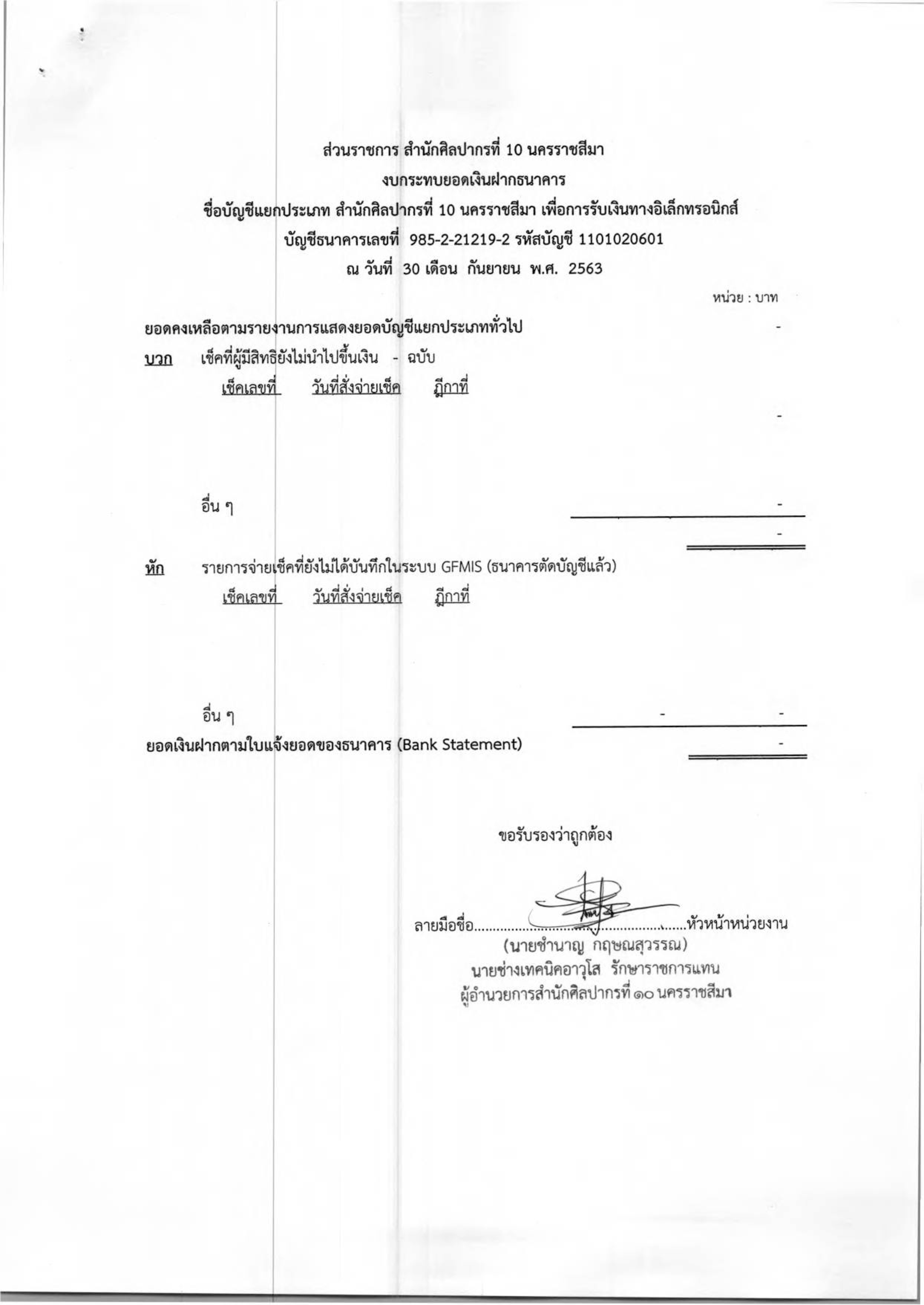 รายงานบัญชีงบทดลองและเอกสารประกอบงบทดลอง สำนักศิลปากรที่ ๑๐ นครราชสีมา (เดือนกันยายน ๒๕๖๓)