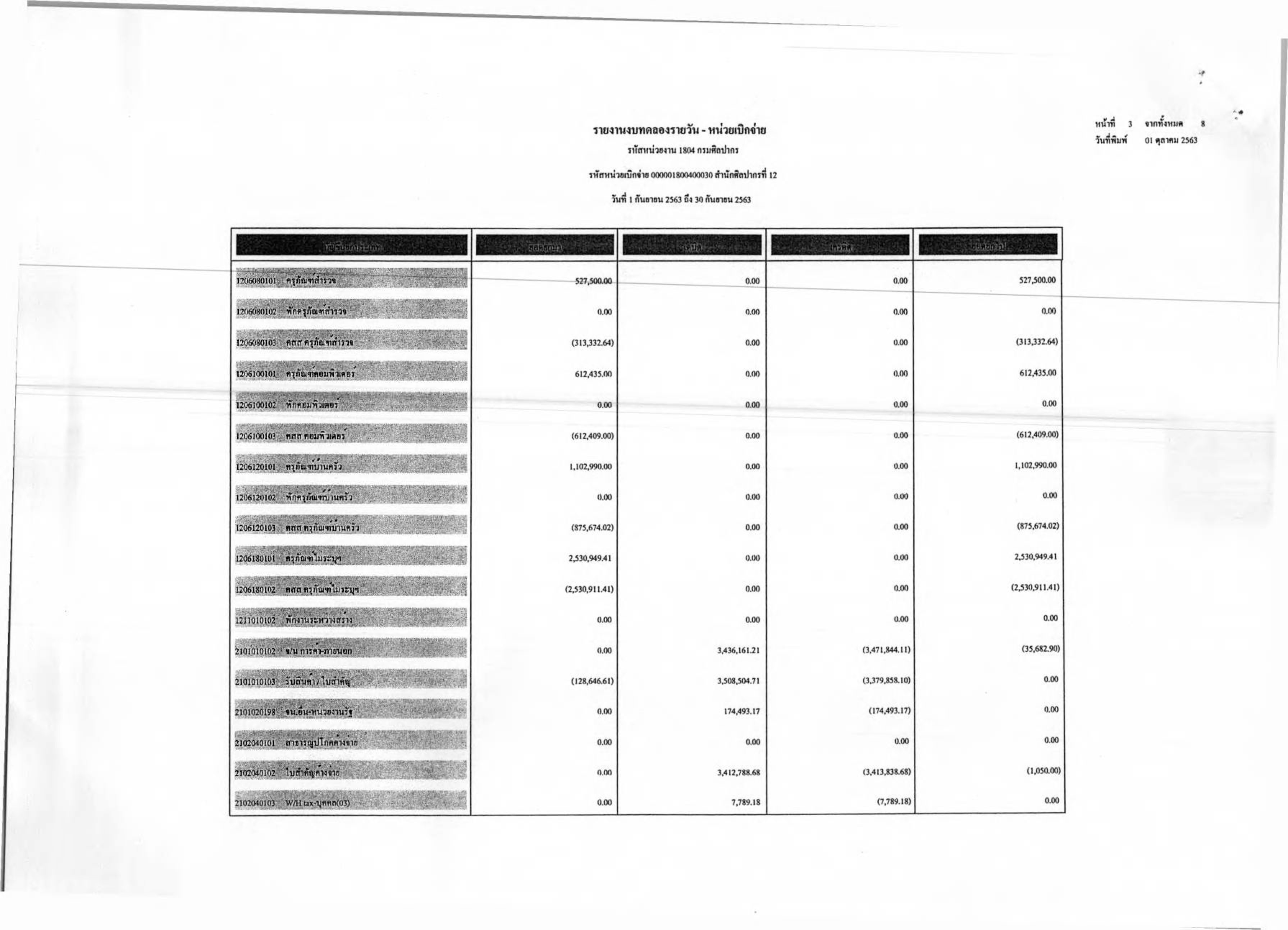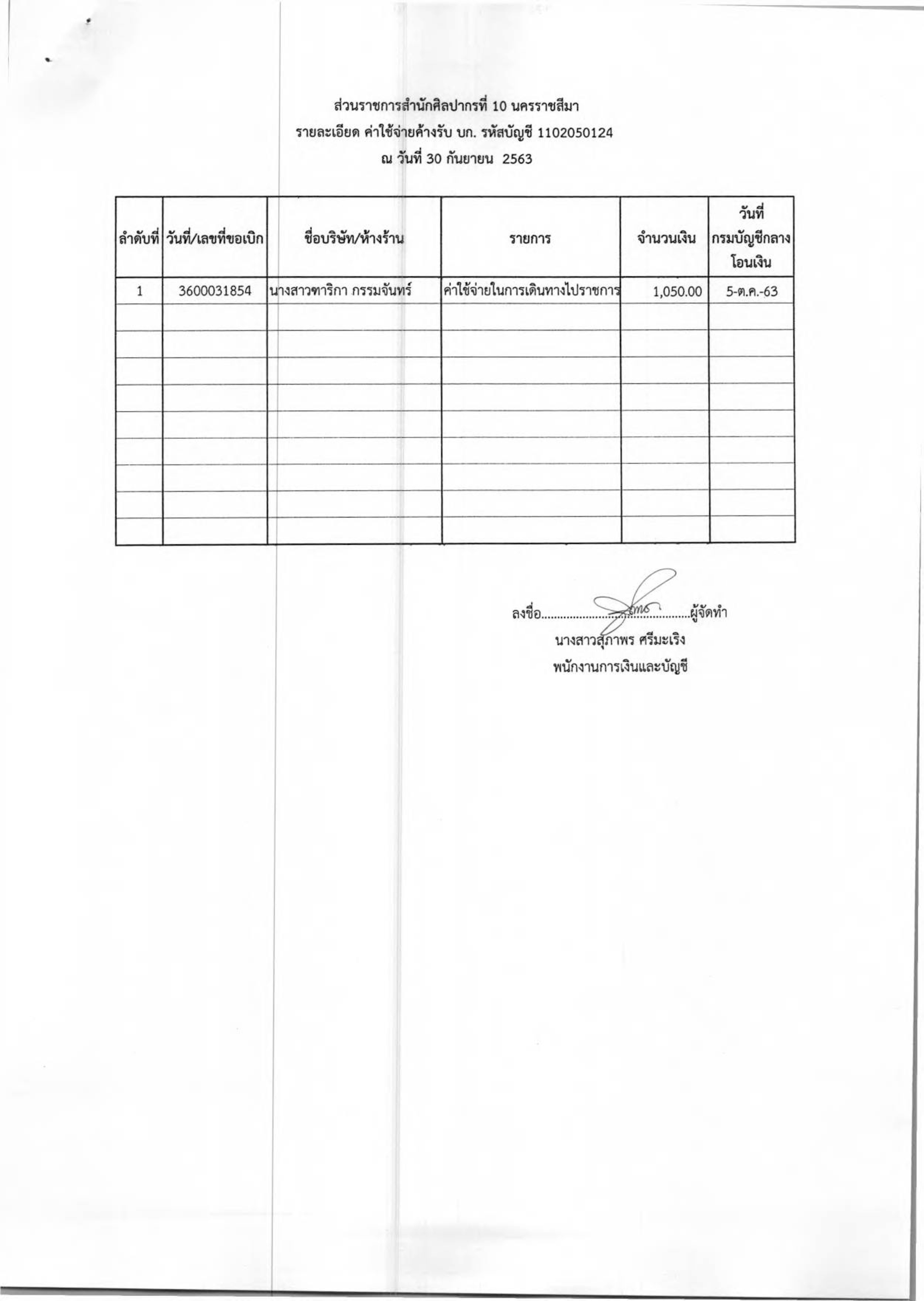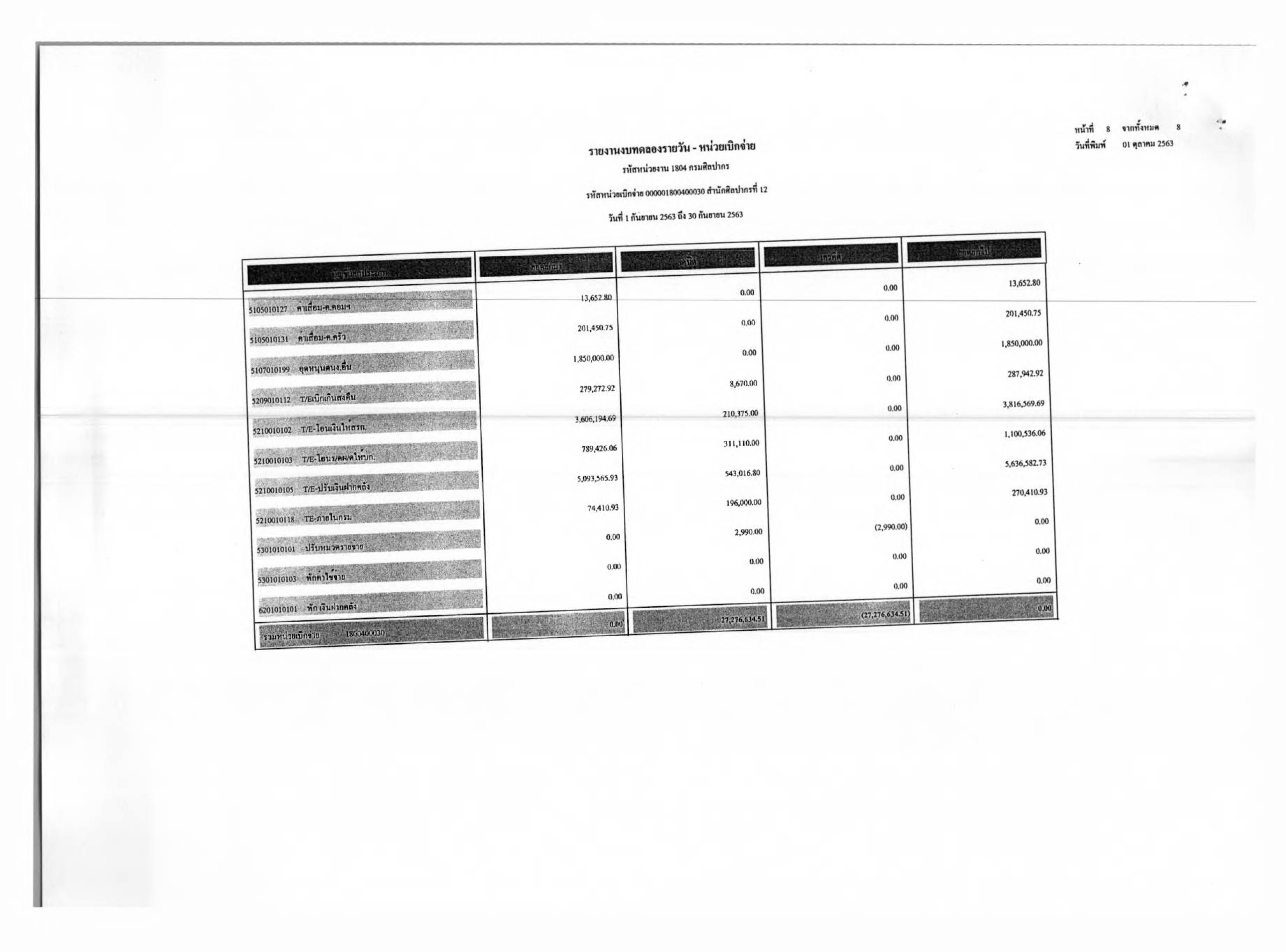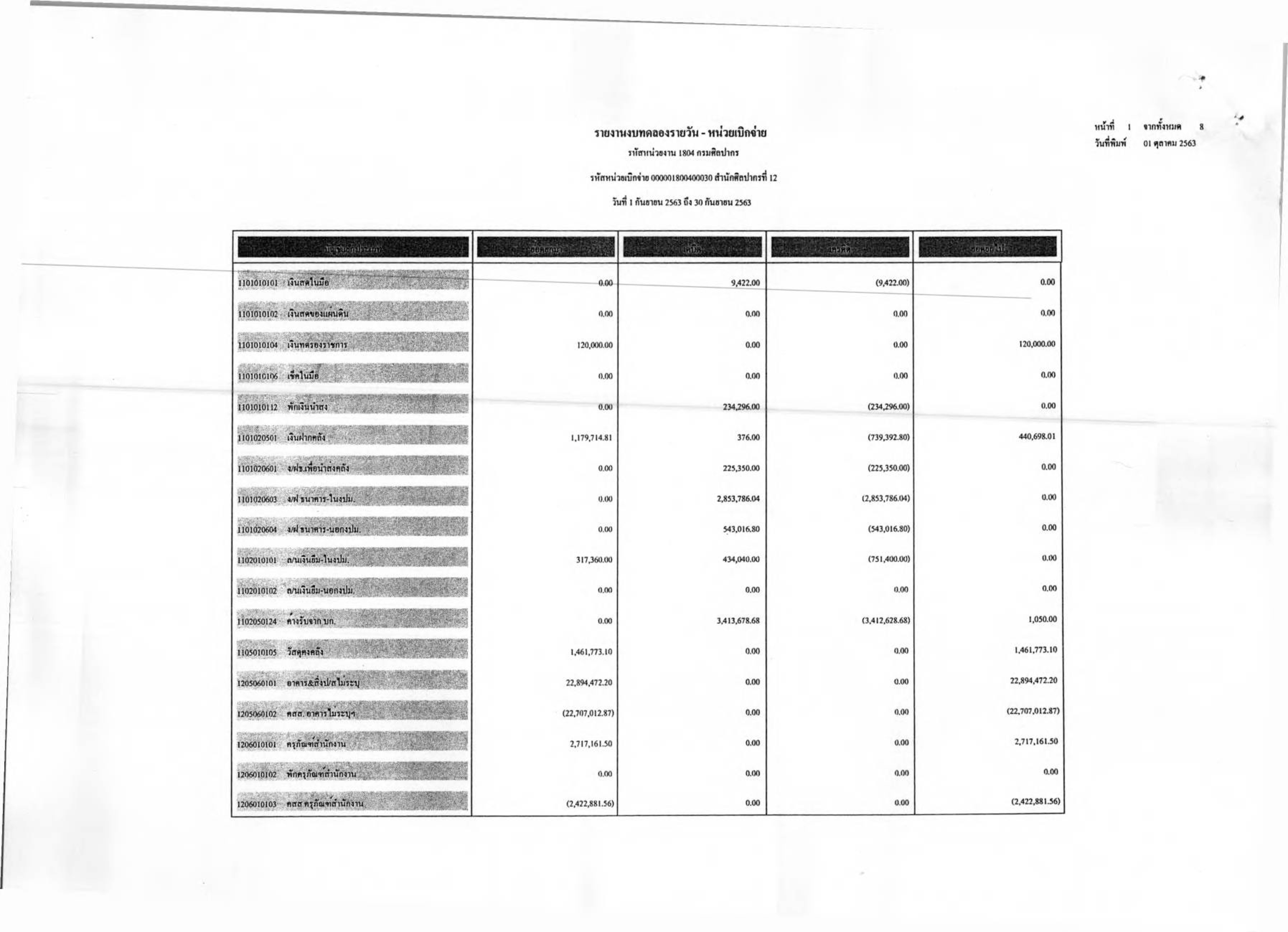 รายงานบัญชีงบทดลองและเอกสารประกอบงบทดลอง สำนักศิลปากรที่ ๑๐ นครราชสีมา (เดือนกันยายน ๒๕๖๓)