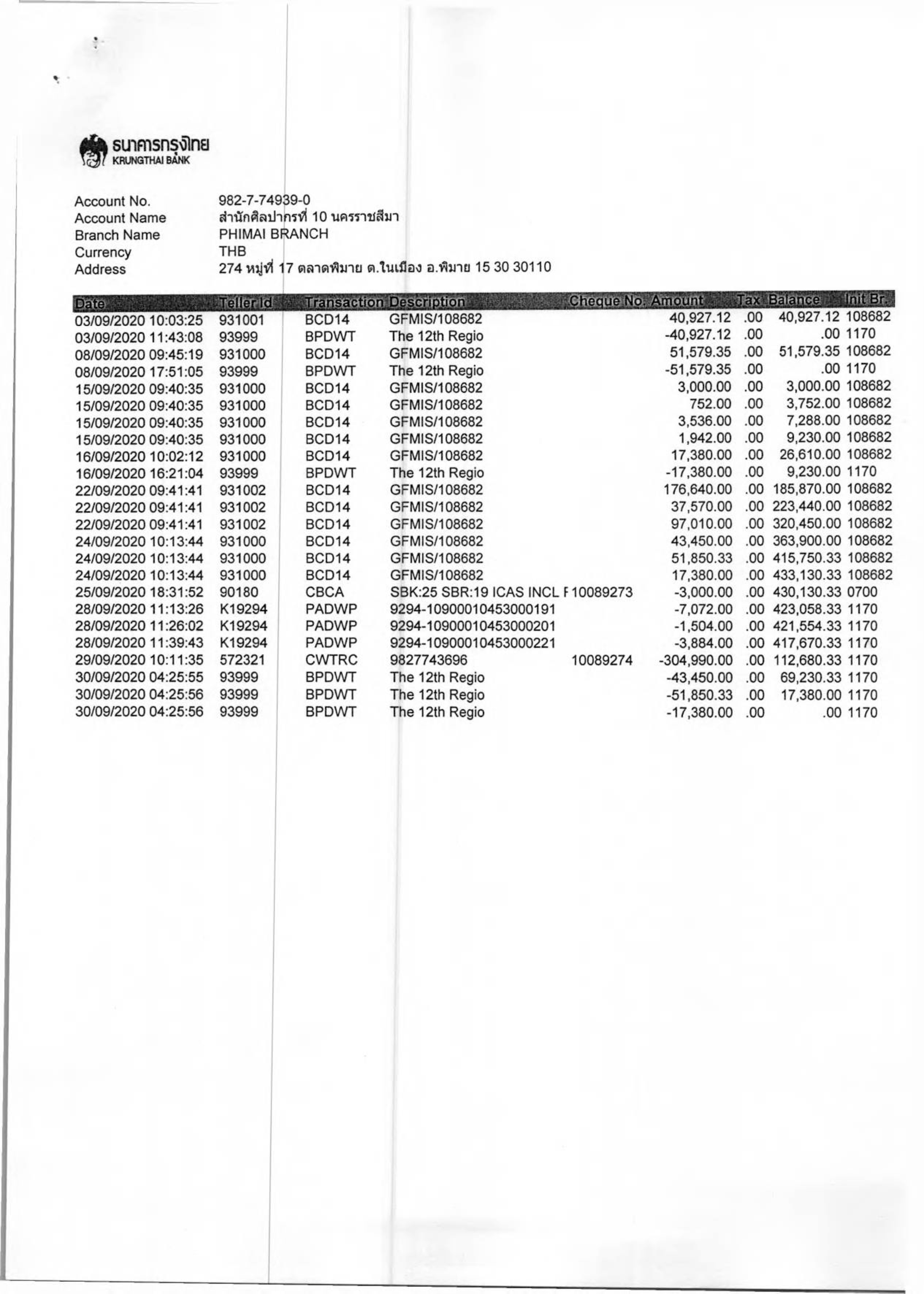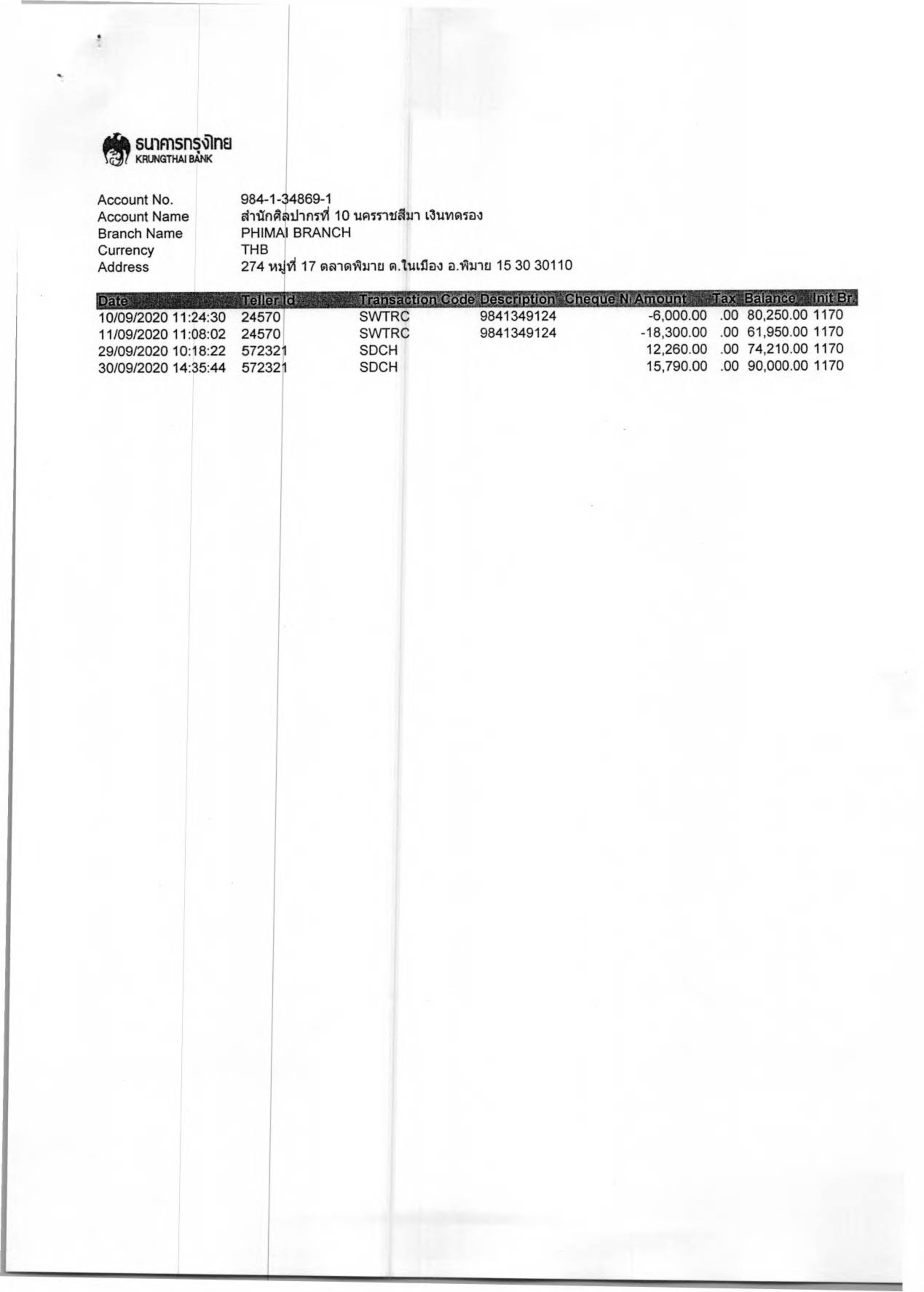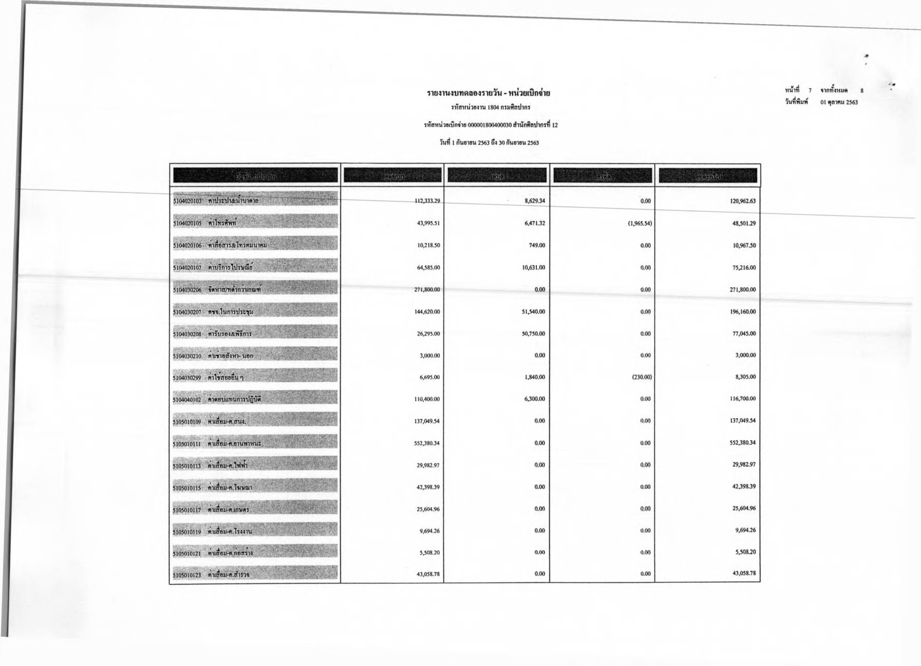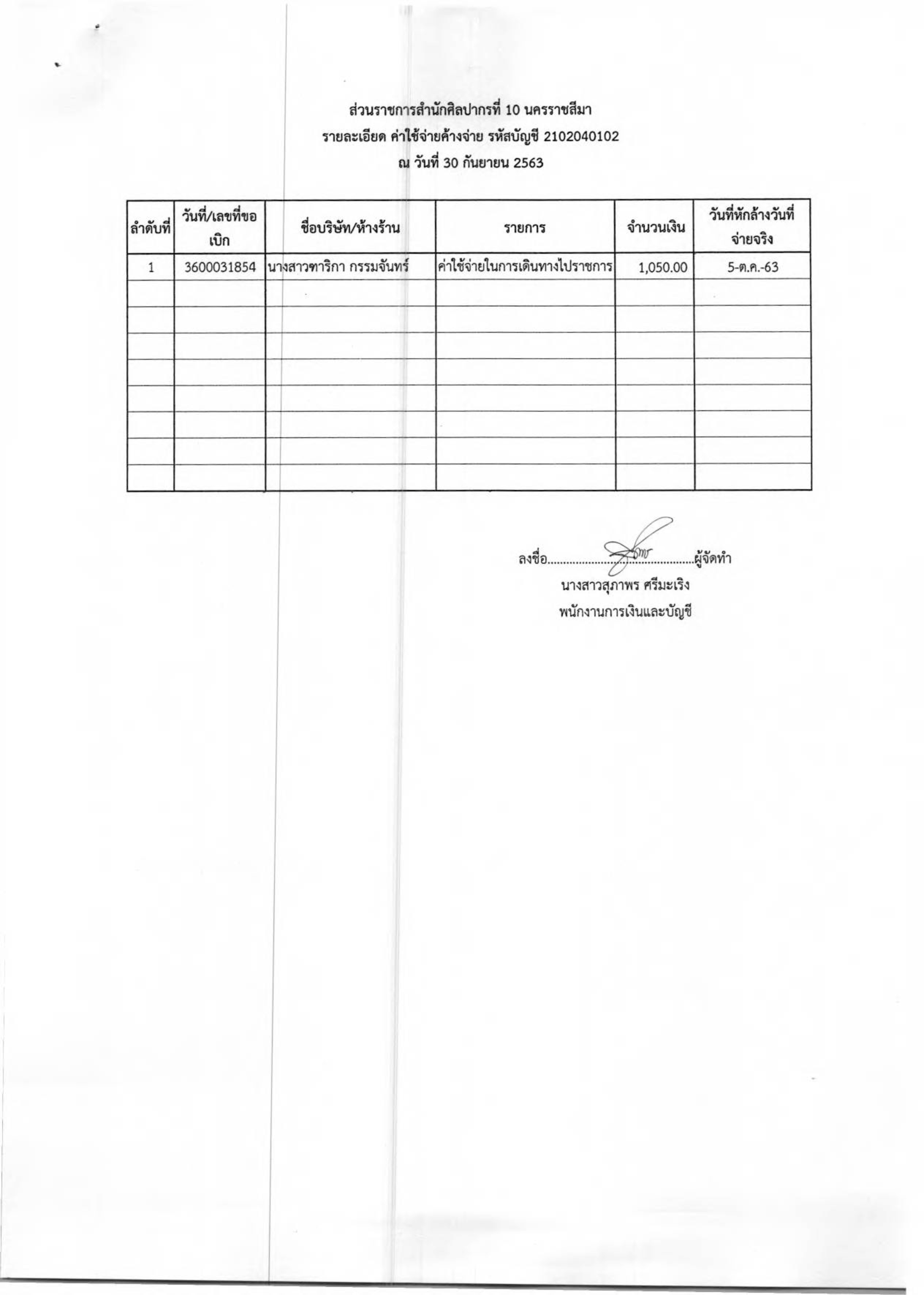 รายงานบัญชีงบทดลองและเอกสารประกอบงบทดลอง สำนักศิลปากรที่ ๑๐ นครราชสีมา (เดือนกันยายน ๒๕๖๓)