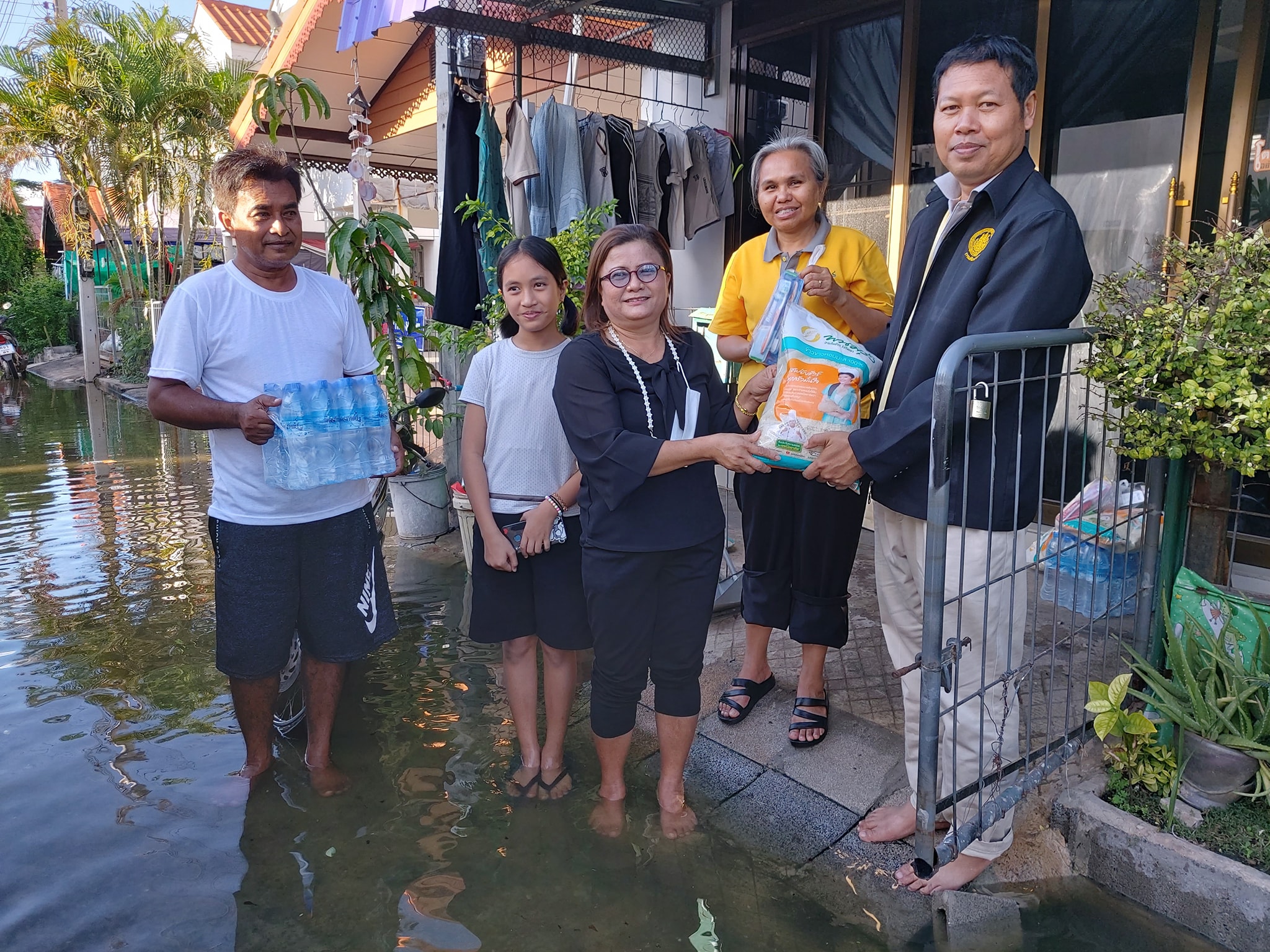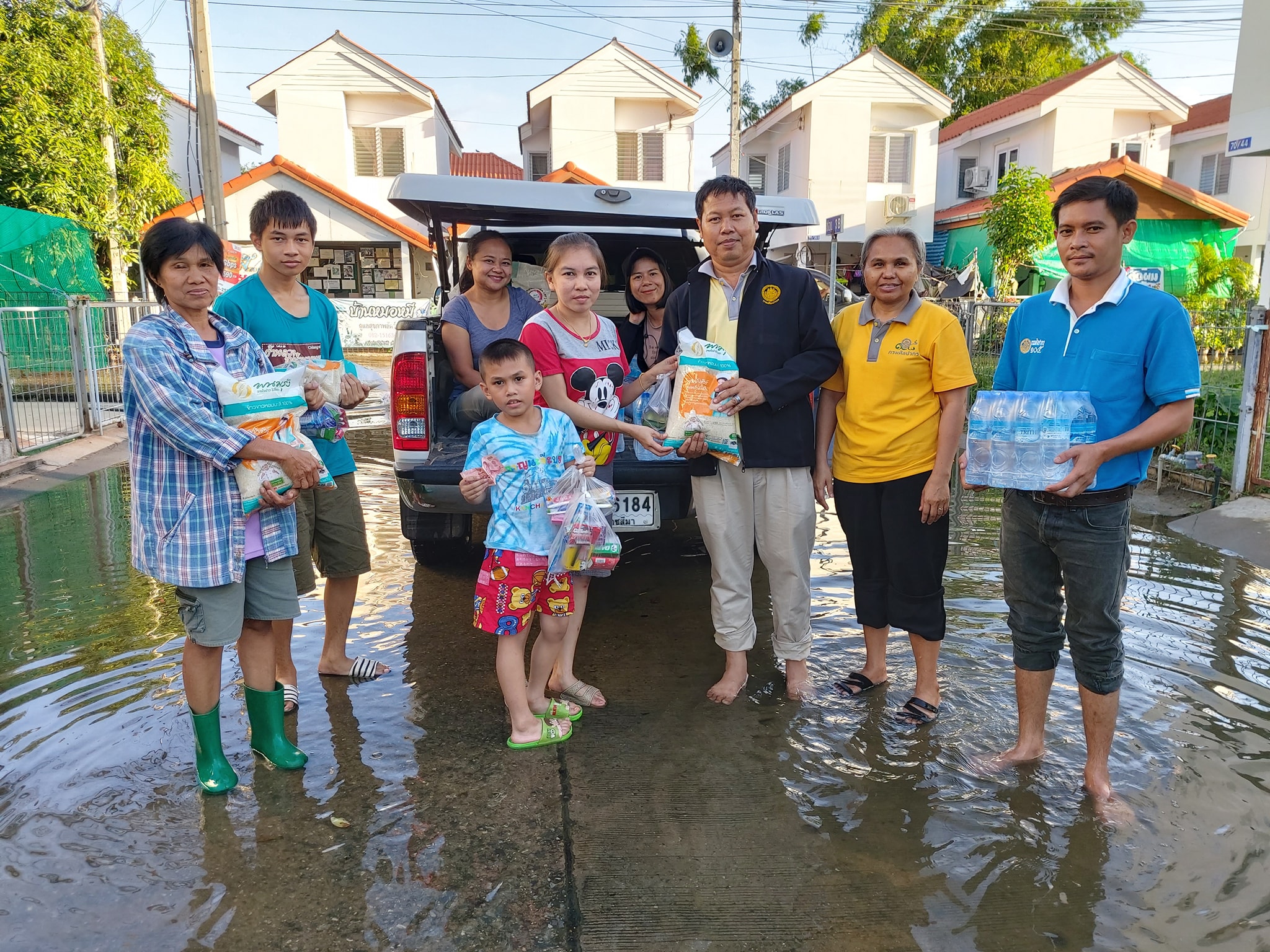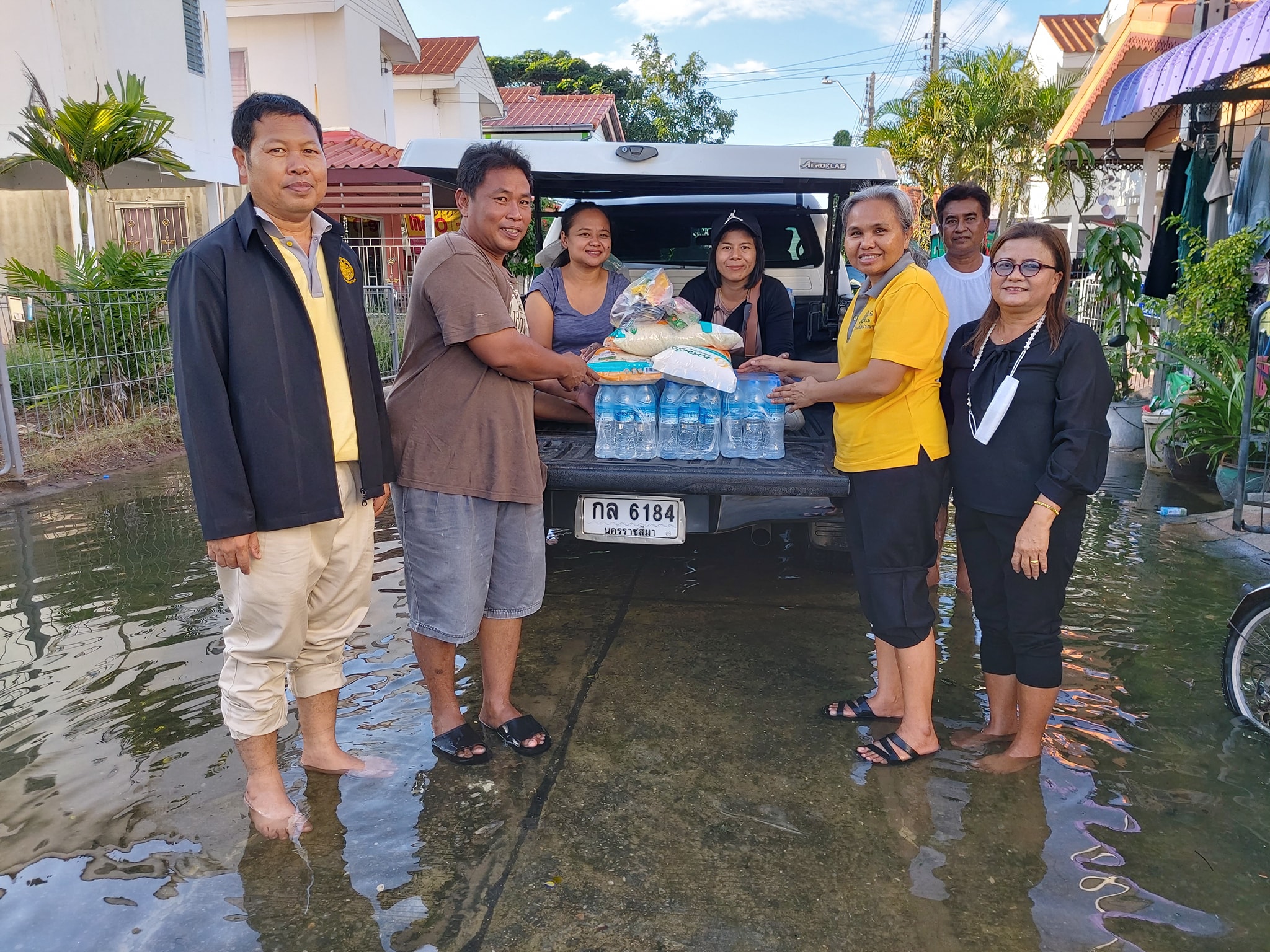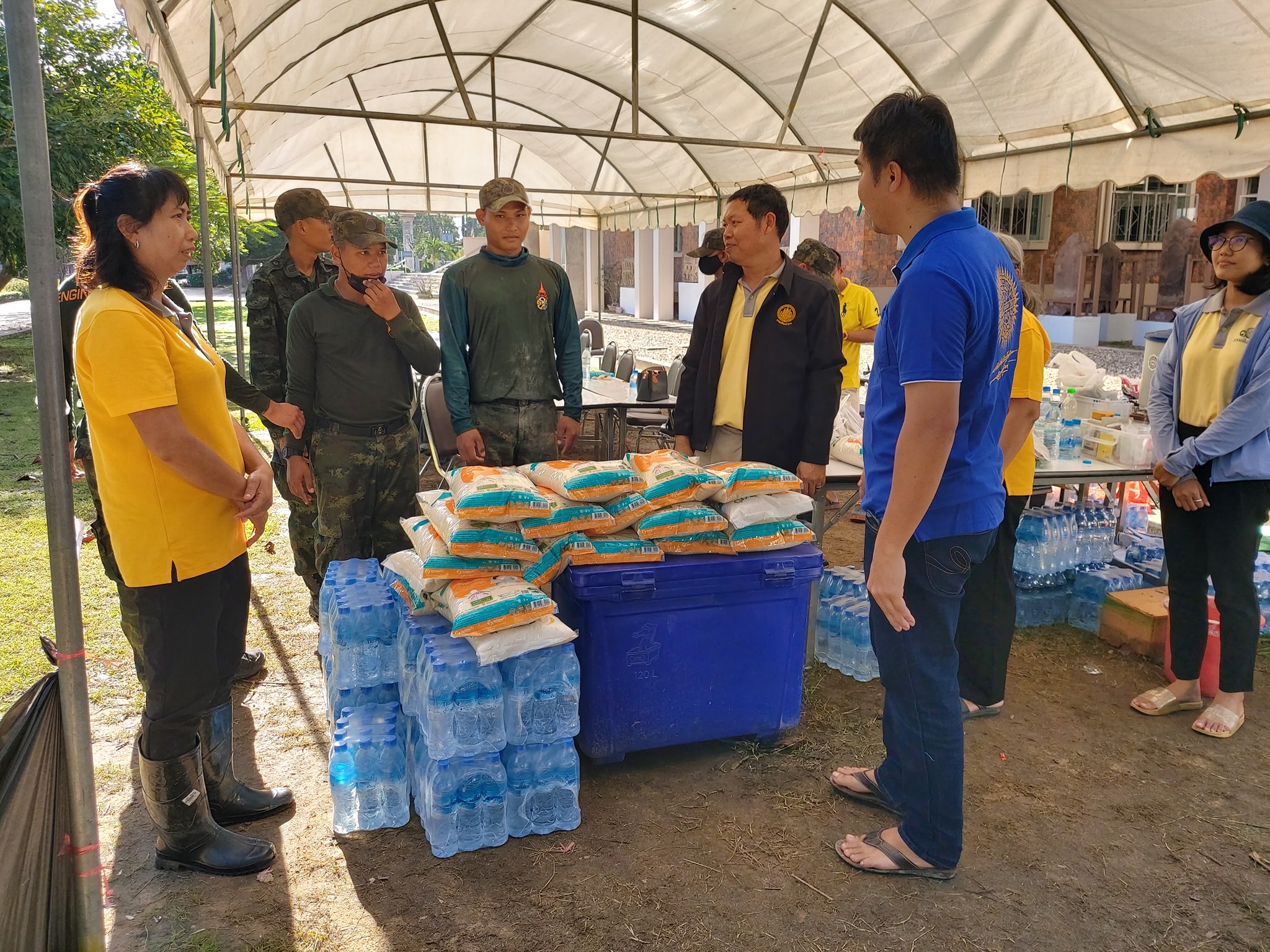 นำสิ่งของในการอุปโภคบริโภคไปมอบให้กับผู้ได้รับผลกระทบจากน้ำท่วม และทหารกองพันทหารช่างที่ ๒๐๒ กรมทหารช่าง ๒ ค่ายสุรธรรมพิทักษ์ ซึ่งตั้งศูนย์บัญชาการเฝ้าระวังน้ำท่วมในเขตอำเภอพิมาย ณ พิพิธภัณฑสถานแห่งชาติพิมาย จังหวัดนครราชสีมา