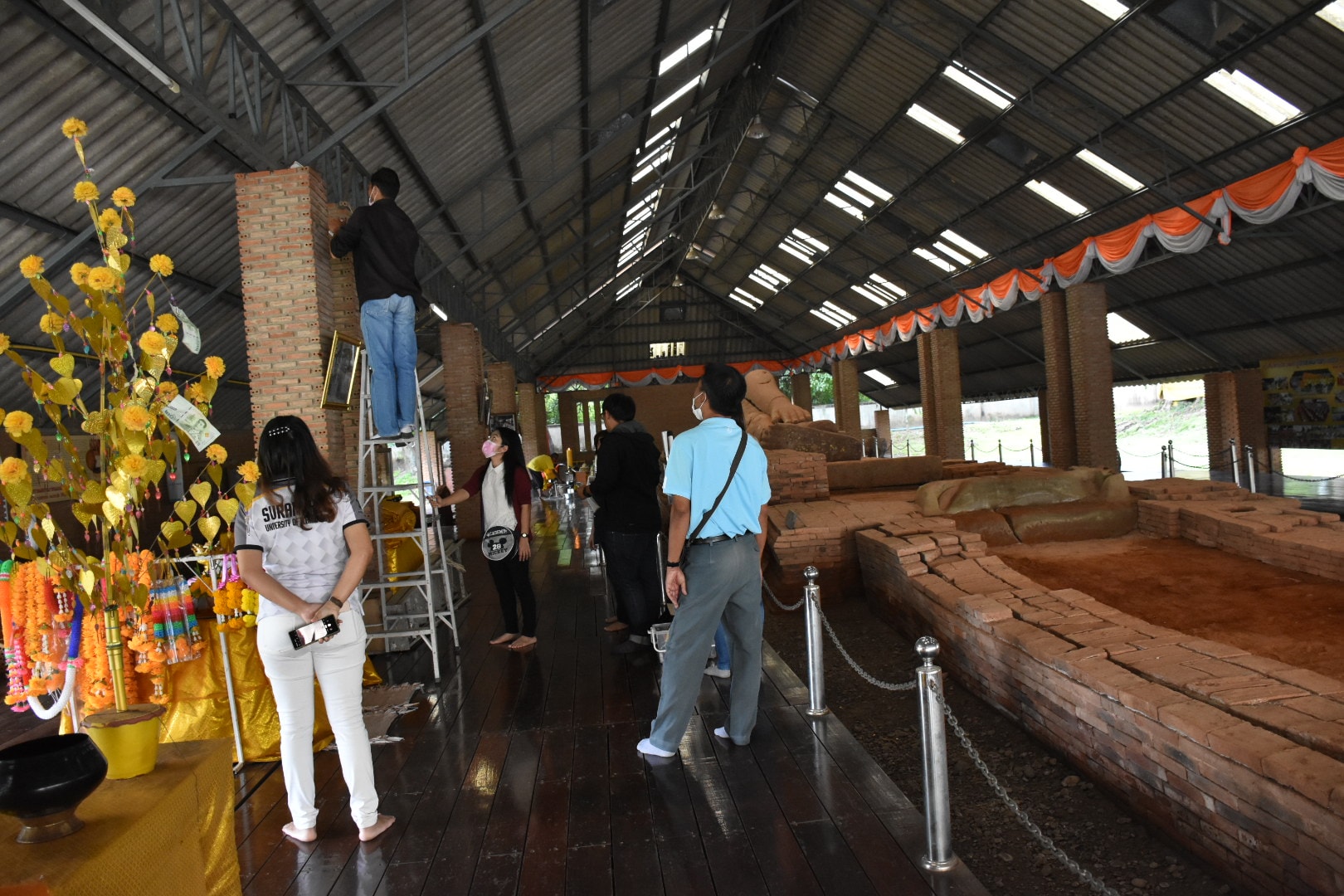 สำนักศิลปากรที่ ๑๐ นครราชสีมา และสำนักวิชาวิทยาศาสตร์ มหาวิทยาลัยเทคโนโลยีสุรนารี ลงพื้นที่ตรวจสอบสภาพทางภูมิศาสตร์ พร้อมทั้งติดตั้งเครื่องวัดอุณหภูมิความชื้น เพื่อศึกษาสาเหตุของการผุกร่อนเสื่อมสภาพโบราณสถานพระนอนวัดธรรมจักรเสมาราม อำเภอสูงเนิน จังหวัดนครราชสีมา ด้วยวิธีการทางวิทยาศาสตร์และเทคโนโลยีสมัยใหม่