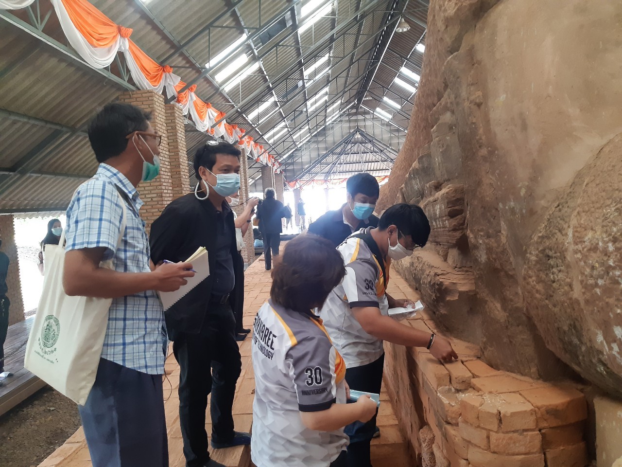 วันพุธที่ ๑๑ พฤศจิกายน ๒๕๖๓ คณะทำงานโครงการศึกษาและจัดทำแผนอนุรักษ์และพัฒนาโบราณสถานพระนอน วัดธรรมจักรเสมาราม อำเภอสูงเนิน จังหวัดนครราชสีมา ลงพื้นที่ร่วมกันประชุมหารือและเก็บข้อมูลภาคสนาม เพื่อศึกษาสาเหตุของการผุกร่อนเสื่อมสภาพโบราณสถานพระนอนวัดธรรมจักรเสมาราม อำเภอสูงเนิน จังหวัดนครราชสีมา ด้วยวิธีการทางวิทยาศาสตร์และเทคโนโลยีสมัยใหม่