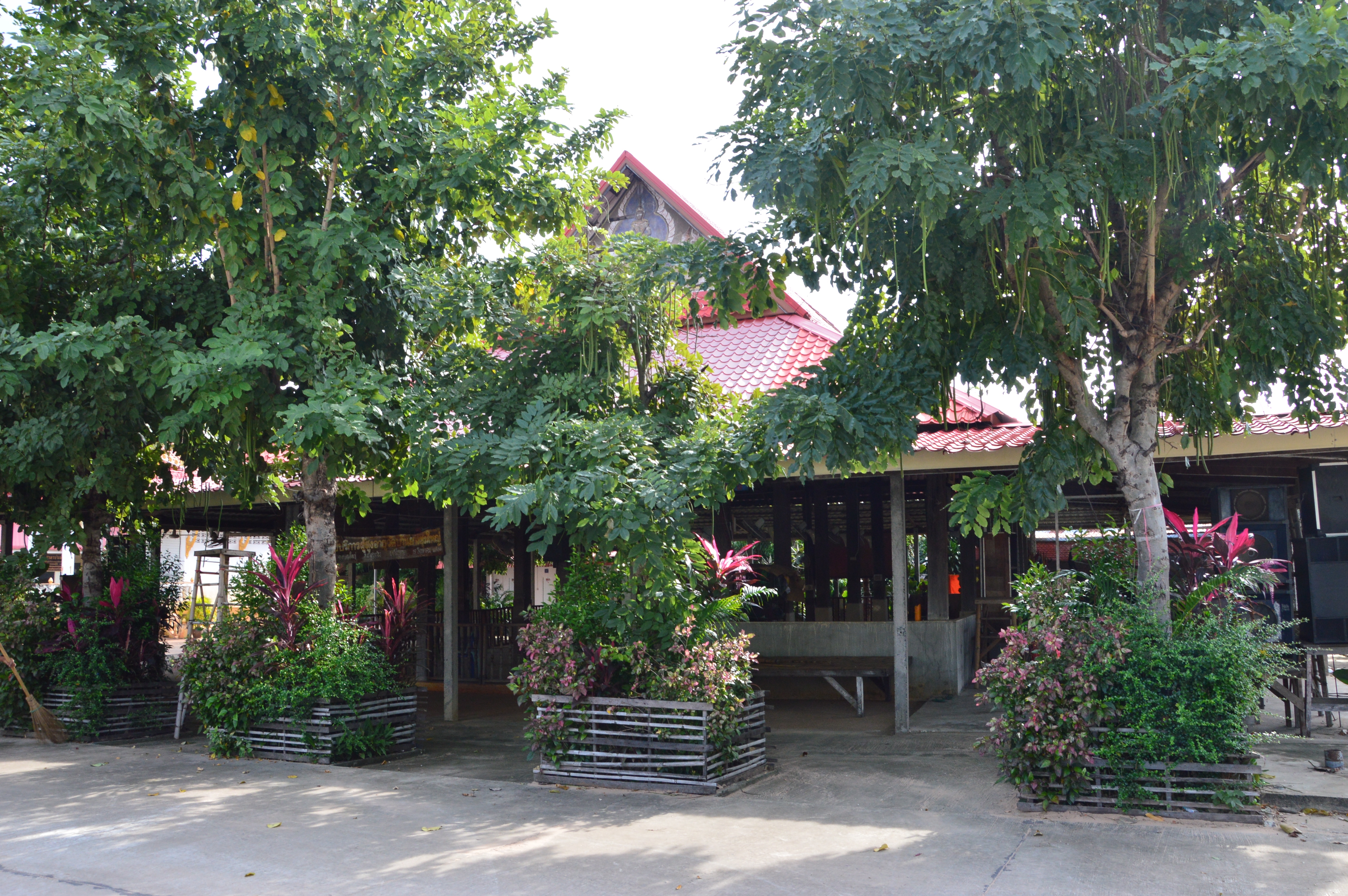 จากการสำรวจพบว่า อาคารศาลาการเปรียญ เป็นอาคารโถงมีหลังคาคลุมออกมารอบๆทั้งสี่ด้าน ส่วนหลังคาและพื้นอาคารได้รับการบูรณะใหม่หมดแล้ว เหลือเพียงส่วนหน้าบันและฝ้าเพดาน หน้าบันไม้ฉาบปูน ประดับเป็นปูนปั้นระบายสีด้วยสีฝุ่น หน้าบันด้านตะวันออกบอกปีที่สร้างในพ.ศ.๒๔๘๕ ปั้นเป็นราหูกำลังอมจันทร์ ด้านตะวันตกเป็นรูปเทพพนม