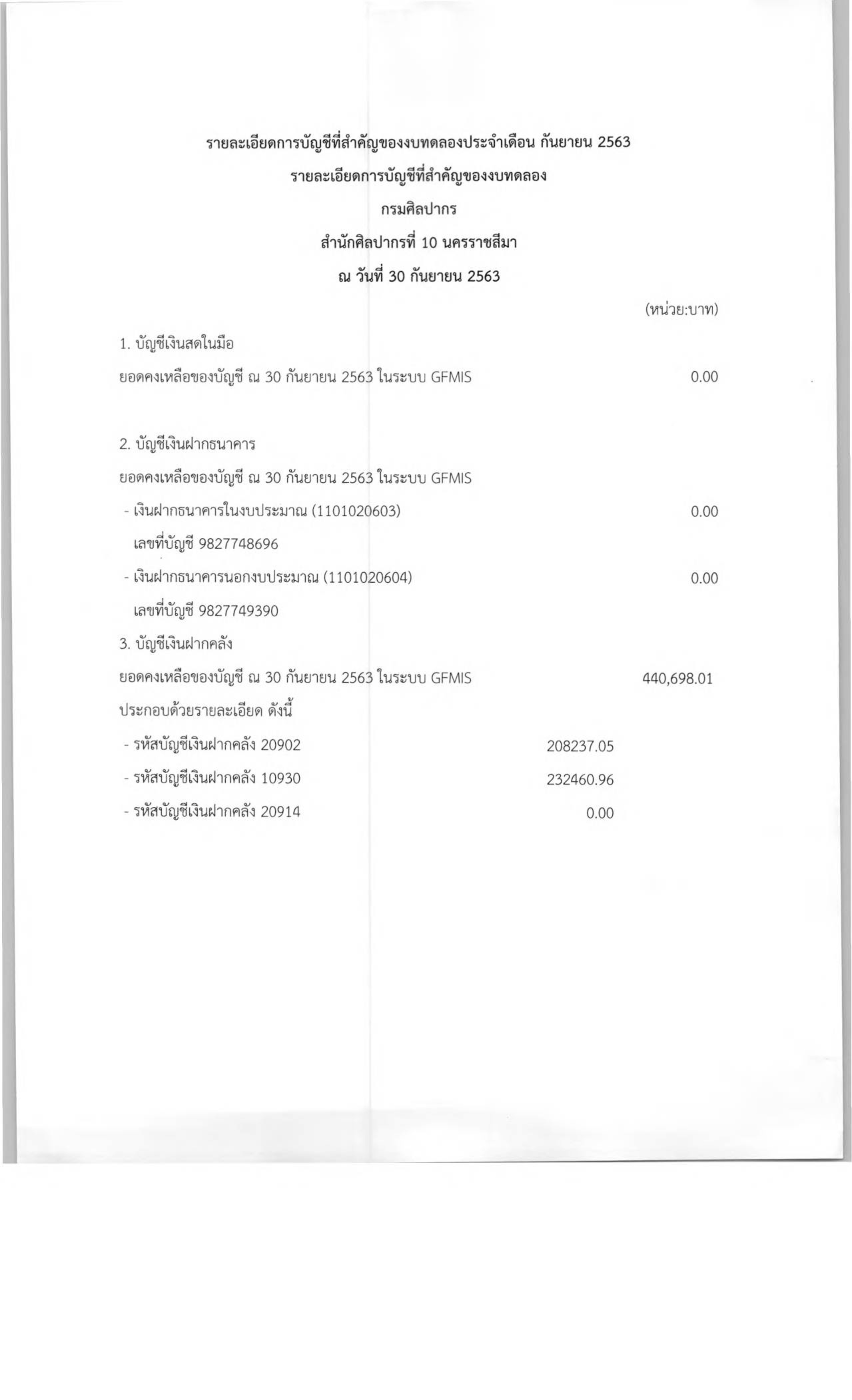 รายละเอียดการบัญชีที่สำคัญของงบทดลองประจำเดือน เดือนกันยายน ๒๕๖๓