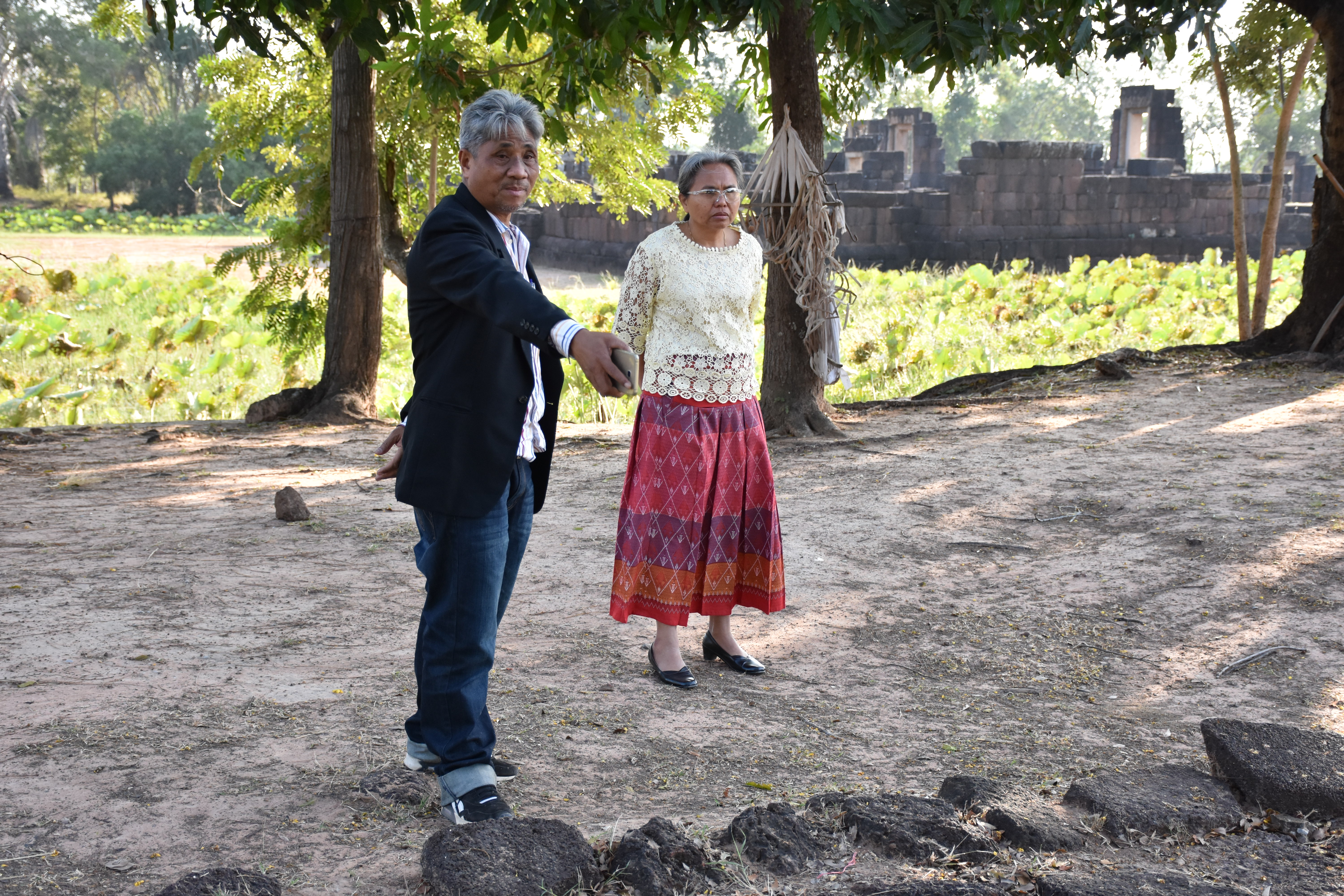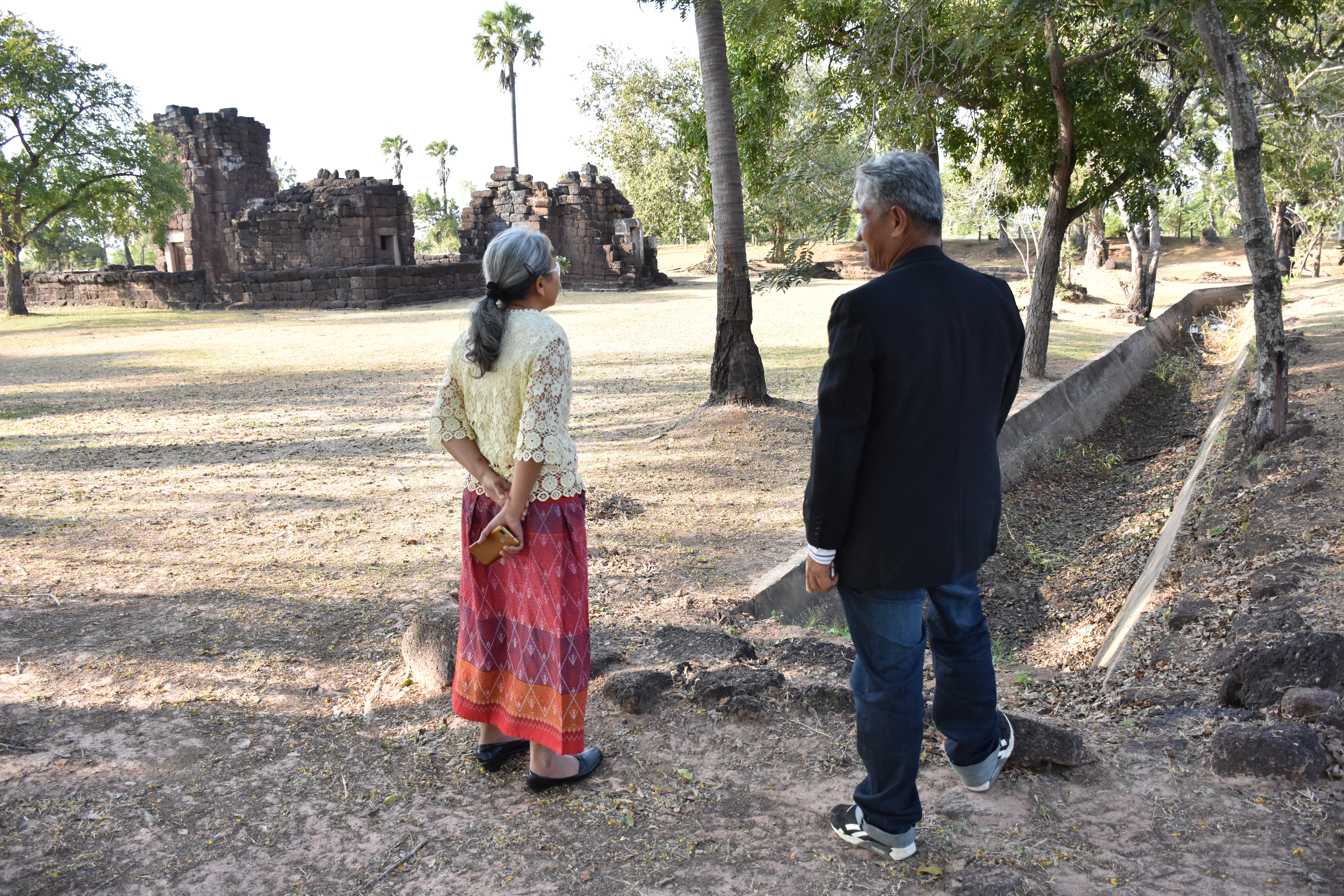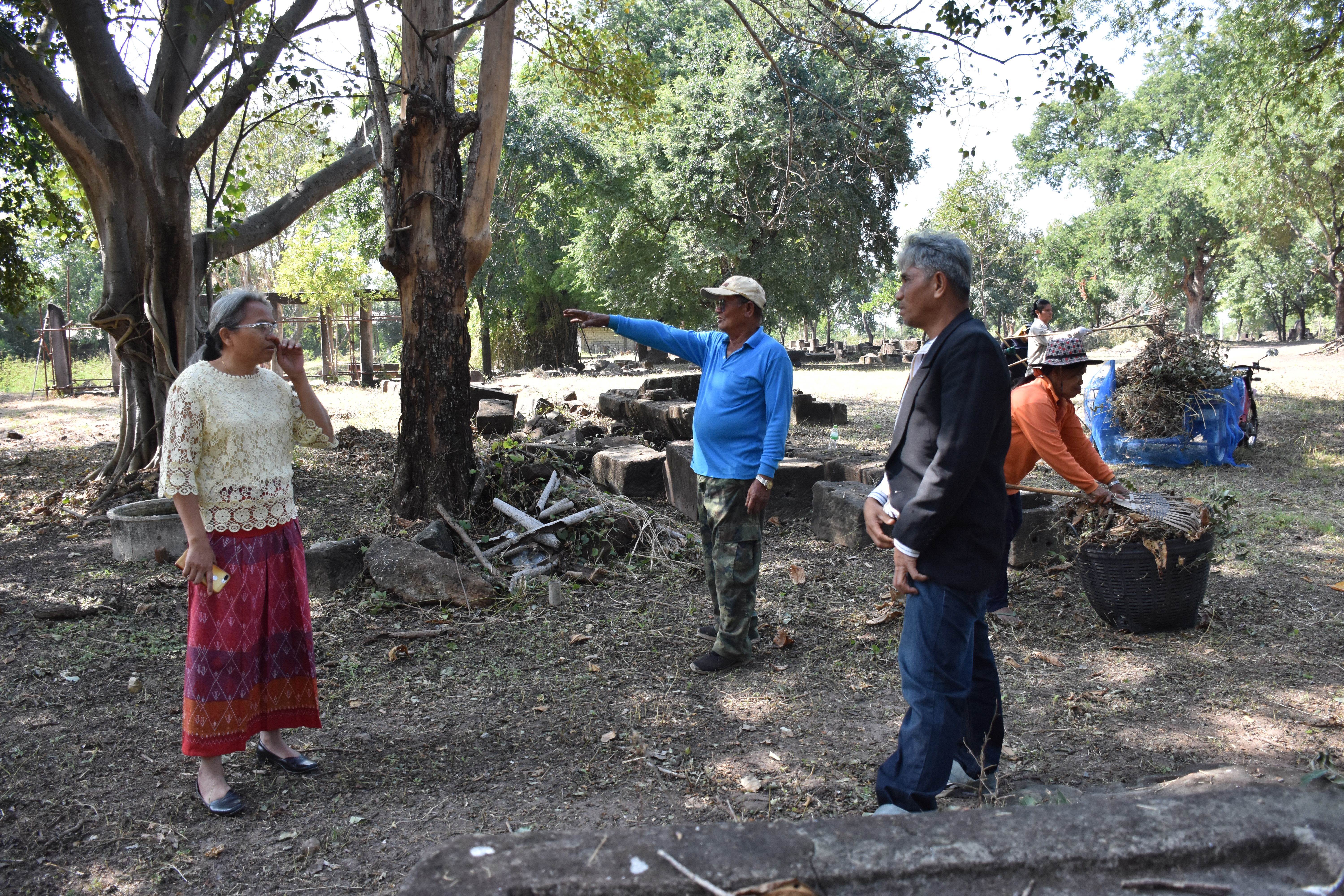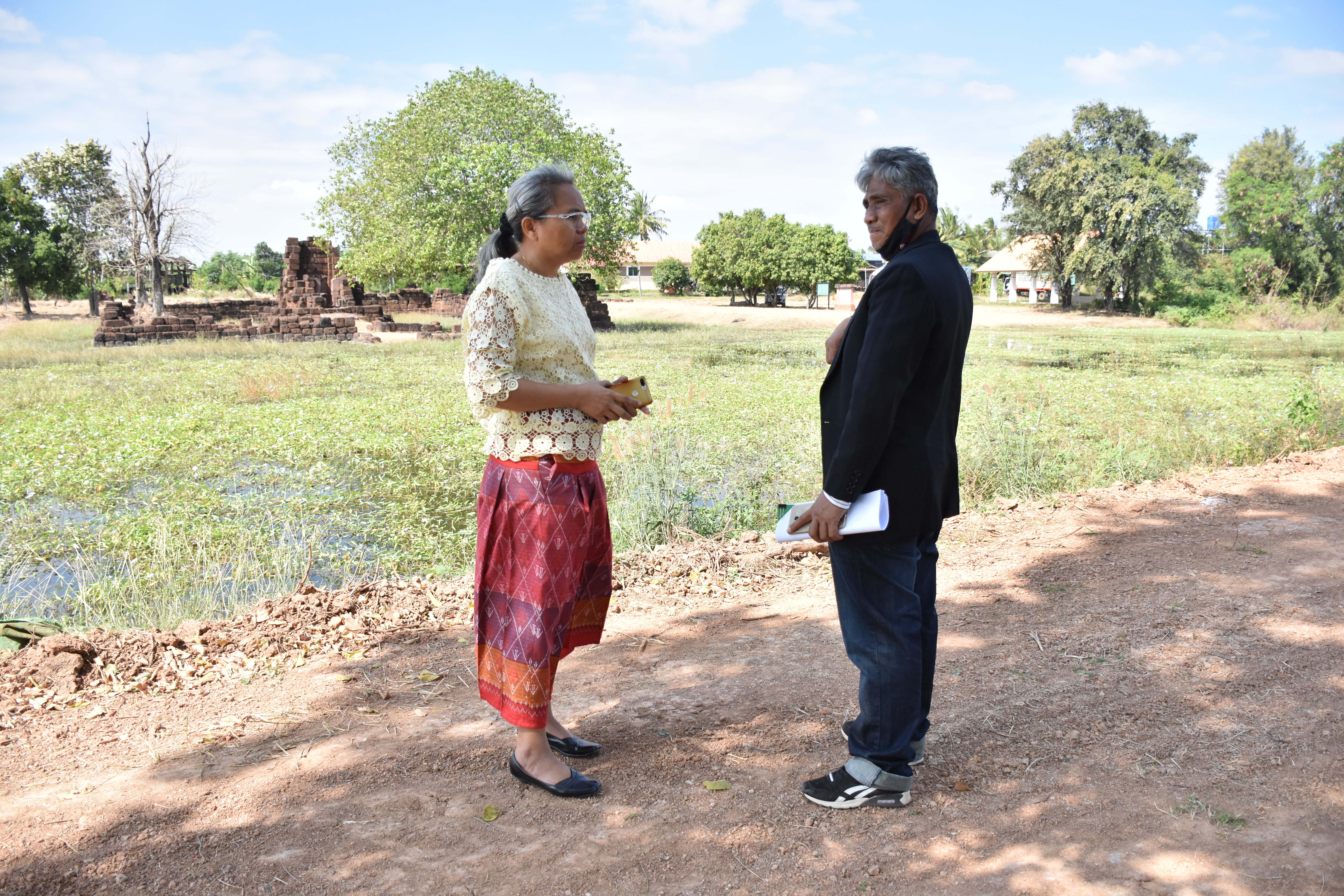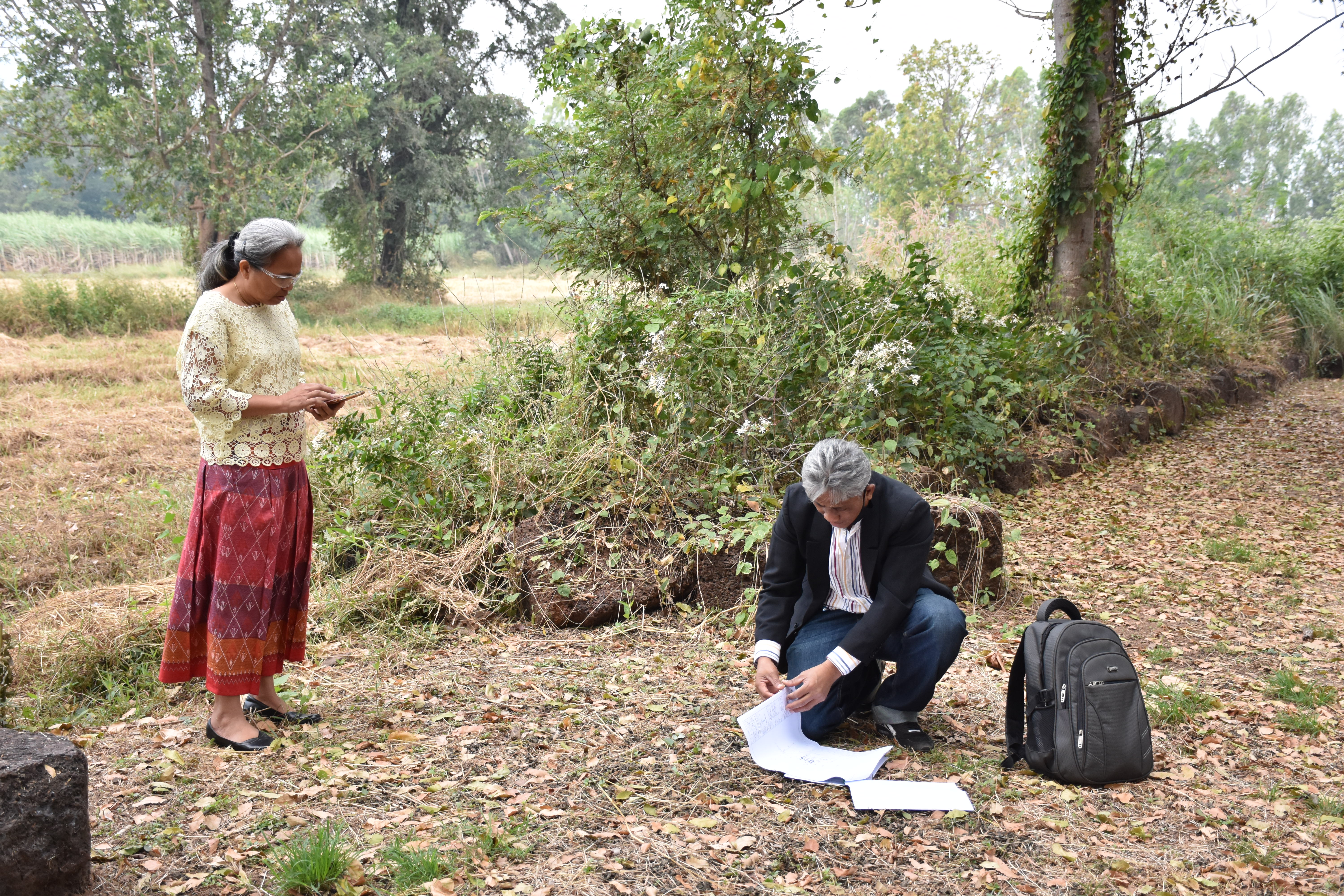 วันพฤหัสบดีที่ ๓ ธันวาคม ๒๕๖๓ นางสาวฑาริกา กรรมจันทร์ หัวหน้าฝ่ายบริหารงานทั่วไป และนายประพันธ์ เนื่องมัจฉา นายช่างสำรวจชำนาญงาน ลงพื้นที่ตรวจโบราณสถาน
