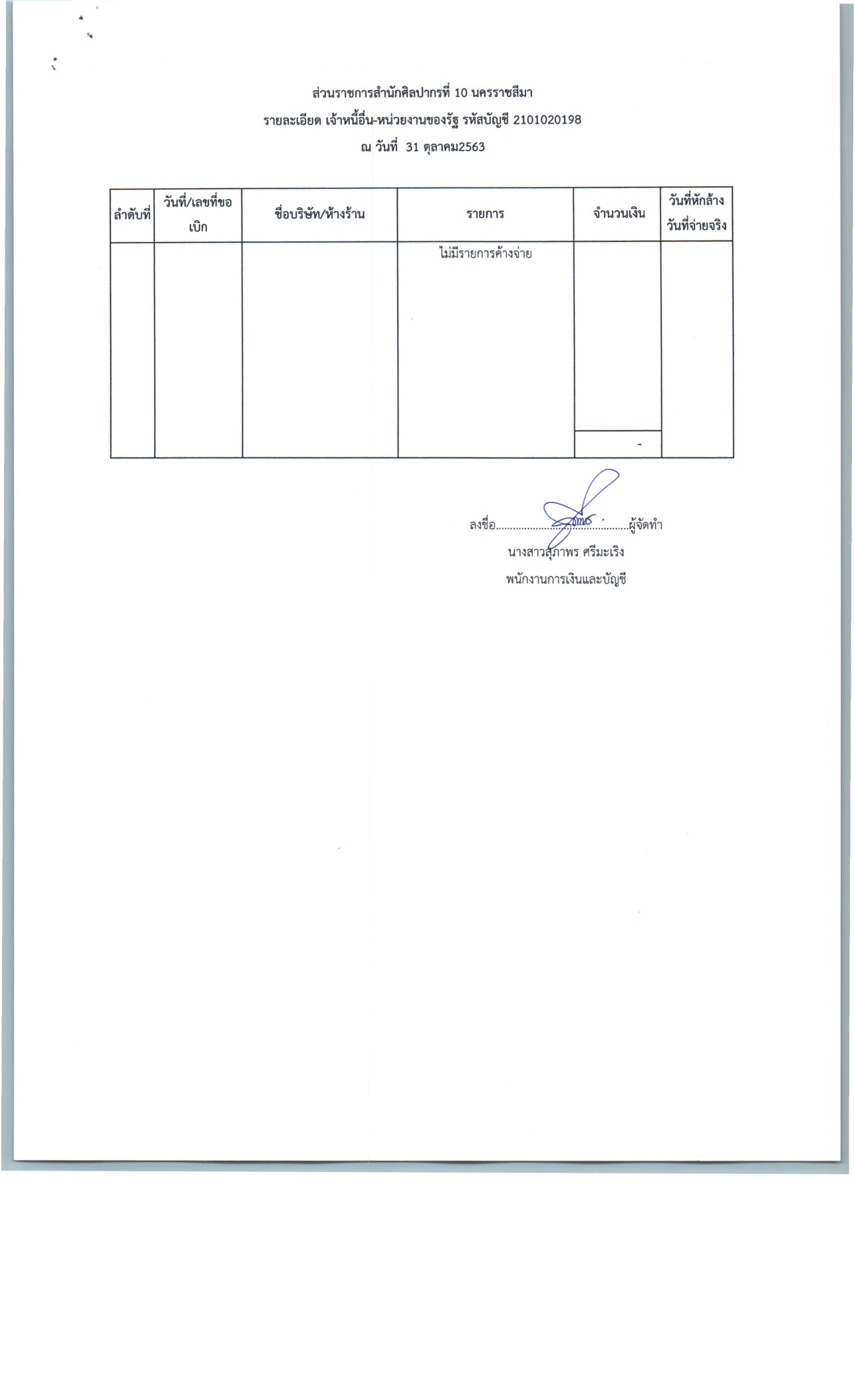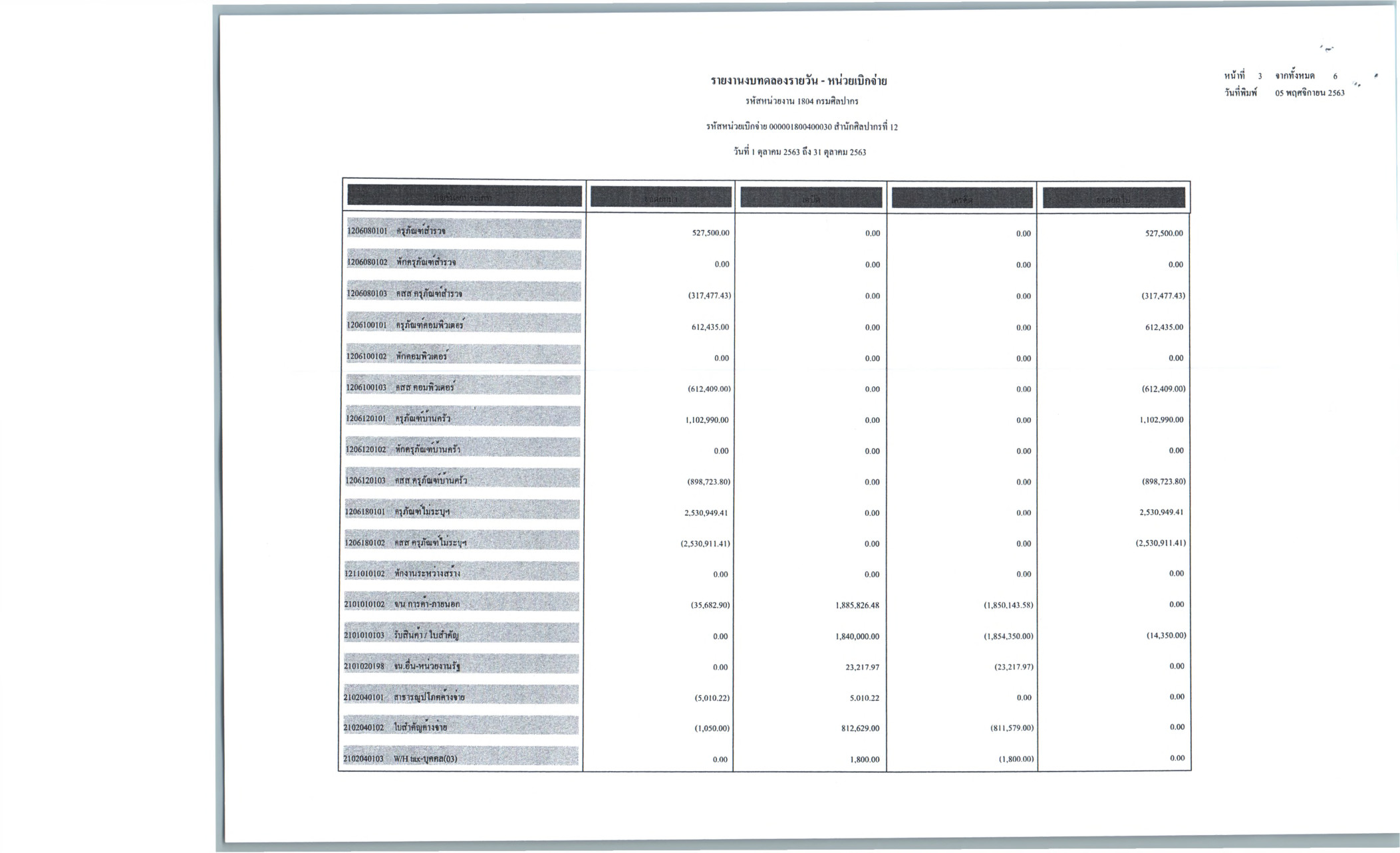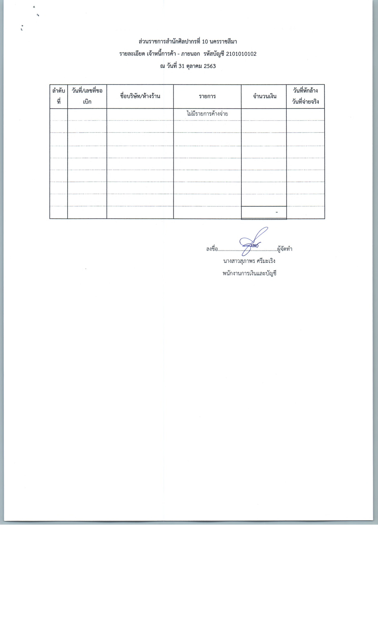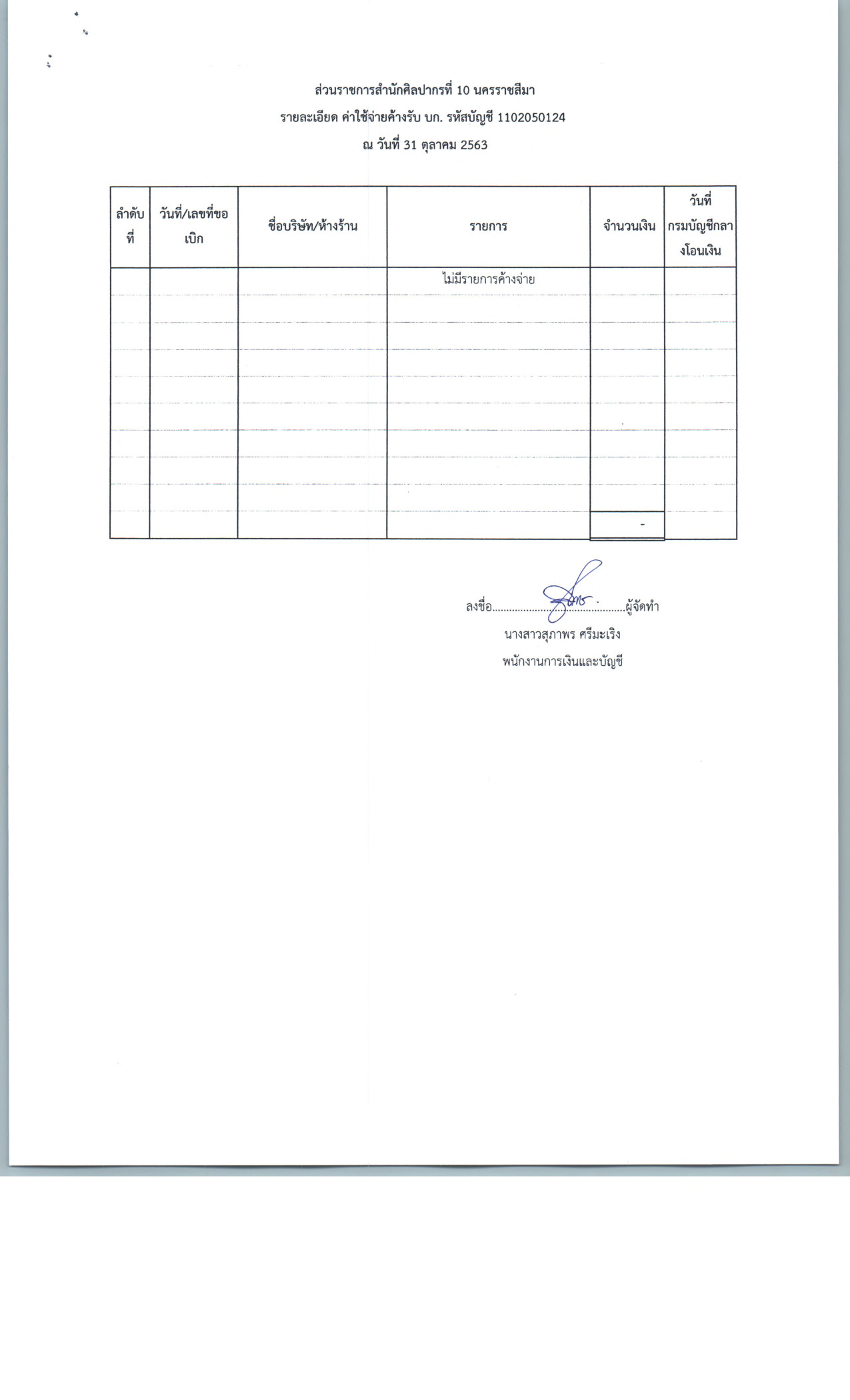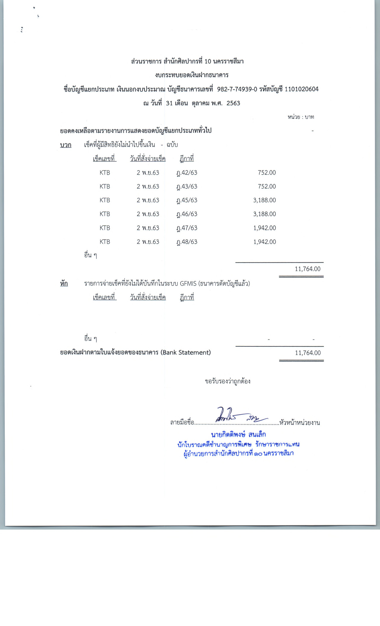 รายงานบัญชีงบทดลองและเอกสารประกอบงบทดลอง สำนักศิลปากรที่ ๑๐ นครราชสีมา (เดือนตุลาคม ๒๕๖๓)