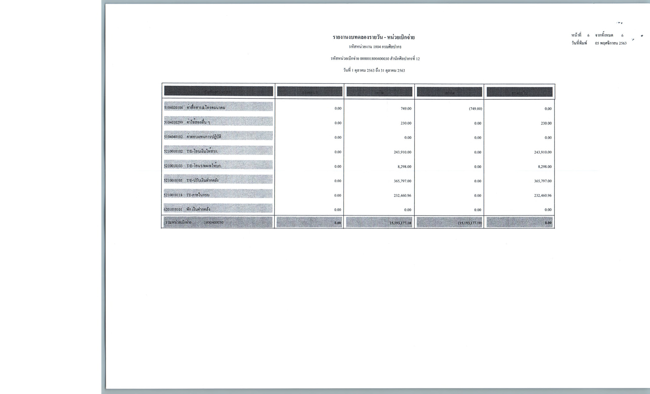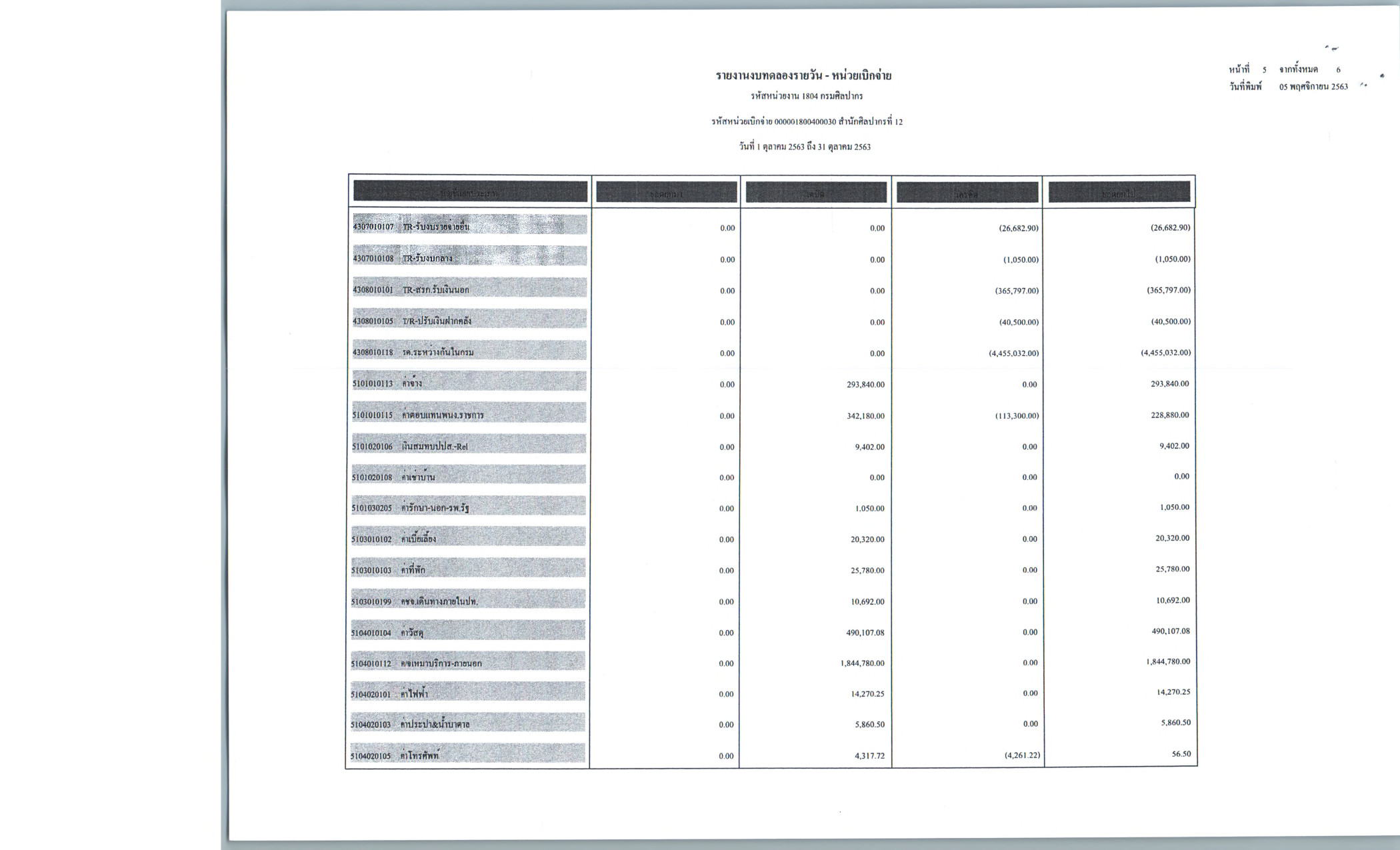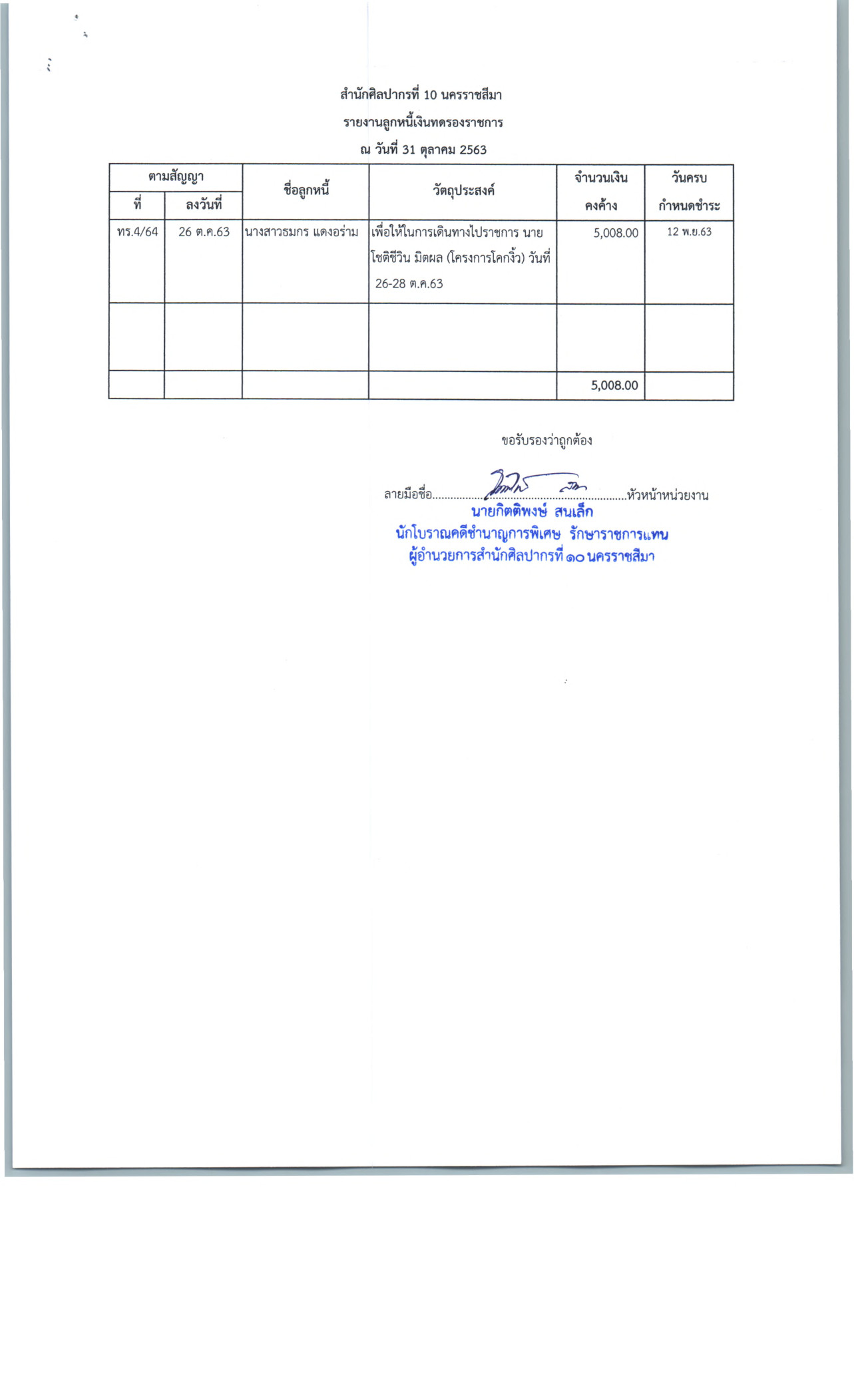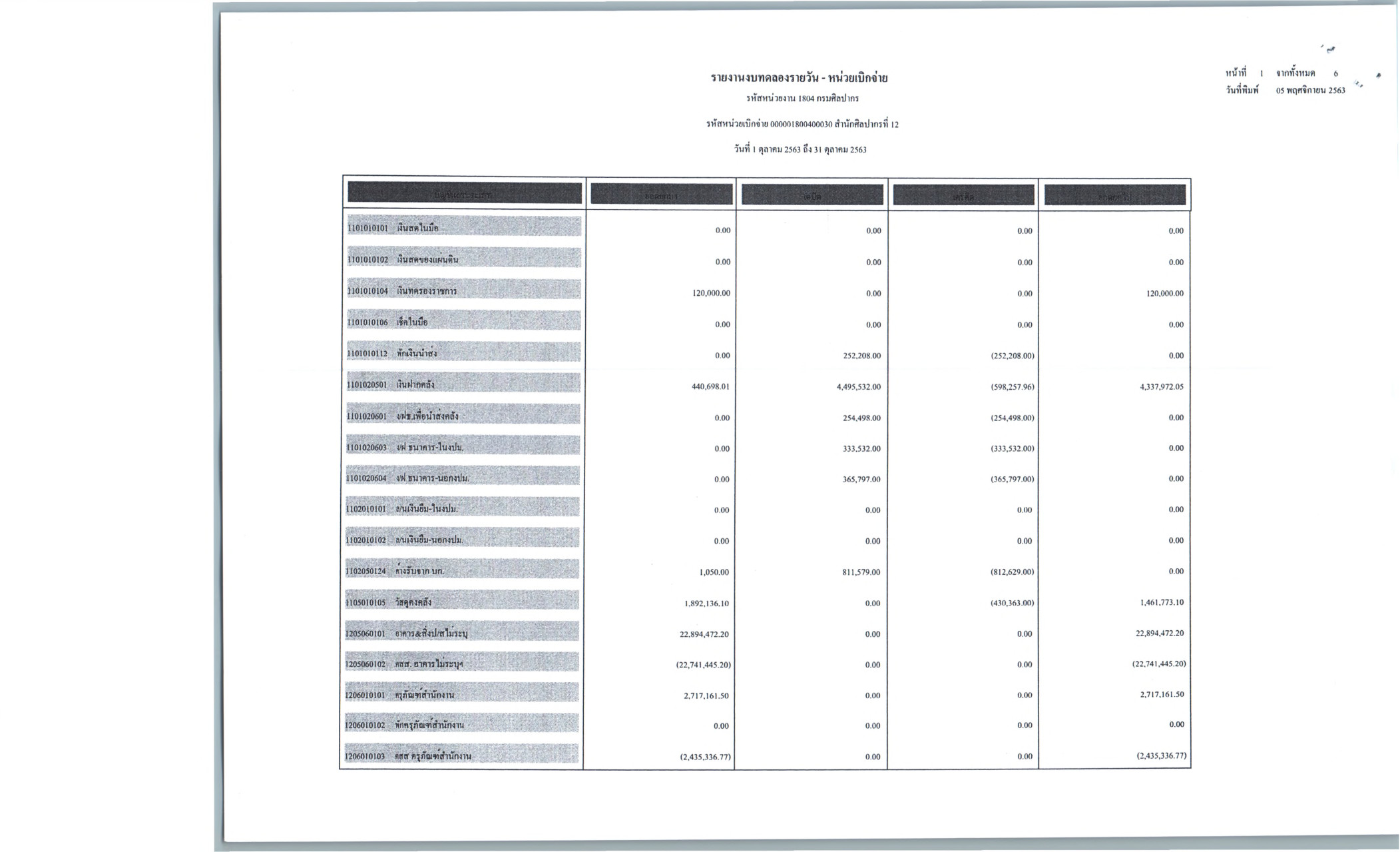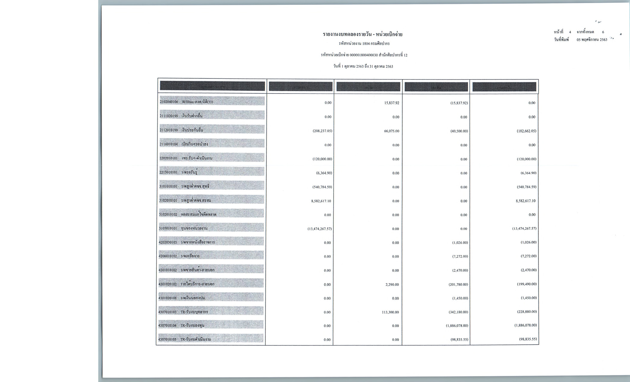 รายงานบัญชีงบทดลองและเอกสารประกอบงบทดลอง สำนักศิลปากรที่ ๑๐ นครราชสีมา (เดือนตุลาคม ๒๕๖๓)