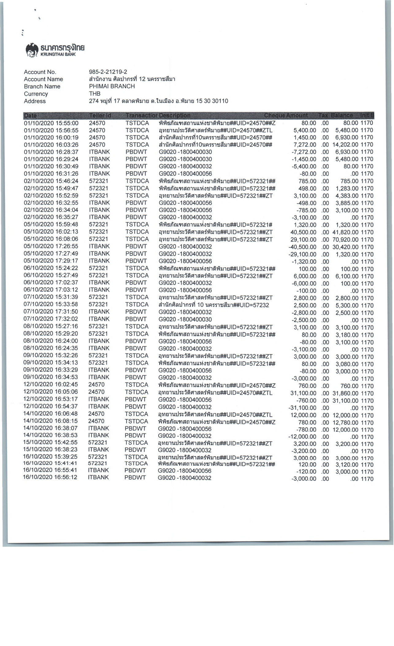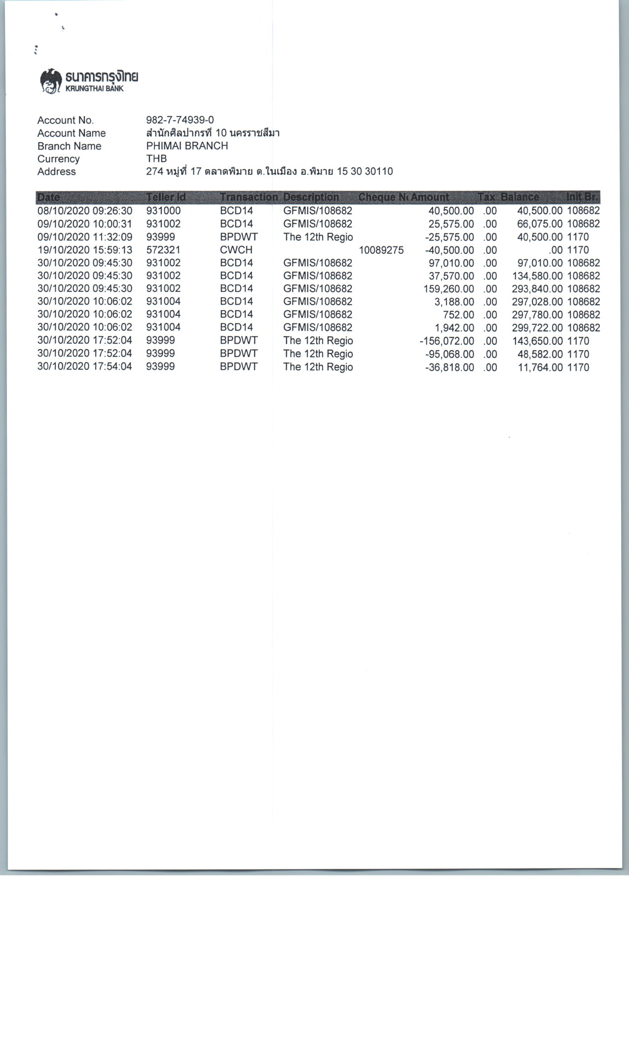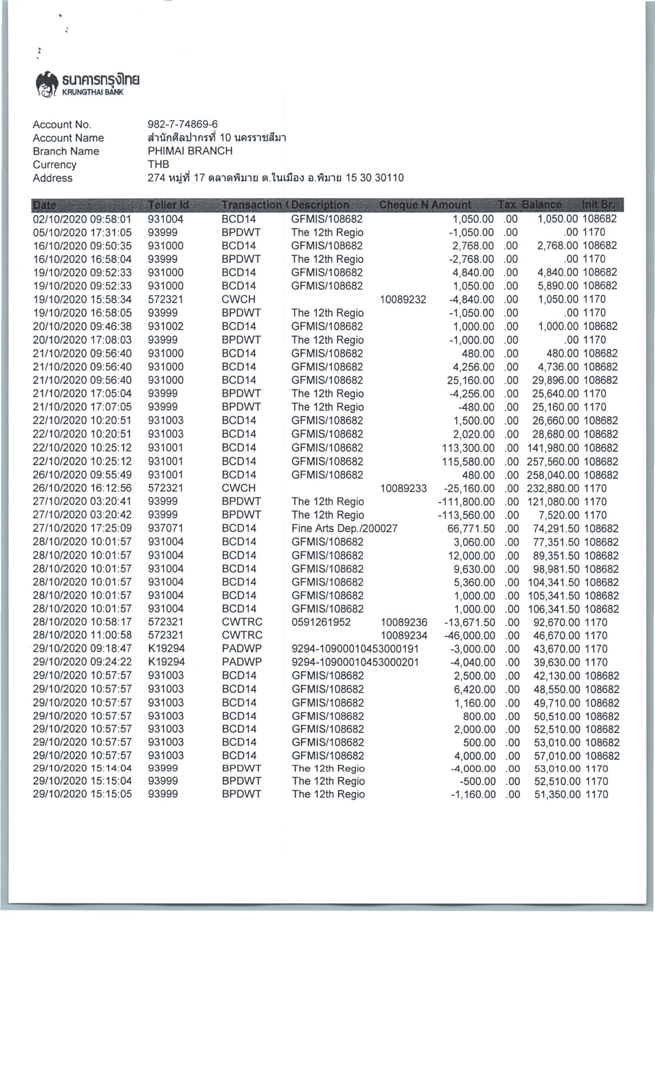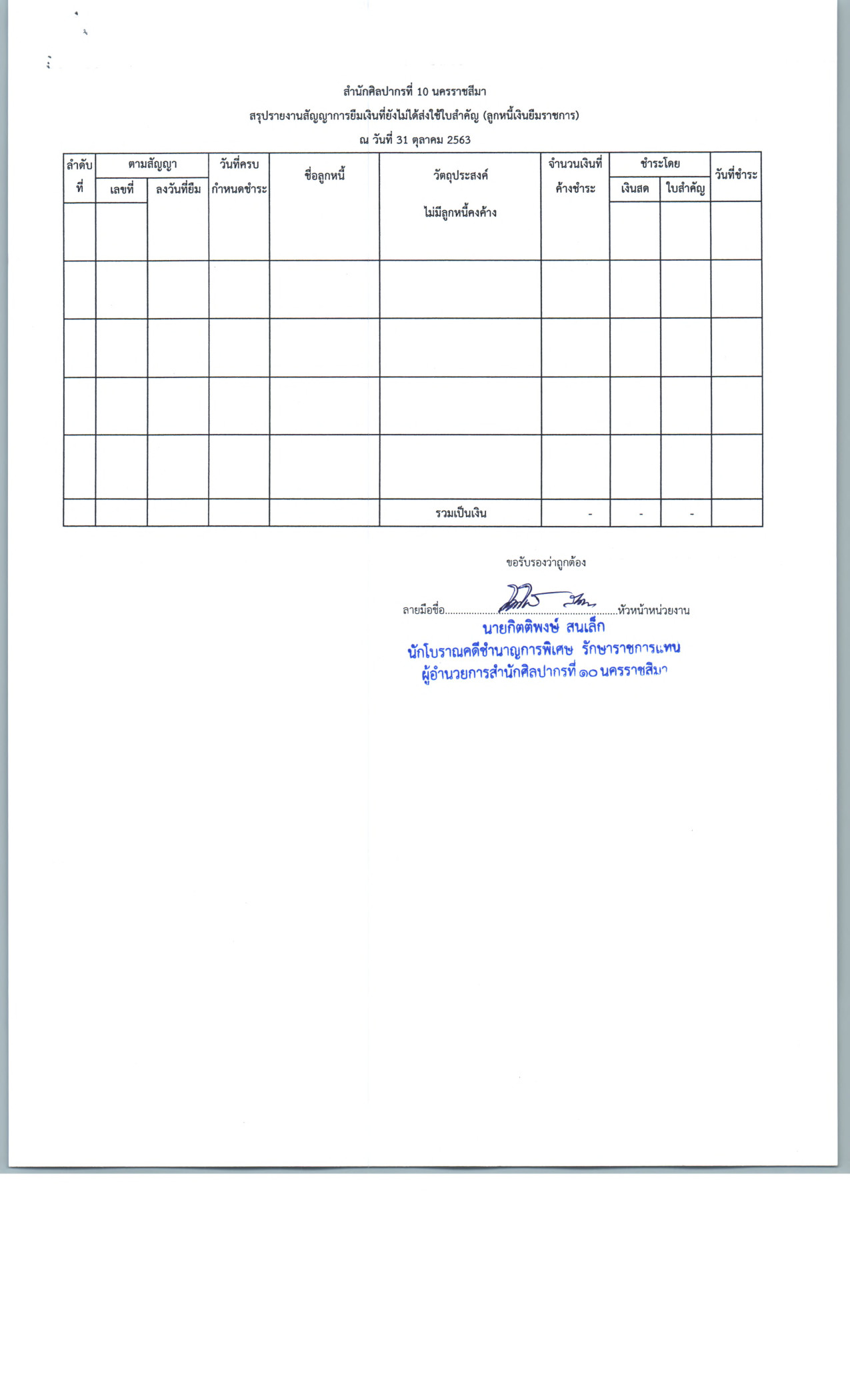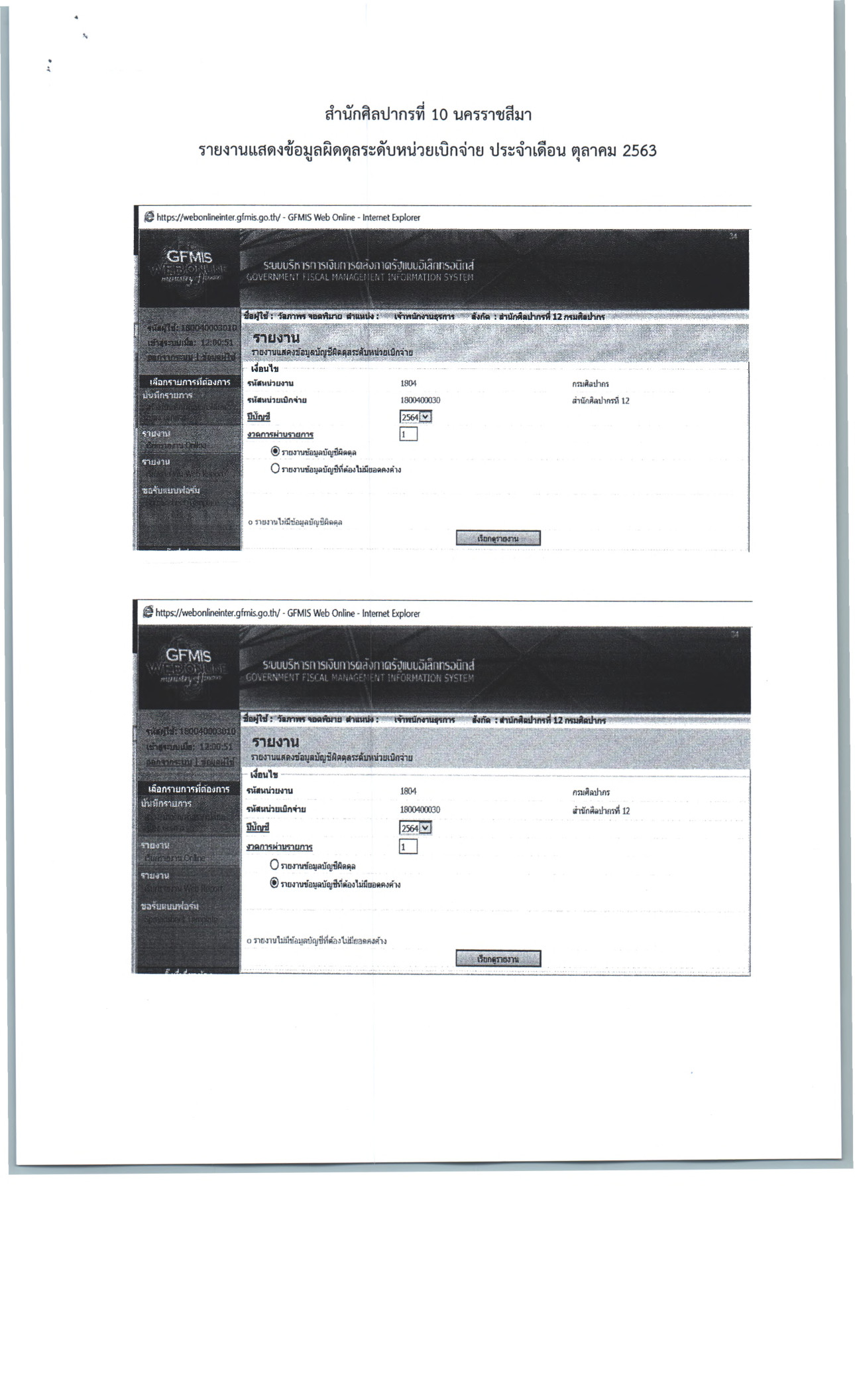 รายงานบัญชีงบทดลองและเอกสารประกอบงบทดลอง สำนักศิลปากรที่ ๑๐ นครราชสีมา (เดือนตุลาคม ๒๕๖๓)