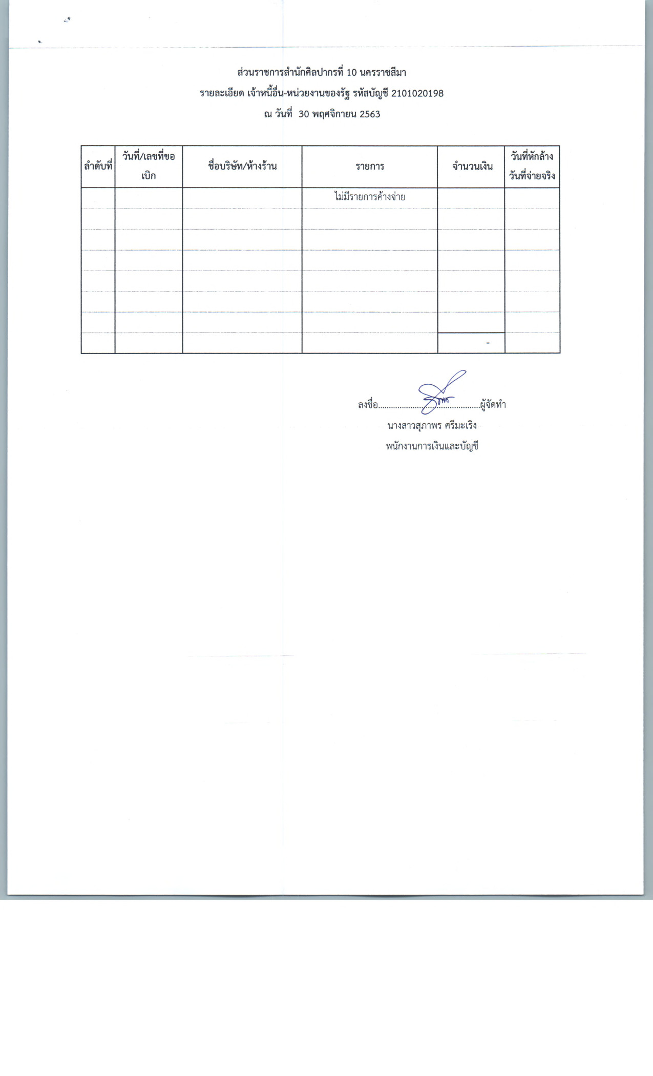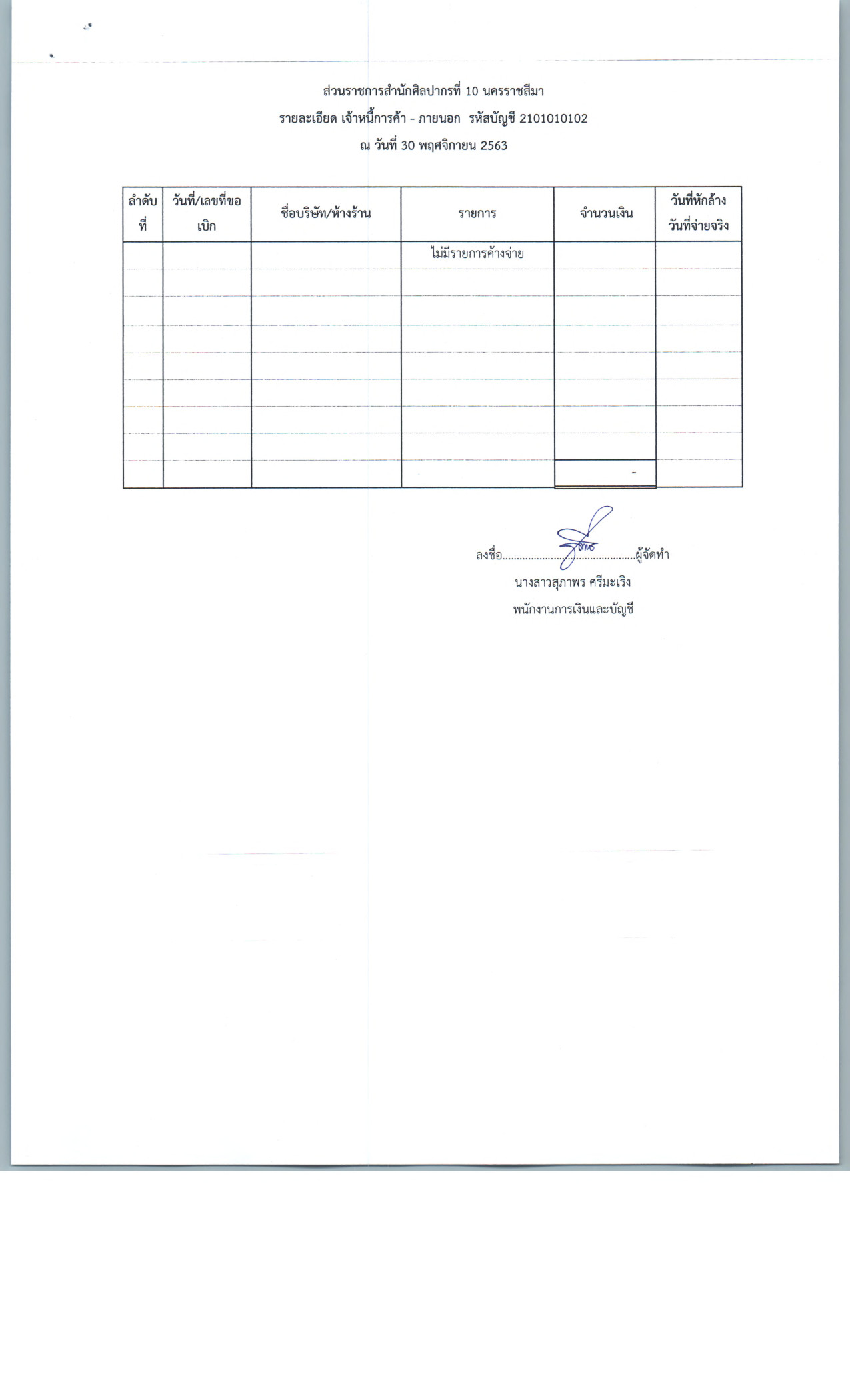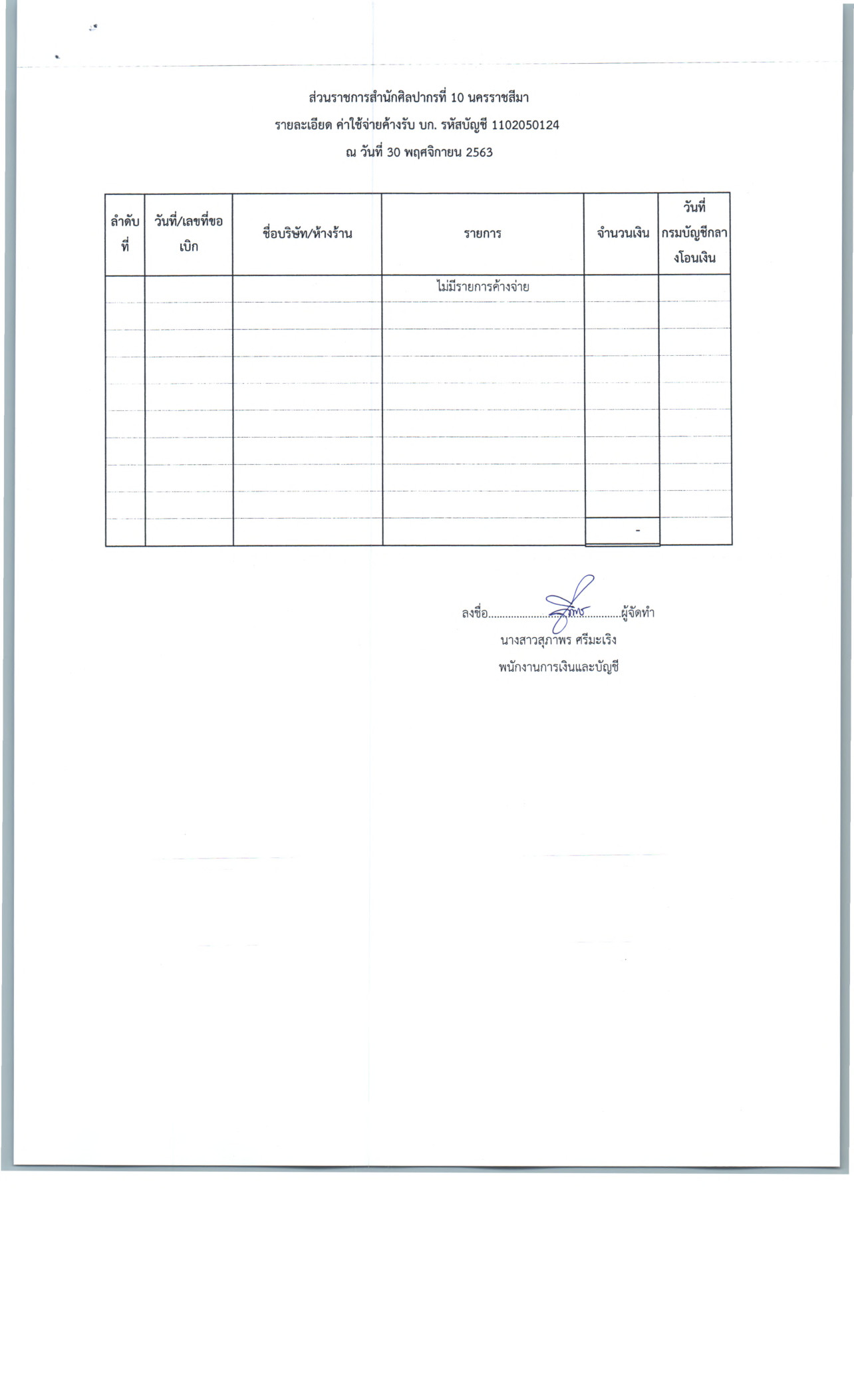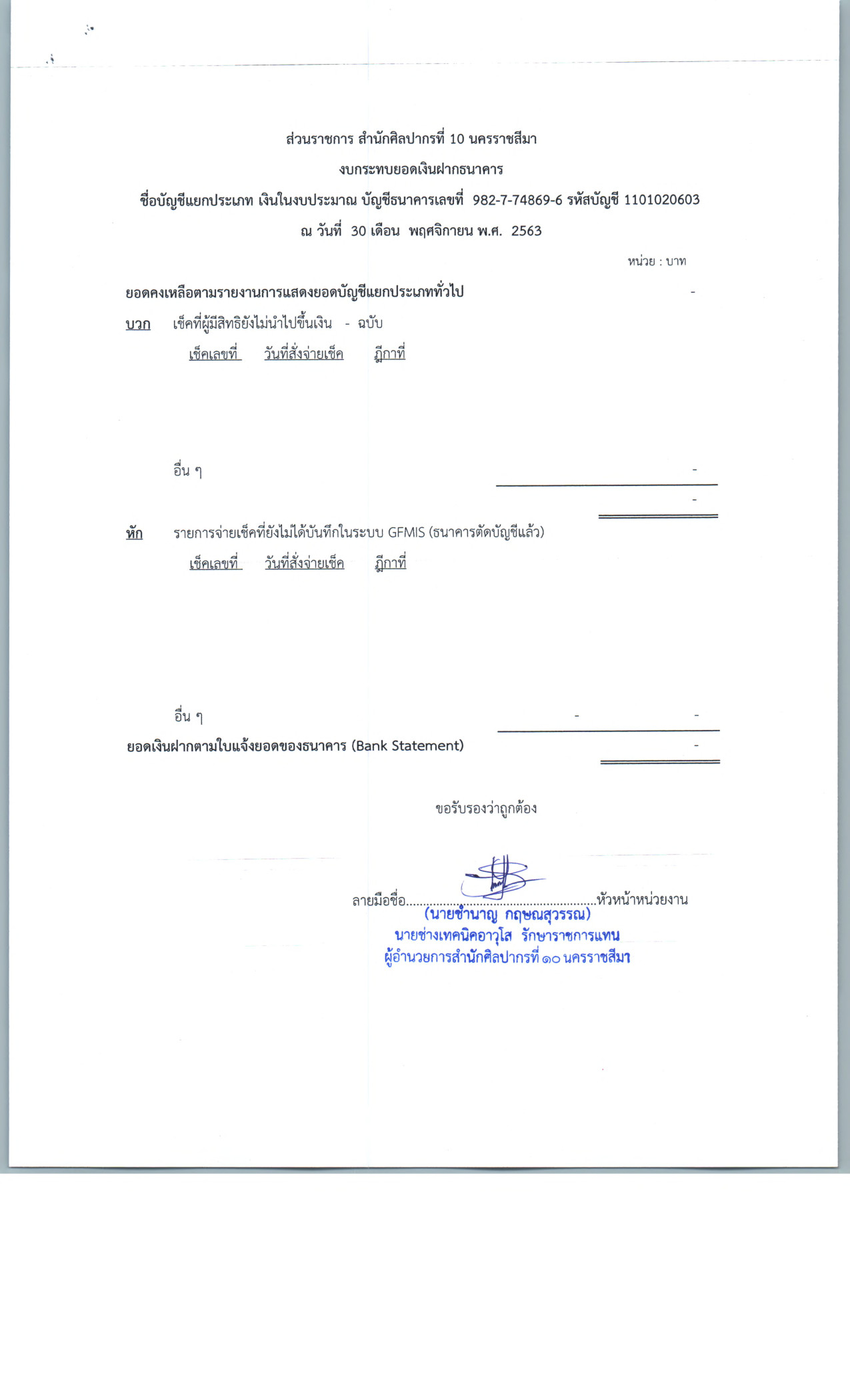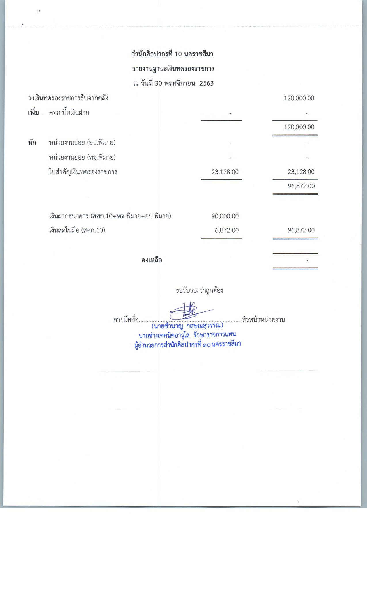 รายงานบัญชีงบทดลองและเอกสารประกอบงบทดลอง สำนักศิลปากรที่ ๑๐ นครราชสีมา (เดือนพฤศจิกายน ๒๕๖๓)
