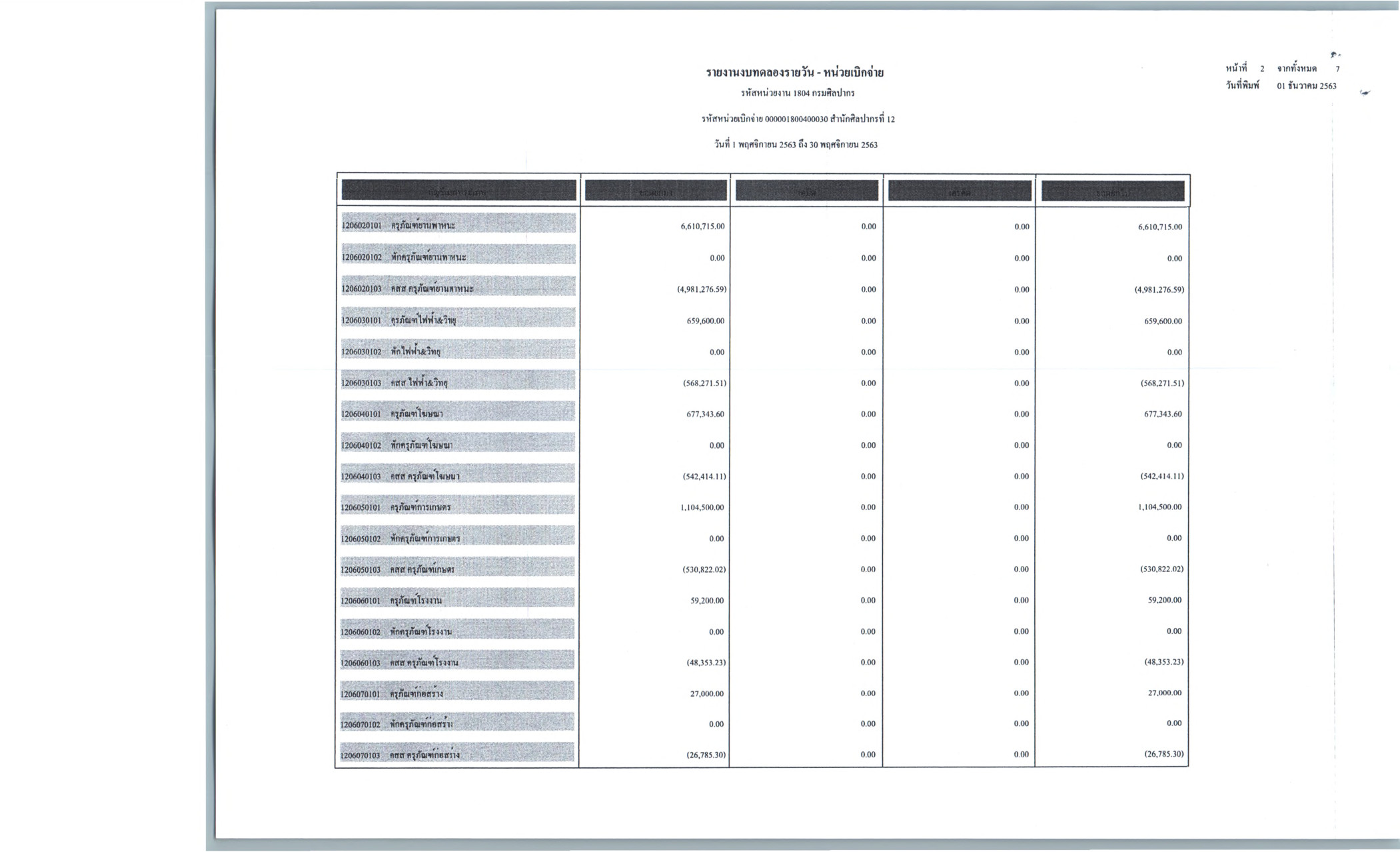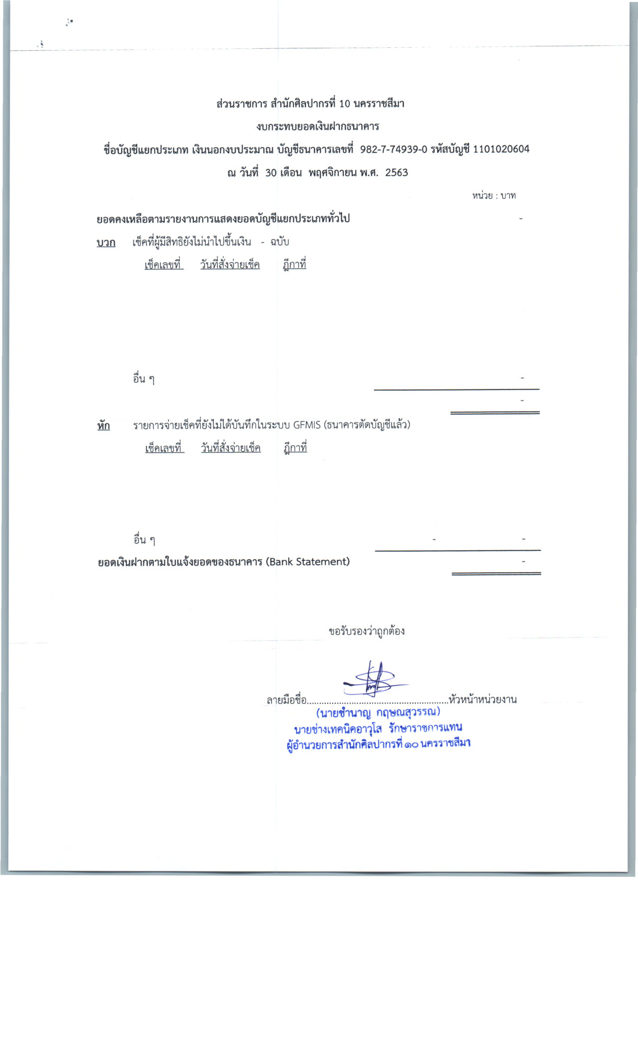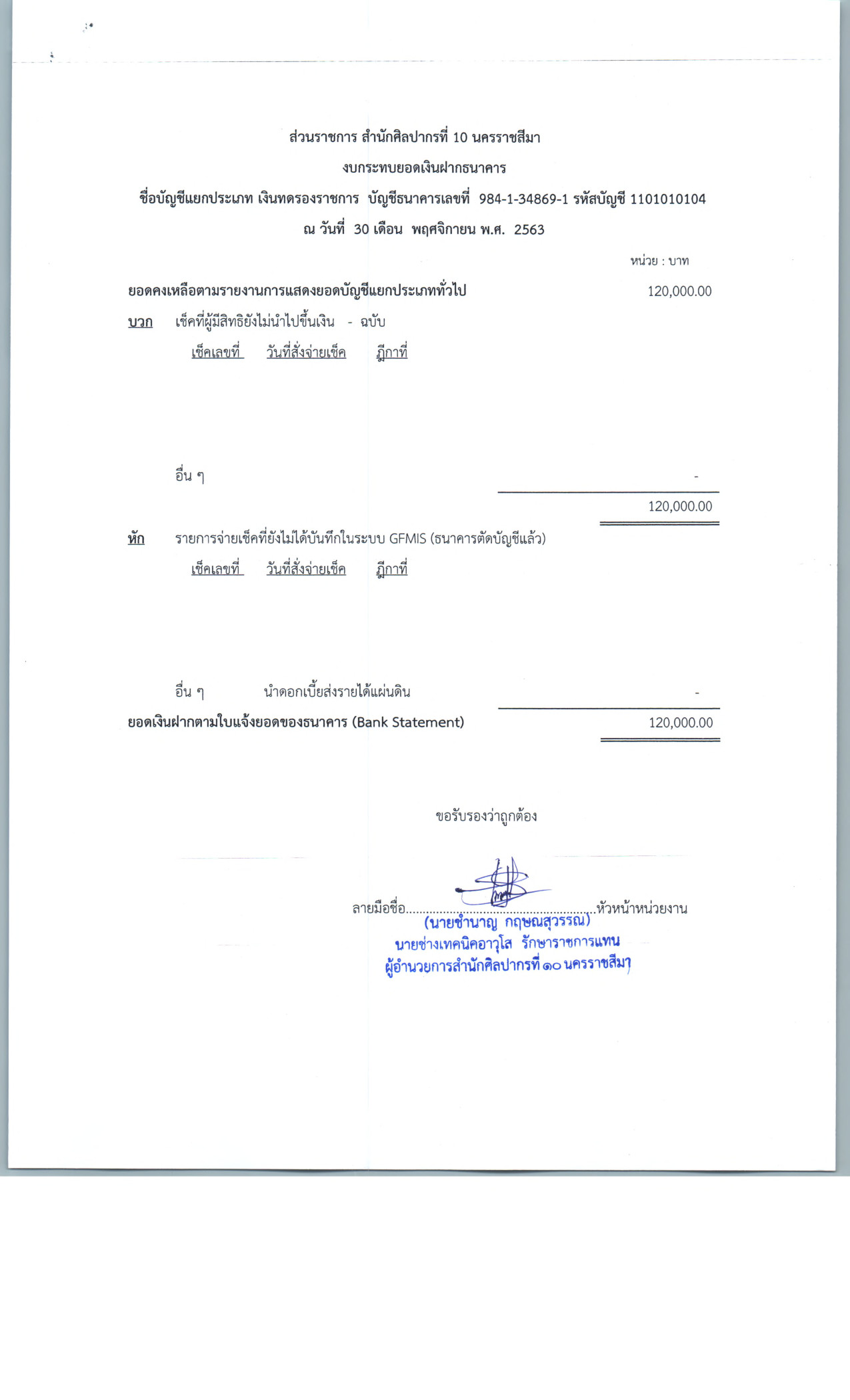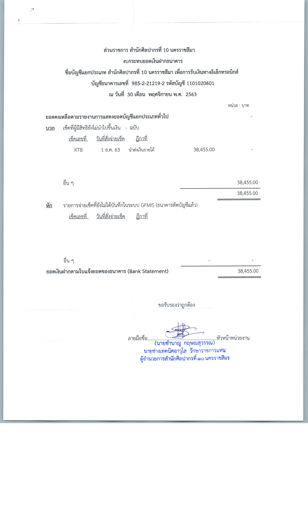 รายงานบัญชีงบทดลองและเอกสารประกอบงบทดลอง สำนักศิลปากรที่ ๑๐ นครราชสีมา (เดือนพฤศจิกายน ๒๕๖๓)