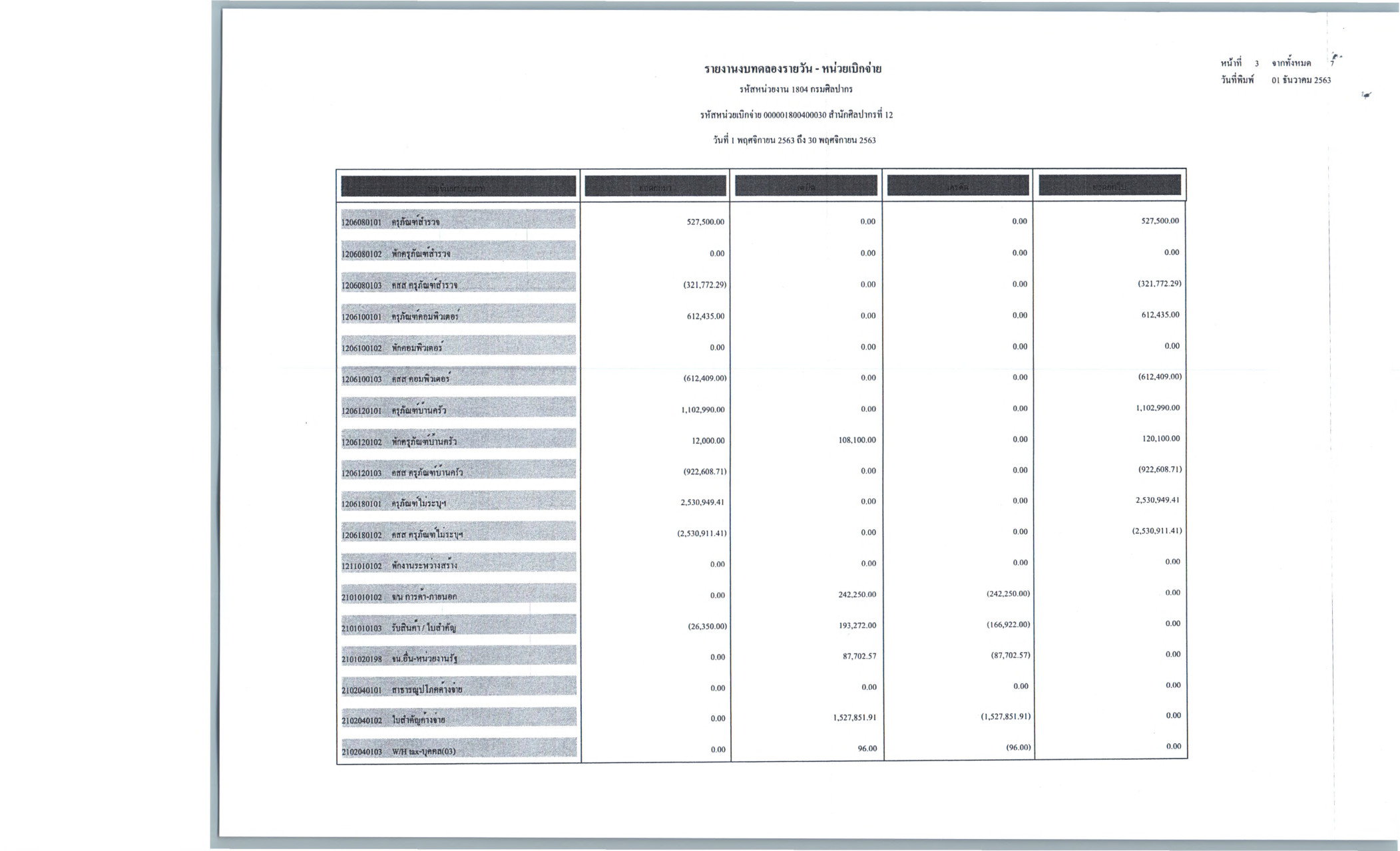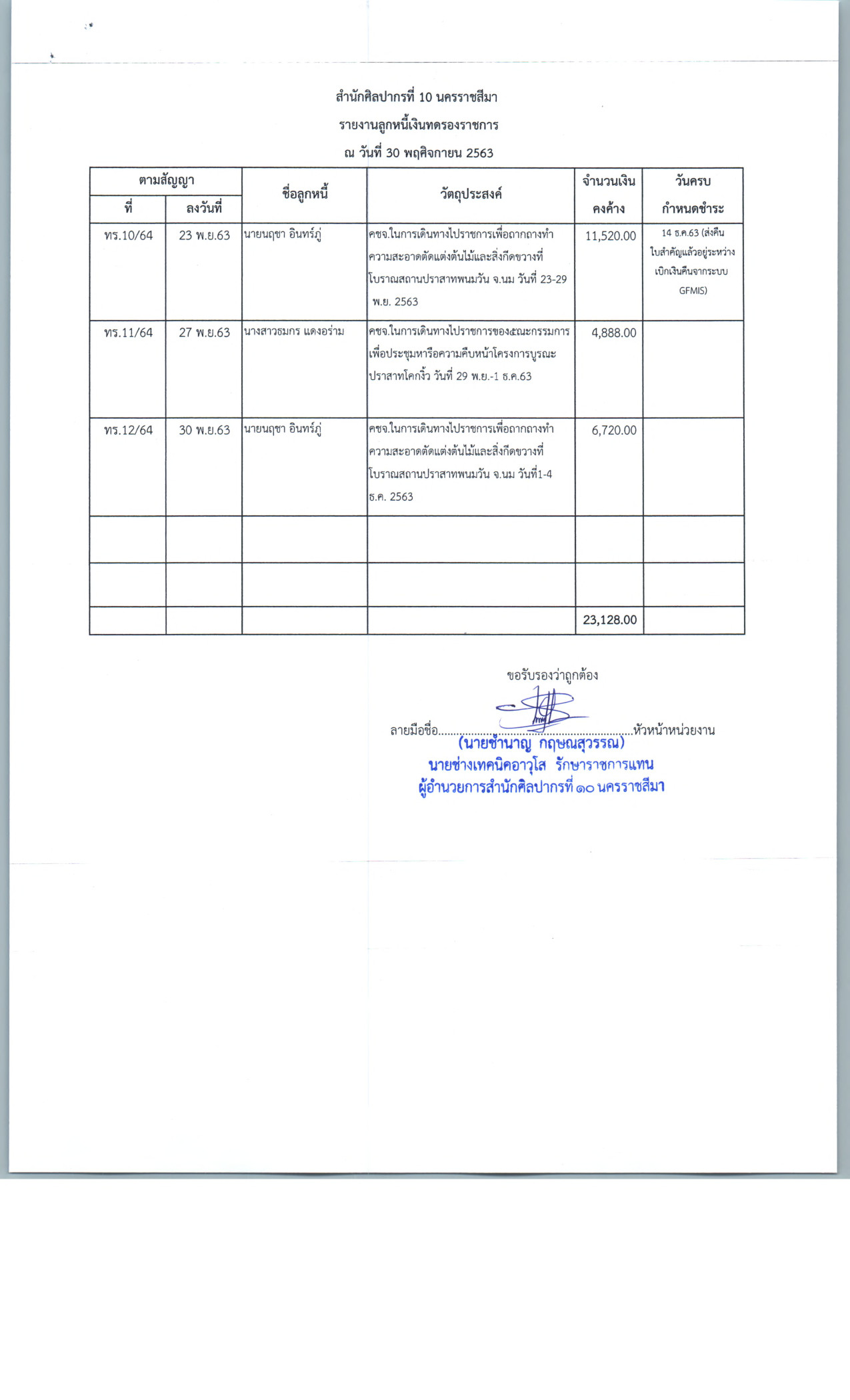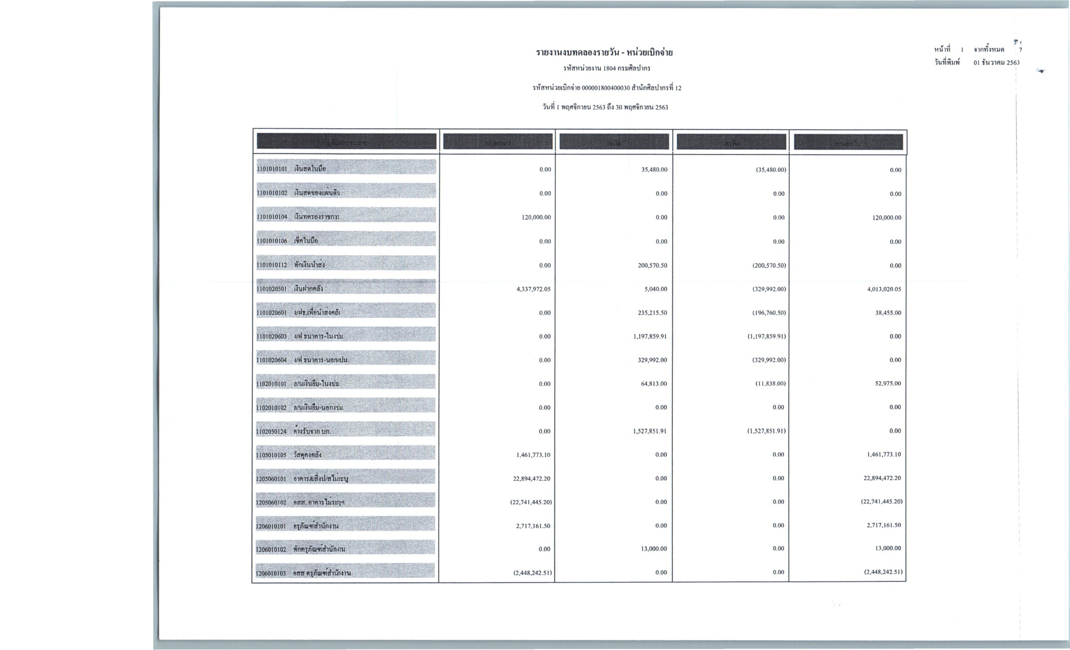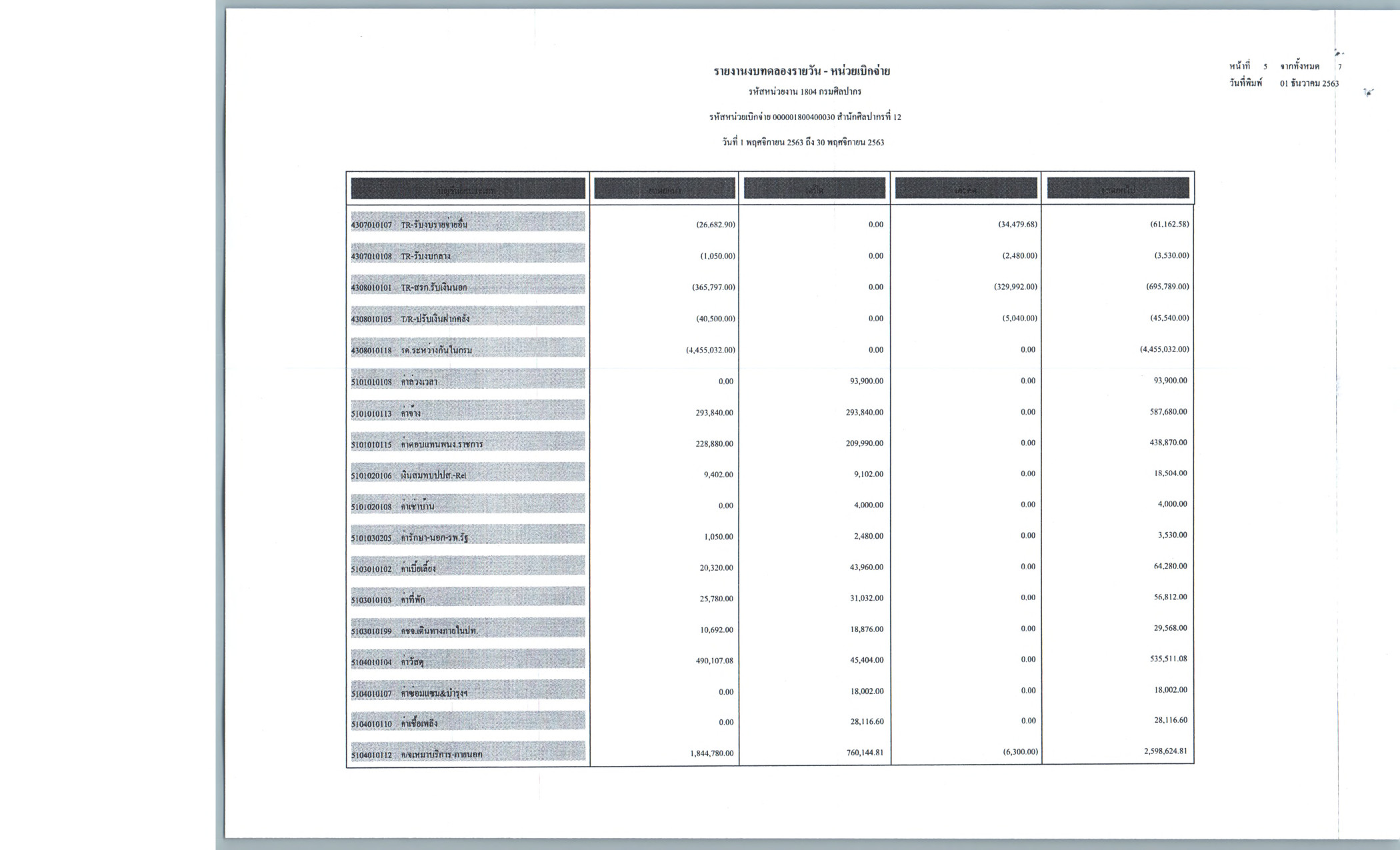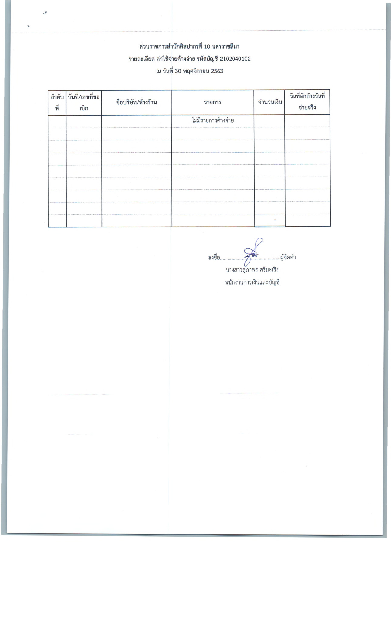 รายงานบัญชีงบทดลองและเอกสารประกอบงบทดลอง สำนักศิลปากรที่ ๑๐ นครราชสีมา (เดือนพฤศจิกายน ๒๕๖๓)