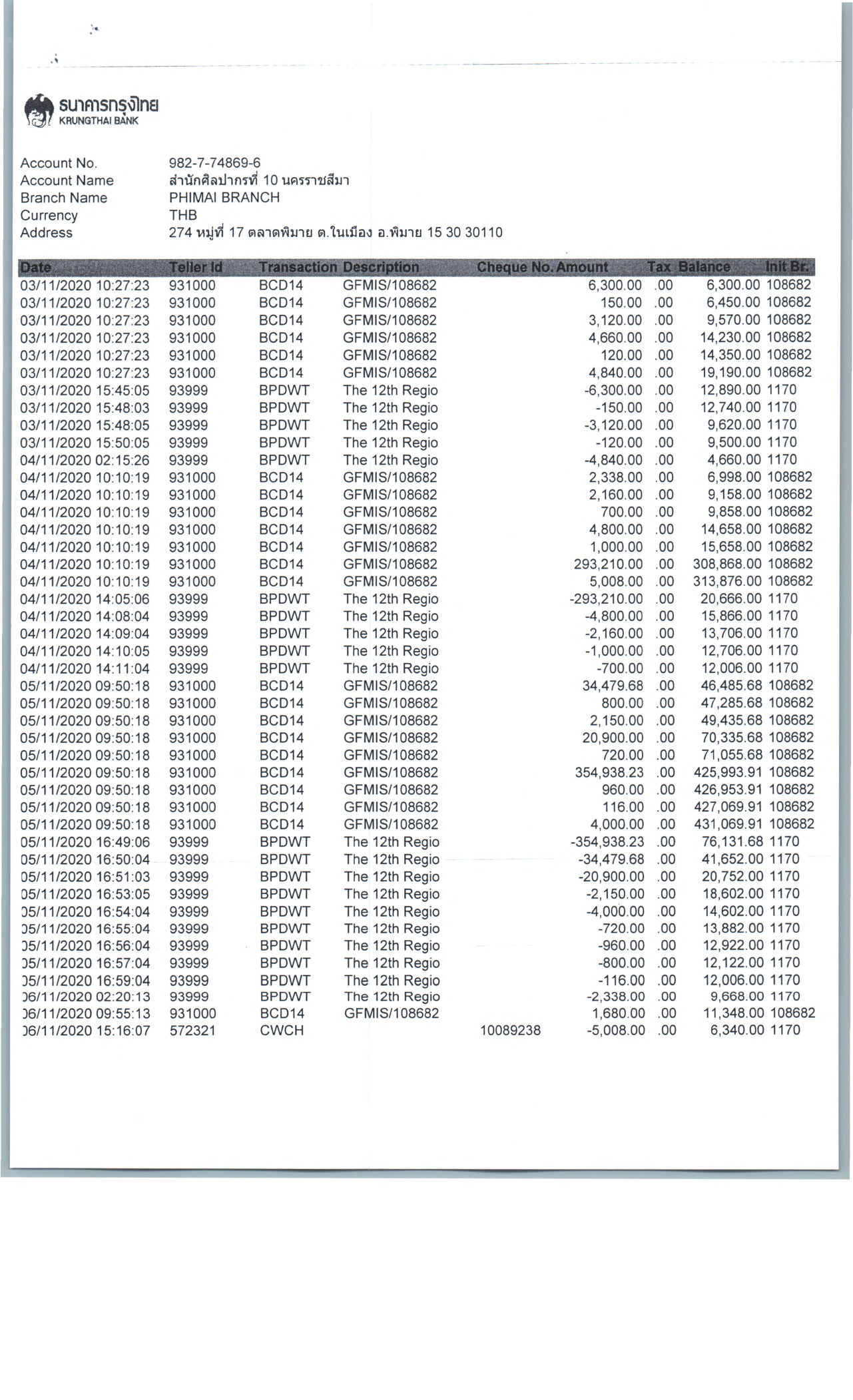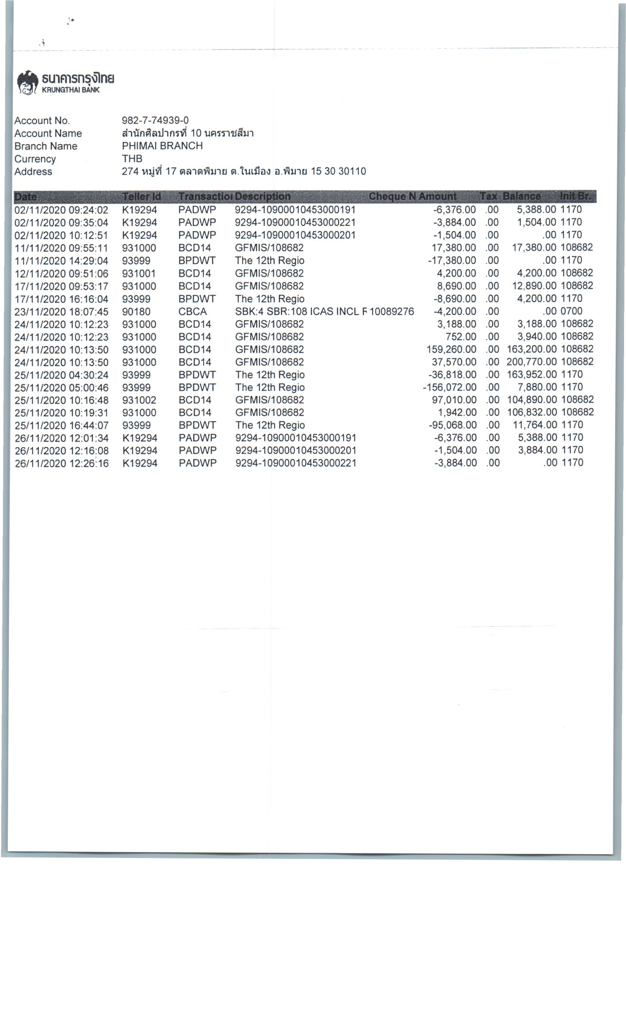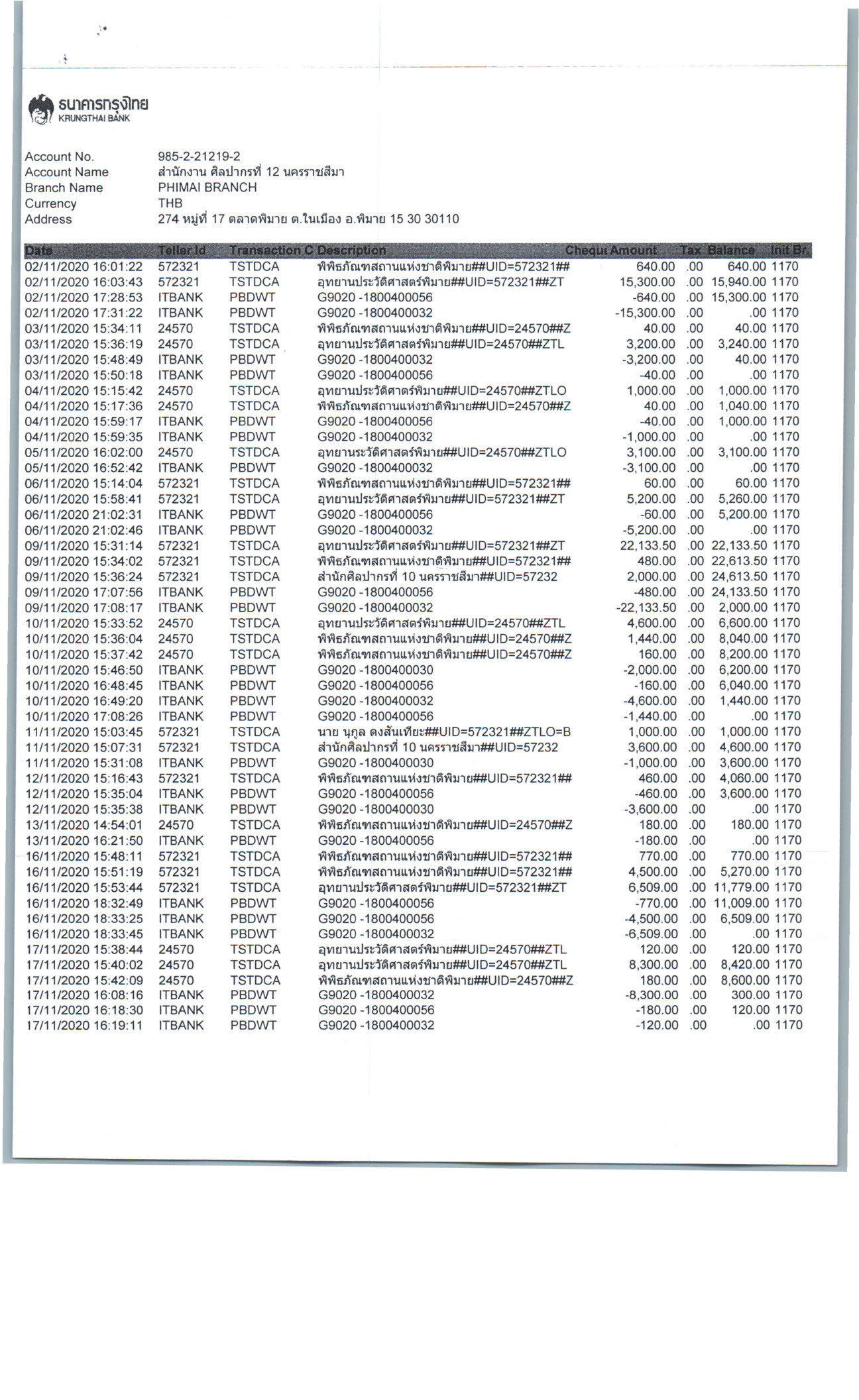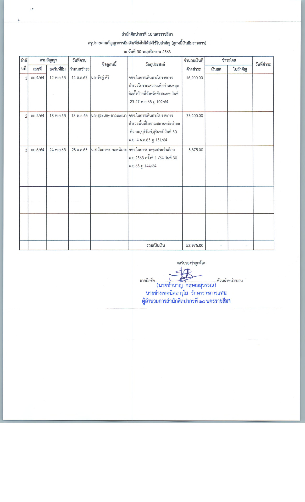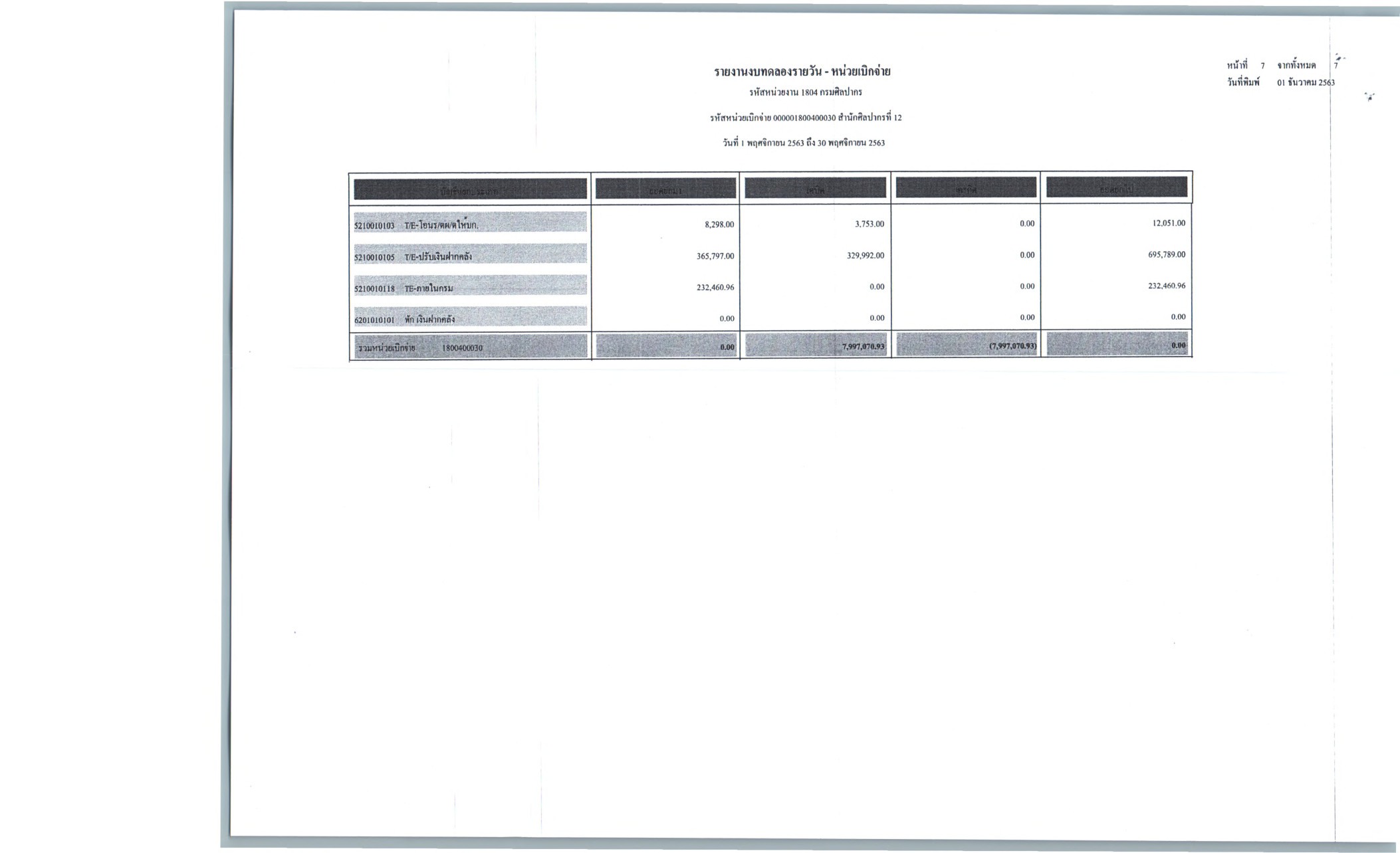 รายงานบัญชีงบทดลองและเอกสารประกอบงบทดลอง สำนักศิลปากรที่ ๑๐ นครราชสีมา (เดือนพฤศจิกายน ๒๕๖๓)
