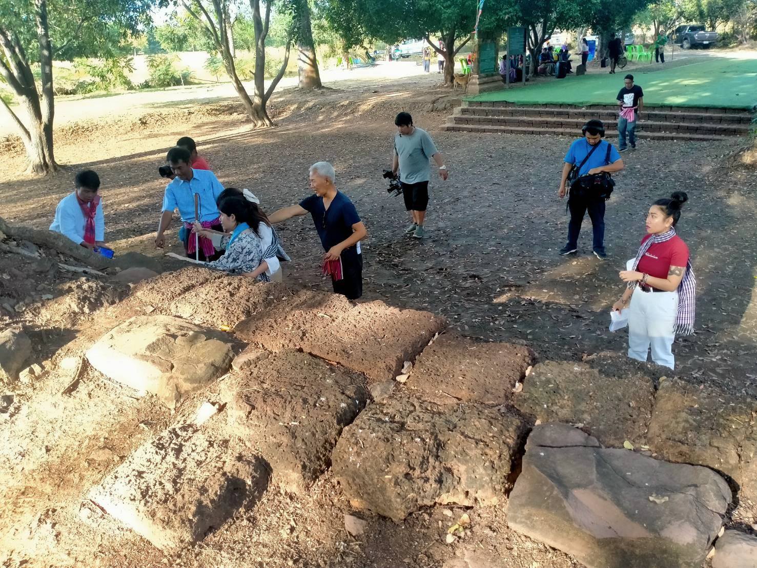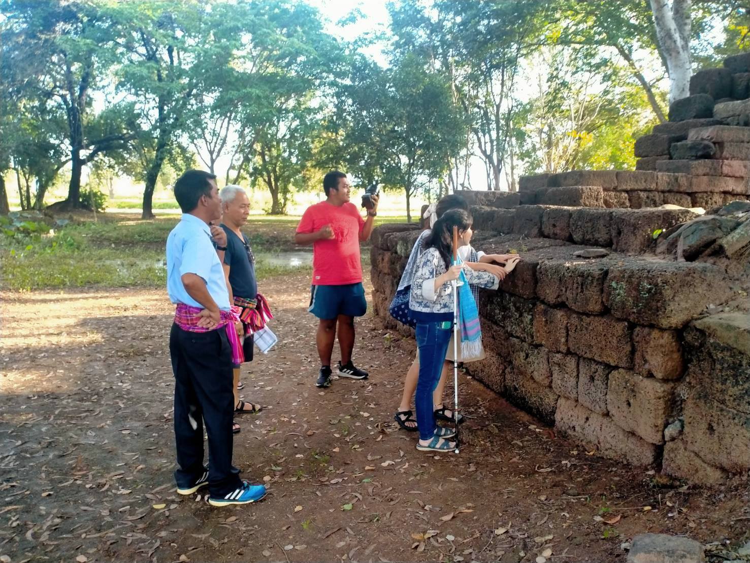 นายนภสินธุ์ บุญล้อม นักโบราณคดีปฏิบัติการ สำนักศิลปากรที่ ๑๐ นครราชสีมา ลงพื้นที่เพื่อให้ข้อมูลและประวัติความเป็นมาของปราสาทห้วยแคน อำเภอห้วยแถลง จังหวัดนครราชสีมา
