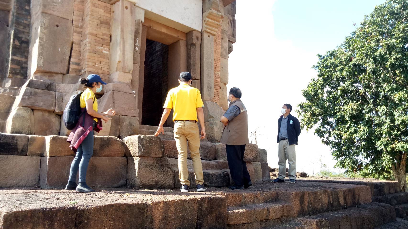 วันจันทร์ที่ ๒๘ ธันวาคม พ.ศ. ๒๕๖๓ นายทศพร ศรีสมาน ผู้อำนวยการสำนักศิลปากรที่ ๑๐ นครราชสีมา พร้อมด้วยนายชำนาญ กฤษณสุวรรณ ผู้อำนวยการกลุ่มอนุรักษ์โบราณสถาน และนายภาณุวัฒน์ เอื้อสามาลย์ หัวหน้าอุทยานประวัติศาสตร์พนมรุ้ง ลงพื้นที่ตรวจโบราณสถานในเขตจังหวัดบุรีรัมย์