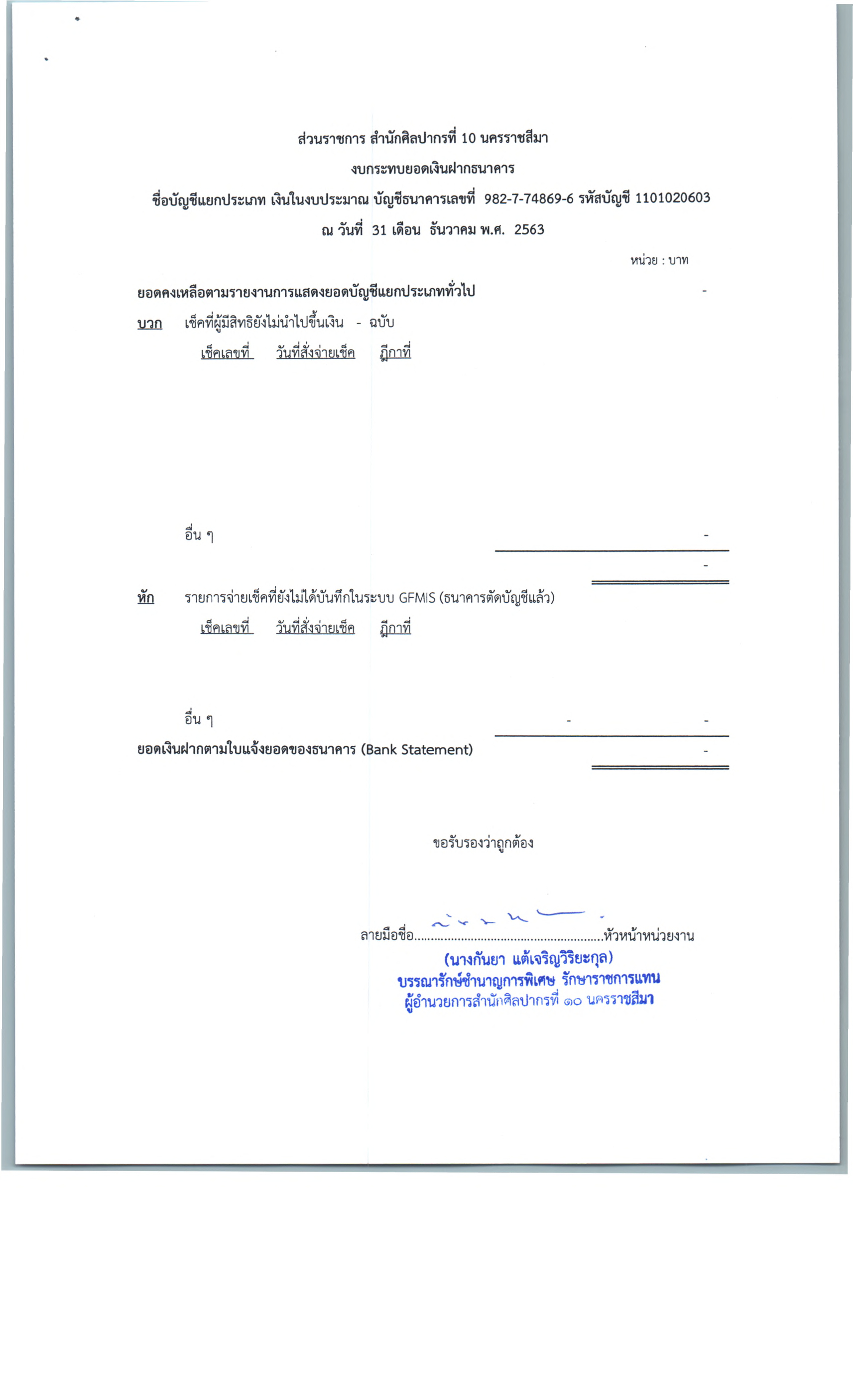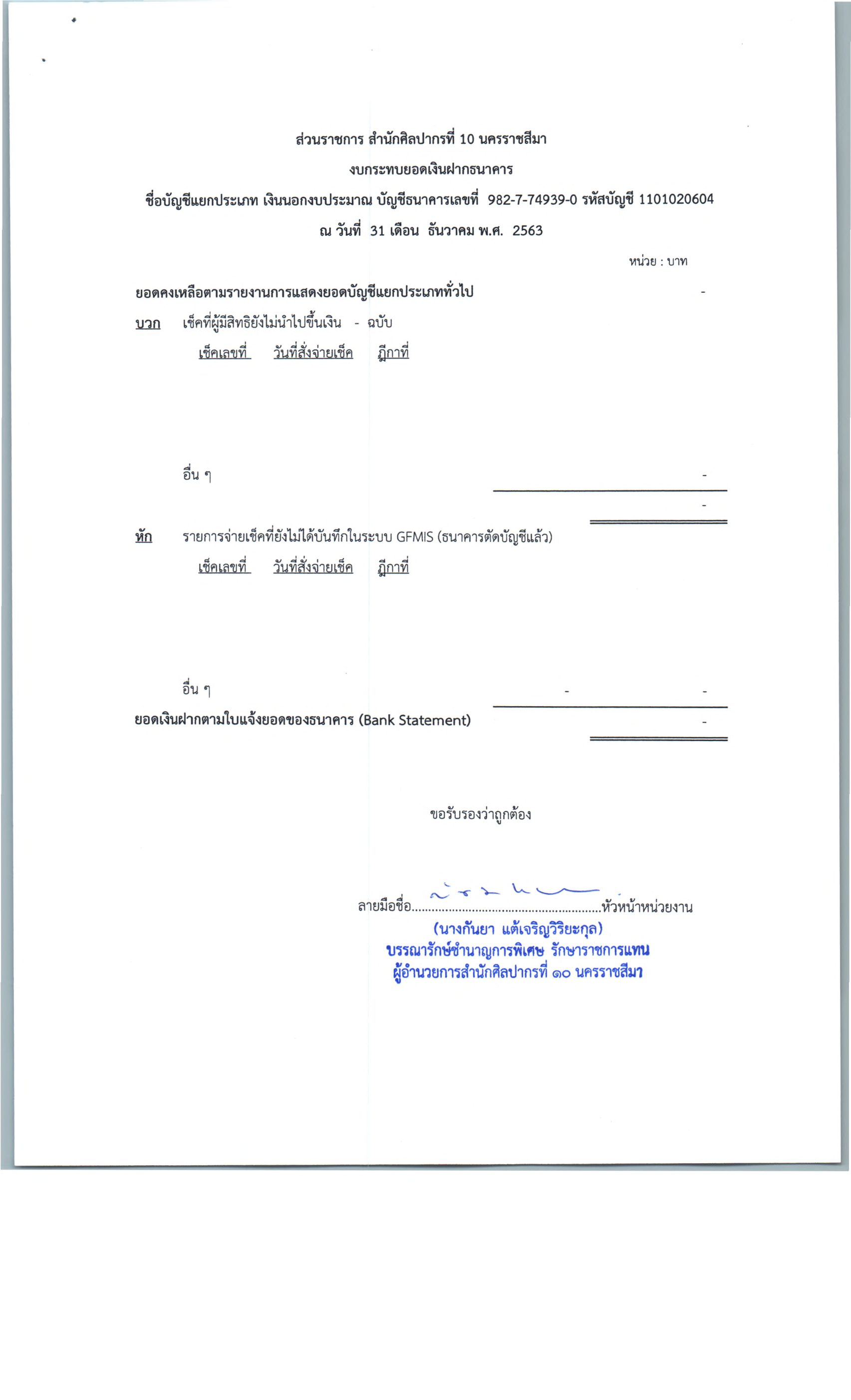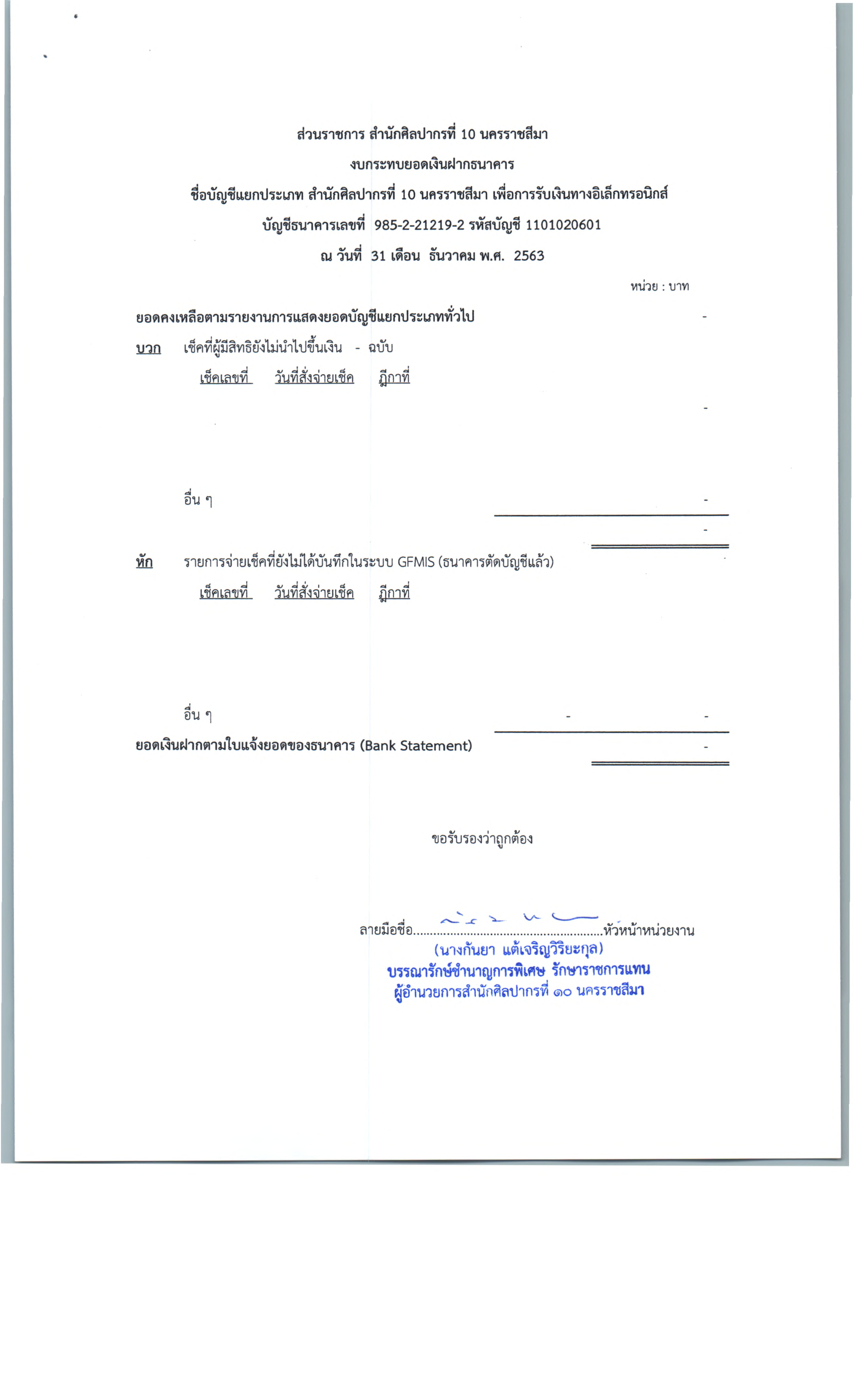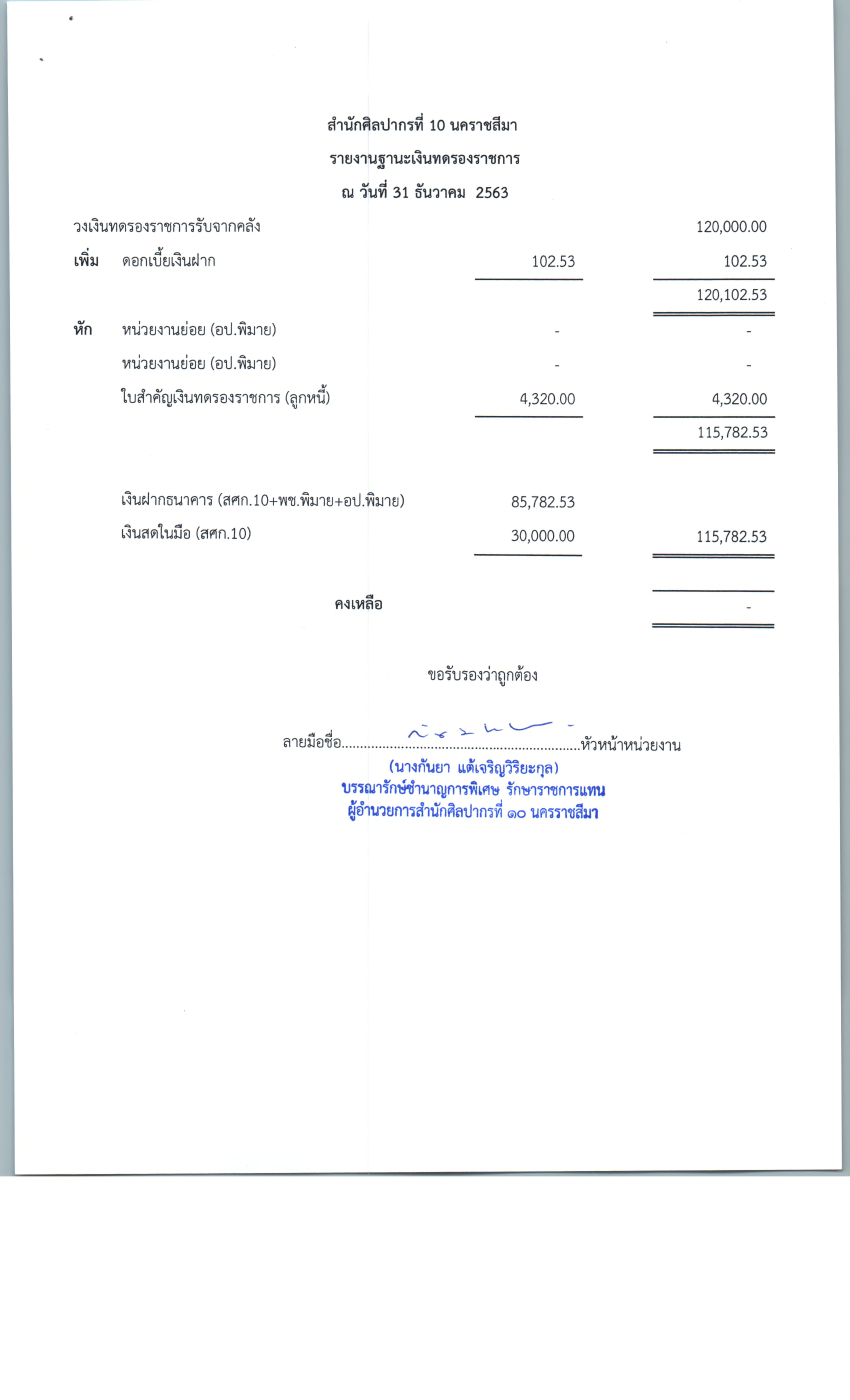 รายงานบัญชีงบทดลองและเอกสารประกอบงบทดลอง สำนักศิลปากรที่ ๑๐ นครราชสีมา (เดือนธันวาคม ๒๕๖๓)
