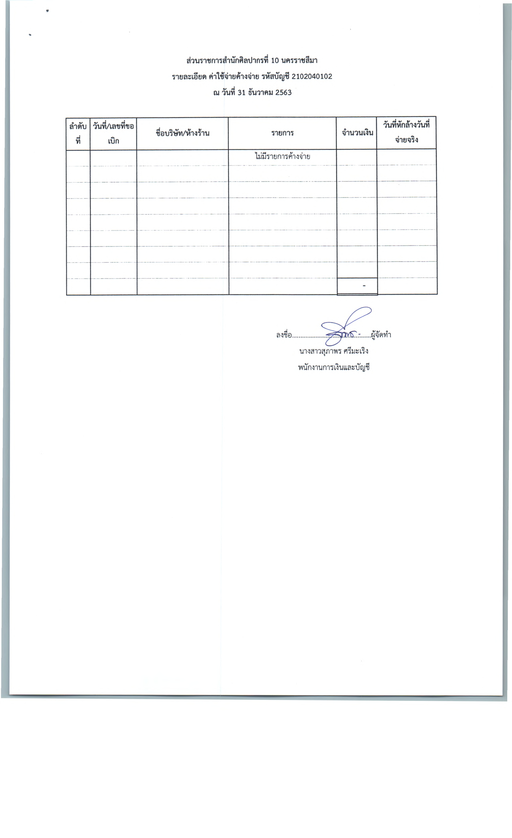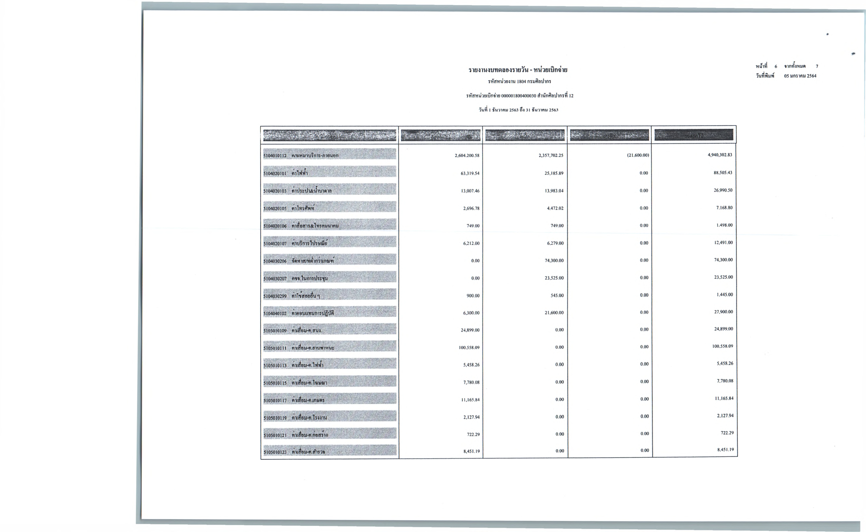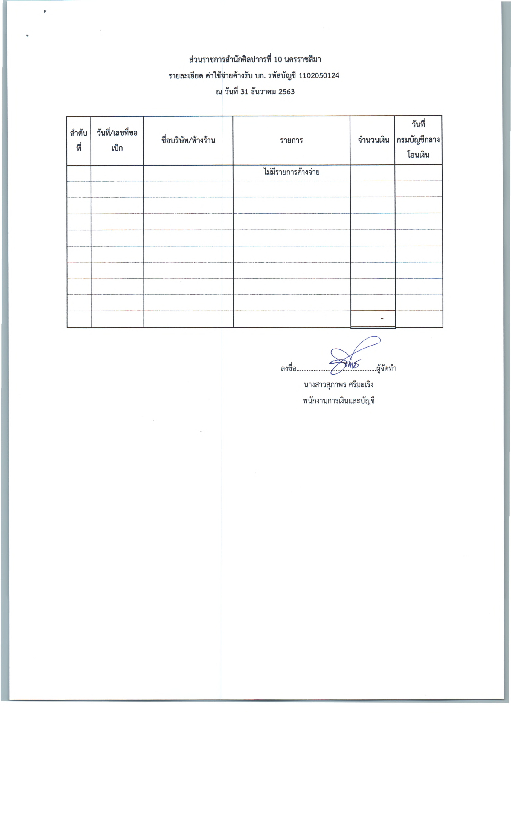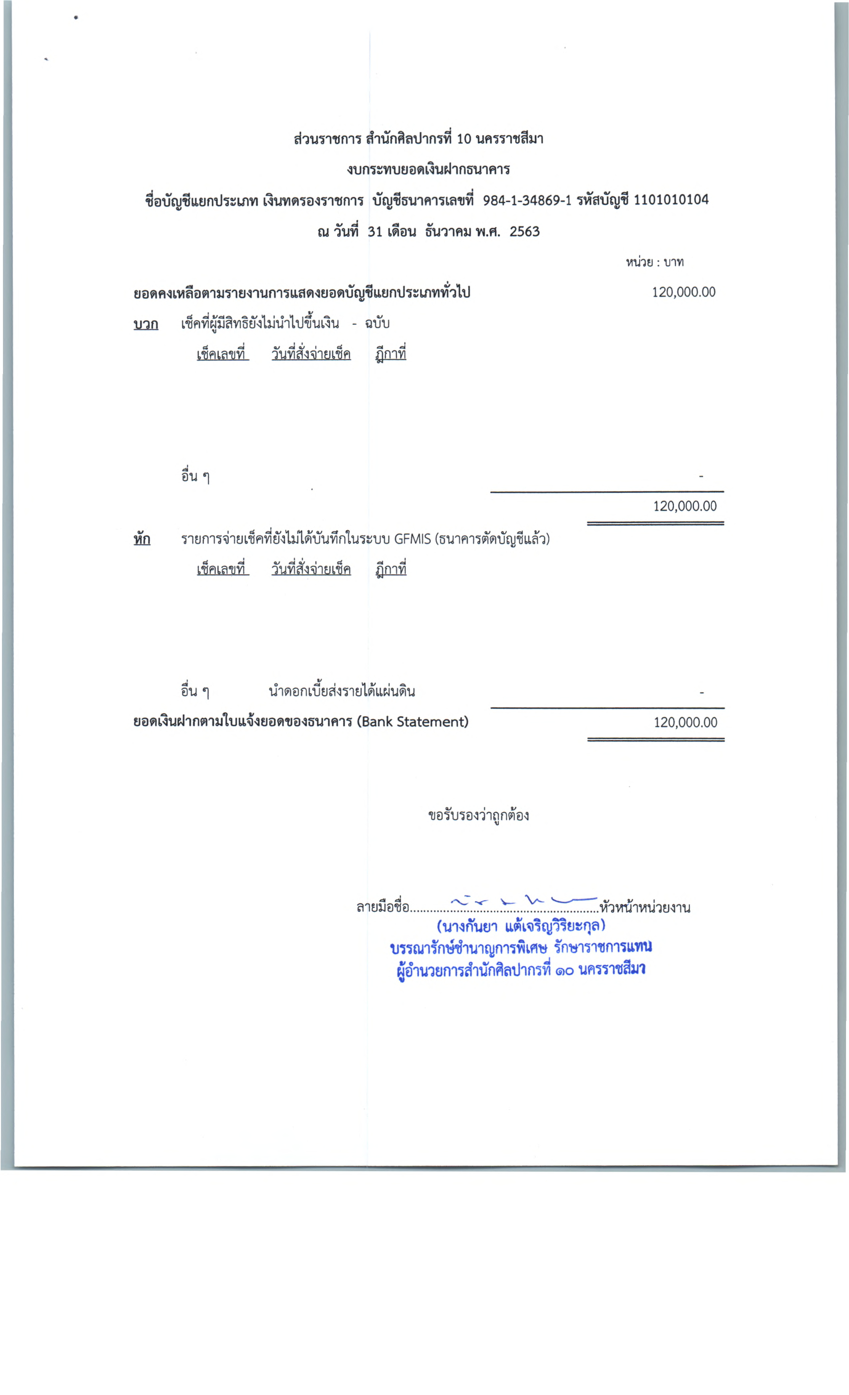 รายงานบัญชีงบทดลองและเอกสารประกอบงบทดลอง สำนักศิลปากรที่ ๑๐ นครราชสีมา (เดือนธันวาคม ๒๕๖๓)