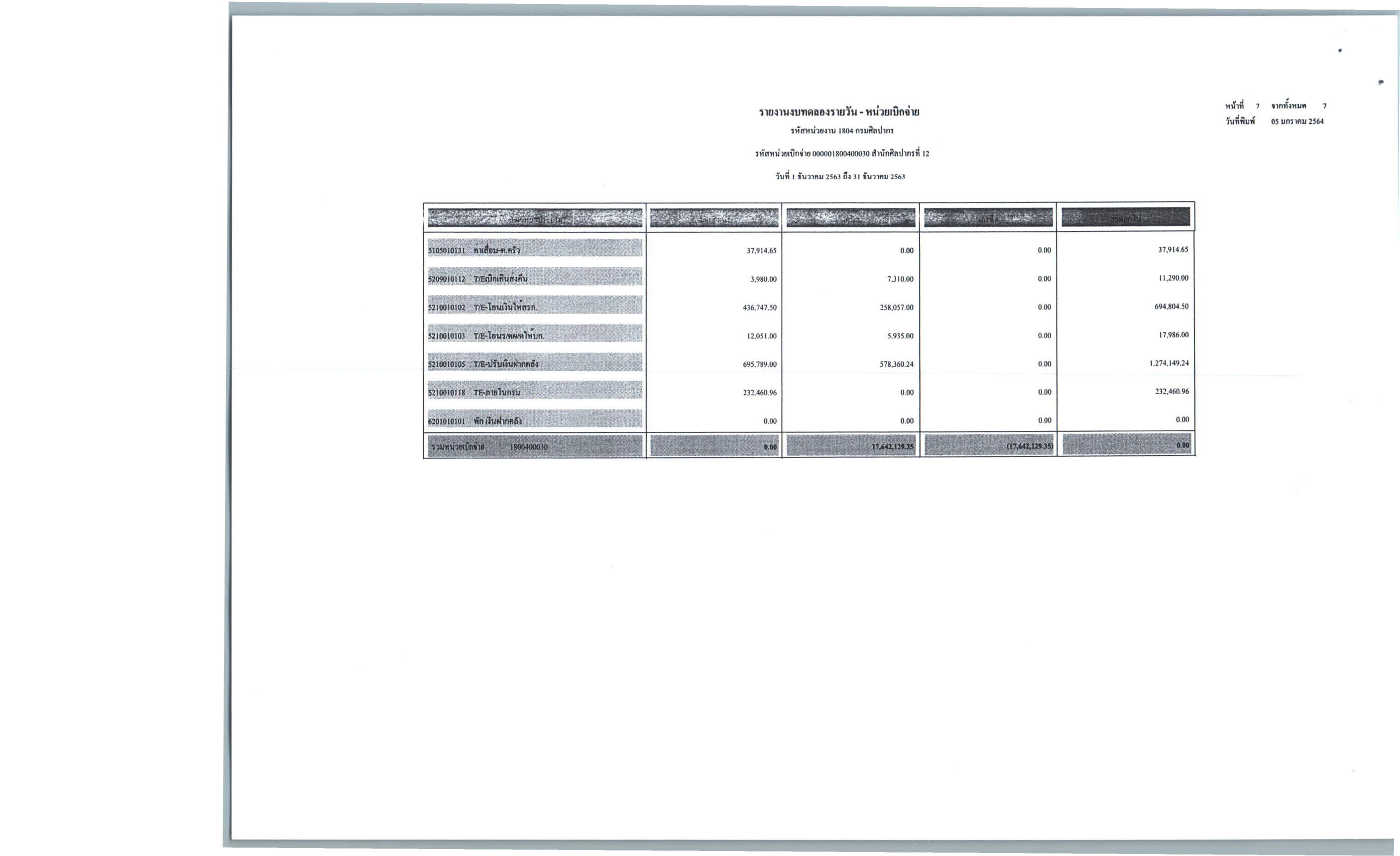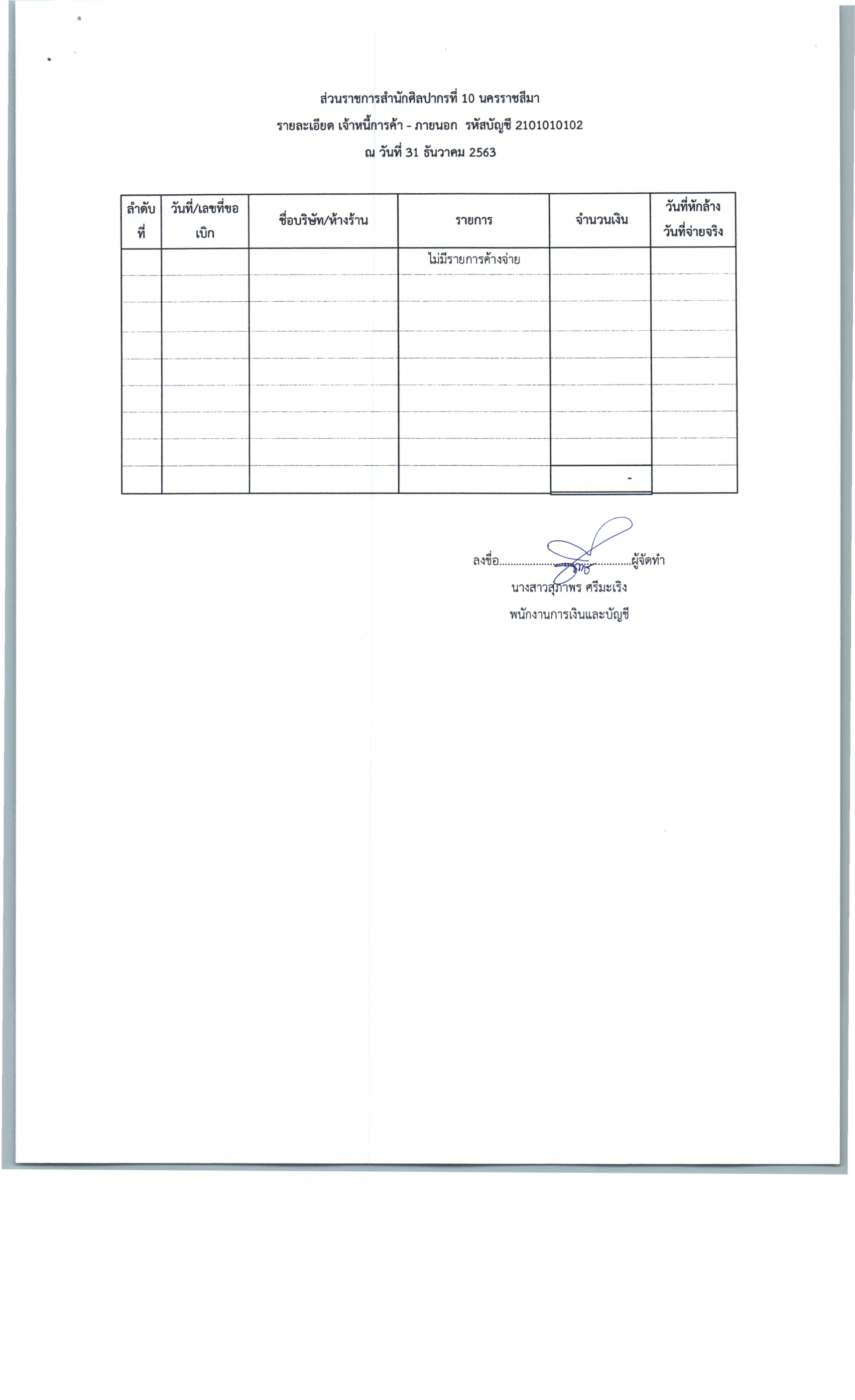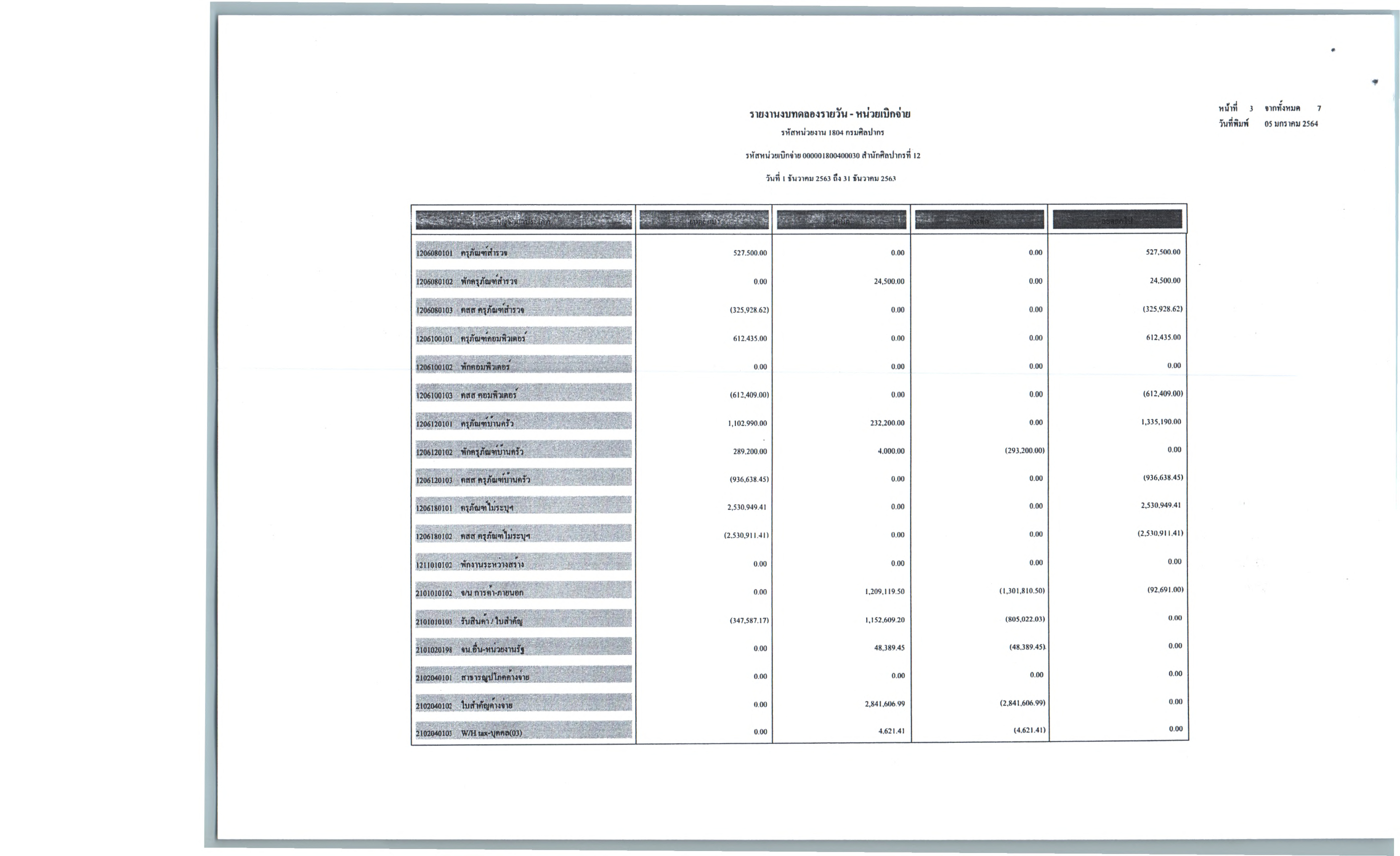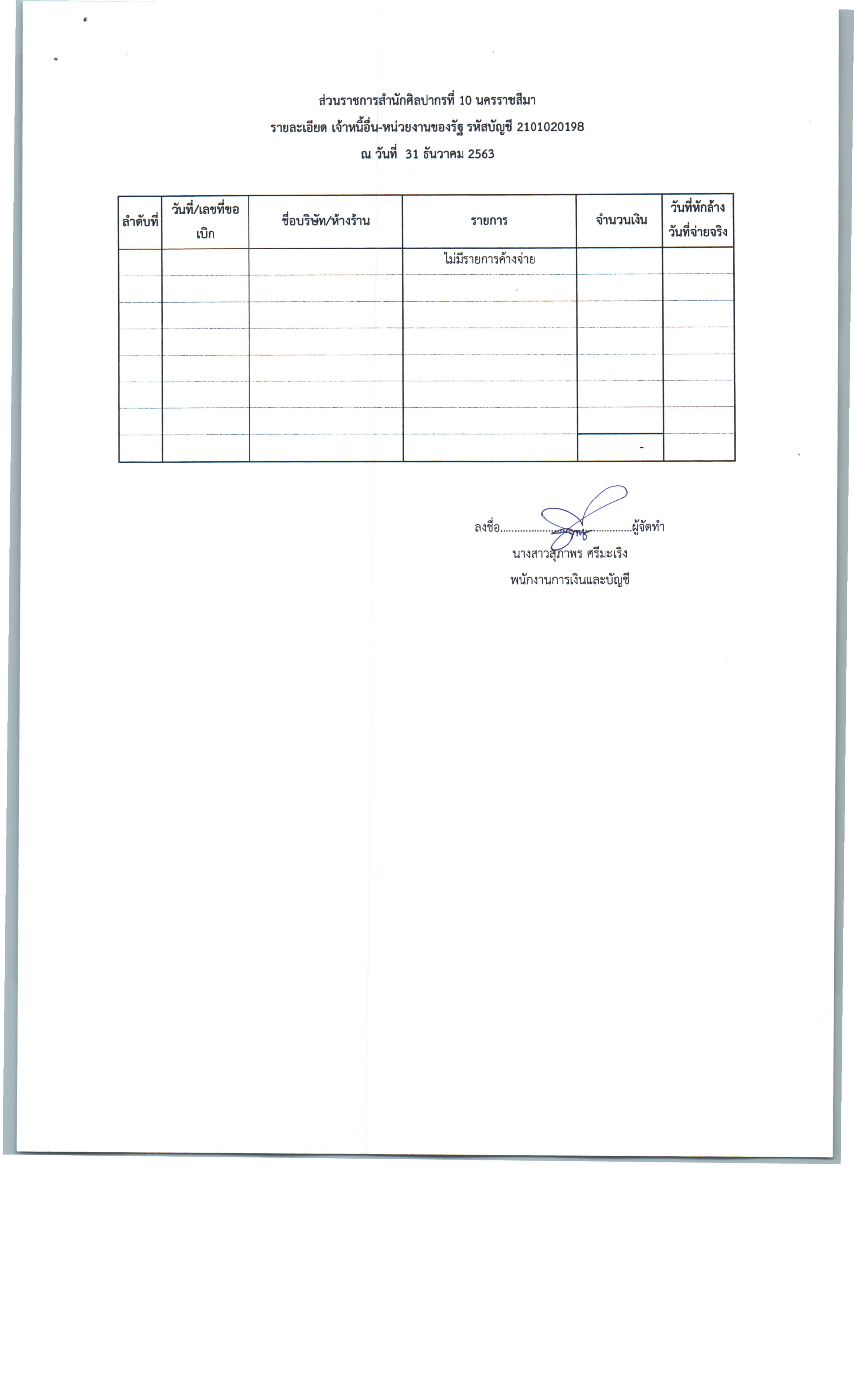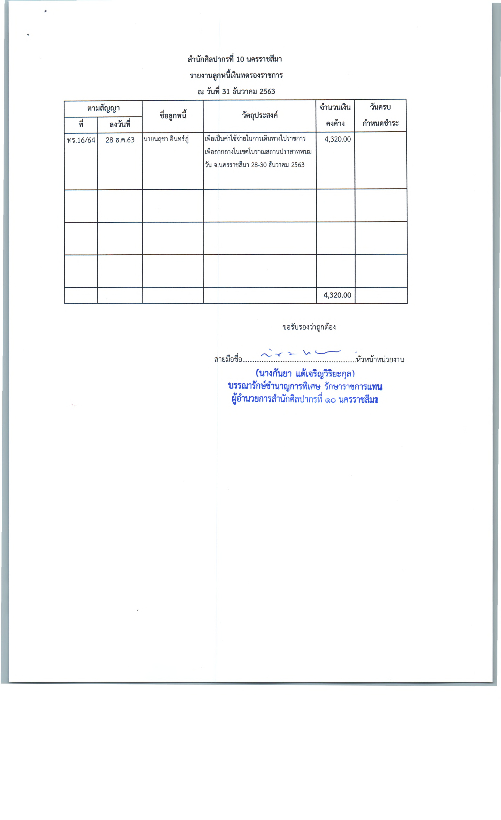 รายงานบัญชีงบทดลองและเอกสารประกอบงบทดลอง สำนักศิลปากรที่ ๑๐ นครราชสีมา (เดือนธันวาคม ๒๕๖๓)