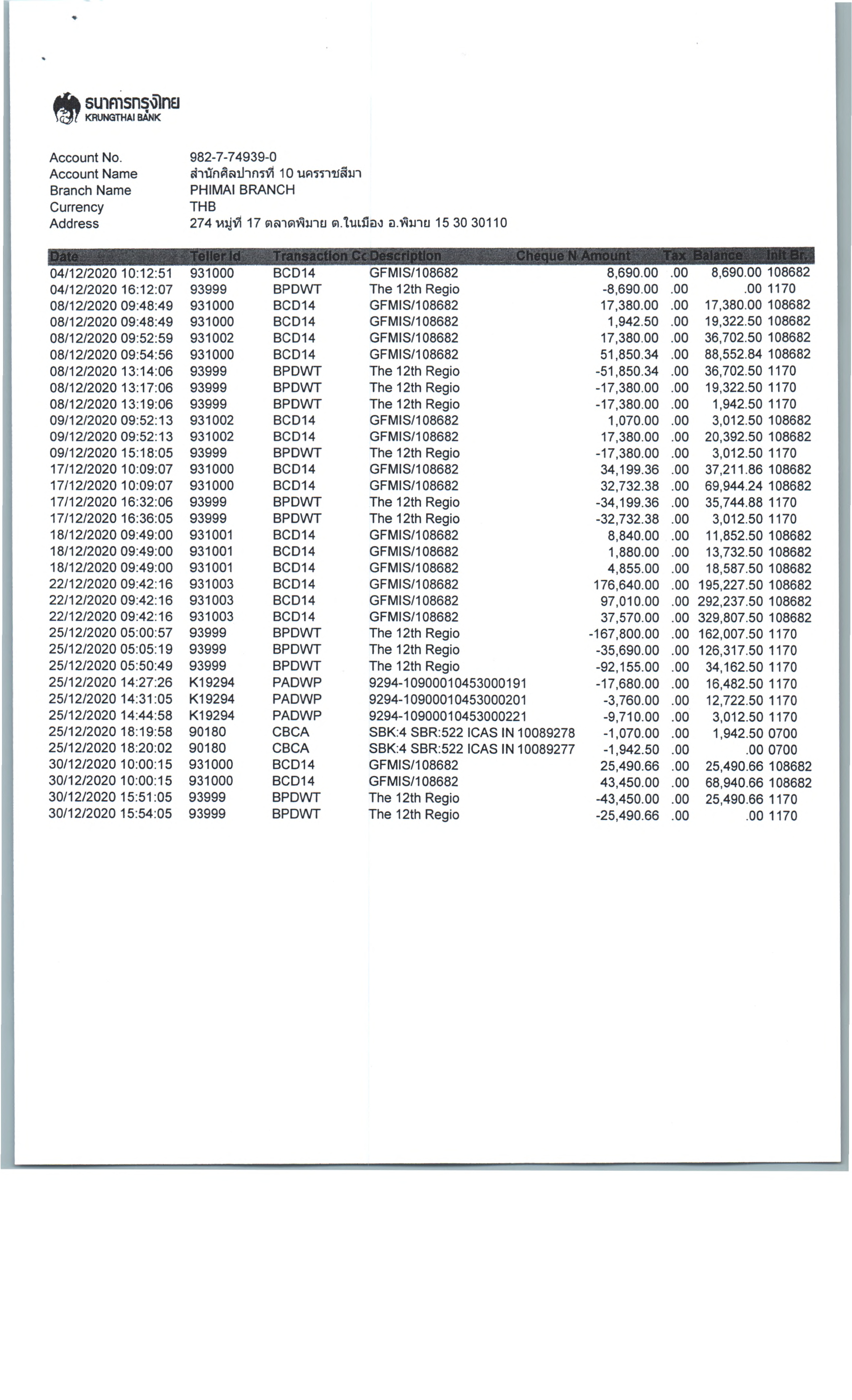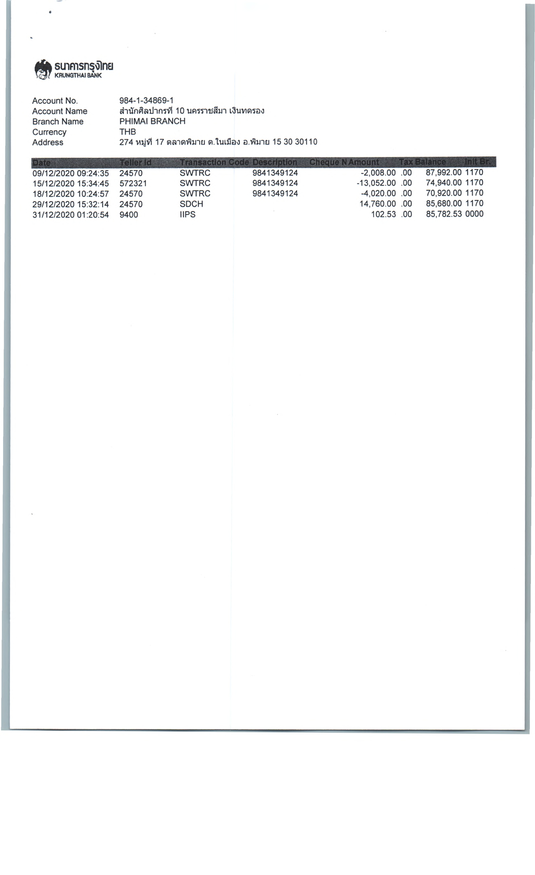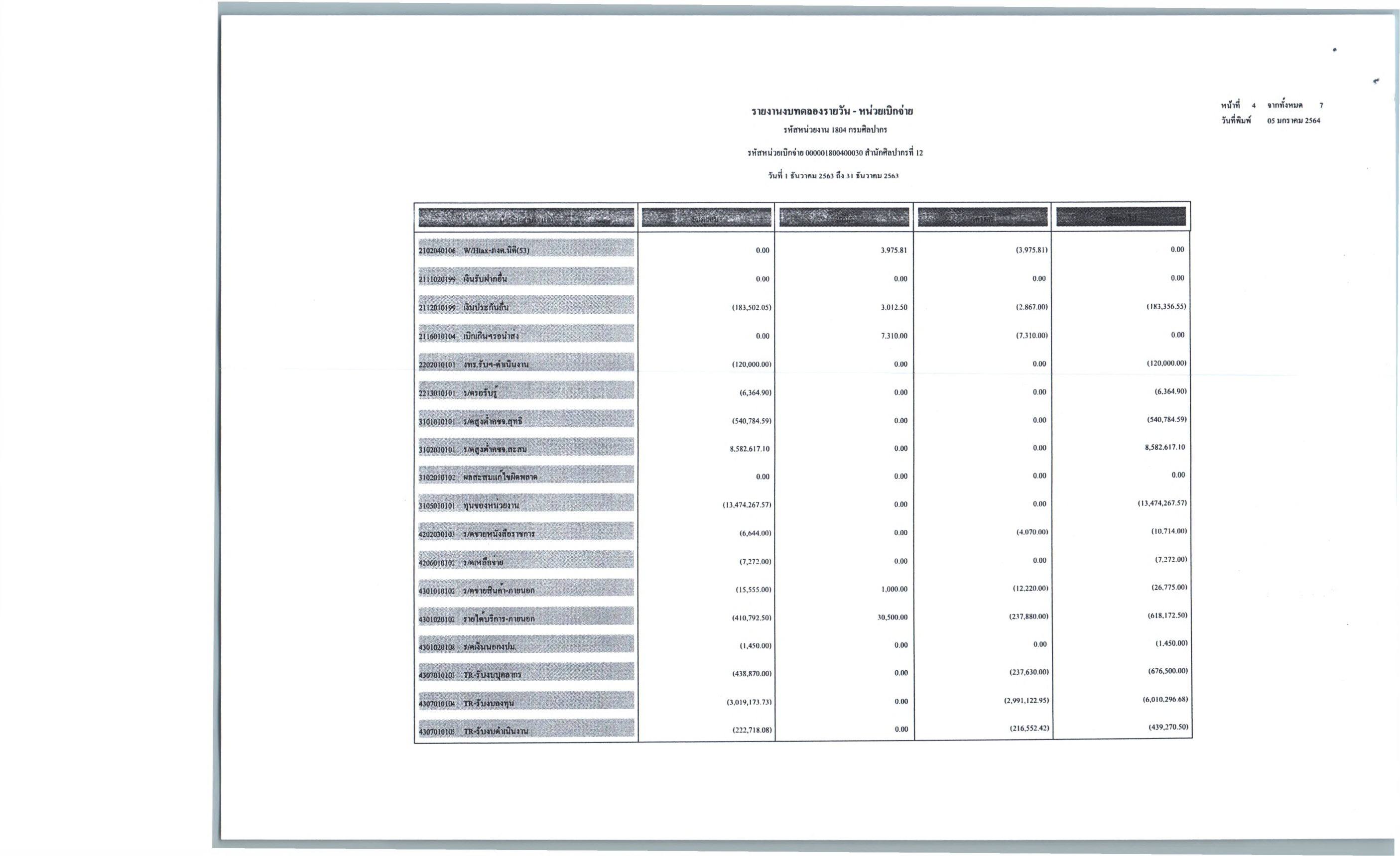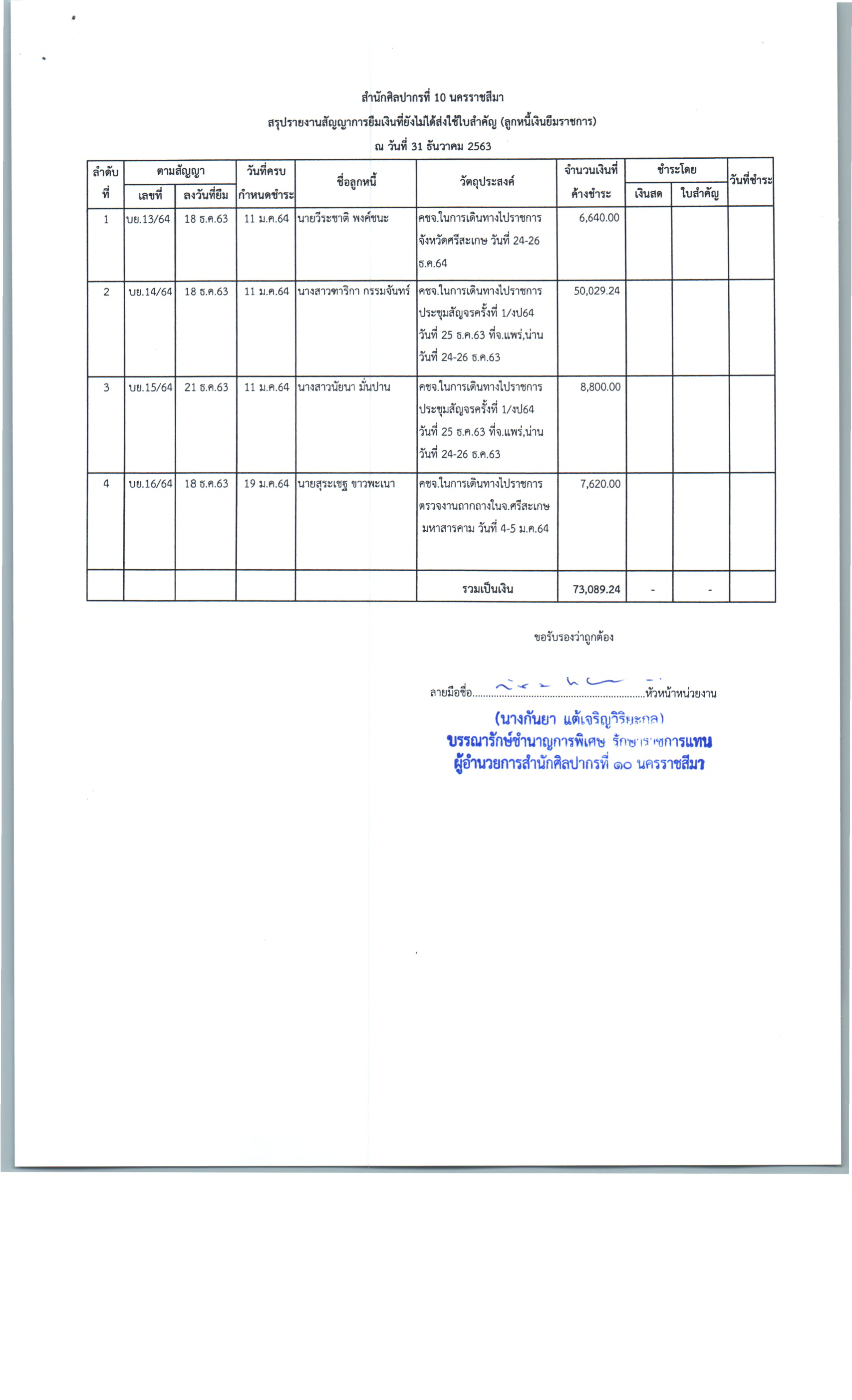 รายงานบัญชีงบทดลองและเอกสารประกอบงบทดลอง สำนักศิลปากรที่ ๑๐ นครราชสีมา (เดือนธันวาคม ๒๕๖๓)