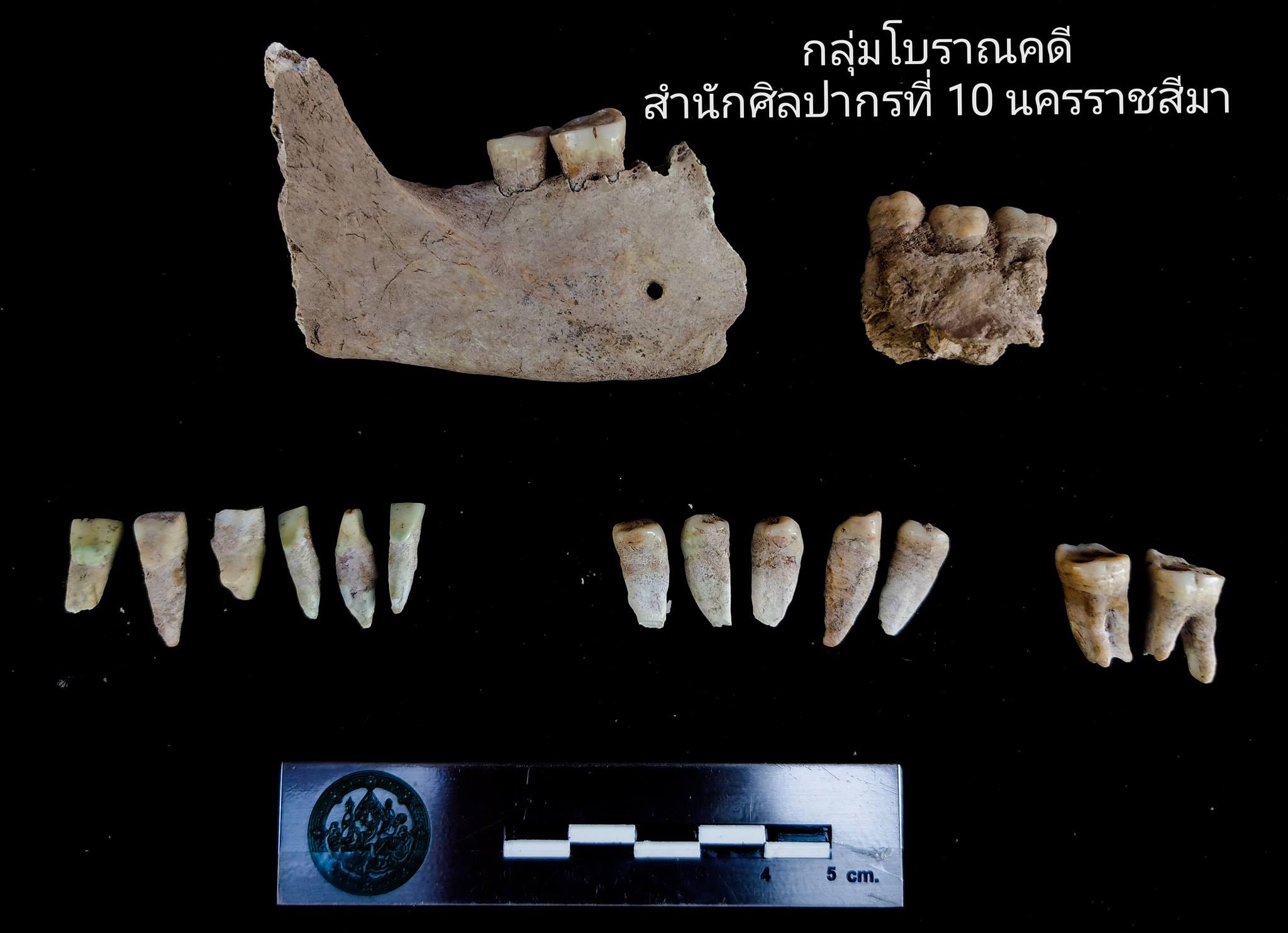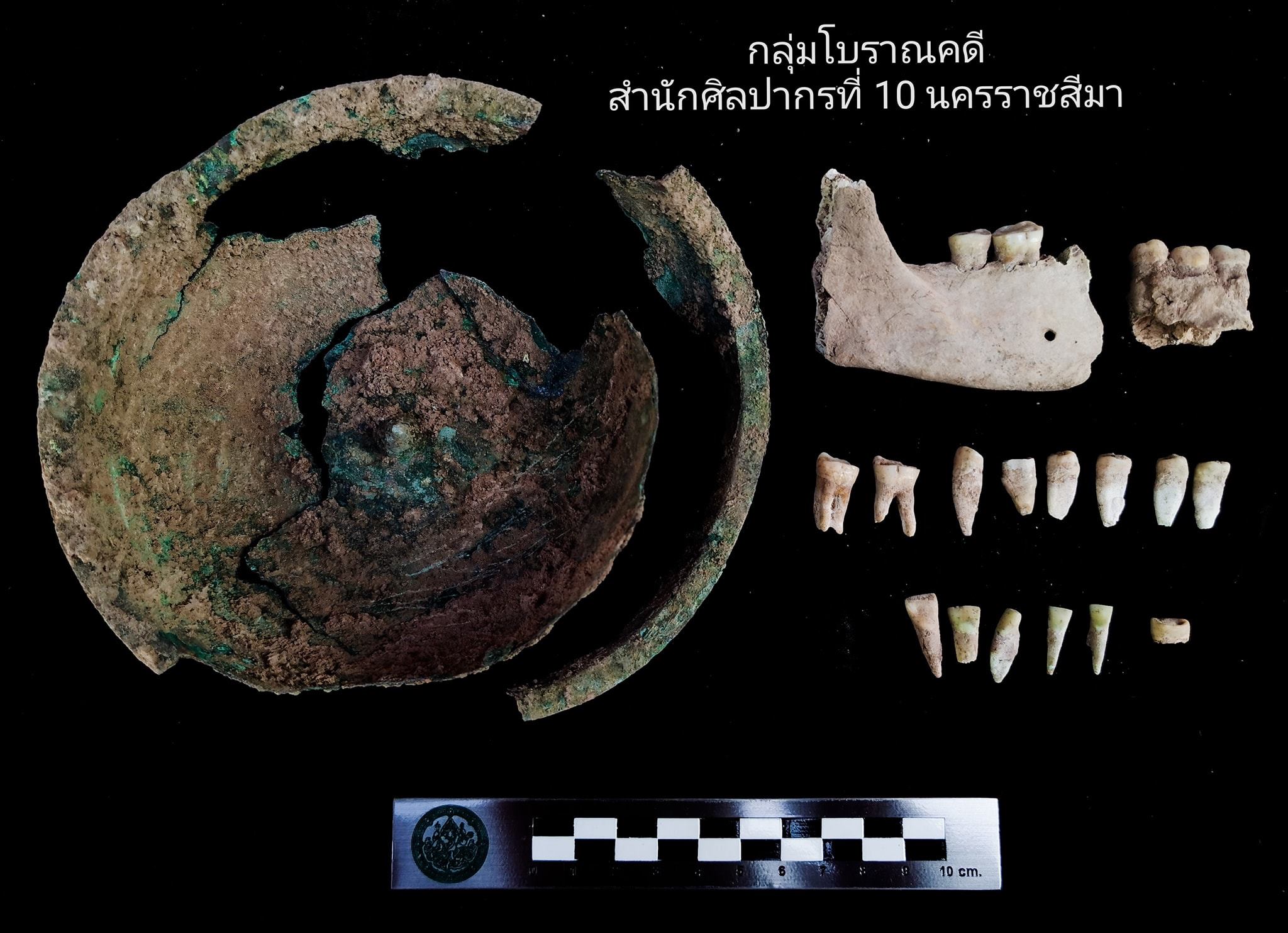 #ชิ้นที่1 ความสูง 4.5 เซนติเมตร เส้นผ่านศูนย์กลาง 13 เซนติเมตร กลางภาชนะมีแท่งทรงกรวยสูง 2 เซนติเมตร นอกจากนี้ยังพบชิ้นส่วนขากรรไกรล่างและฟันมนุษย์ ได้แก่ 1. ชิ้นส่วนขากรรไกรล่างขวา และฟัรกรามใหญ่ซี่ที่ 1-2 2. ชิ้นส่วนขากรรไกรล่าง และหันกรามน้อยซี่ที่ 2 และฟันกรามใหญ่ซี่ที่ 1-2 และ 3. ฟันตัด 6 ซี่ ฟันกรามน้อย 5 ซี่ และฟันกรามใหญ่ 2 ซี่