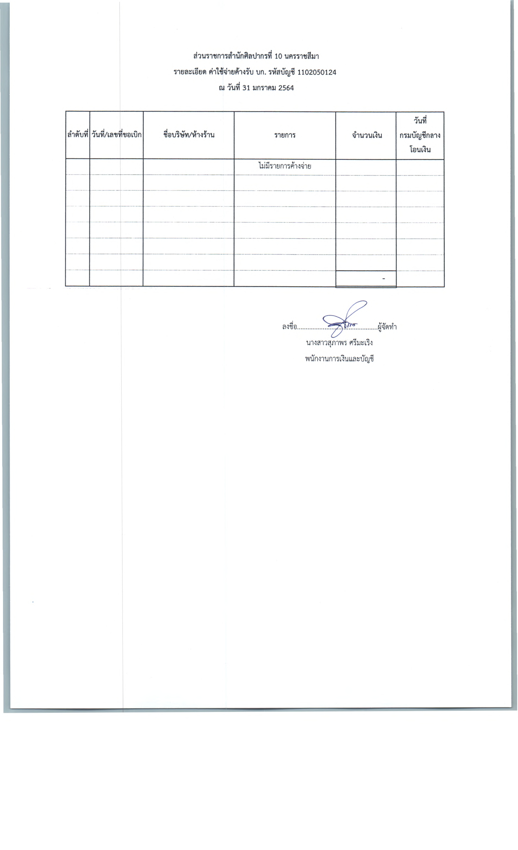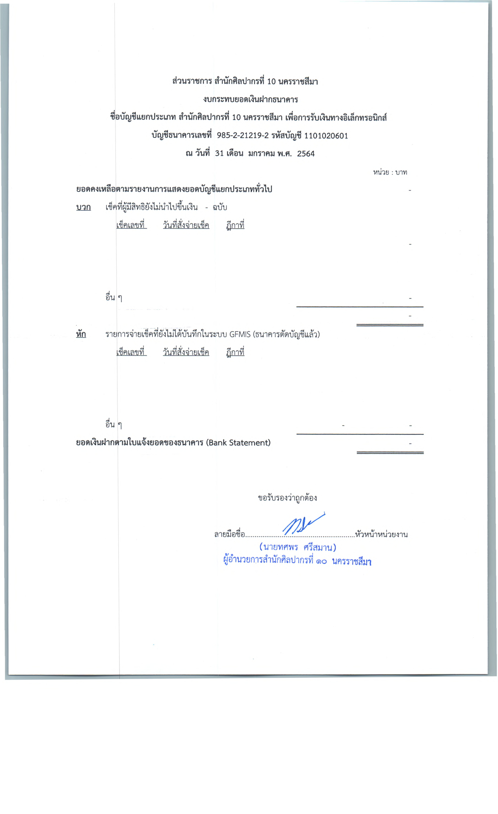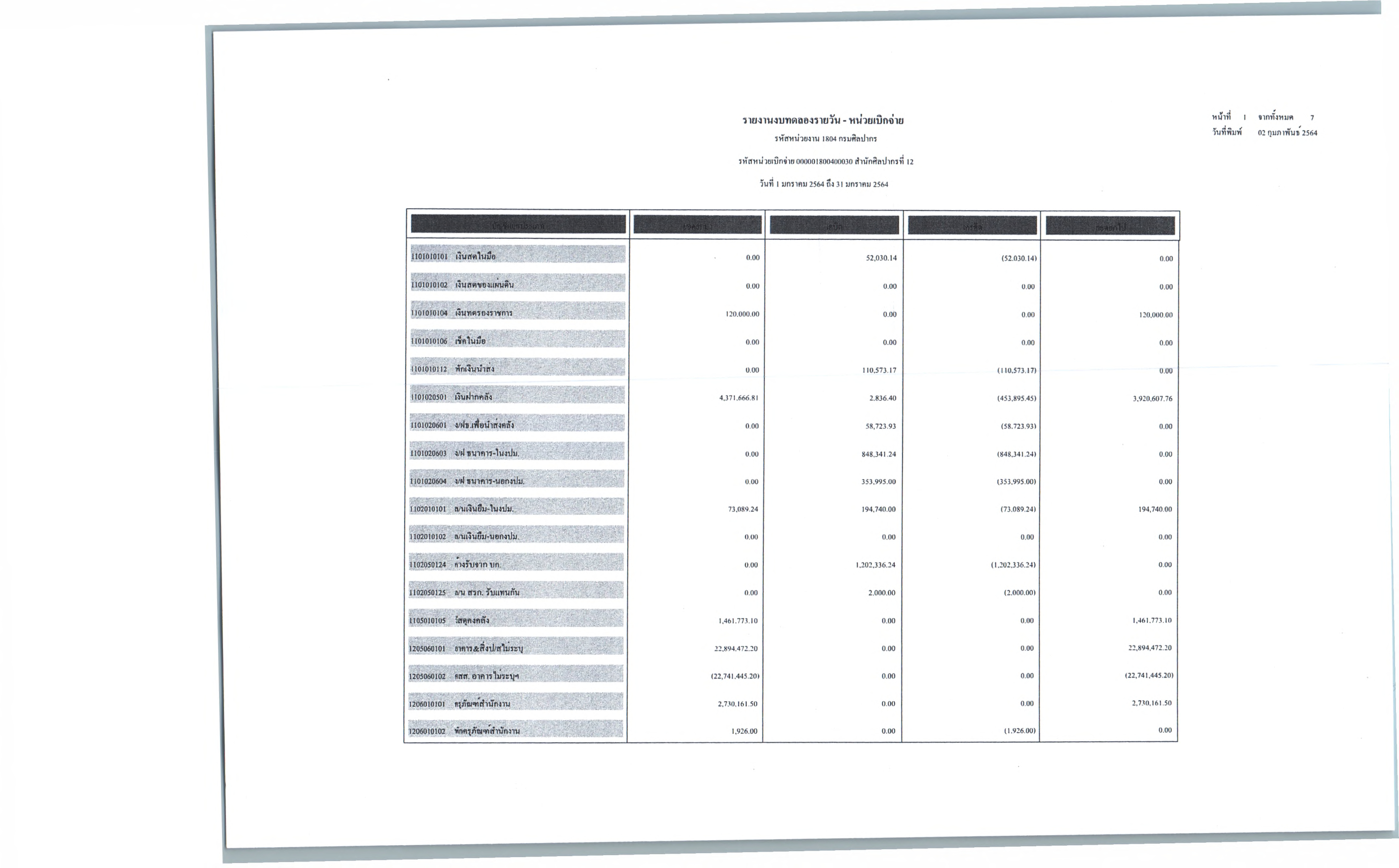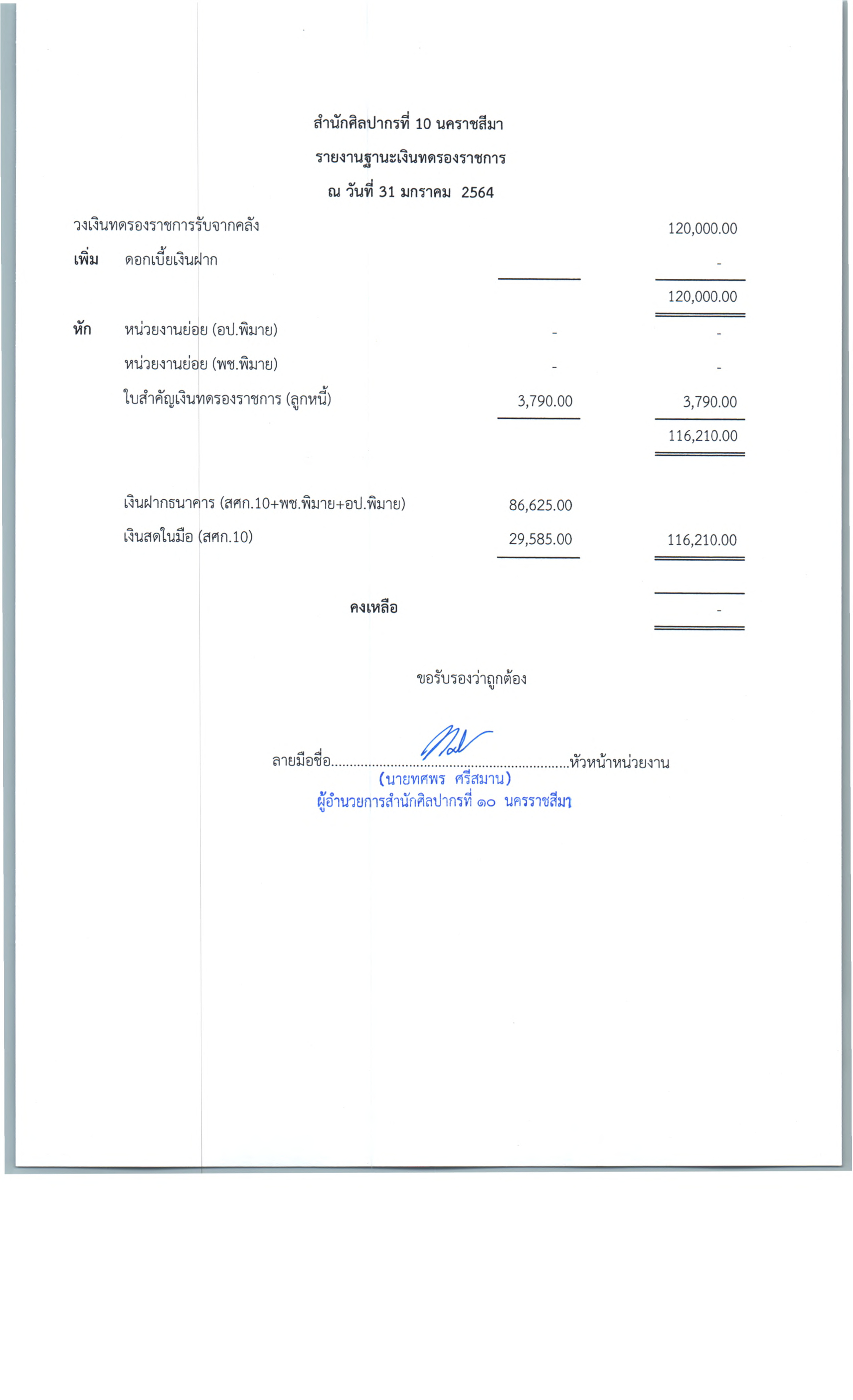 รายงานบัญชีงบทดลองและเอกสารประกอบงบทดลอง สำนักศิลปากรที่ ๑๐ นครราชสีมา (เดือนมกราคม ๒๕๖๔)