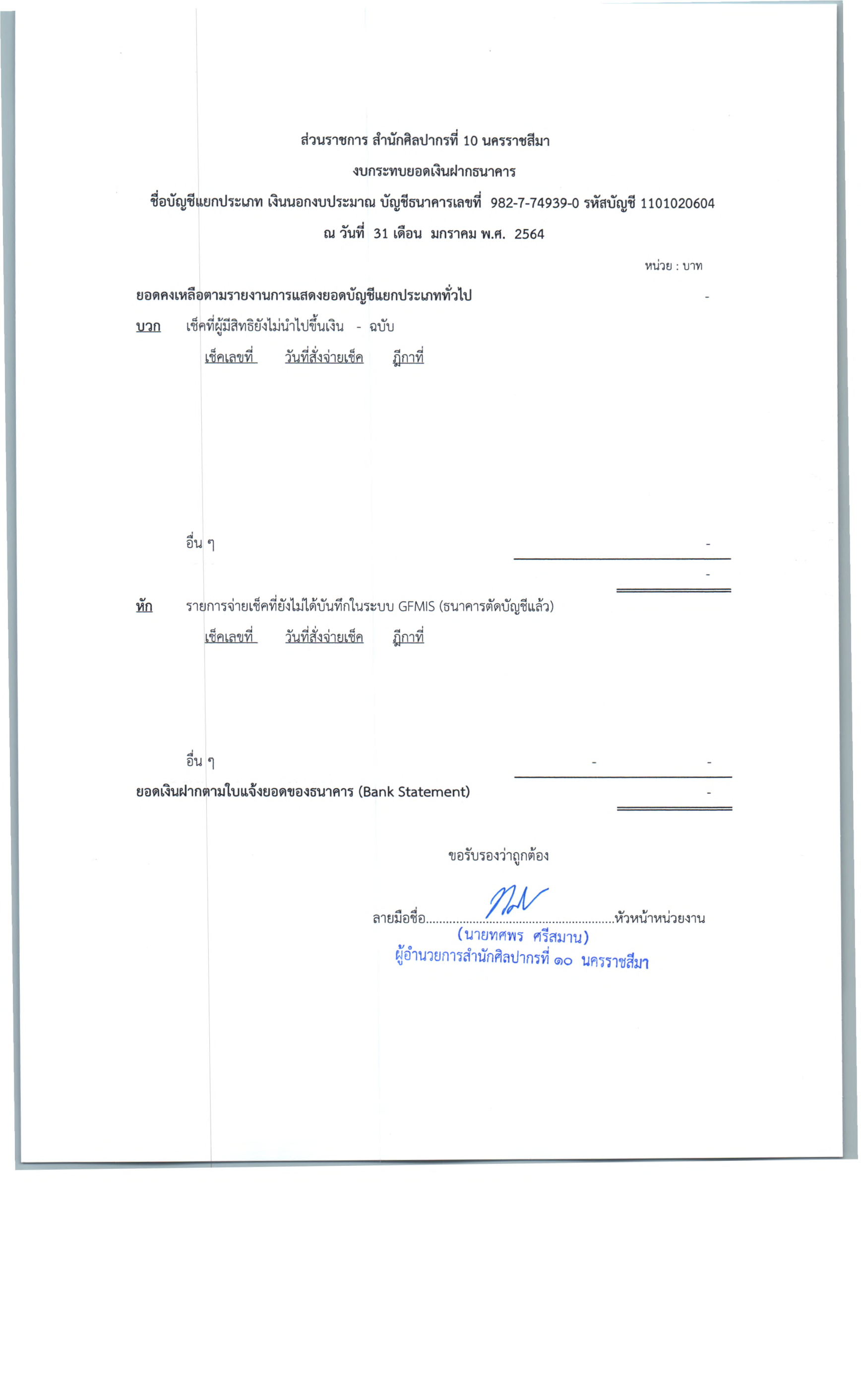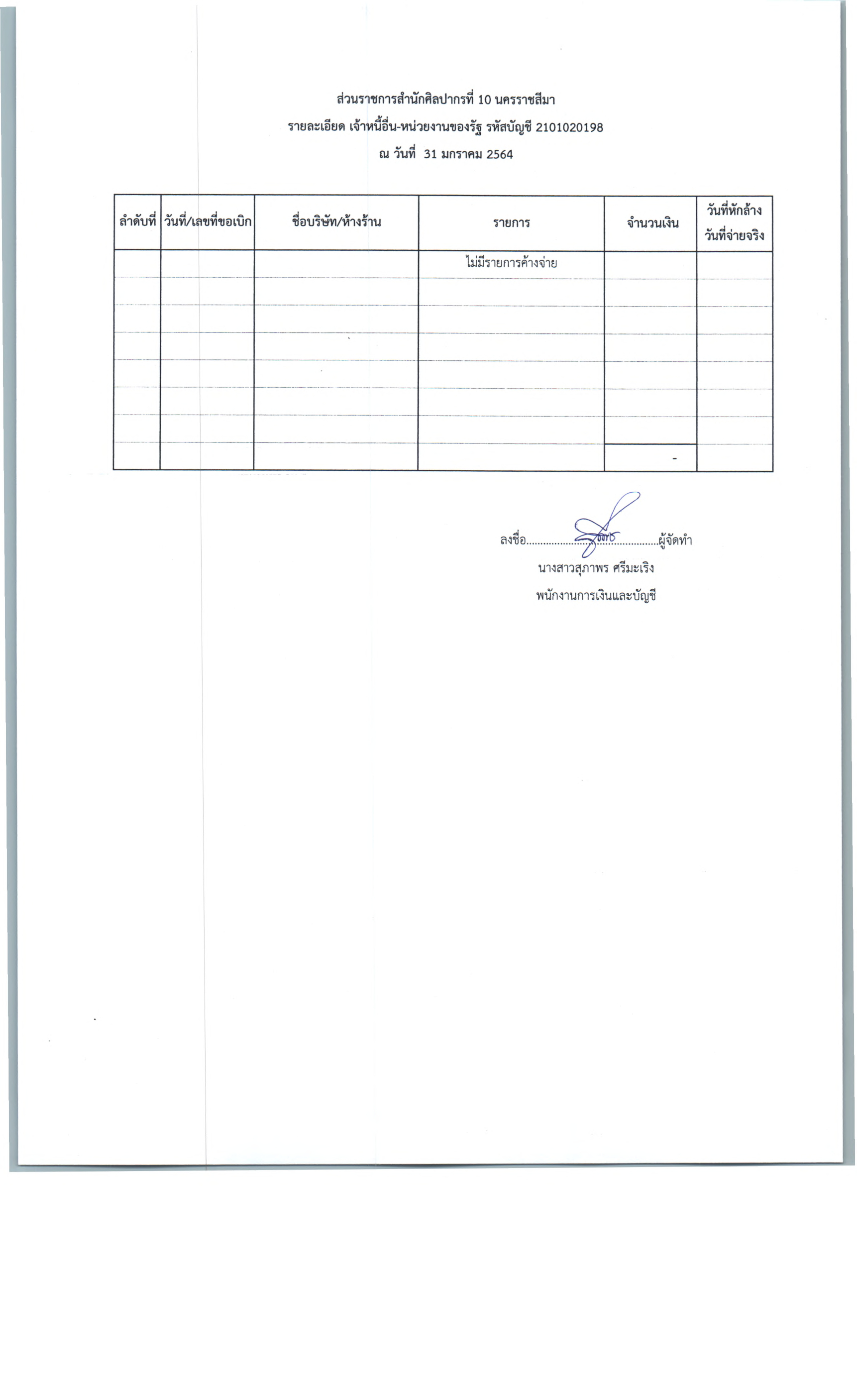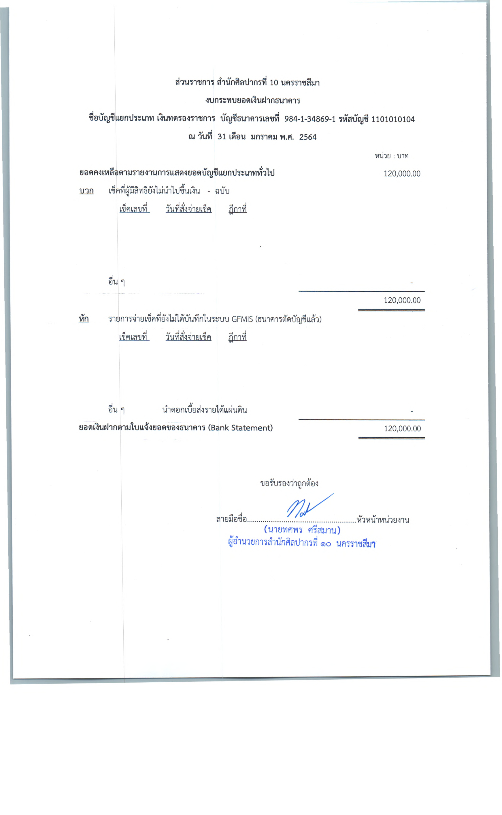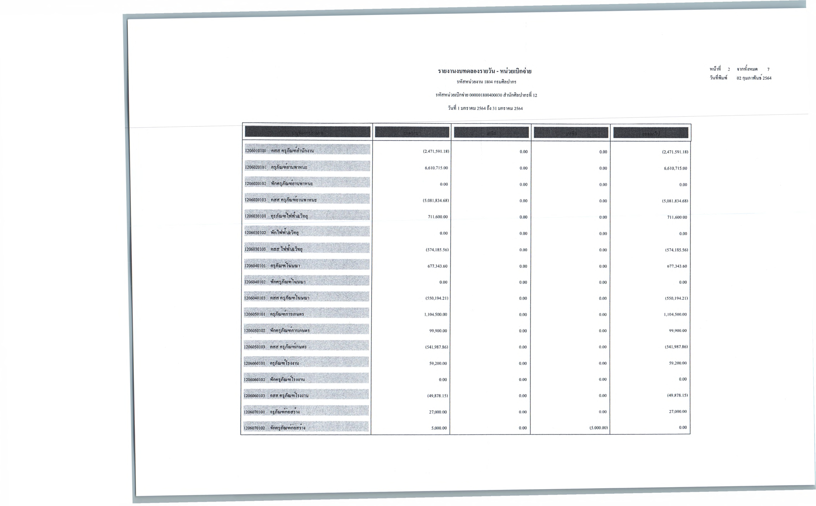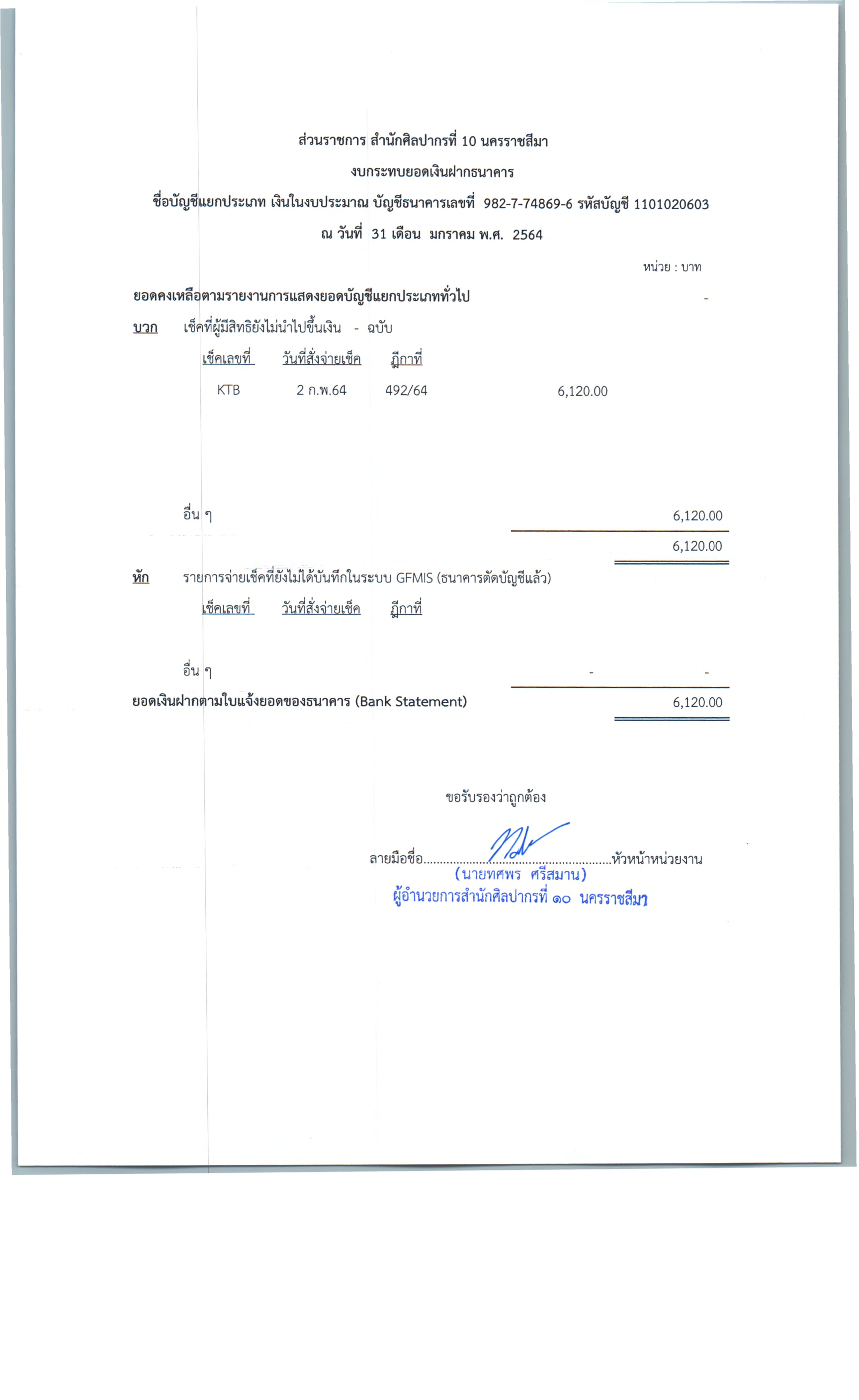 รายงานบัญชีงบทดลองและเอกสารประกอบงบทดลอง สำนักศิลปากรที่ ๑๐ นครราชสีมา (เดือนมกราคม ๒๕๖๔)
