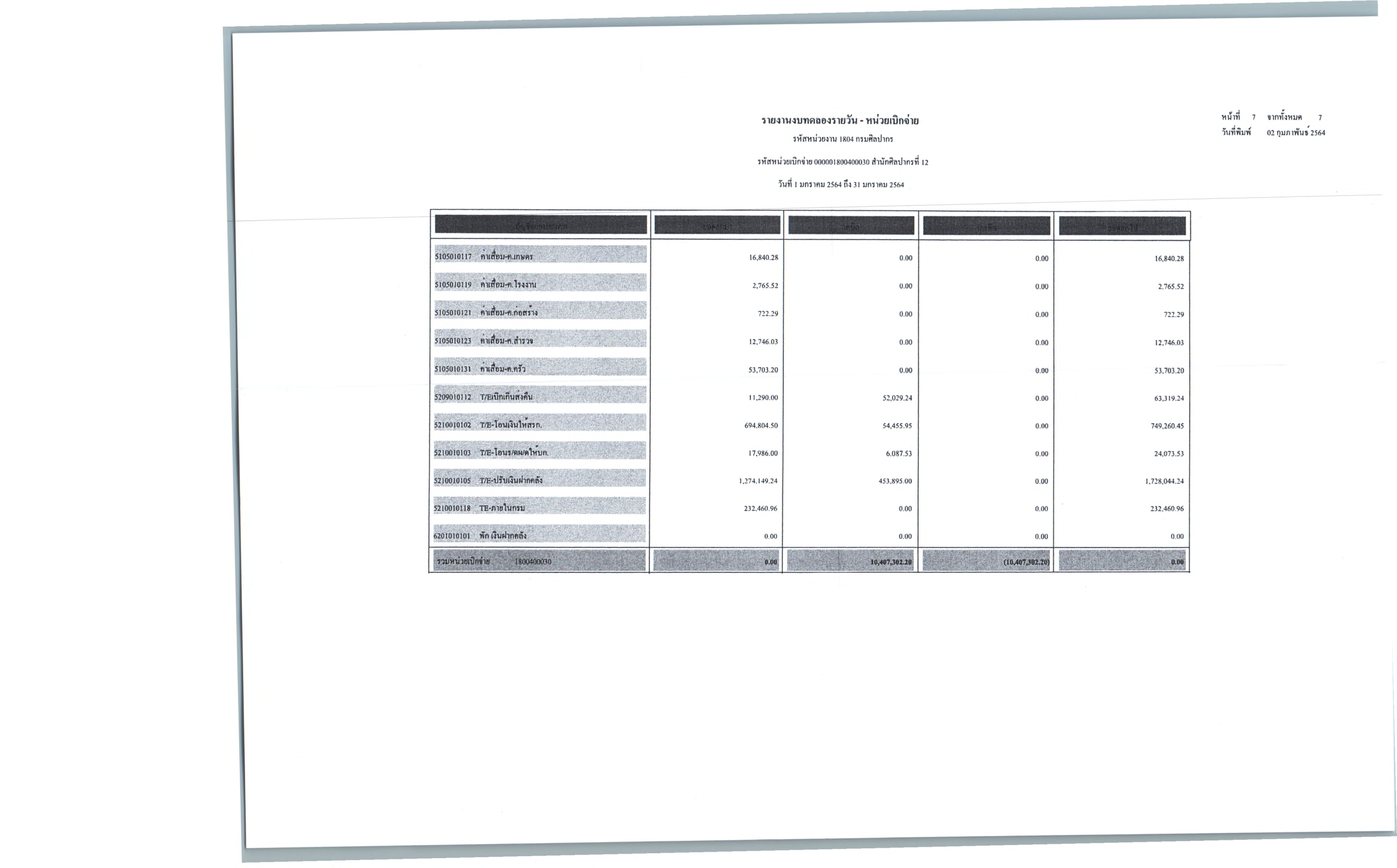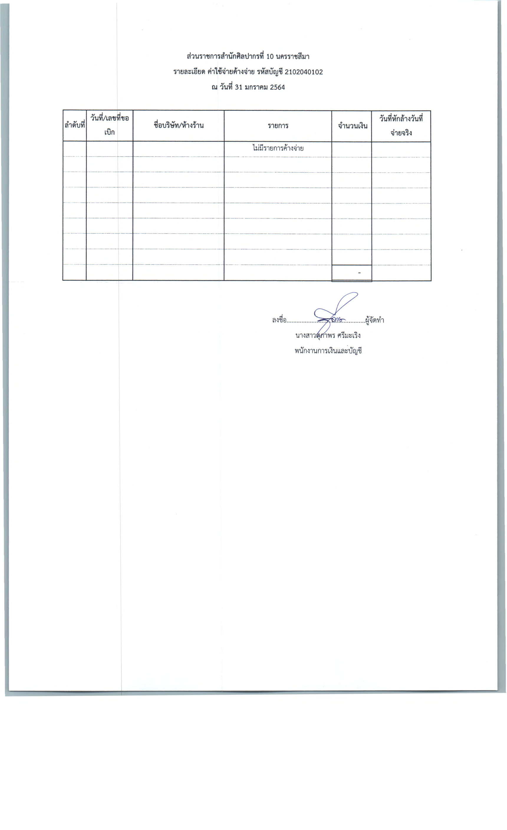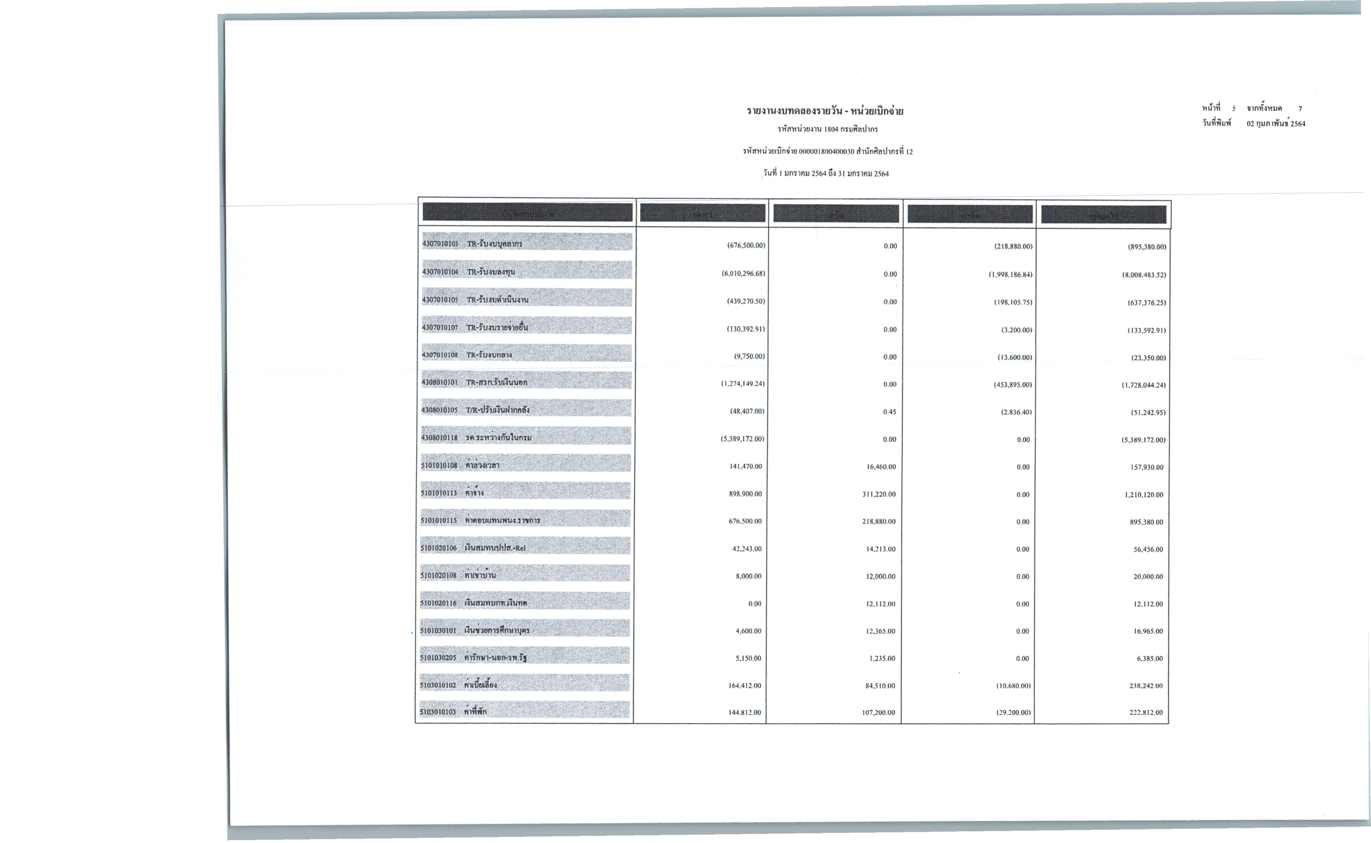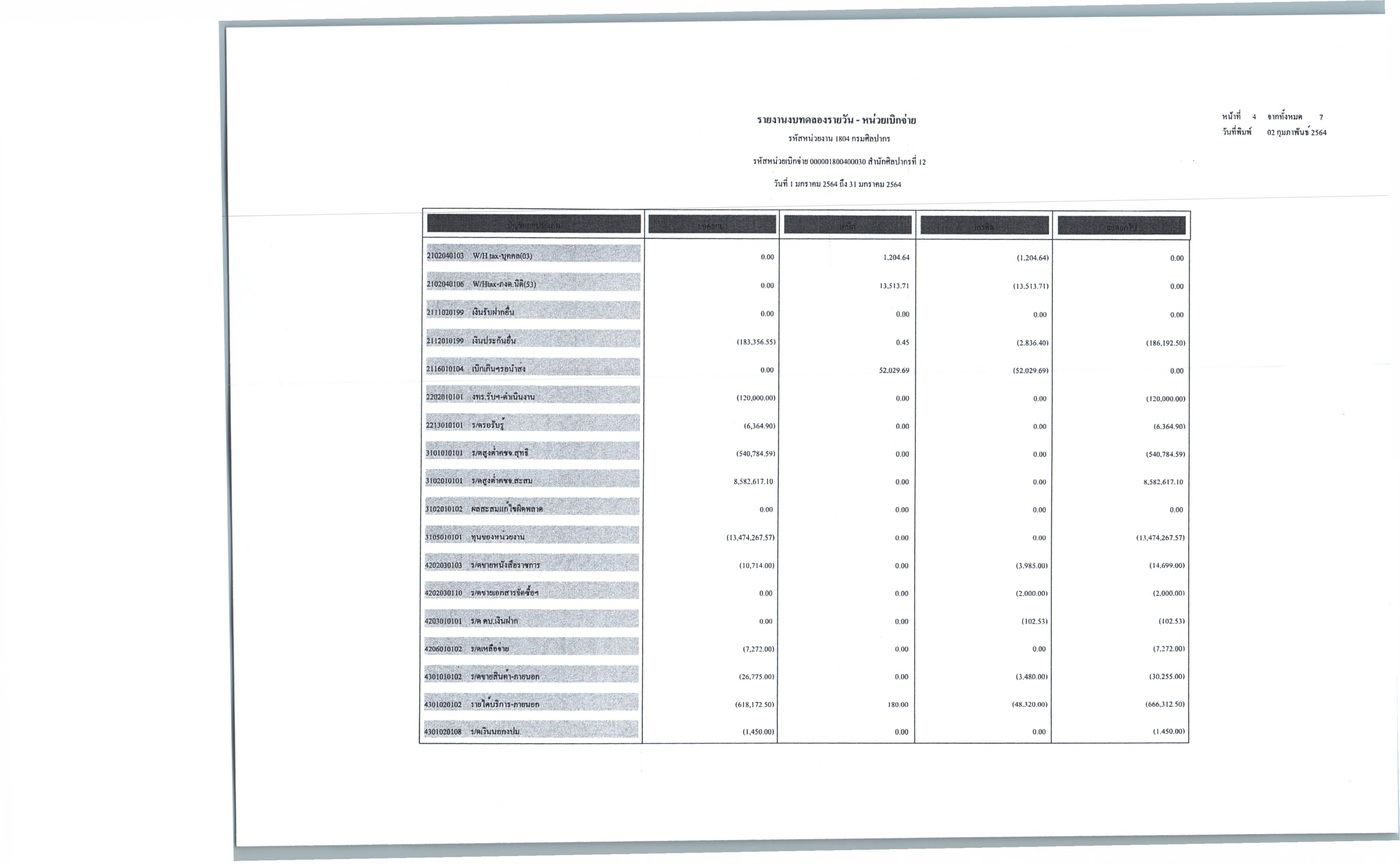 รายงานบัญชีงบทดลองและเอกสารประกอบงบทดลอง สำนักศิลปากรที่ ๑๐ นครราชสีมา (เดือนมกราคม ๒๕๖๔)