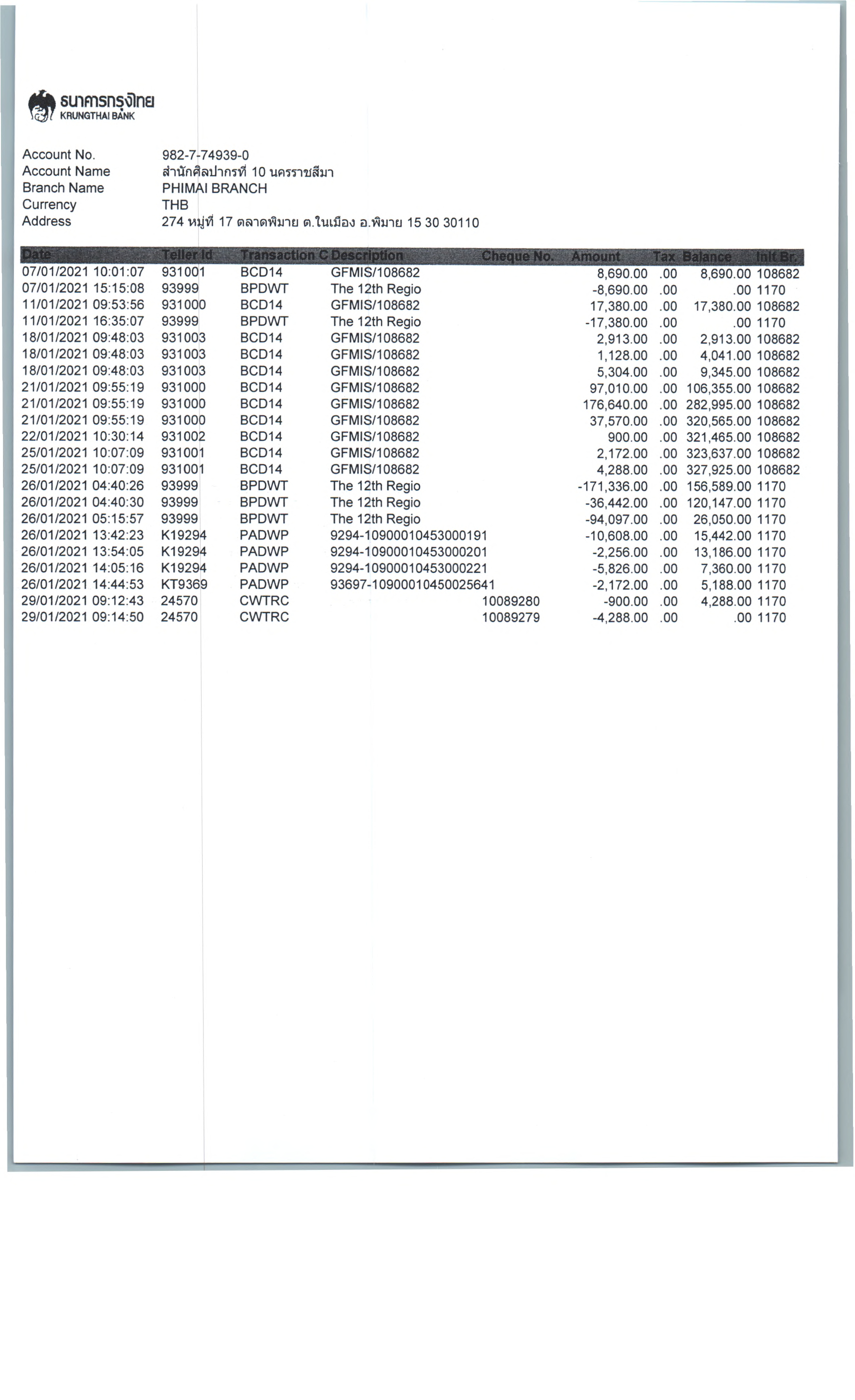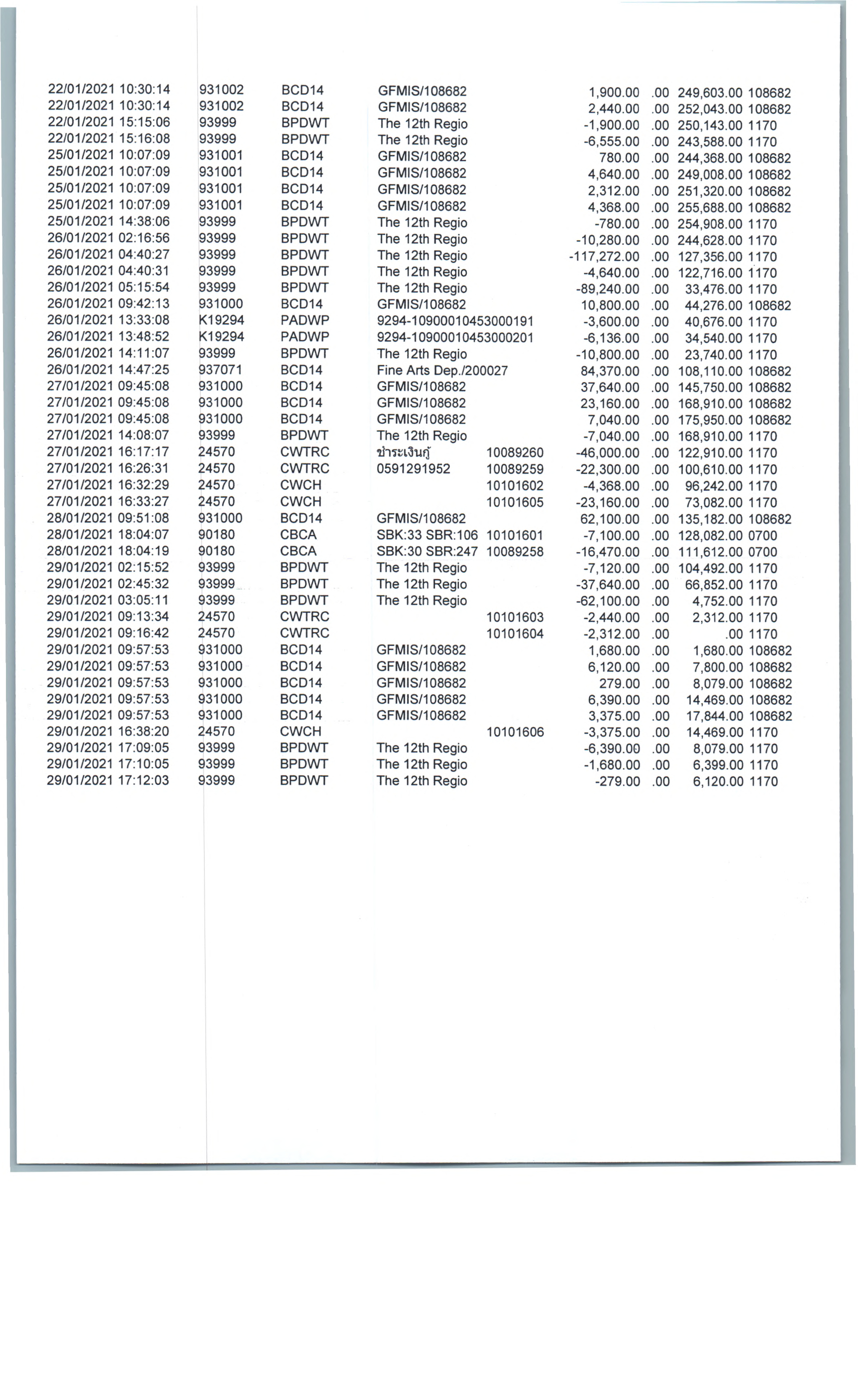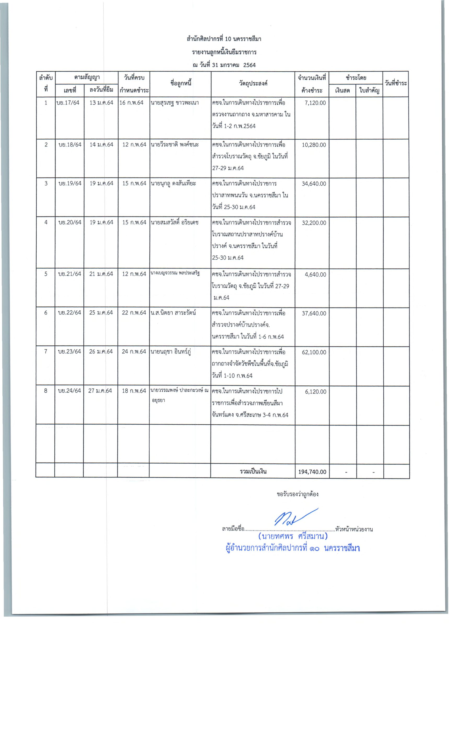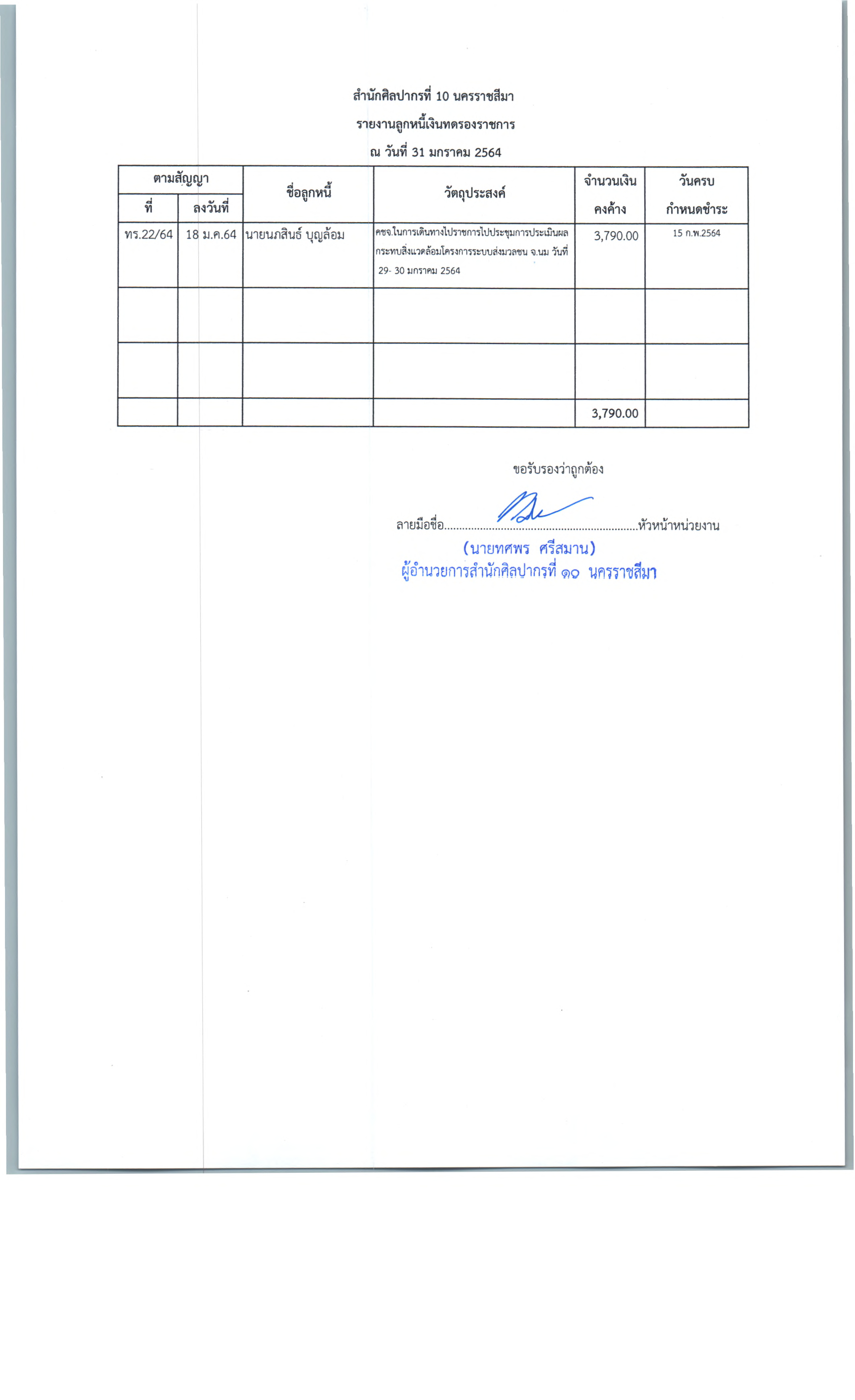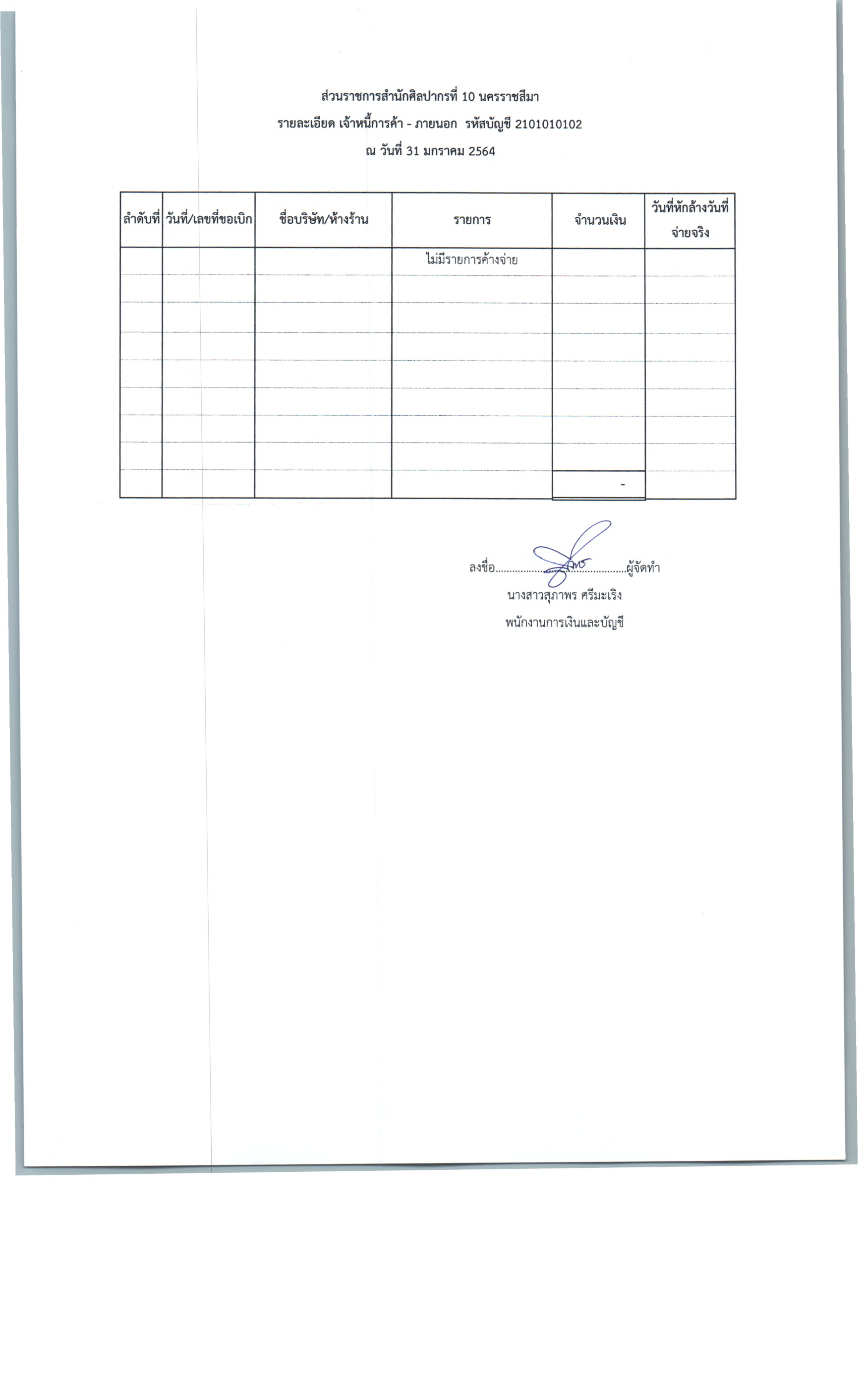 รายงานบัญชีงบทดลองและเอกสารประกอบงบทดลอง สำนักศิลปากรที่ ๑๐ นครราชสีมา (เดือนมกราคม ๒๕๖๔)