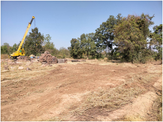 - ดำเนินการทดลองประกอบชิ้นส่วนทับหลังและหน้าบันด้านทิศใต้ ทำความสะอาด,งานคัดแยกหิน โบราณสถานปรางค์บ้านปรางค์ ตำบลนกออก อำเภอปักธงชัย จังหวัดนครราชสีมา