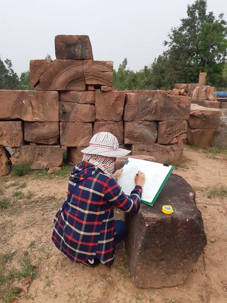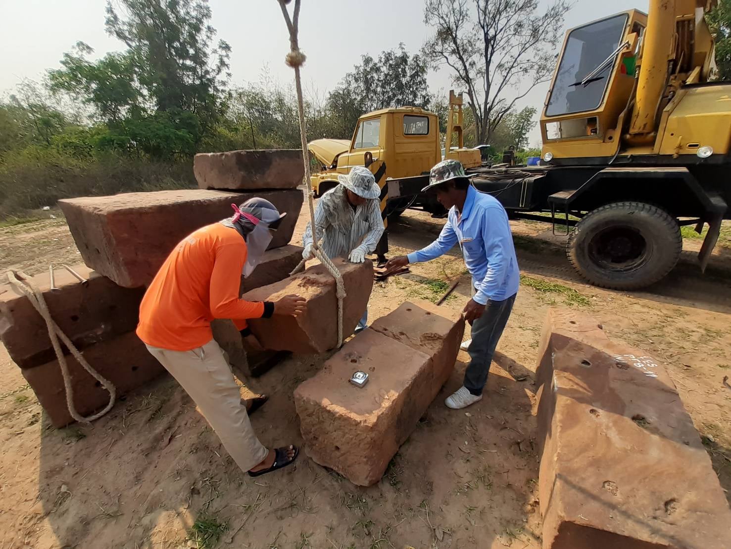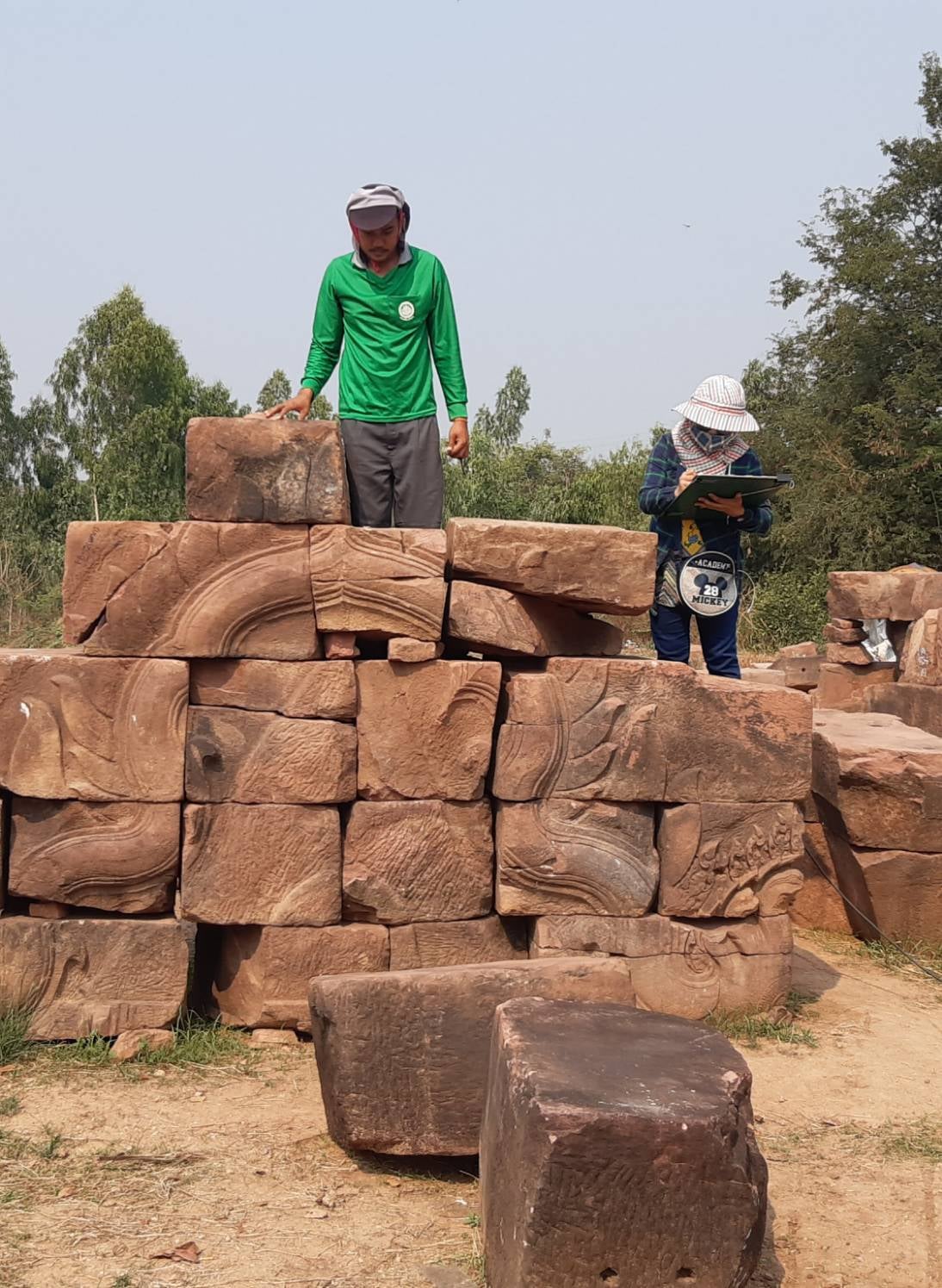 การดำเนินงานทดลองประกอบหินชิ้นส่วนและเขียนแบบหินที่ทดลองประกอบ โบราณสถานปรางค์บ้านปรางค์ ตำบลนกออก อำเภอปักธงชัย จังหวัดนครราชสีมา