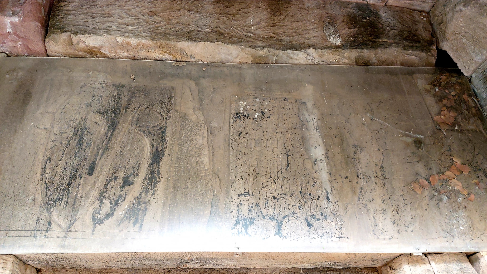 รอยจารึก พระปรมาภิไธย อักษรย่อ “จ.ป.ร.” ของพระบาทสมเด็จพระจุลจอมเกล้าเจ้าอยู่หัว รัชกาลที่ ๕ (ร.๕) เมื่อ ๑๒๐ ปีก่อน บนผนังปราสาทหินพนมวัน ตำบลบ้านโพธิ์ อำเภอเมืองนครราชสีมา จังหวัดนครราชสีมา