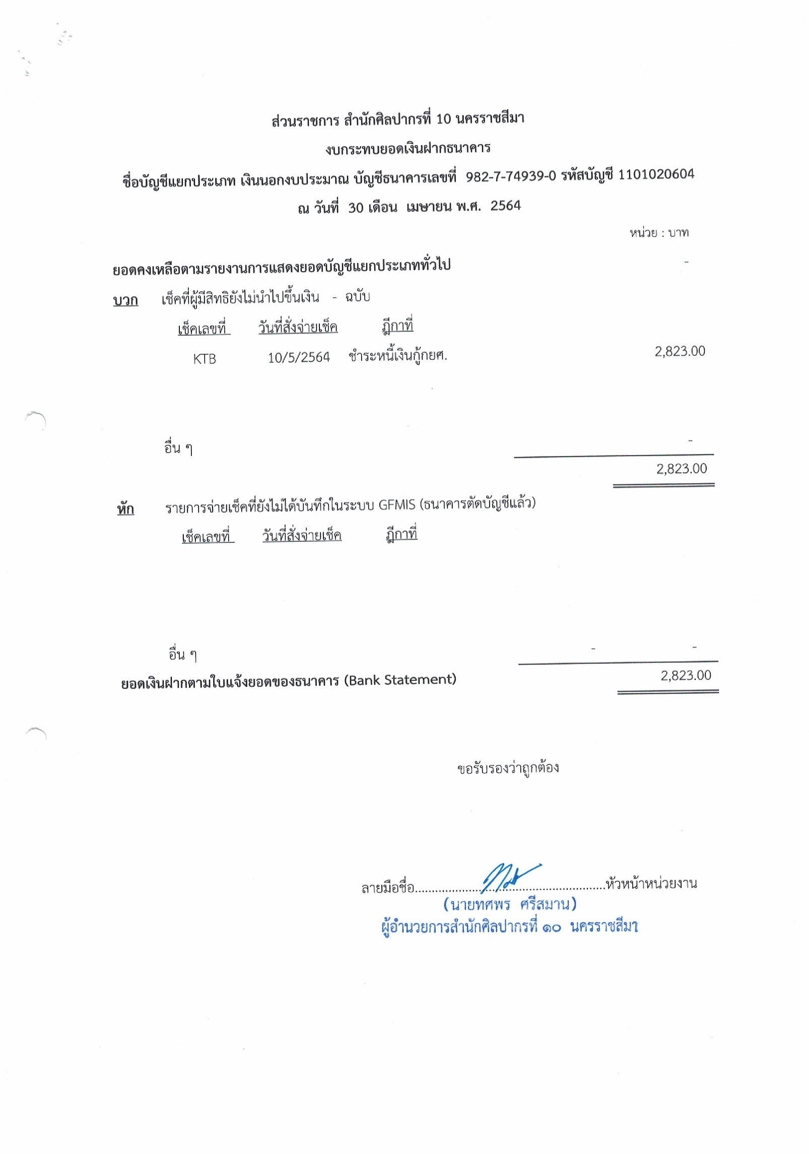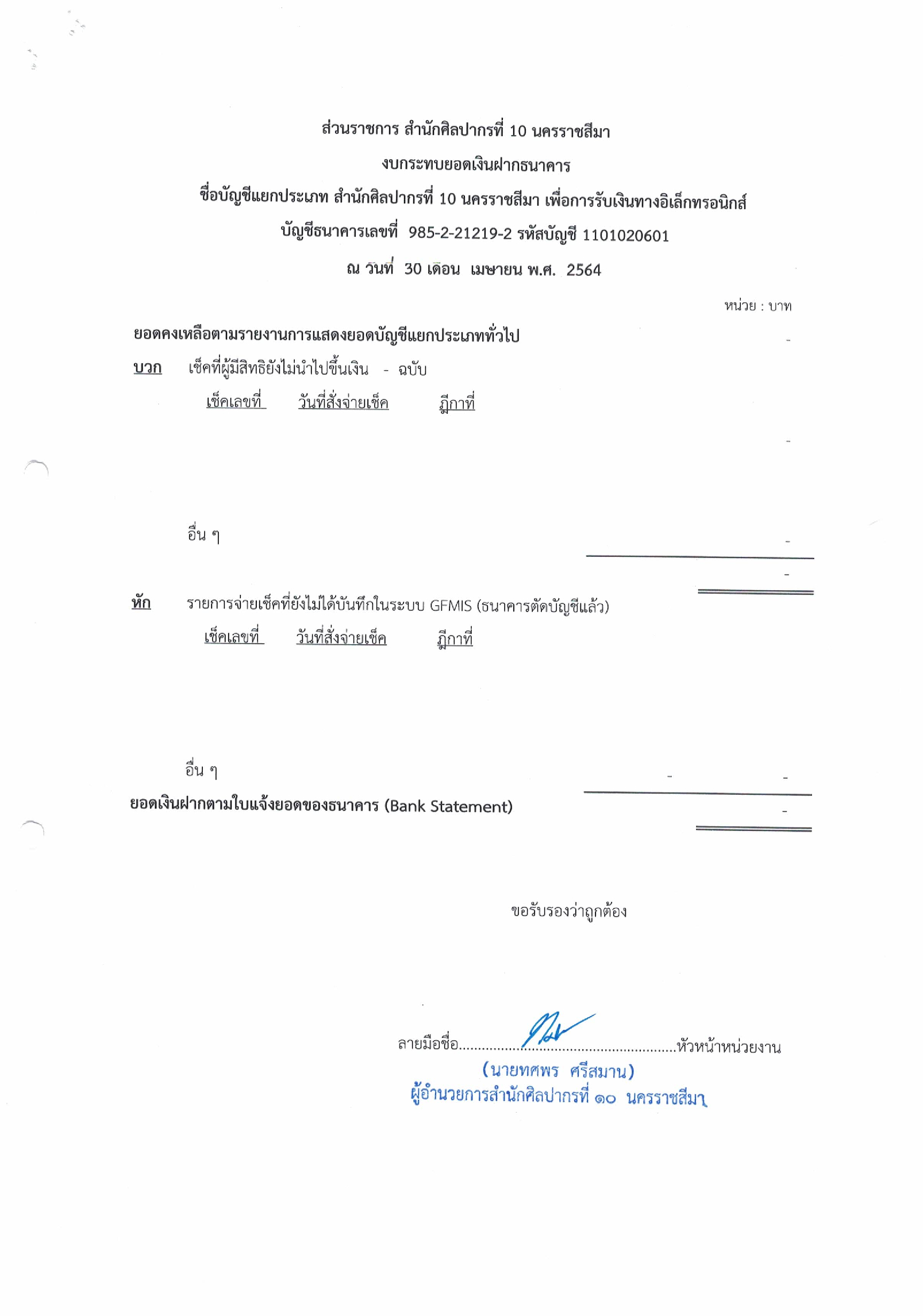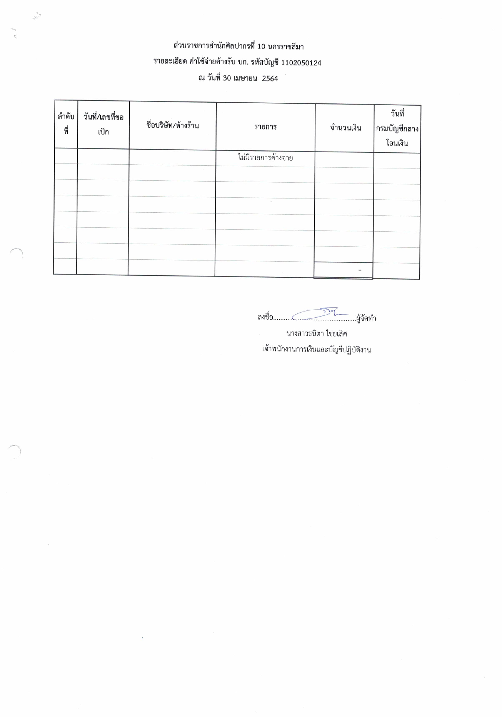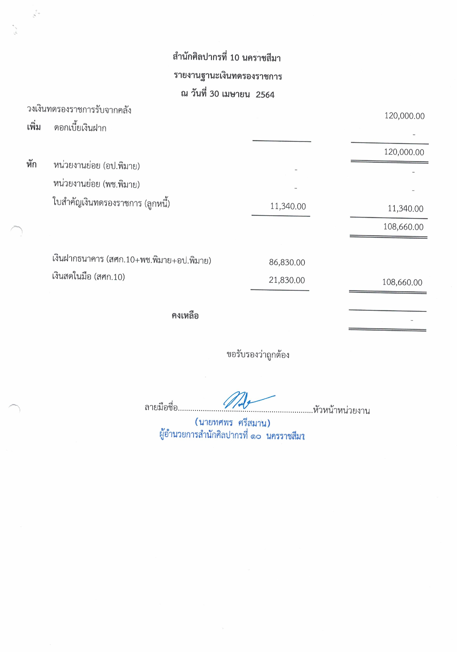 รายงานบัญชีงบทดลองและเอกสารประกอบงบทดลอง สำนักศิลปากรที่ ๑๐ นครราชสีมา (เดือนเมษายน ๒๕๖๔)